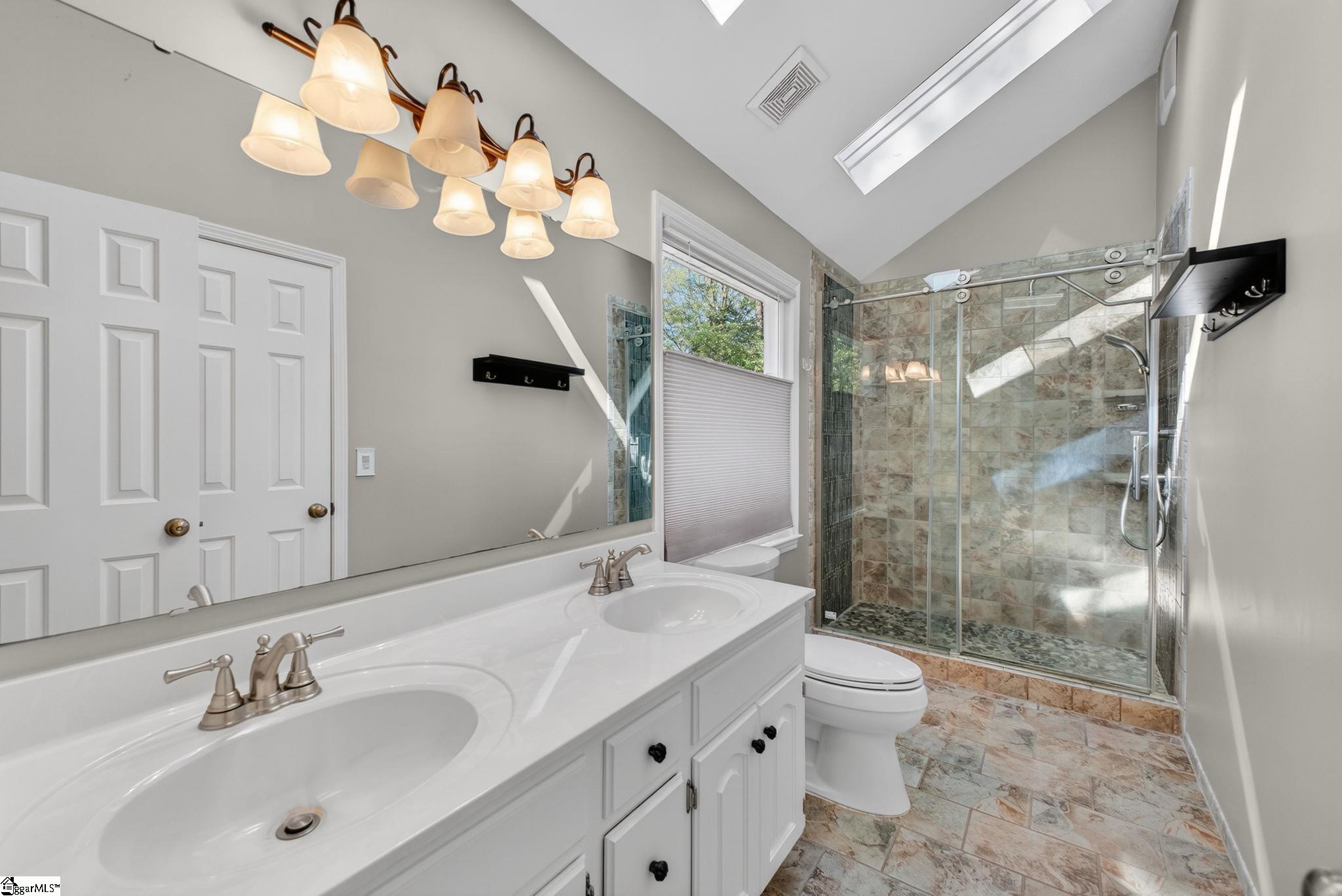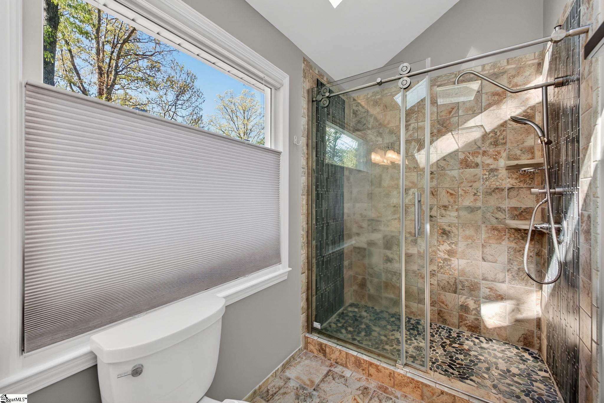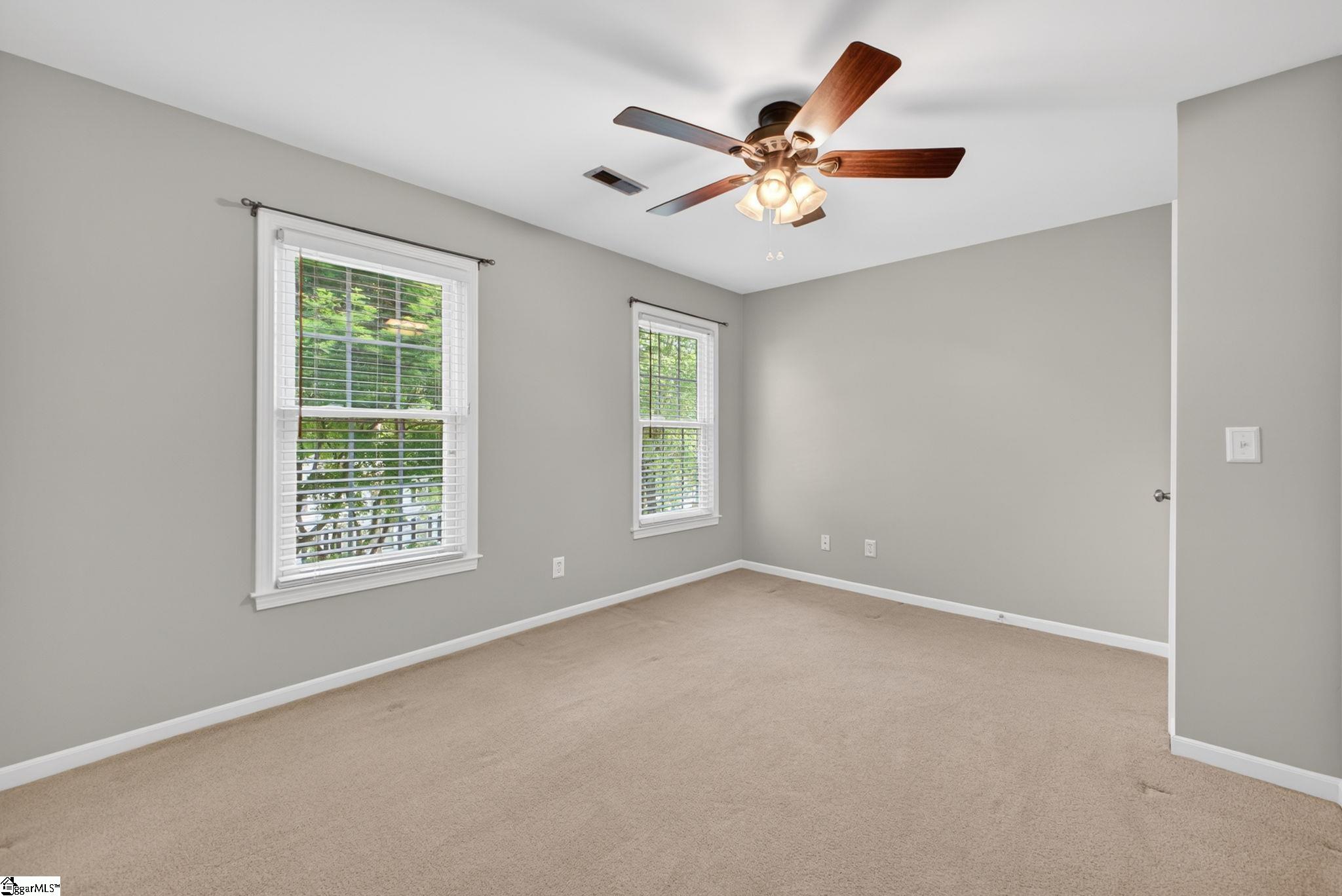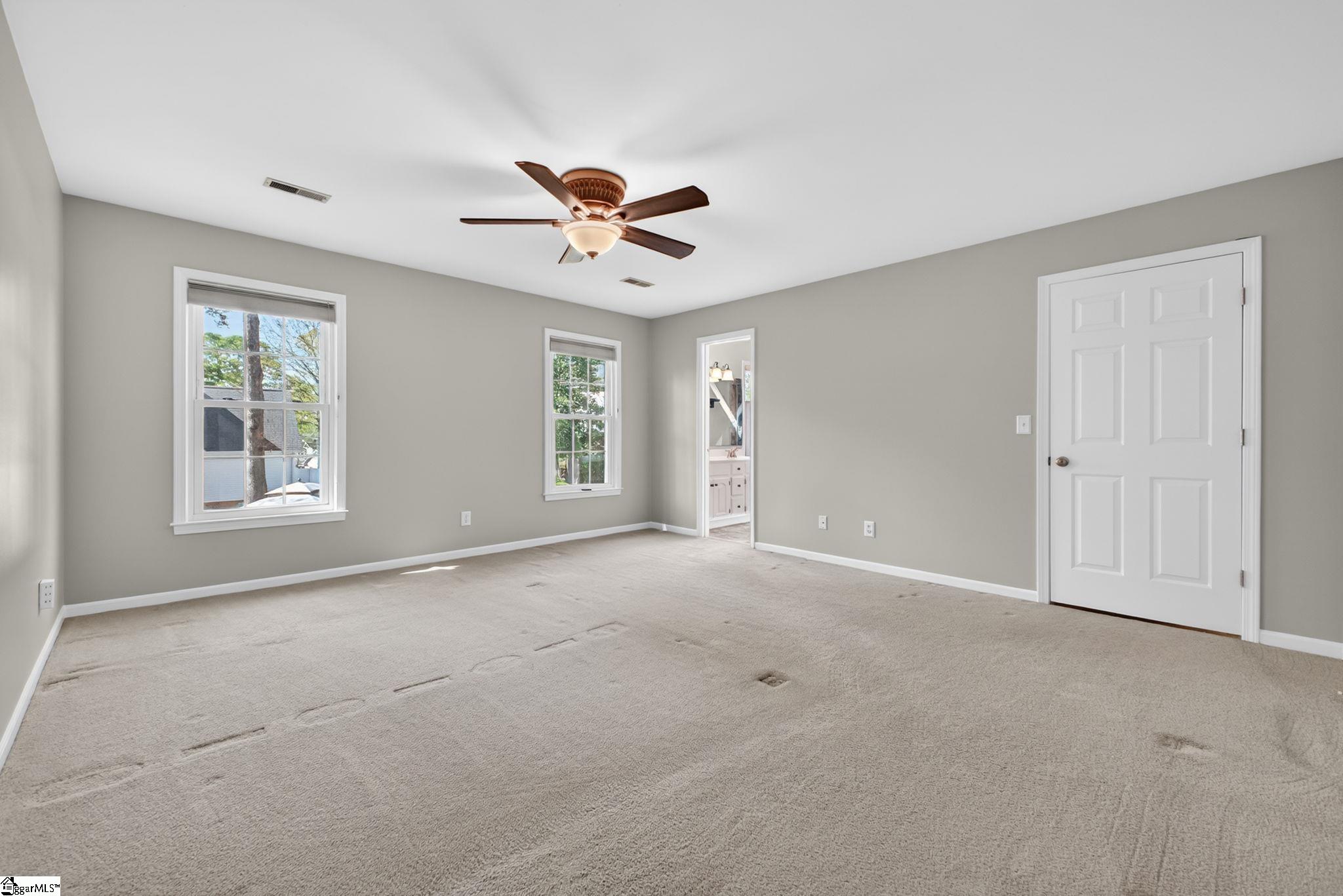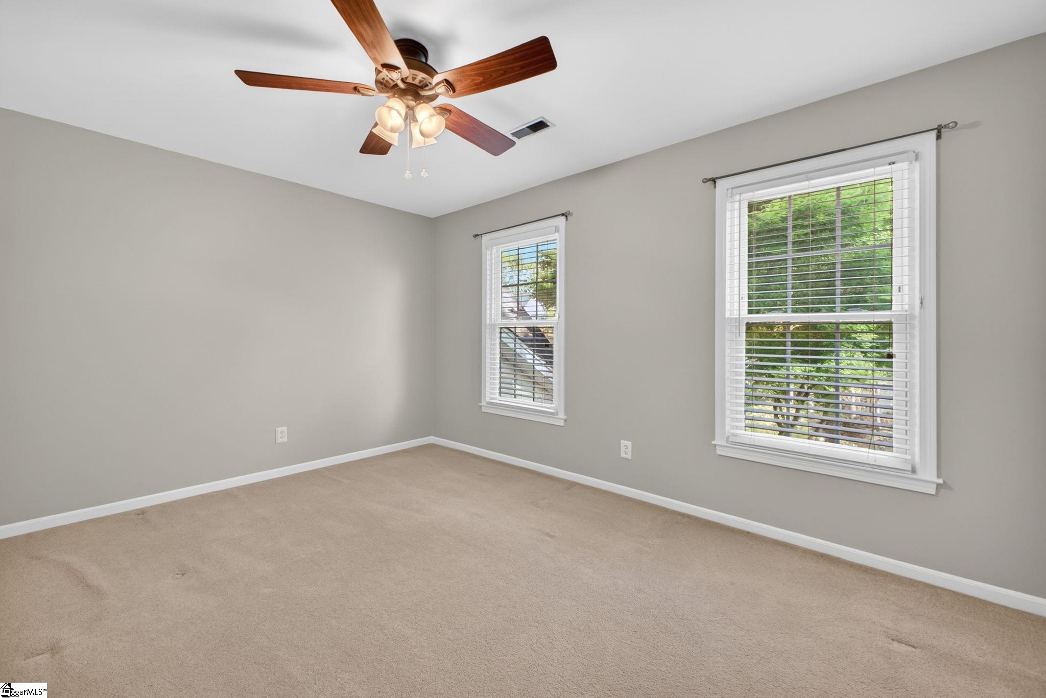 Welcome to your Pelham Falls retreat, offering five bedrooms and two and a half baths with a layout designed for both comfort and flexibility. This spacious home features a formal dining room, a cozy sunken living room, and a bright solarium just off the main living space, along with a dedicated den or office on the main level. The fifth bedroom includes built-in bookshelves and a desk, making it an ideal home office or a perfect space for a studious child. The kitchen is both functional and stylish, featuring custom cabinetry, granite countertops, and a gas range, while gorgeous hardwood floors extend throughout the entire main level, complemented by rich wood trim and beautiful moldings that add warmth and character. The living room is a true focal point with its floor-to-ceiling brick fireplace and skylights that fill the space with natural light, seamlessly flowing into the sunroom for year-round enjoyment. The primary suite offers a peaceful retreat with an updated full bath, walk-in shower, and custom closet shelving, while four additional bedrooms provide the flexibility needed for family, guests, or hobbies. Step outside to a backyard oasis designed for relaxation and entertaining, complete with terraced landscaping, planters, a dedicated hot tub deck, grilling deck, and a multi-level yard that offers endless possibilities, all beautifully overlooked by the sunroom. The home has been freshly painted in 2025 and is truly move-in ready, showcasing superb landscaping and meticulous care throughout. Additional features include a tankless water heater, an epoxy-coated garage floor and front walkway completed in 2024, a convenient garage yard door and leaf guards for easy maintenance. Exquisitely maintained with detailed records of updates, maintenance, and repairs, this home offers peace of mind along with timeless charm. Located in the highly sought-after Pelham Falls community and zoned for Riverside High School, Riverside Middle, and Woodland Elementary, residents enjoy access to exceptional neighborhood amenities including two pools, tennis courts, athletic fields, a playground, clubhouse, and scenic walking trails along the river, offering a lifestyle that is as active as it is relaxing. While the carpet upstairs is not in bad shape, the sellers understand that buyers sometimes prefer to personalize that element and are offering a $5000 carpet allowance. Make your appointment to see this one soon, as it is unlikely to last!