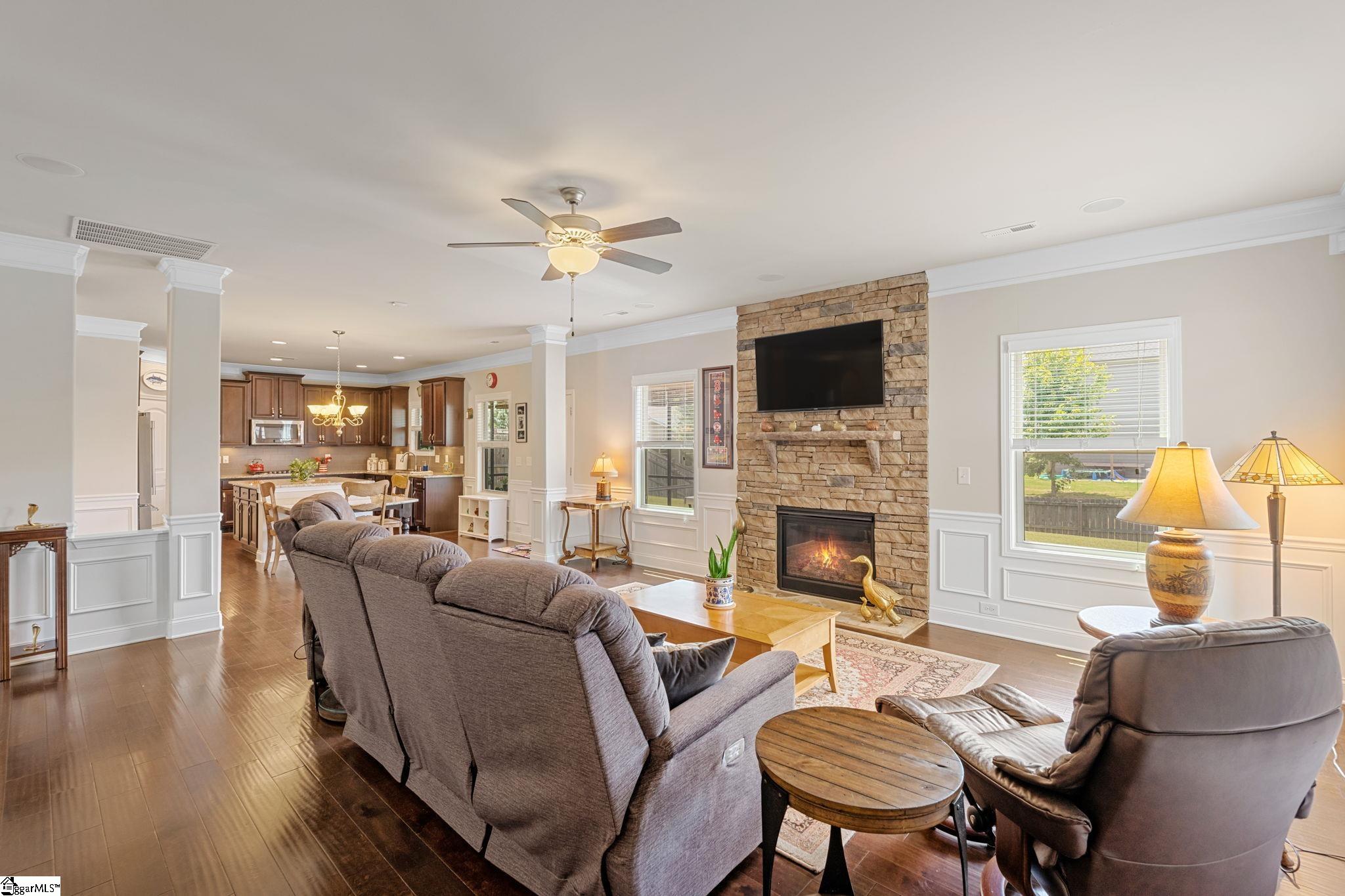 Welcome to 406 Windwood Street in LOST RIVER!! This home offers the perfect balance of space, comfort, and functionality. A bright two-story foyer welcomes you inside, with a flexible front room ideal for an office, playroom, or sitting area. The main living space features a stone gas-log fireplace and flows seamlessly into the kitchen, complete with granite countertops, stainless steel appliances, double wall ovens, gas cooktop, and a tiered island for prep and seating. The formal dining room showcases a tray ceiling, wainscoting, and a butler’s pantry for added storage and serving space. Upstairs, the primary suite includes a sitting area, large walk-in closet plus an additional closet, and an en-suite bath with soaking tub and separate shower. Three additional bedrooms provide flexibility for guests or work-from-home needs. Enjoy outdoor living on the screened porch and extended patio—perfect for relaxing or entertaining. Conveniently located just minutes from shopping, dining, and entertainment in Simpsonville.