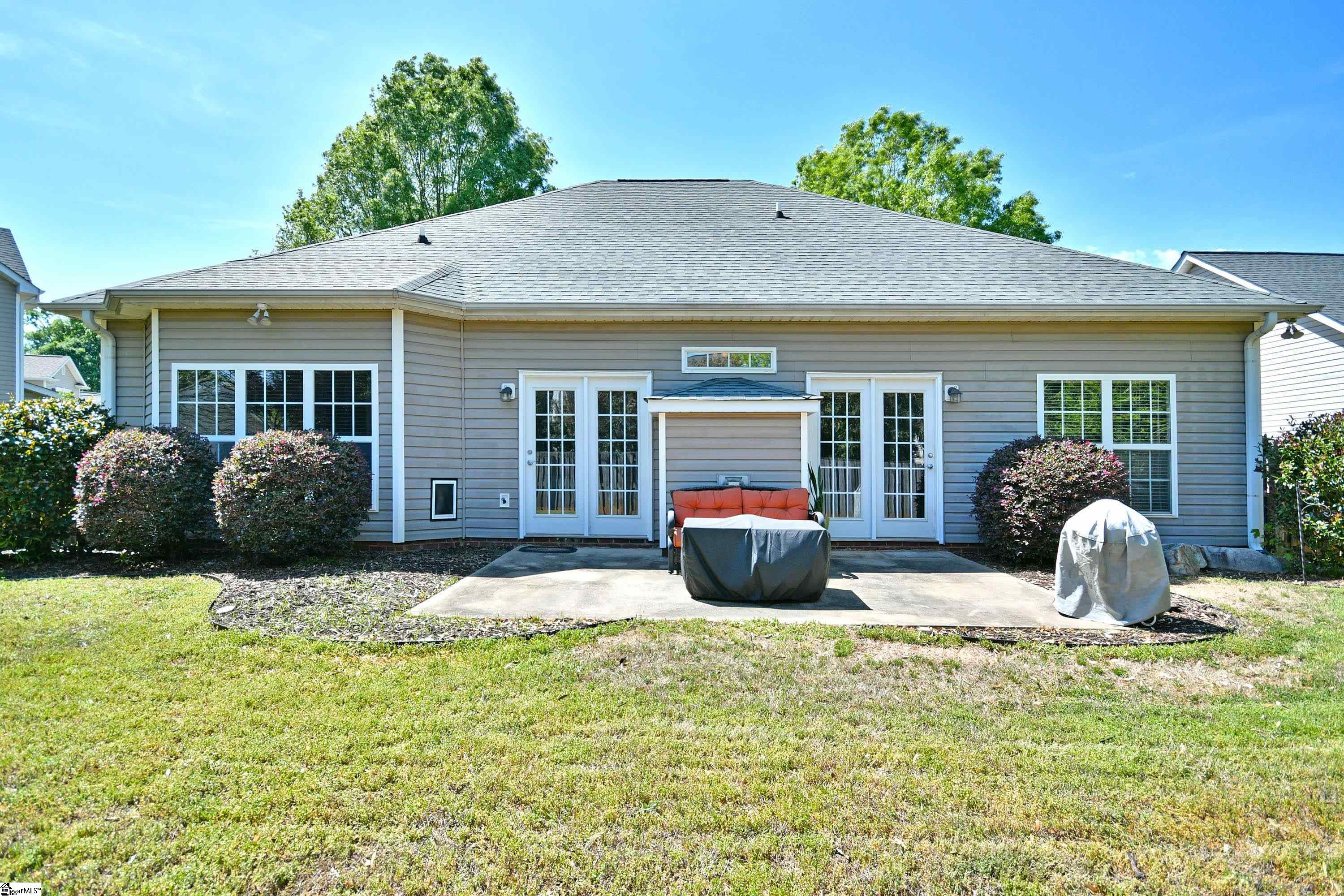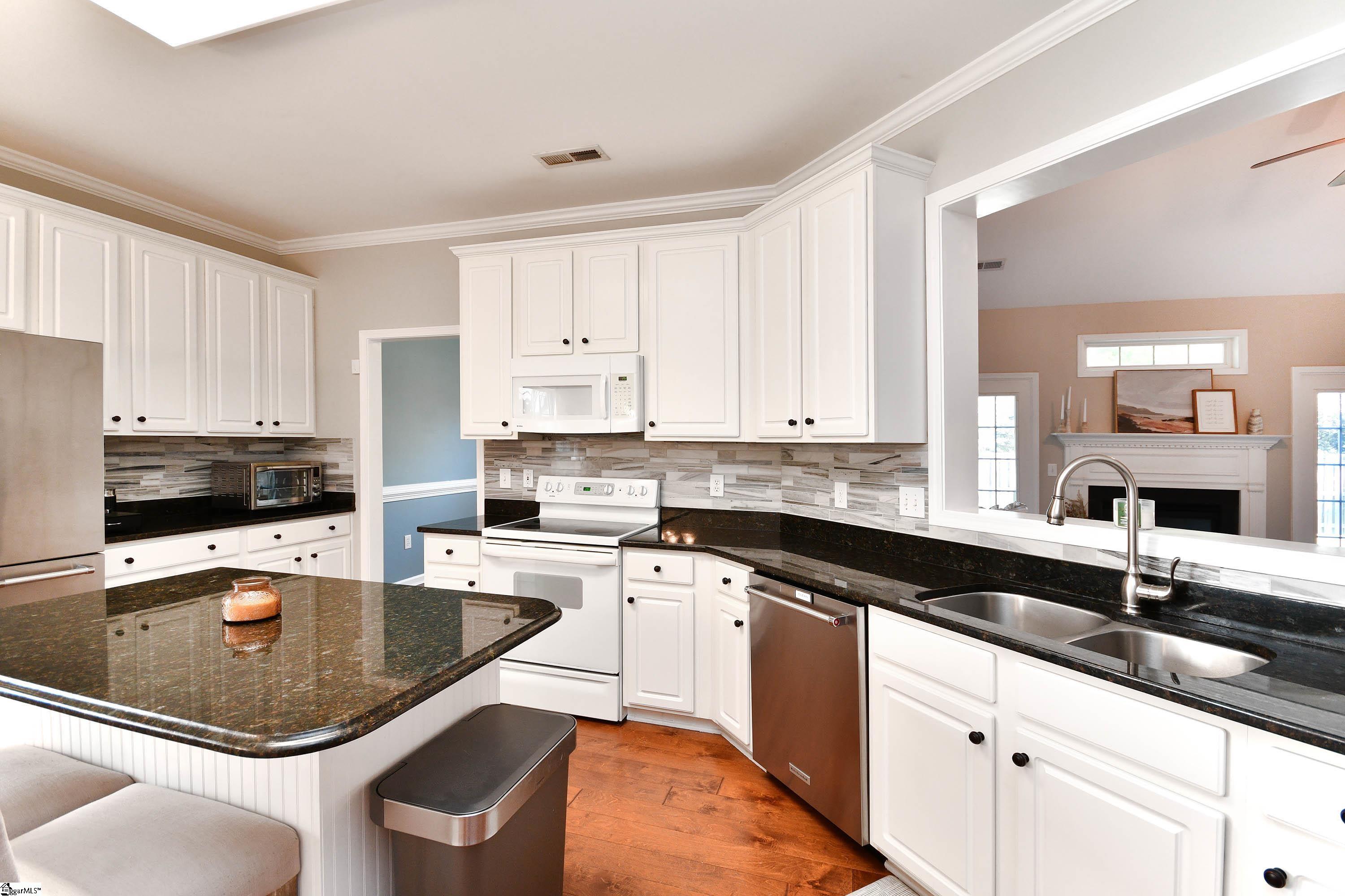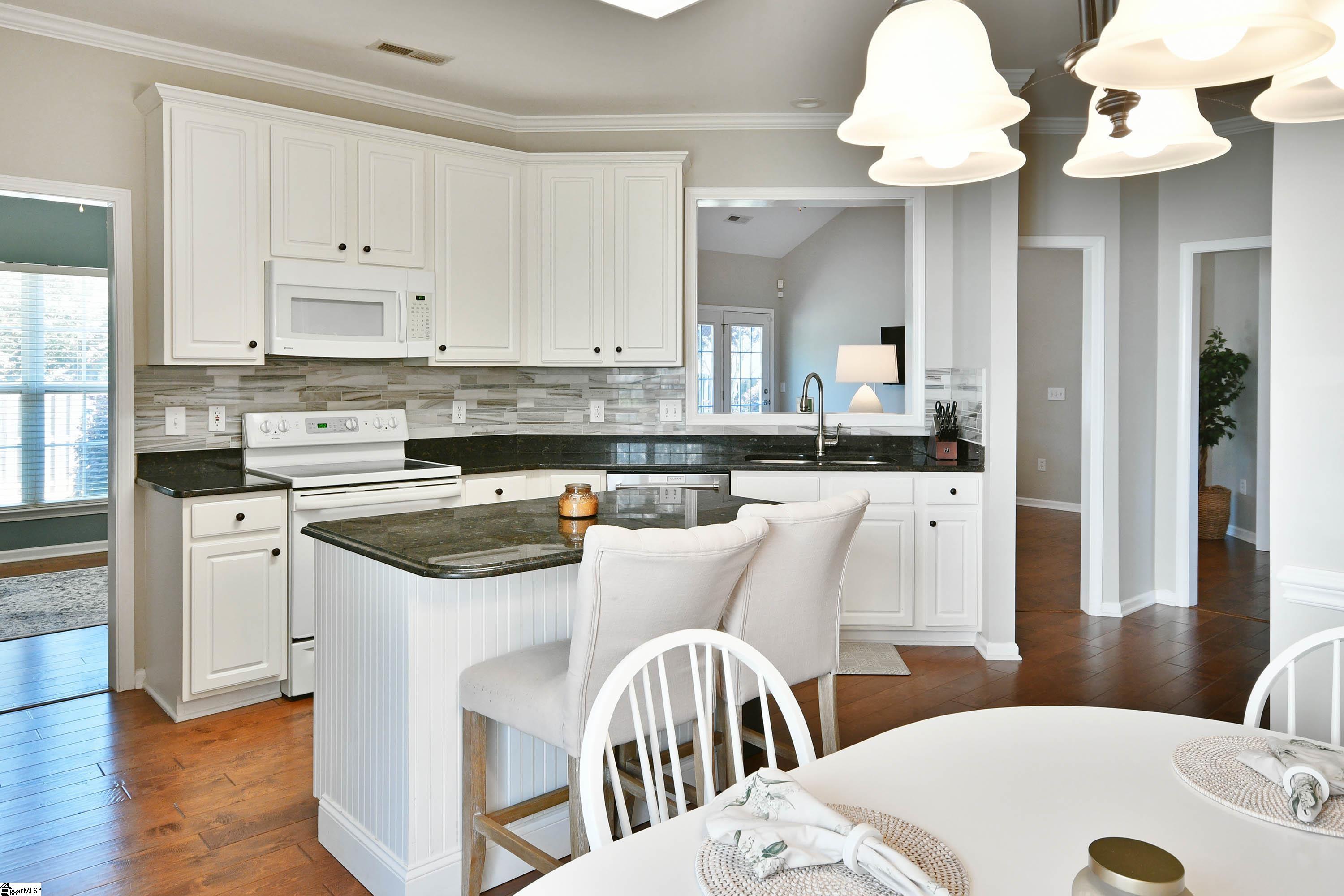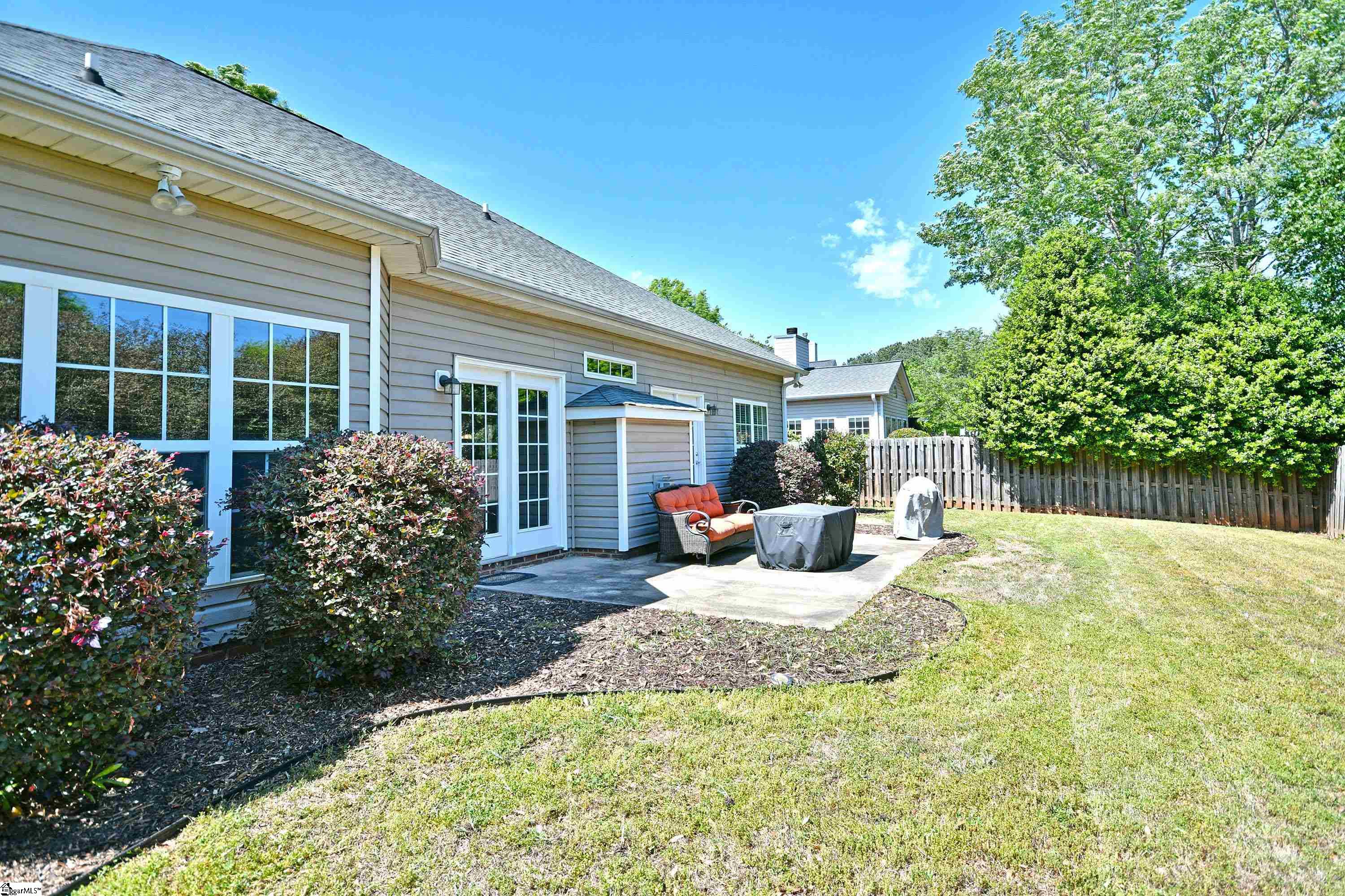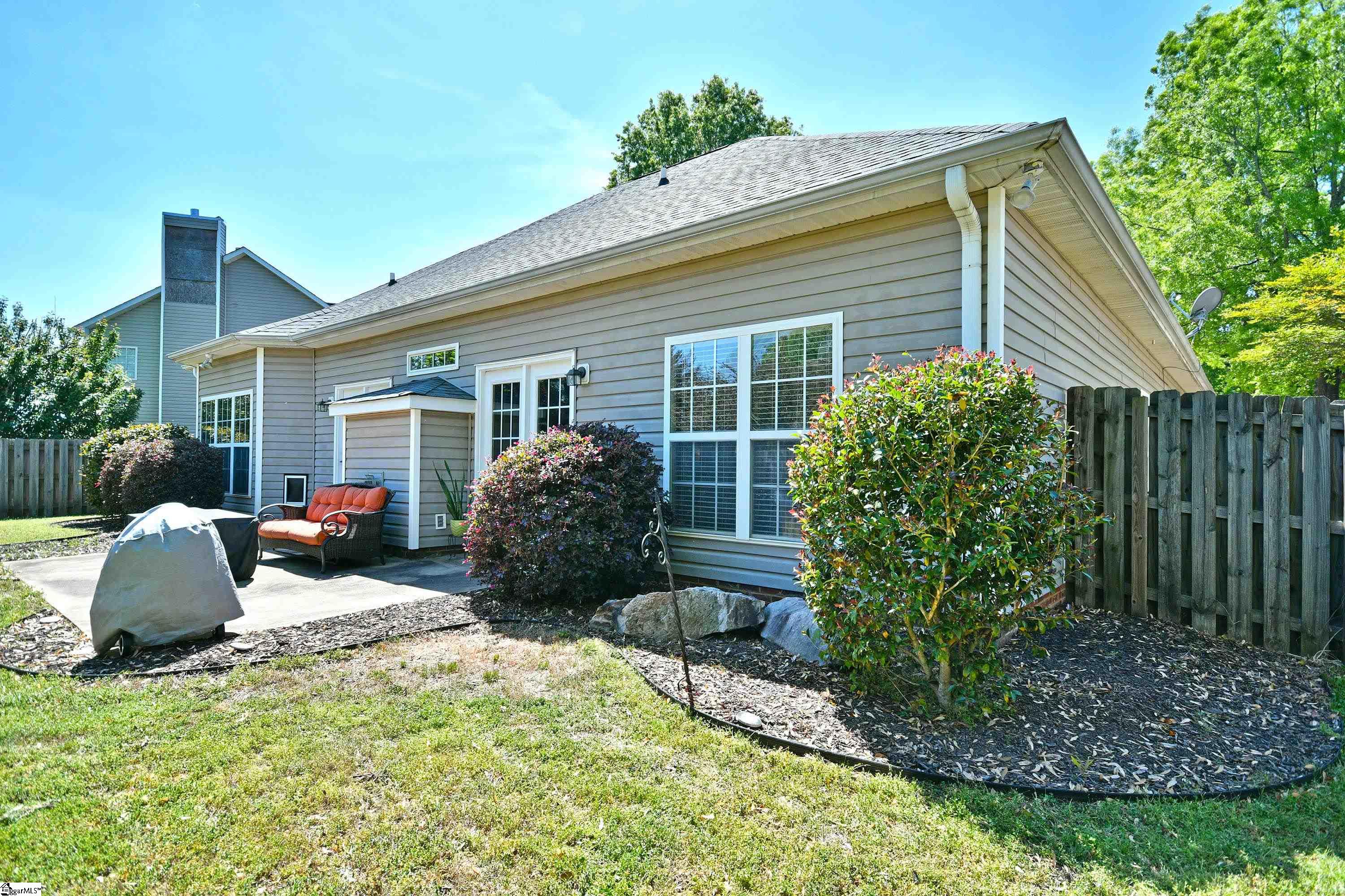 Welcome to 411 Cotton Hall Court, ideally situated on a quiet cul-de-sac in the wonderful Morning Mist neighborhood. Thoughtfully designed for comfortable single-level living, this beautifully maintained 3-bedroom, 2.5-bath home offers an inviting layout that effortlessly supports both everyday life and entertaining. Mature landscaping surrounds the home, while a fenced backyard and oversized patio provide a lovely setting for outdoor gatherings, playtime, or peaceful relaxation. Inside, 10 foot ceilings and abundant natural light create an open, airy feel throughout. The eat-in kitchen is both stylish and functional, featuring granite countertops, generous cabinet space, and a large island with plenty of room for meal prep, casual dining, or spending tune together. Just off the kitchen, the dining room is nicely separated from the main living rea, offering flexibility to serve as a formal dining space, home office, hobby room, or play area. The spacious great room is anchored by a gas fireplace and opens beautifully to the backyard through two atrium doors, making movie nights, celebrations, and easy indoor outdoor living a delight. The primary bedroom is a peaceful retreat with a large ensuite bath designed for comfort and privacy. Two well-sized bedrooms at the front of the home share a Jack and Jill bath, providing a thoughtful arrangement for family members, guests, or visiting loved ones. A two car garage and extended driveway offer ample parking and storage. Just steps from the neighborhood pool and playground, enjoy a vibrant community with Food Trucks and other seasonal entertainment. Minutes from Fairview Road’s shopping and dining, with quick access to I-385 and proximity to top rated schools, this home offers a wonderful balance of convenience, community, and low maintenance living. Come see what makes 411 Cotton Hall Court so special!
