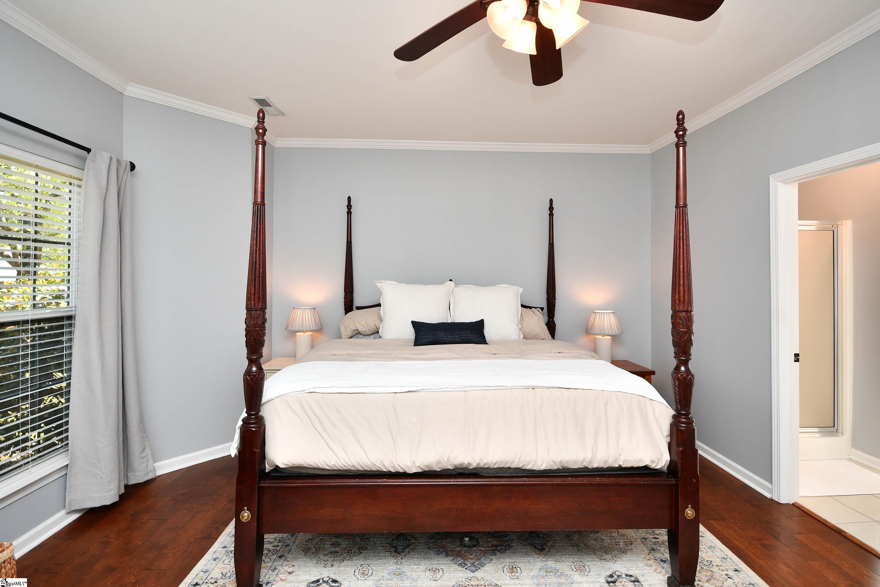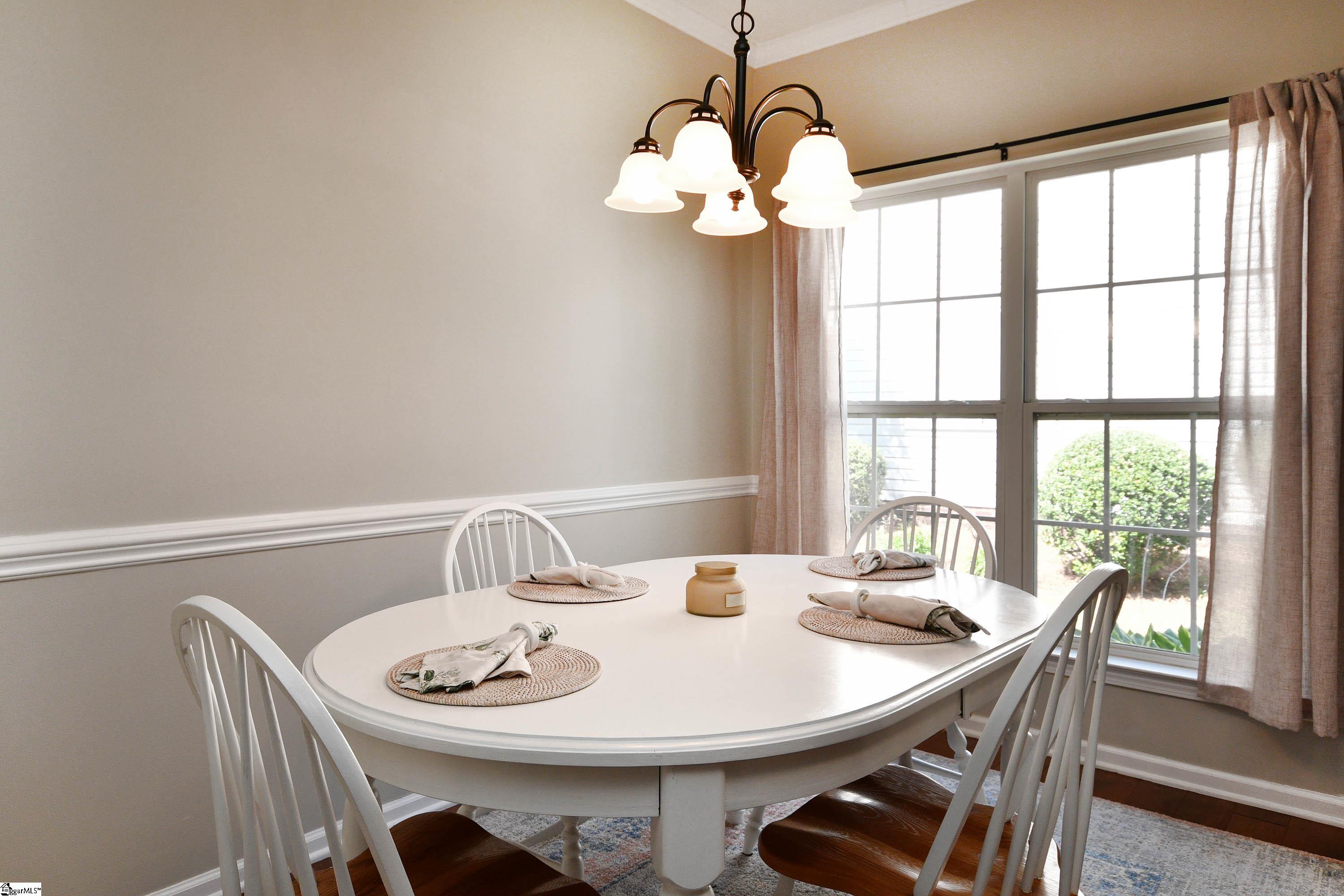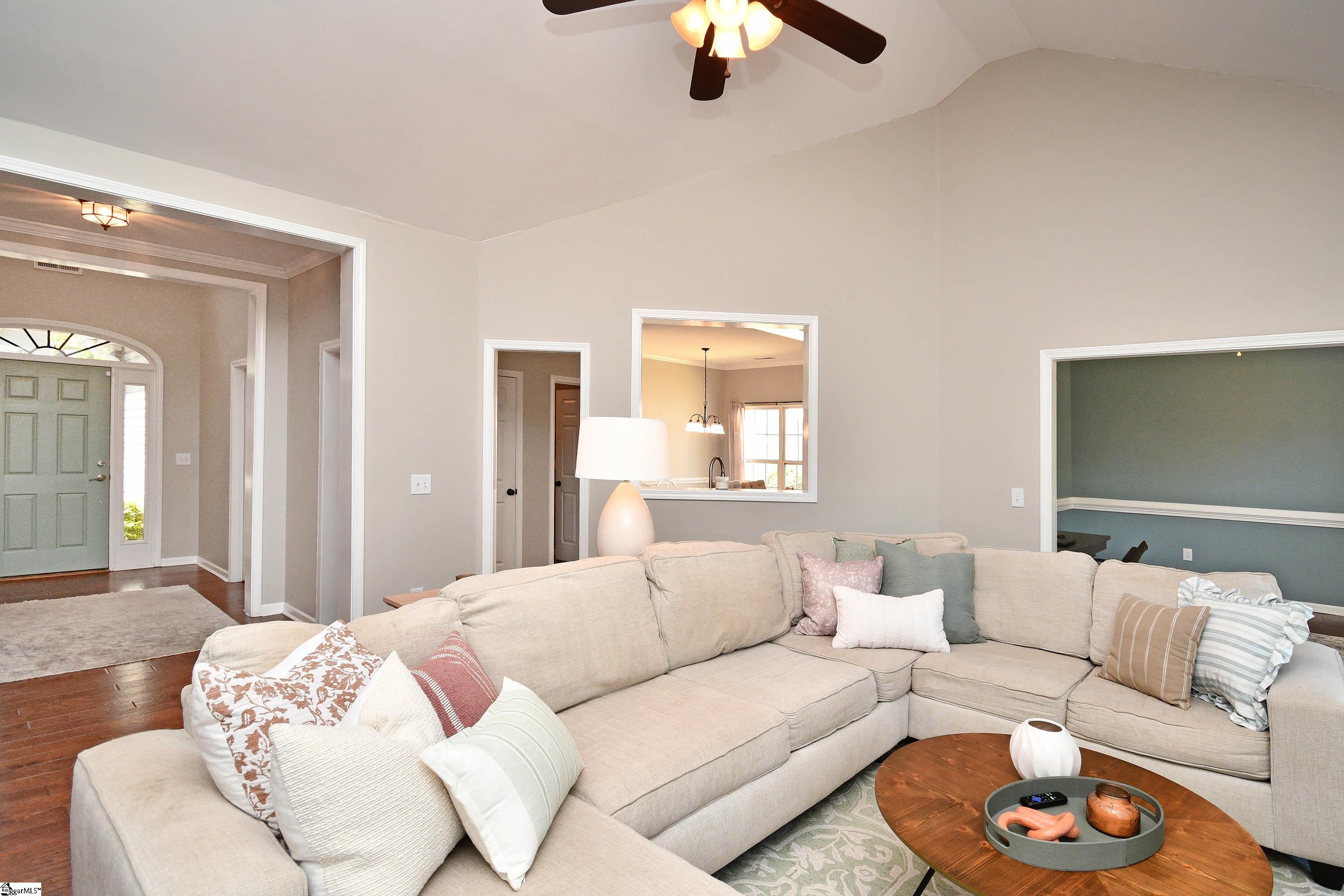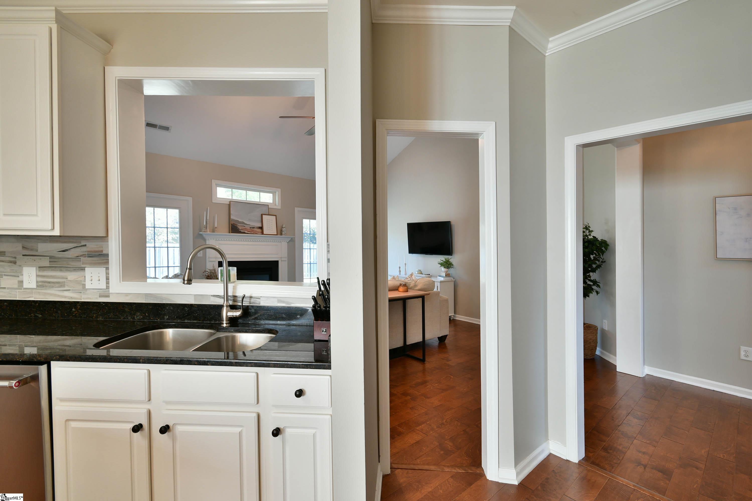 Welcome to 411 Cotton Hall Court, ideally situated on a quiet cul-de-sac in the wonderful Morning Mist neighborhood. Thoughtfully designed for comfortable single-level living, this beautifully maintained 3-bedroom, 2.5-bath home offers an inviting layout that effortlessly supports both everyday life and entertaining. Mature landscaping surrounds the home, while a fenced backyard and oversized patio provide a lovely setting for outdoor gatherings, playtime, or peaceful relaxation. Inside, 10 foot ceilings and abundant natural light create an open, airy feel throughout. The eat-in kitchen is both stylish and functional, featuring granite countertops, generous cabinet space, and a large island with plenty of room for meal prep, casual dining, or spending tune together. Just off the kitchen, the dining room is nicely separated from the main living rea, offering flexibility to serve as a formal dining space, home office, hobby room, or play area. The spacious great room is anchored by a gas fireplace and opens beautifully to the backyard through two atrium doors, making movie nights, celebrations, and easy indoor outdoor living a delight. The primary bedroom is a peaceful retreat with a large ensuite bath designed for comfort and privacy. Two well-sized bedrooms at the front of the home share a Jack and Jill bath, providing a thoughtful arrangement for family members, guests, or visiting loved ones. A two car garage and extended driveway offer ample parking and storage. Just steps from the neighborhood pool and playground, enjoy a vibrant community with Food Trucks and other seasonal entertainment. Minutes from Fairview Road’s shopping and dining, with quick access to I-385 and proximity to top rated schools, this home offers a wonderful balance of convenience, community, and low maintenance living. Come see what makes 411 Cotton Hall Court so special!