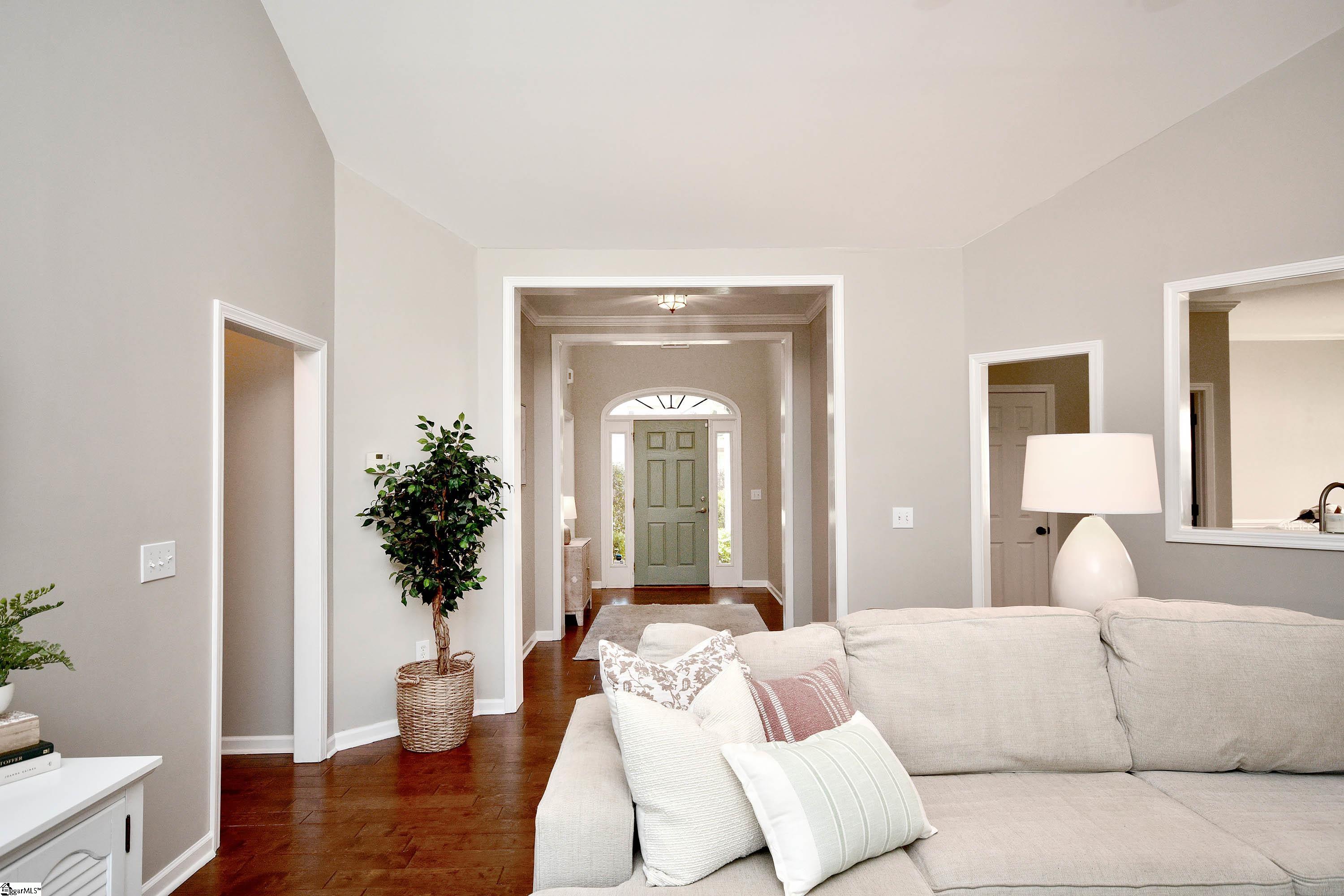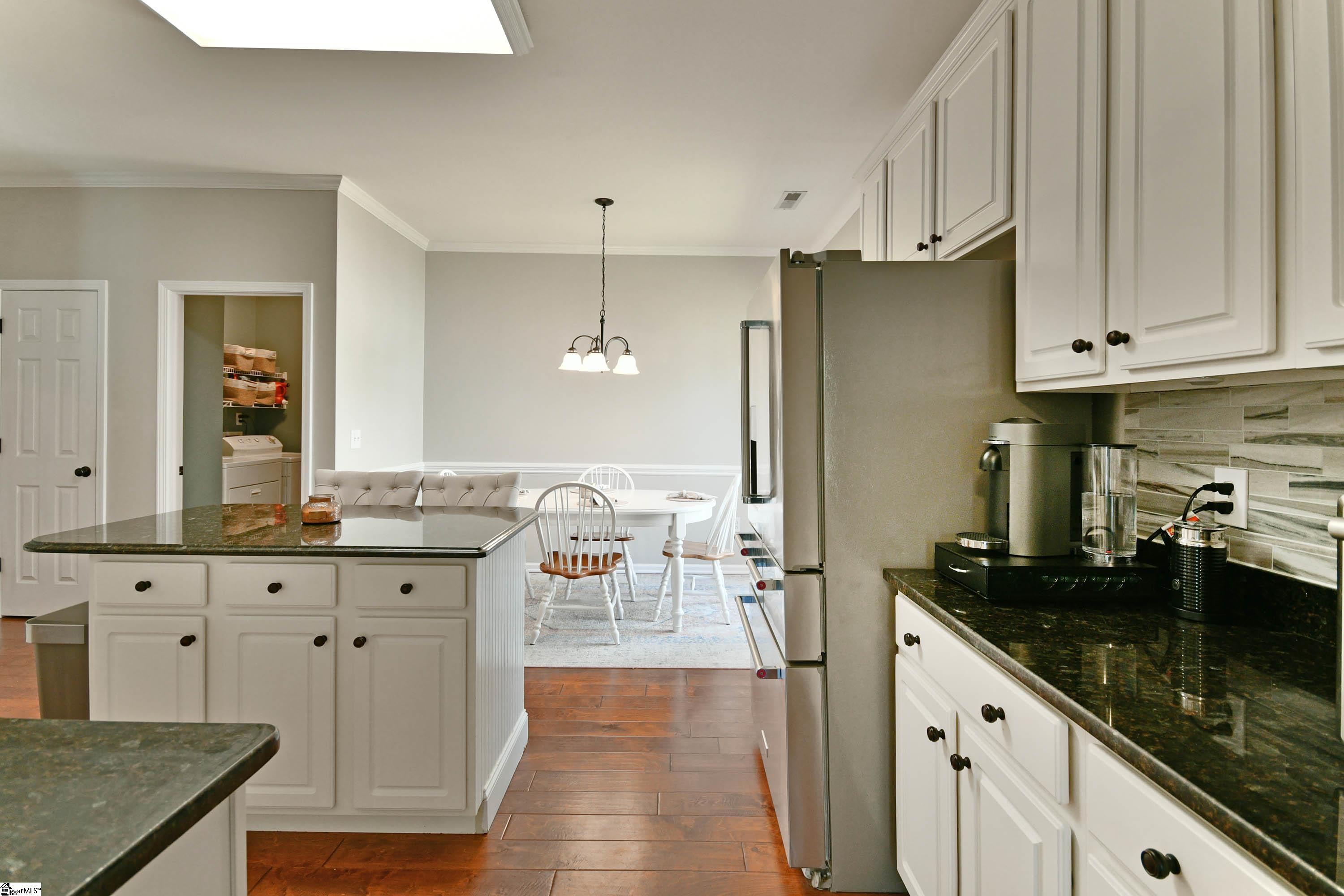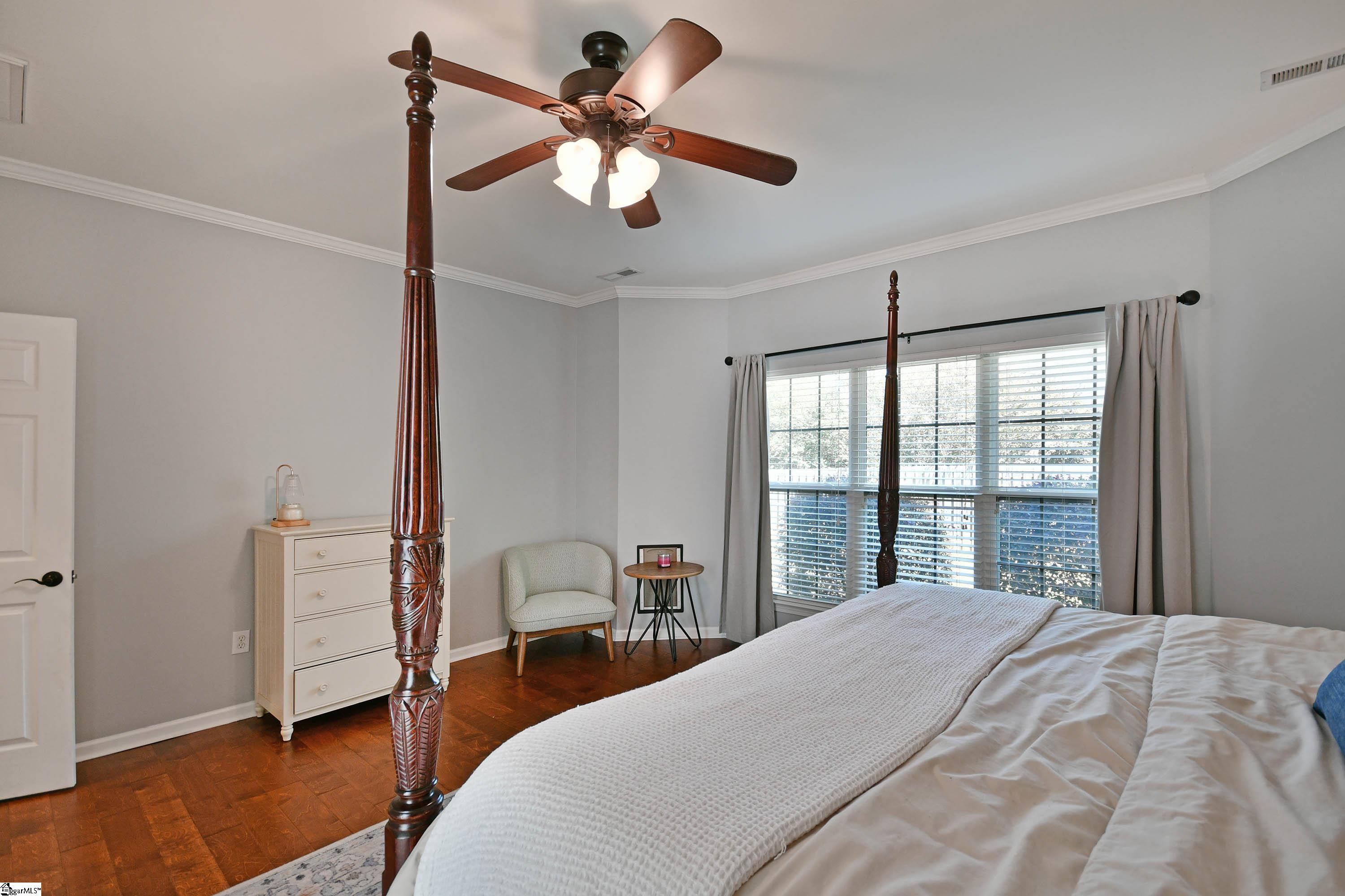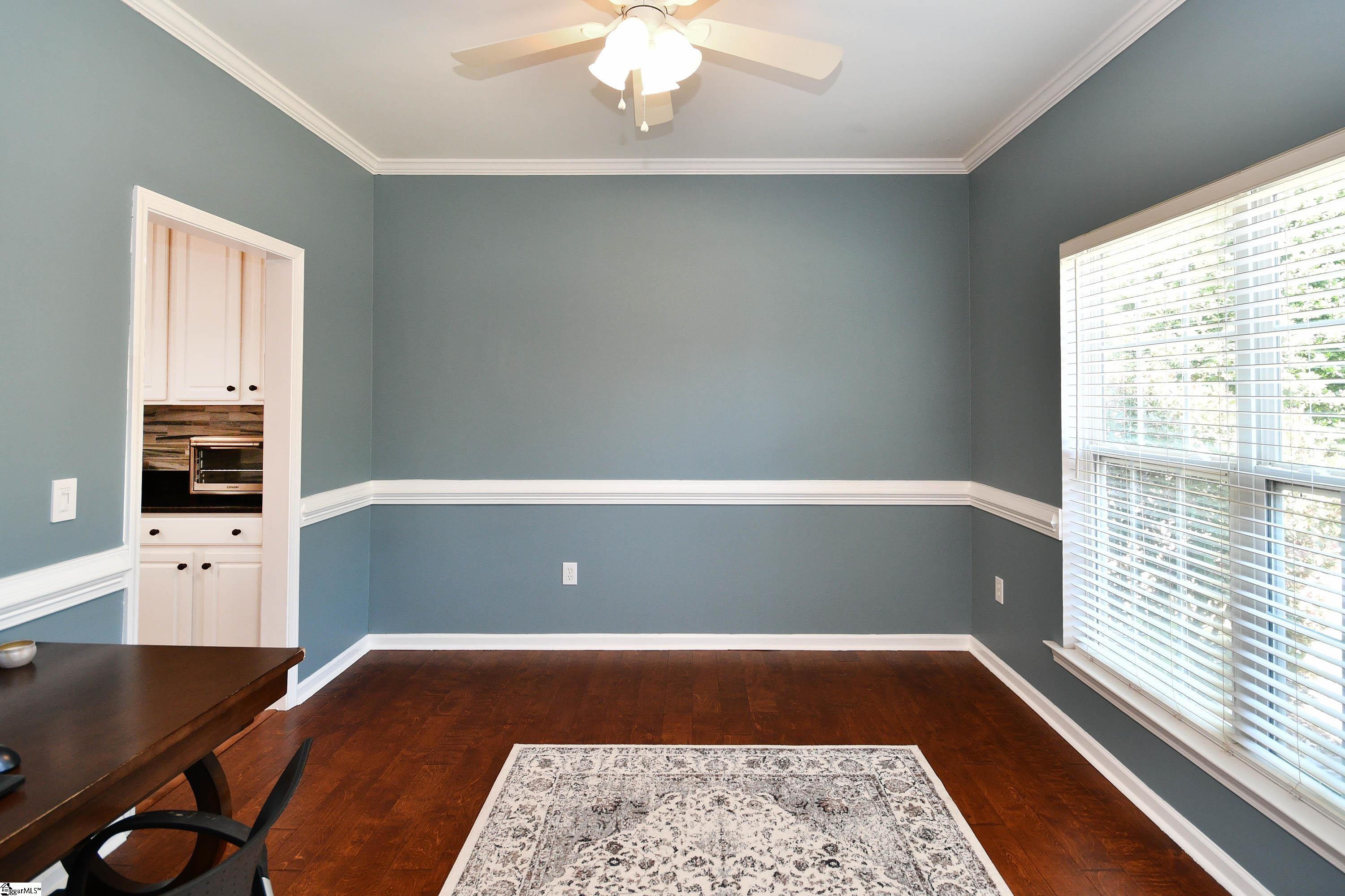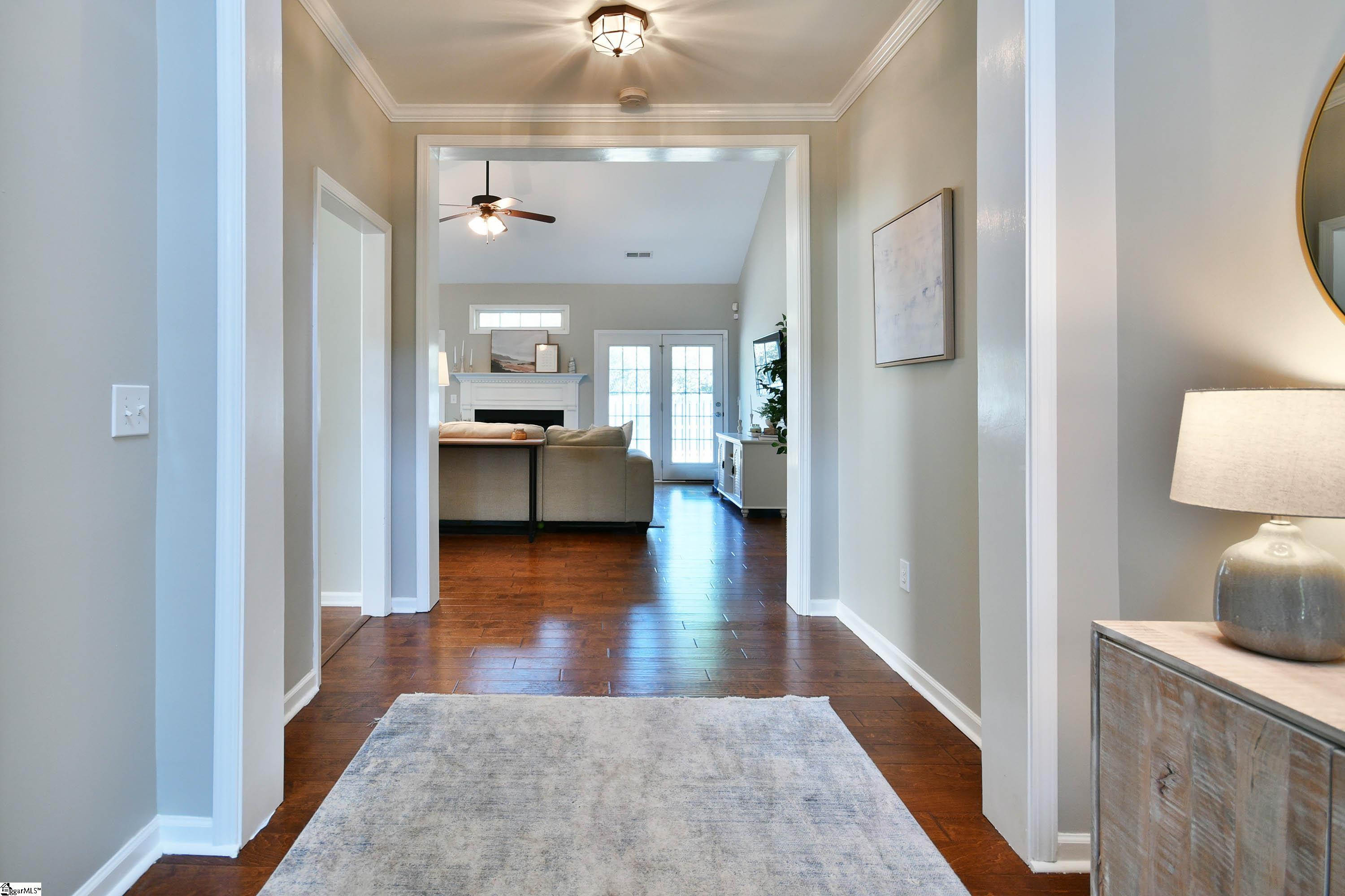 Welcome to 411 Cotton Hall Court, ideally situated on a quiet cul-de-sac in the wonderful Morning Mist neighborhood. Thoughtfully designed for comfortable single-level living, this beautifully maintained 3-bedroom, 2.5-bath home offers an inviting layout that effortlessly supports both everyday life and entertaining. Mature landscaping surrounds the home, while a fenced backyard and oversized patio provide a lovely setting for outdoor gatherings, playtime, or peaceful relaxation. Inside, 10 foot ceilings and abundant natural light create an open, airy feel throughout. The eat-in kitchen is both stylish and functional, featuring granite countertops, generous cabinet space, and a large island with plenty of room for meal prep, casual dining, or spending tune together. Just off the kitchen, the dining room is nicely separated from the main living rea, offering flexibility to serve as a formal dining space, home office, hobby room, or play area. The spacious great room is anchored by a gas fireplace and opens beautifully to the backyard through two atrium doors, making movie nights, celebrations, and easy indoor outdoor living a delight. The primary bedroom is a peaceful retreat with a large ensuite bath designed for comfort and privacy. Two well-sized bedrooms at the front of the home share a Jack and Jill bath, providing a thoughtful arrangement for family members, guests, or visiting loved ones. A two car garage and extended driveway offer ample parking and storage. Just steps from the neighborhood pool and playground, enjoy a vibrant community with Food Trucks and other seasonal entertainment. Minutes from Fairview Road’s shopping and dining, with quick access to I-385 and proximity to top rated schools, this home offers a wonderful balance of convenience, community, and low maintenance living. Come see what makes 411 Cotton Hall Court so special!