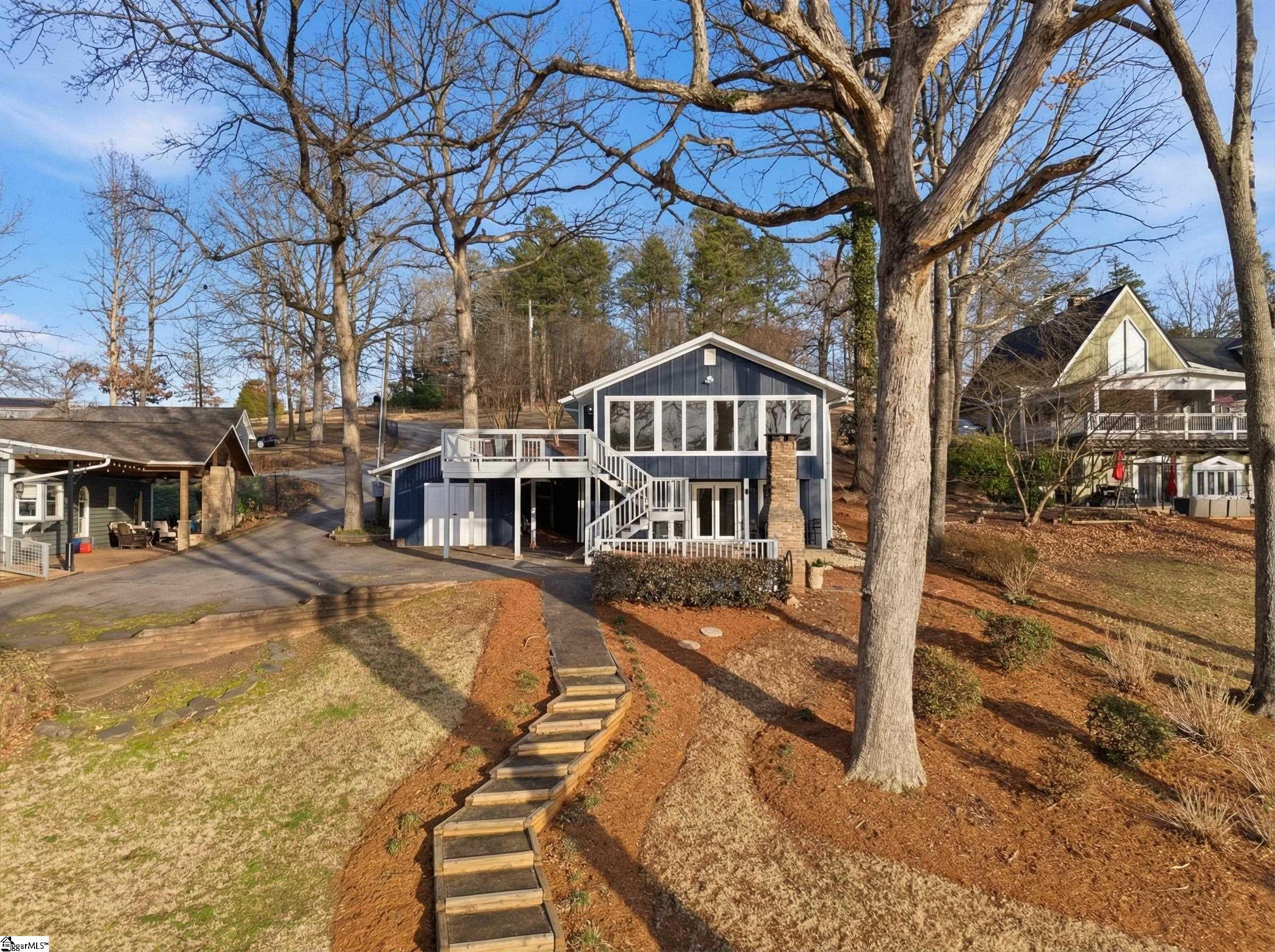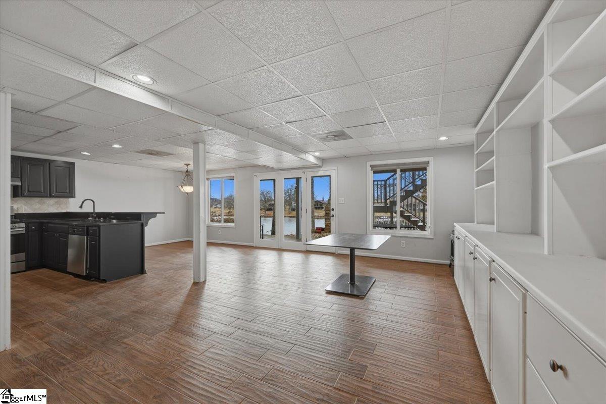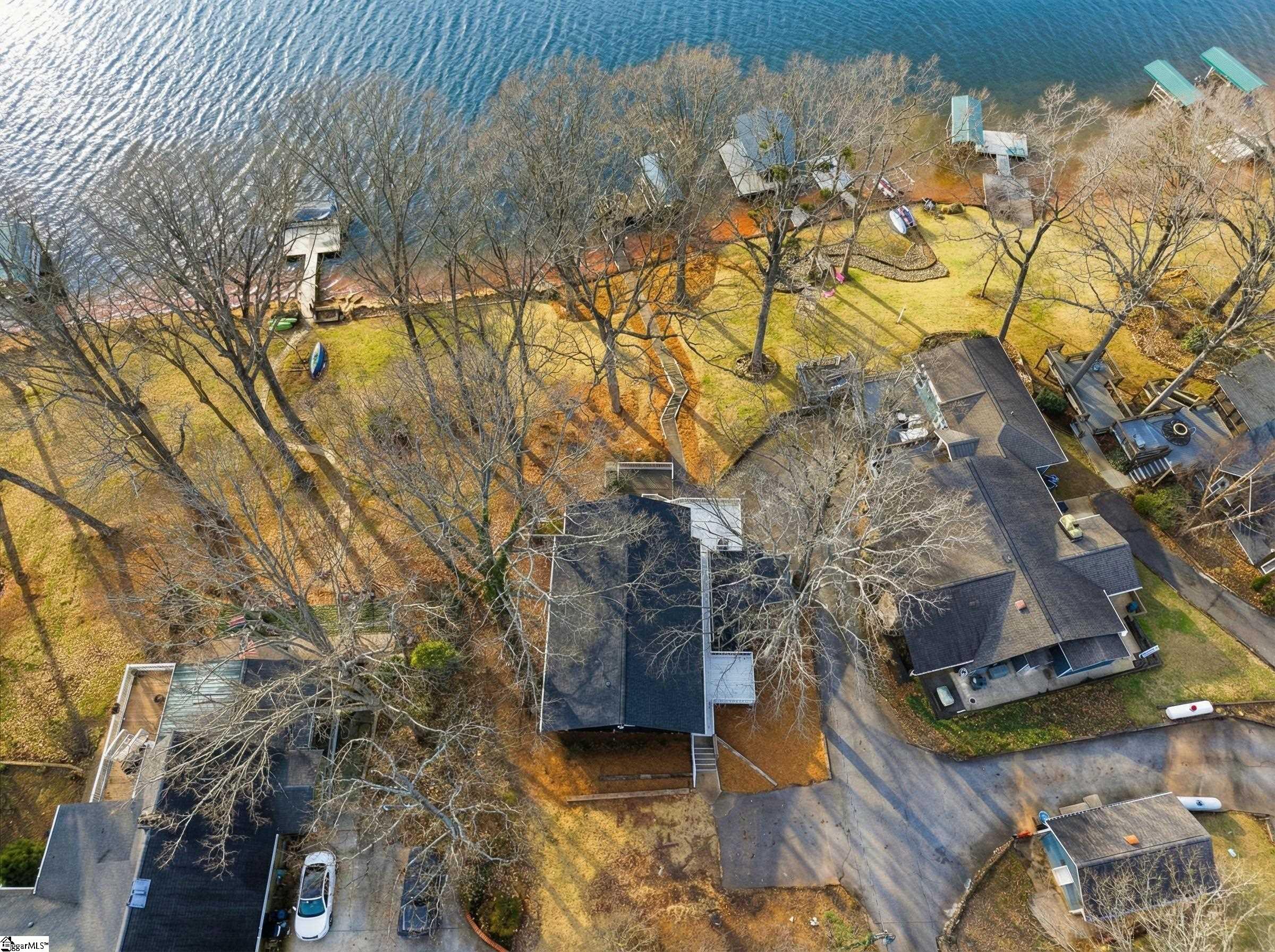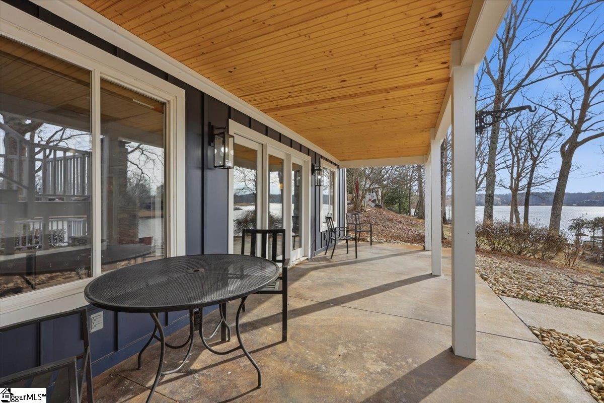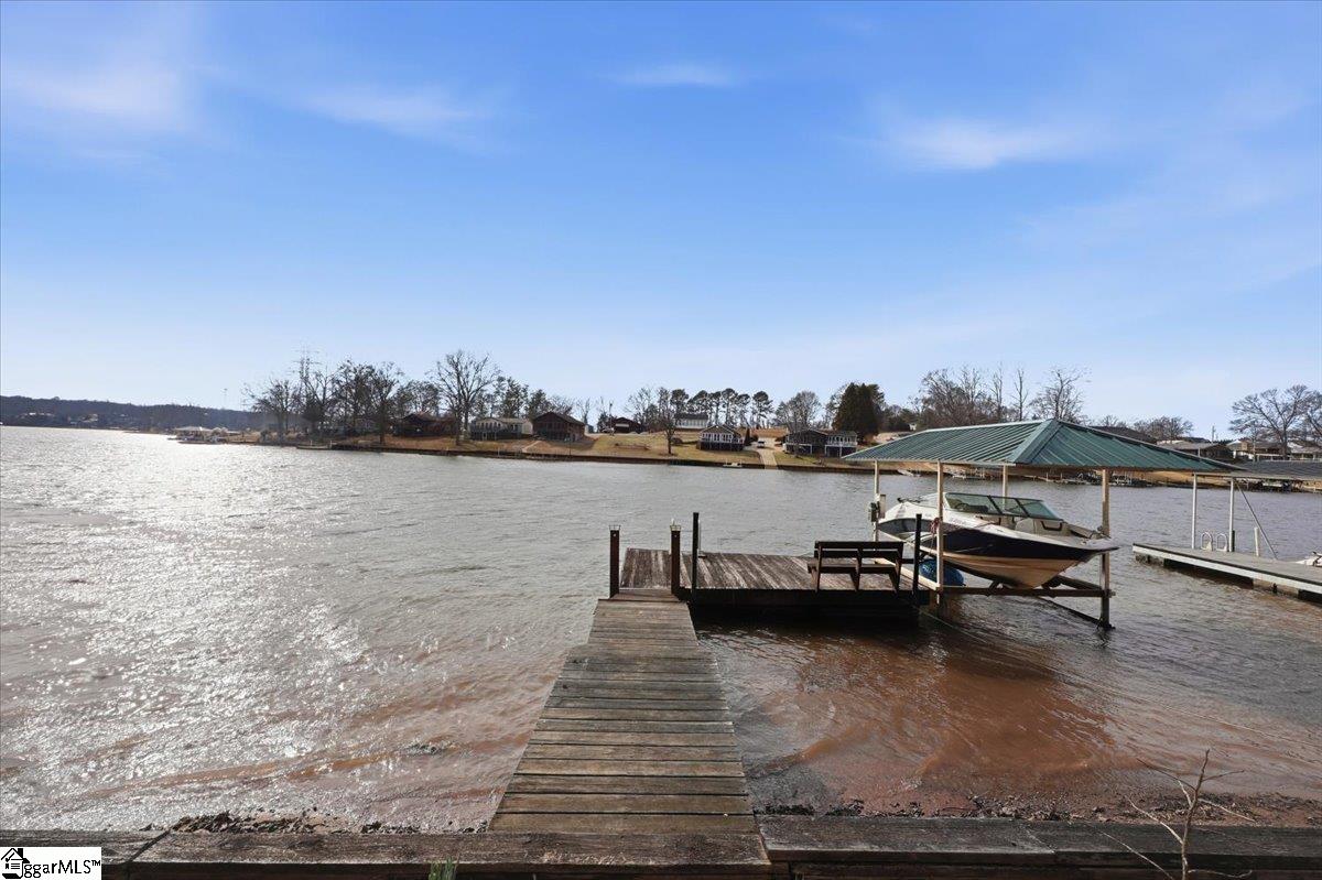 Welcome 412 Rockcove Road, lakeside living at its finest on beautiful Lake Bowen in Doctor’s Cove. This serene waterfront retreat is ideal as a full-time residence or a peaceful vacation escape, with no HOA restrictions and convenient access to I-26, I-85, shopping, dining, and medical facilities. Nestled among mature trees, features a gentle walkway leading to the lake and private boat dock and boat lift, creating an inviting connection to the outdoors. Inside, the main level showcases an open floor plan highlighted by a wall of windows framing spectacular water views. The living area flows seamlessly into the kitchen and is anchored by a cozy gas log fireplace—perfect for cool evenings. The primary suite is located on the main level, along with an additional bedroom, full bath, and laundry area. Step out from the great room onto a spacious deck overlooking the lake, ideal for morning coffee or evening sunsets. The lower level functions as a second living quarters, complete with a bedroom, full kitchen, laundry hookup, and a private covered patio with tranquil lake views—perfect for guests, investment opportunity or multi-generational living. Outdoor living truly shines with a charming fireplace and seating area, creating the perfect setting for relaxing, cookouts, and entertaining. The neighborhood provides a private boat launch for only residents of Rockcove Road. This special property is designed for making lasting memories on the water and enjoying peaceful lakeside living year-round. Upgrades include: new well 2019; waterproofing basement 2022; new roof 2023; French Drain system 2025, new siding 2025; painted exterior 2025, landscaping & new boat lift to provide a turn key home built to last for generations to come. Schedule your private showing today and experience everything 412 Rockcove Road and Lake Bowen living has to share.