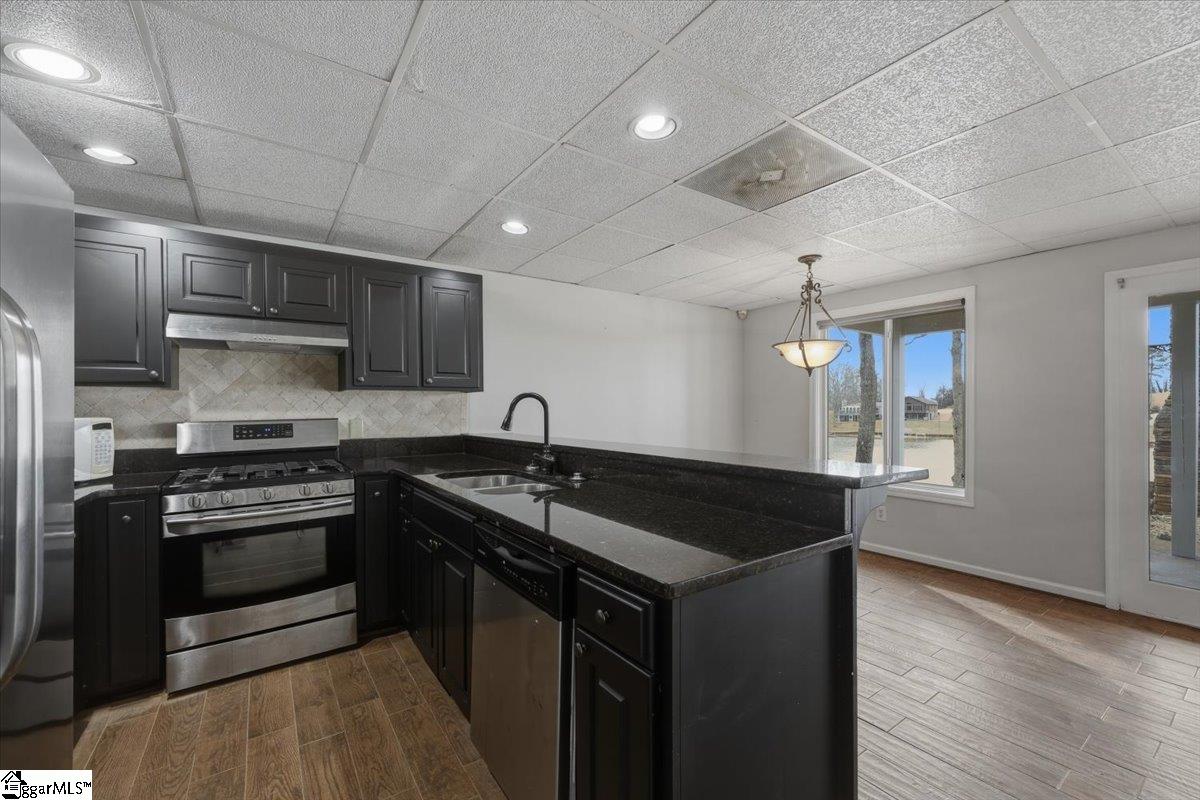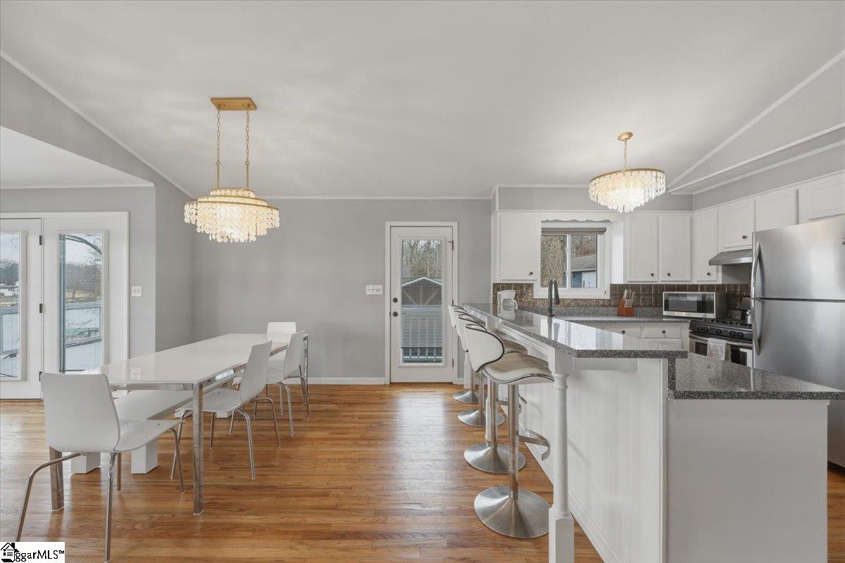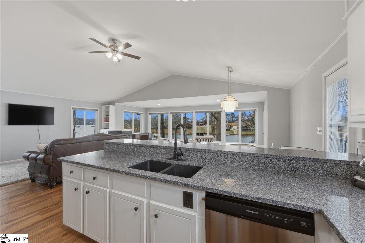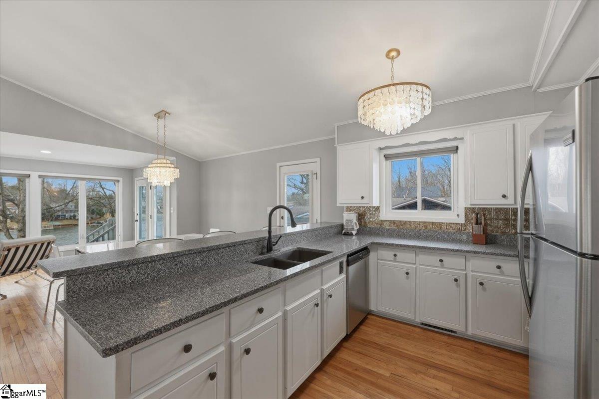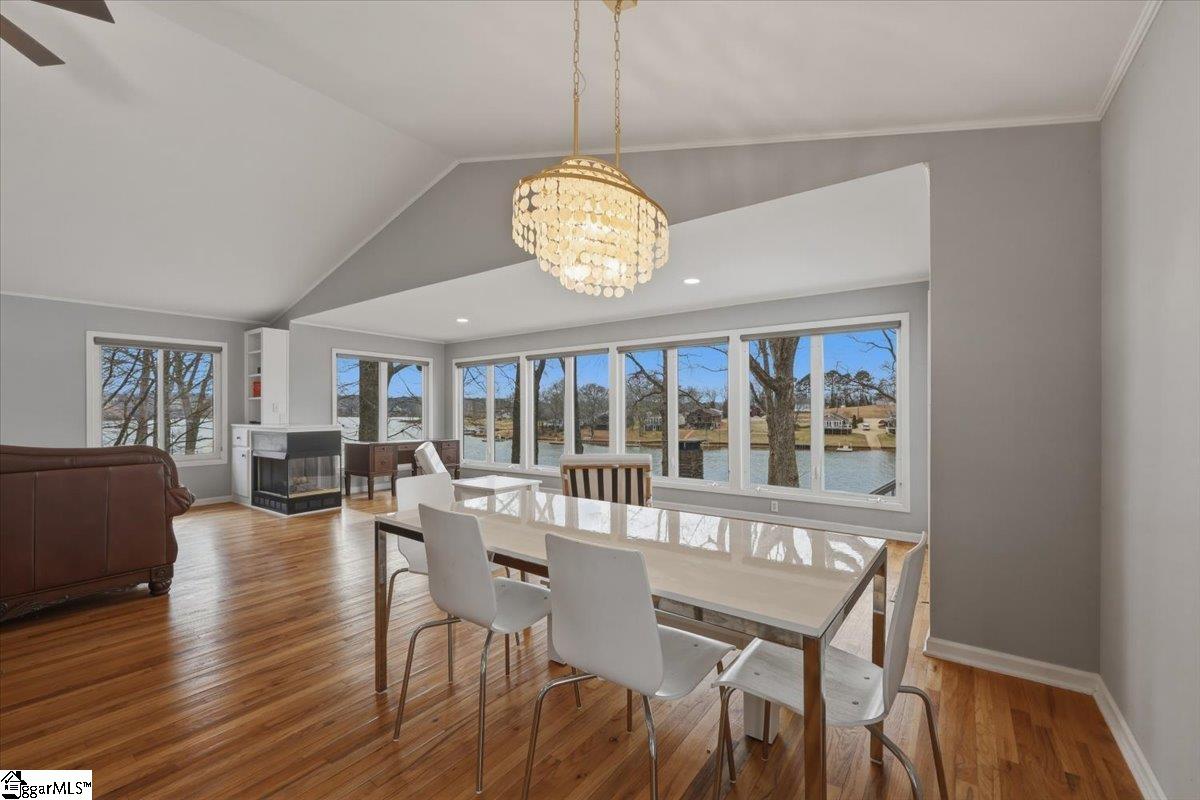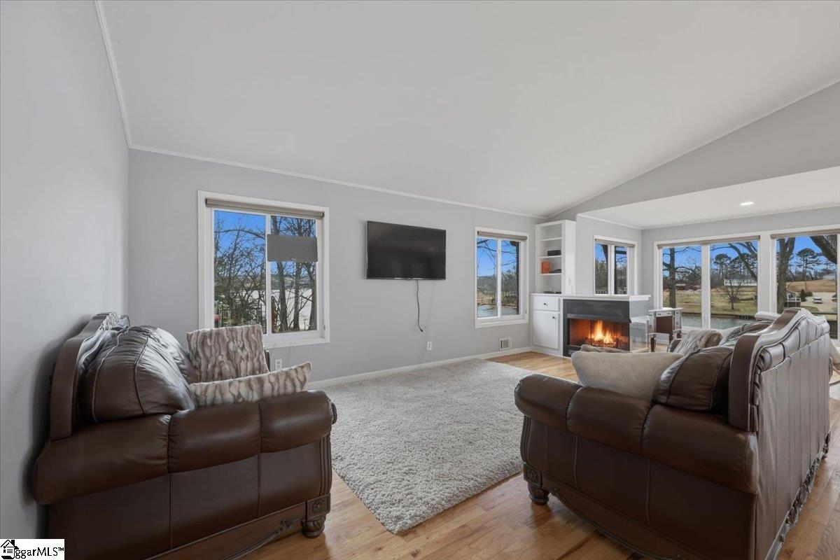 Welcome 412 Rockcove Road, lakeside living at its finest on beautiful Lake Bowen in Doctor’s Cove. This serene waterfront retreat is ideal as a full-time residence or a peaceful vacation escape, with no HOA restrictions and convenient access to I-26, I-85, shopping, dining, and medical facilities. Nestled among mature trees, features a gentle walkway leading to the lake and private boat dock and boat lift, creating an inviting connection to the outdoors. Inside, the main level showcases an open floor plan highlighted by a wall of windows framing spectacular water views. The living area flows seamlessly into the kitchen and is anchored by a cozy gas log fireplace—perfect for cool evenings. The primary suite is located on the main level, along with an additional bedroom, full bath, and laundry area. Step out from the great room onto a spacious deck overlooking the lake, ideal for morning coffee or evening sunsets. The lower level functions as a second living quarters, complete with a bedroom, full kitchen, laundry hookup, and a private covered patio with tranquil lake views—perfect for guests, investment opportunity or multi-generational living. Outdoor living truly shines with a charming fireplace and seating area, creating the perfect setting for relaxing, cookouts, and entertaining. The neighborhood provides a private boat launch for only residents of Rockcove Road. This special property is designed for making lasting memories on the water and enjoying peaceful lakeside living year-round. Upgrades include: new well 2019; waterproofing basement 2022; new roof 2023; French Drain system 2025, new siding 2025; painted exterior 2025, landscaping & new boat lift to provide a turn key home built to last for generations to come. Schedule your private showing today and experience everything 412 Rockcove Road and Lake Bowen living has to share.