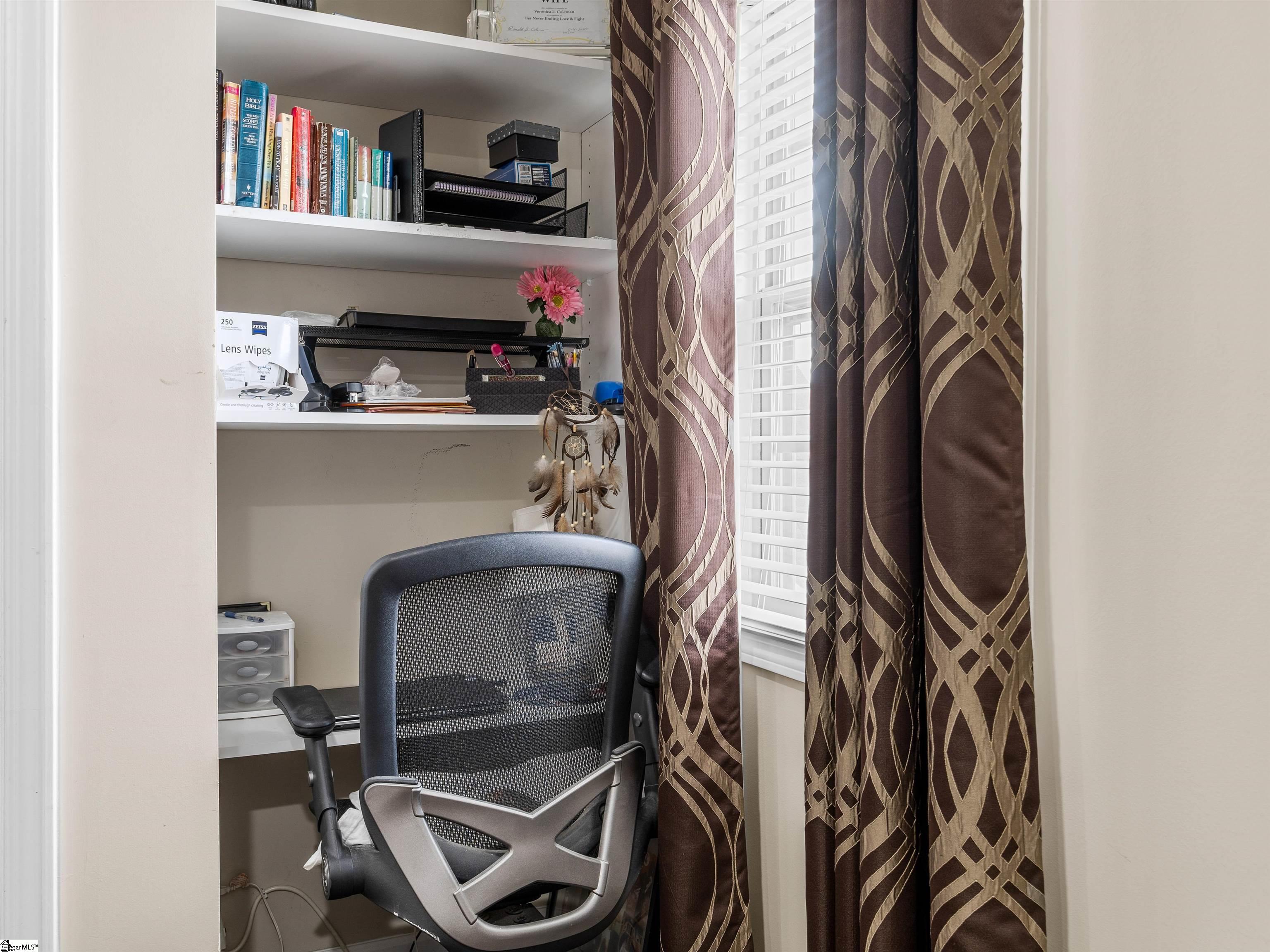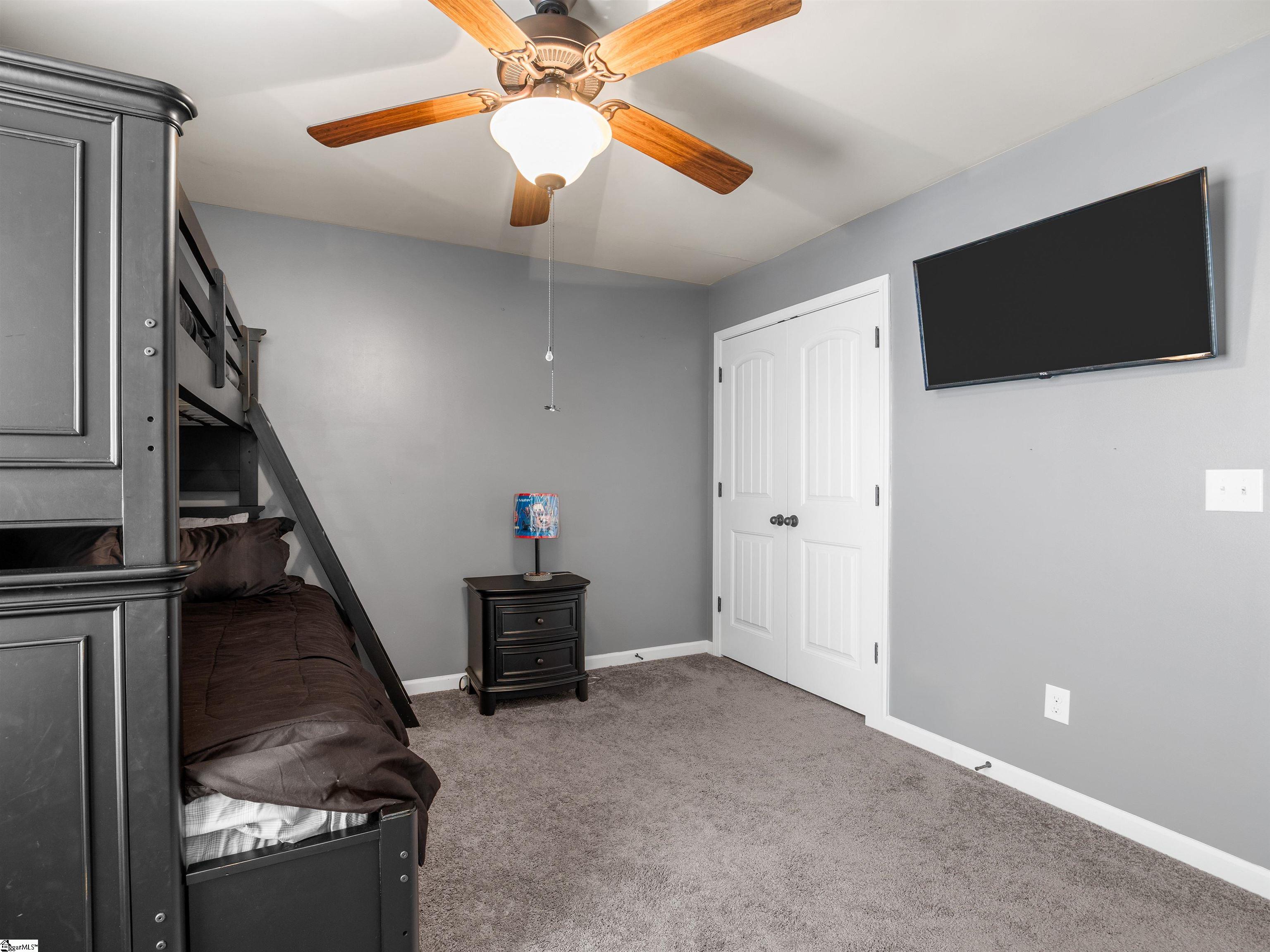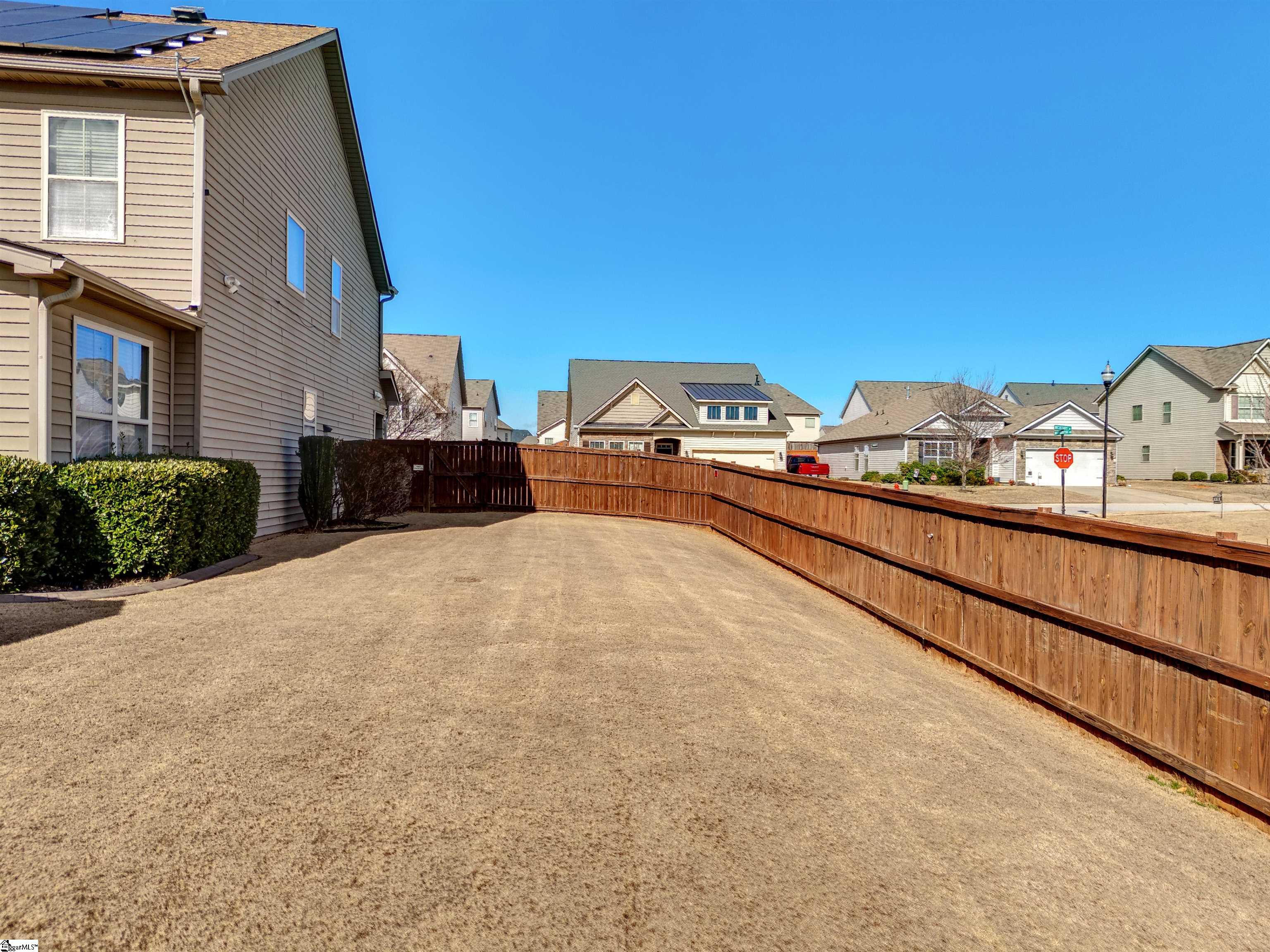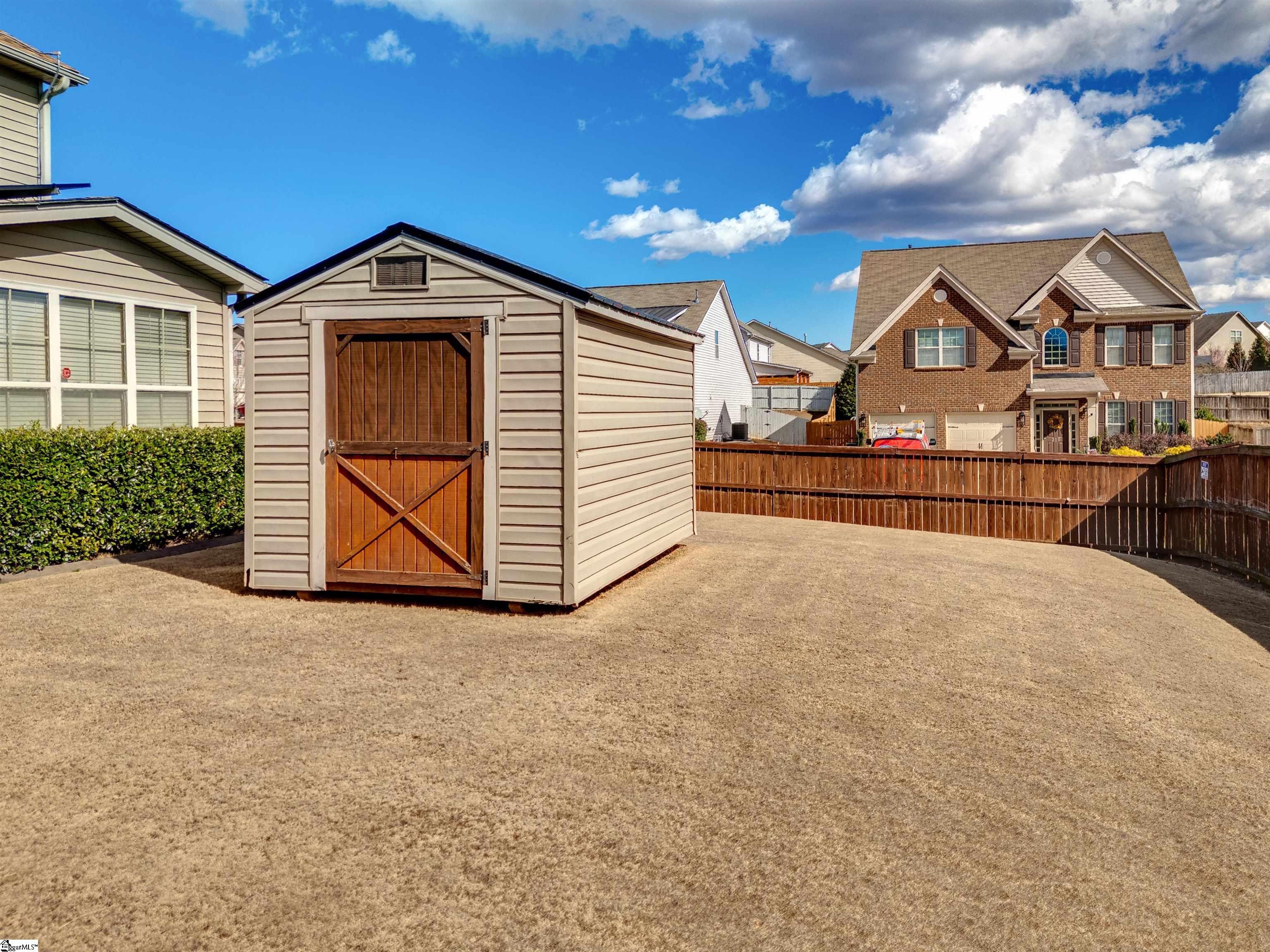 Welcome to 450 Bucklebury Road a beautiful five bedroom, four bathroom home in a prime location. The moment you enter from the front porch you’ll be greeted by a foyer that seamlessly integrates the living, dining, and kitchen areas. The kitchen is equipped with granite countertops, tile backsplash, stainless steel appliances (including a gas range), a pantry, and large center island. The breakfast area leads to a sunroom where you can access the backyard. There you will find an oversized concrete patio with a gas hook-up for your grill, storage building that conveys, and fenced in backyard. Back inside, The great room is open to the kitchen and includes a cozy corner fireplace with gas logs. Finishing out the main floor is a bedroom (Murphy bed will convey) and full bath that provides convenience for potential guest. On the second level you will find one bedroom that was used as a walk-in closet for the current owner and a full hall bath. Two additional spacious bedrooms provide comfort and share access to a full bathroom. The primary suite features a large bedroom area, en-suite bathroom with a tile shower, jetted tub, dual vanities, and walk-in closet. The walk-in laundry room is also located on the 2nd floor with close proximity to all bedrooms. The roof was replaced in 2025 and solar panels are owned, to help lower the cost of energy bills. This home is situated on an upgraded corner lot in Franklin Pointe, a highly desirable community where you’ll enjoy access to the neighborhood pool, clubhouse, and playground. Conveniently located near BMW, GSP Airport, I-85, and just minutes from downtown Greer and Greenville. Don’t miss out on all this lovely home has to offer!