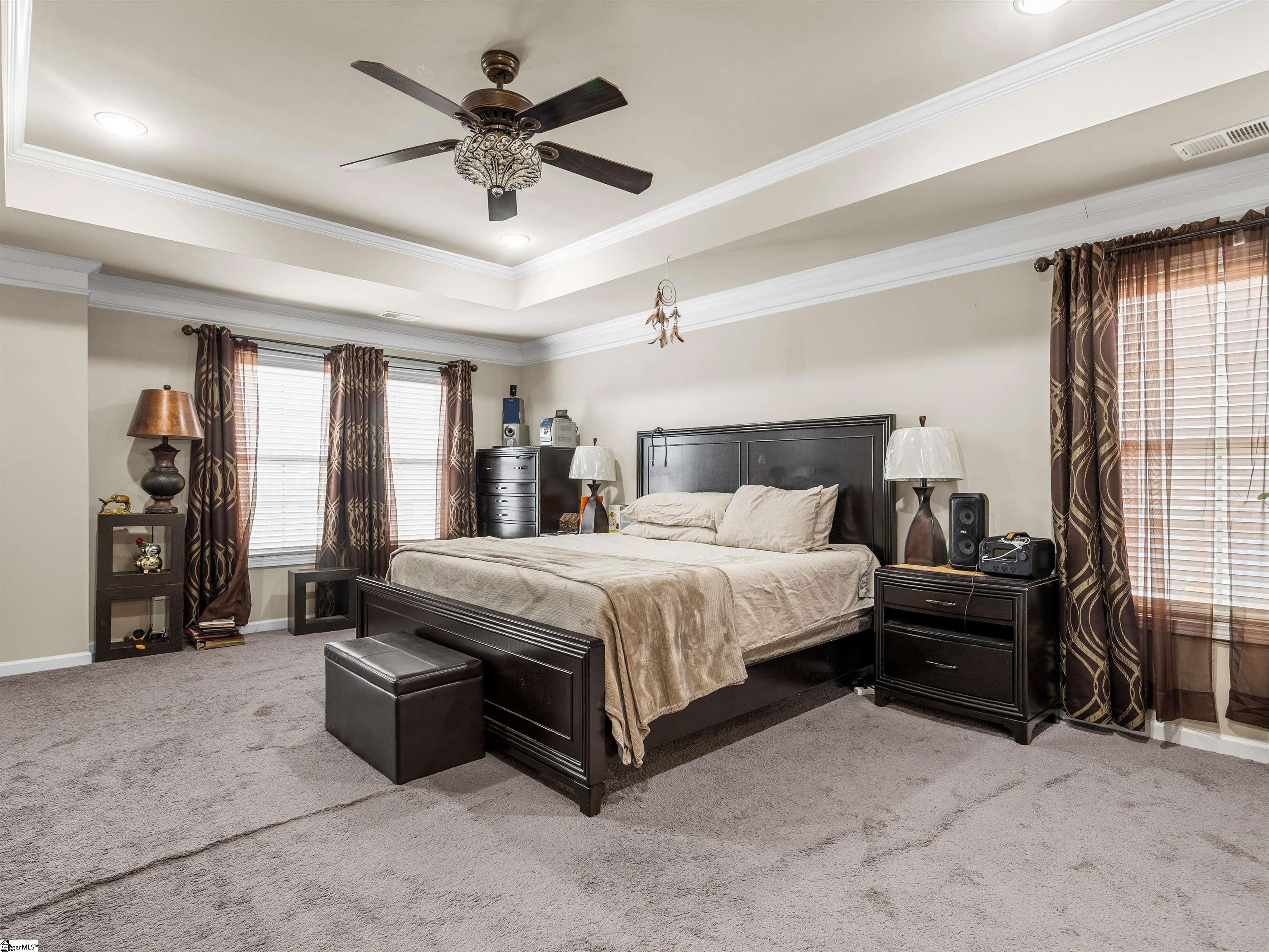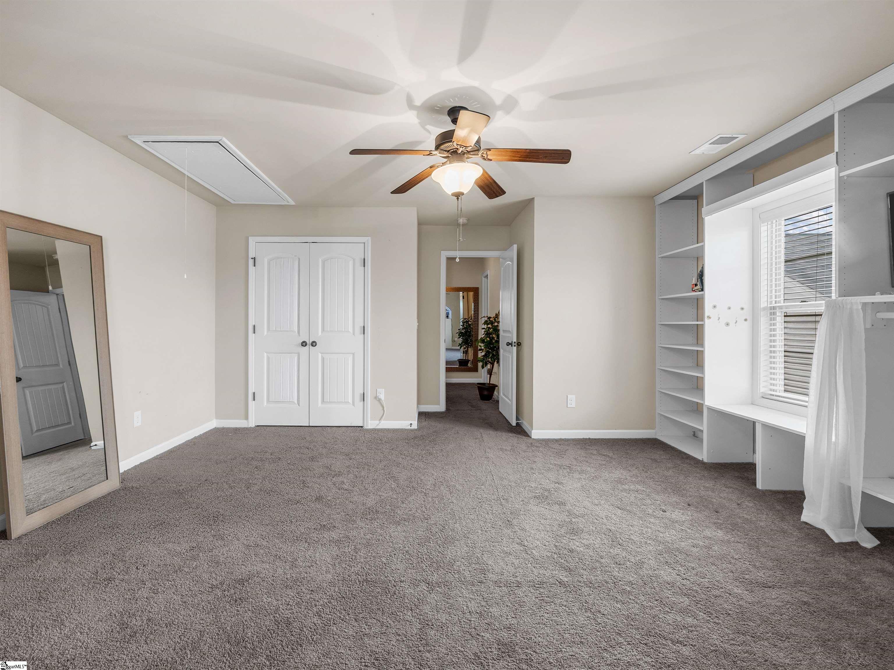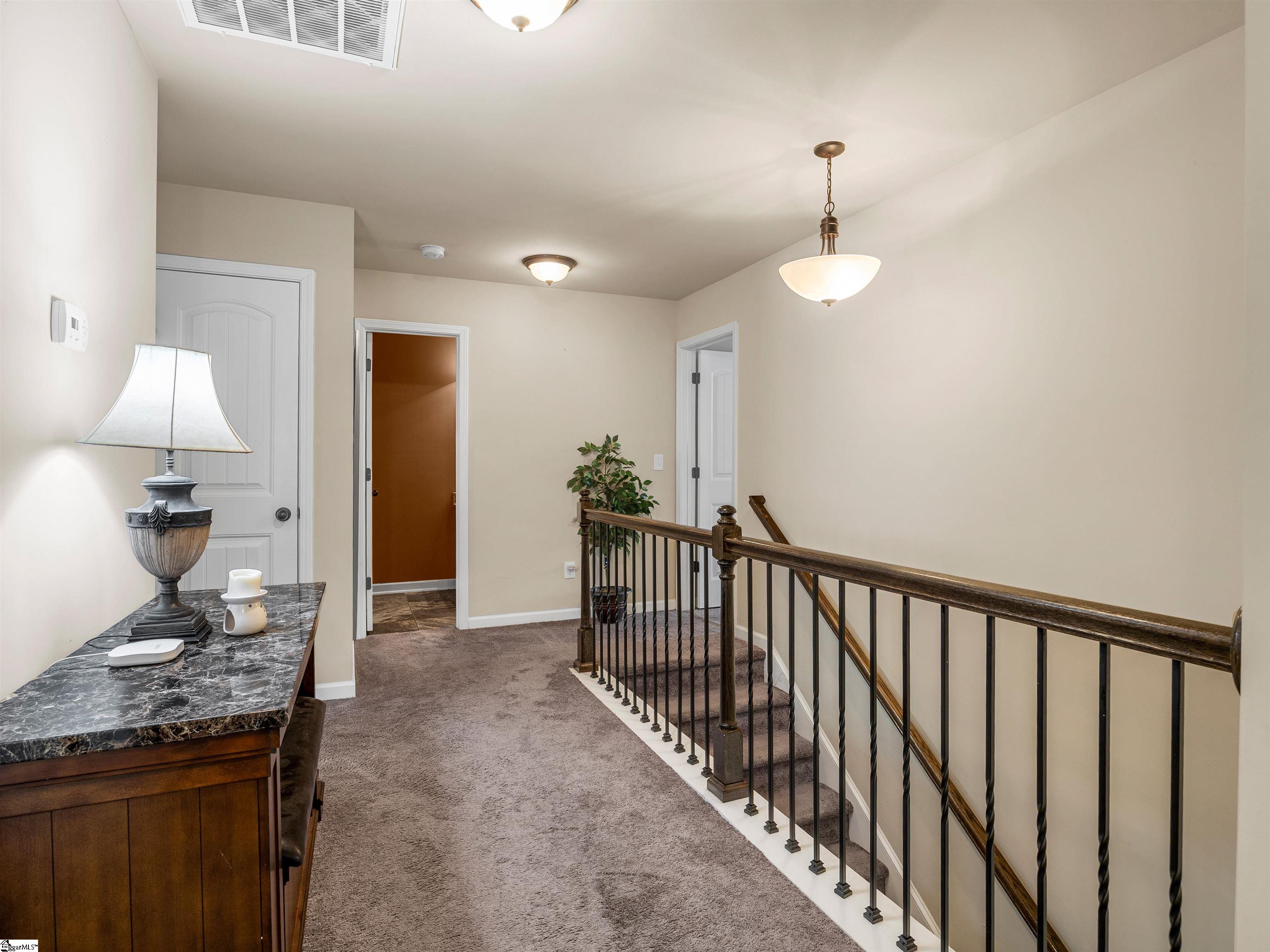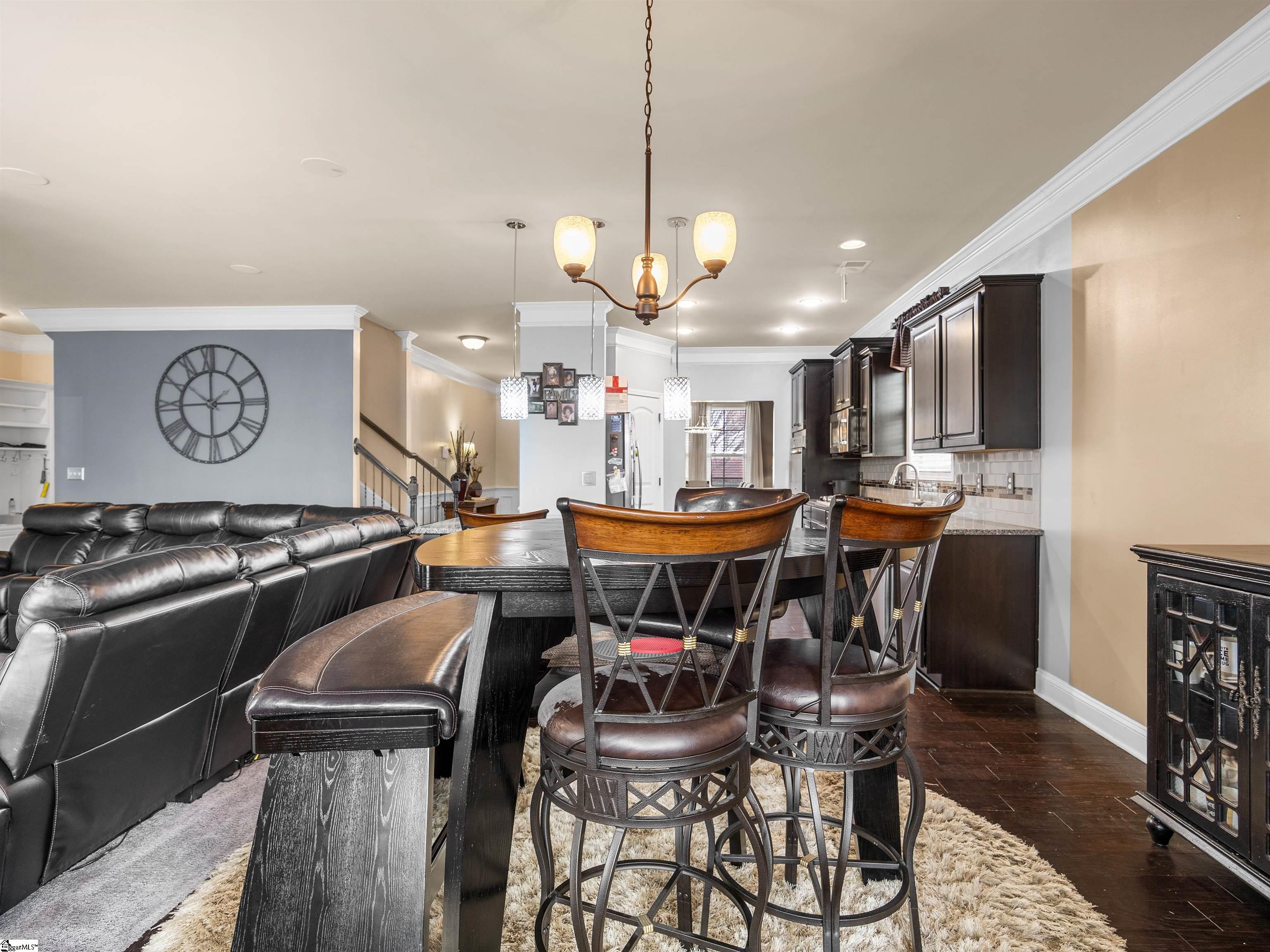 Welcome to 450 Bucklebury Road a beautiful five bedroom, four bathroom home in a prime location. The moment you enter from the front porch you’ll be greeted by a foyer that seamlessly integrates the living, dining, and kitchen areas. The kitchen is equipped with granite countertops, tile backsplash, stainless steel appliances (including a gas range), a pantry, and large center island. The breakfast area leads to a sunroom where you can access the backyard. There you will find an oversized concrete patio with a gas hook-up for your grill, storage building that conveys, and fenced in backyard. Back inside, The great room is open to the kitchen and includes a cozy corner fireplace with gas logs. Finishing out the main floor is a bedroom (Murphy bed will convey) and full bath that provides convenience for potential guest. On the second level you will find one bedroom that was used as a walk-in closet for the current owner and a full hall bath. Two additional spacious bedrooms provide comfort and share access to a full bathroom. The primary suite features a large bedroom area, en-suite bathroom with a tile shower, jetted tub, dual vanities, and walk-in closet. The walk-in laundry room is also located on the 2nd floor with close proximity to all bedrooms. The roof was replaced in 2025 and solar panels are owned, to help lower the cost of energy bills. This home is situated on an upgraded corner lot in Franklin Pointe, a highly desirable community where you’ll enjoy access to the neighborhood pool, clubhouse, and playground. Conveniently located near BMW, GSP Airport, I-85, and just minutes from downtown Greer and Greenville. Don’t miss out on all this lovely home has to offer!