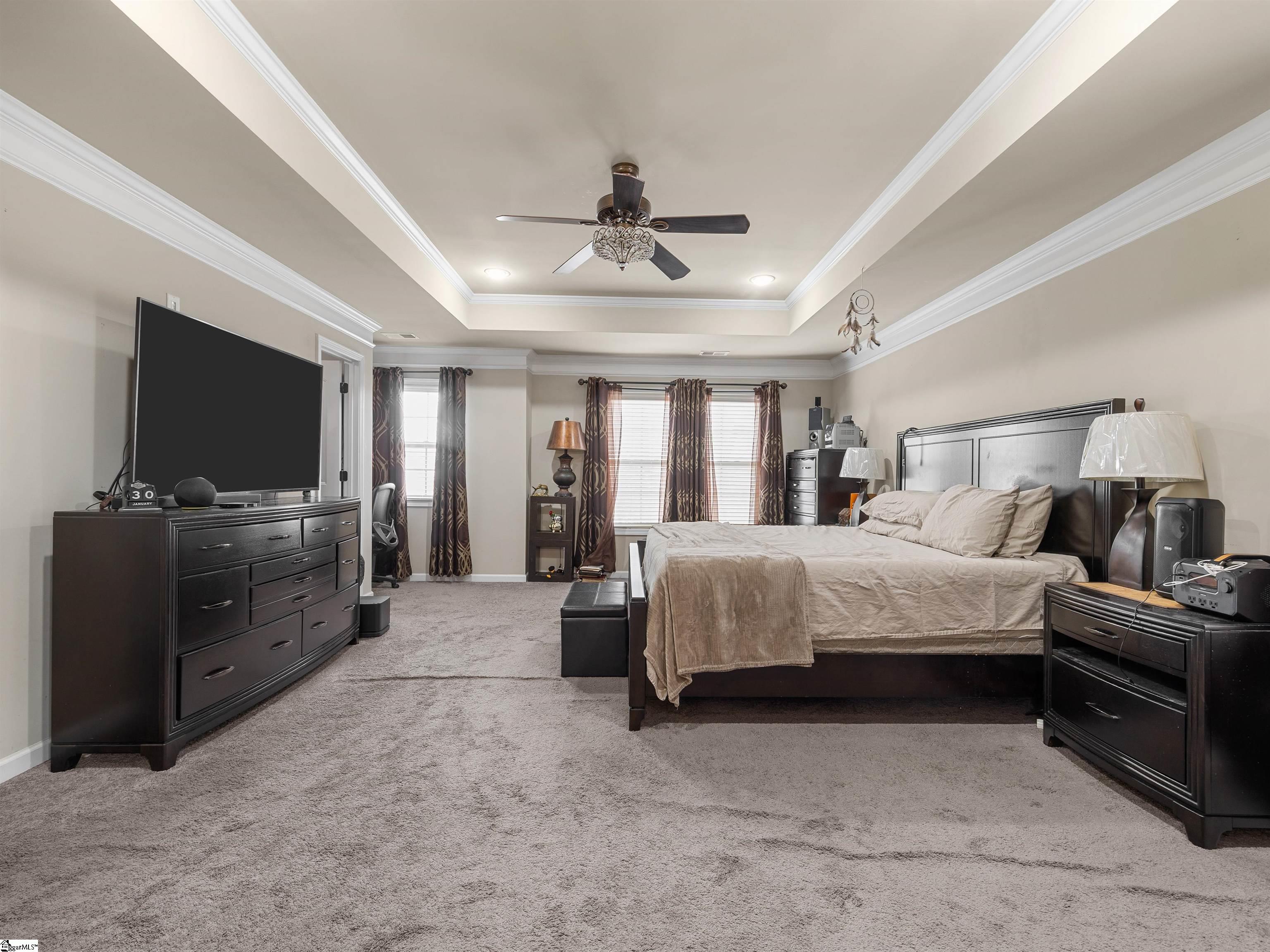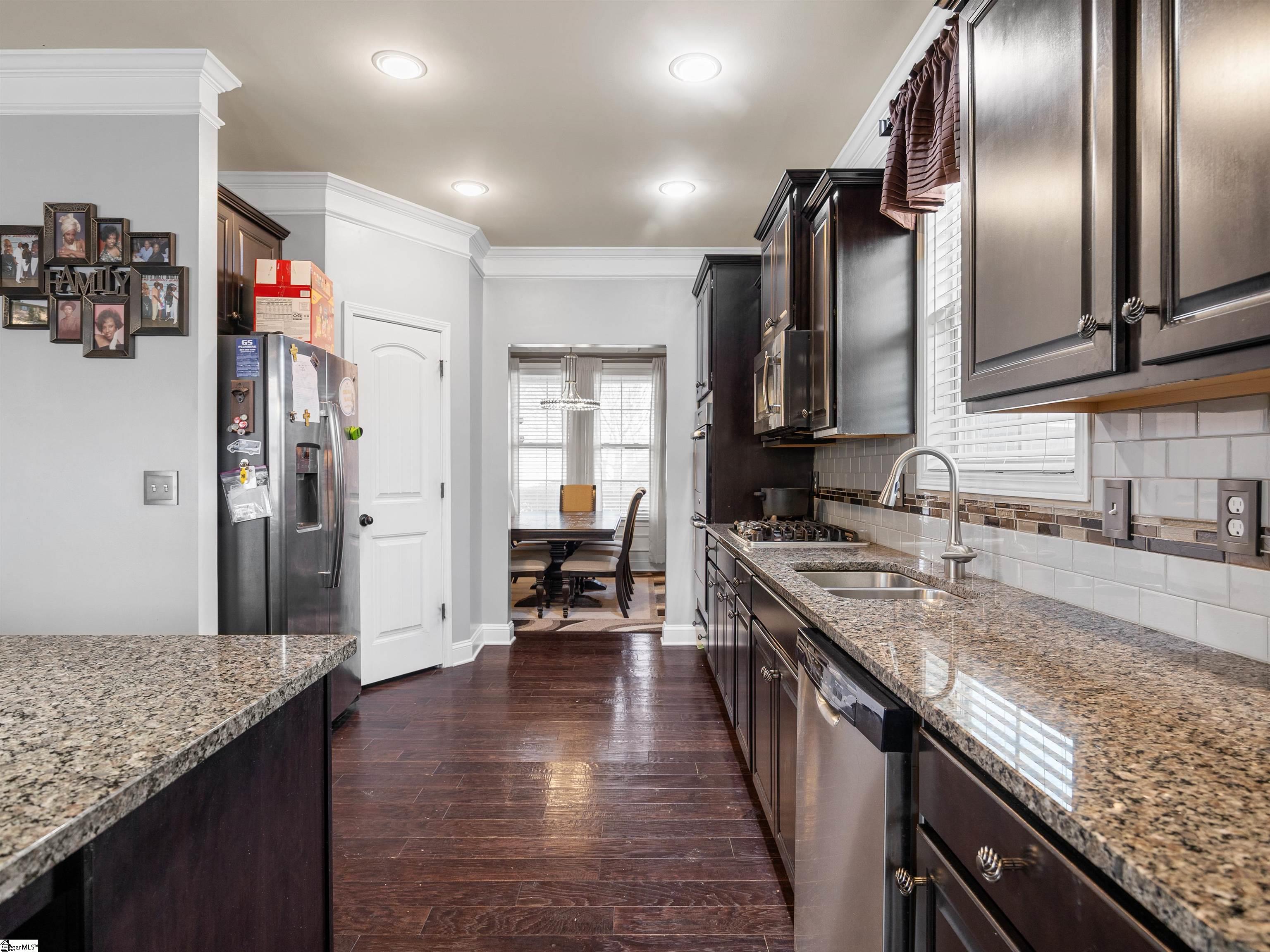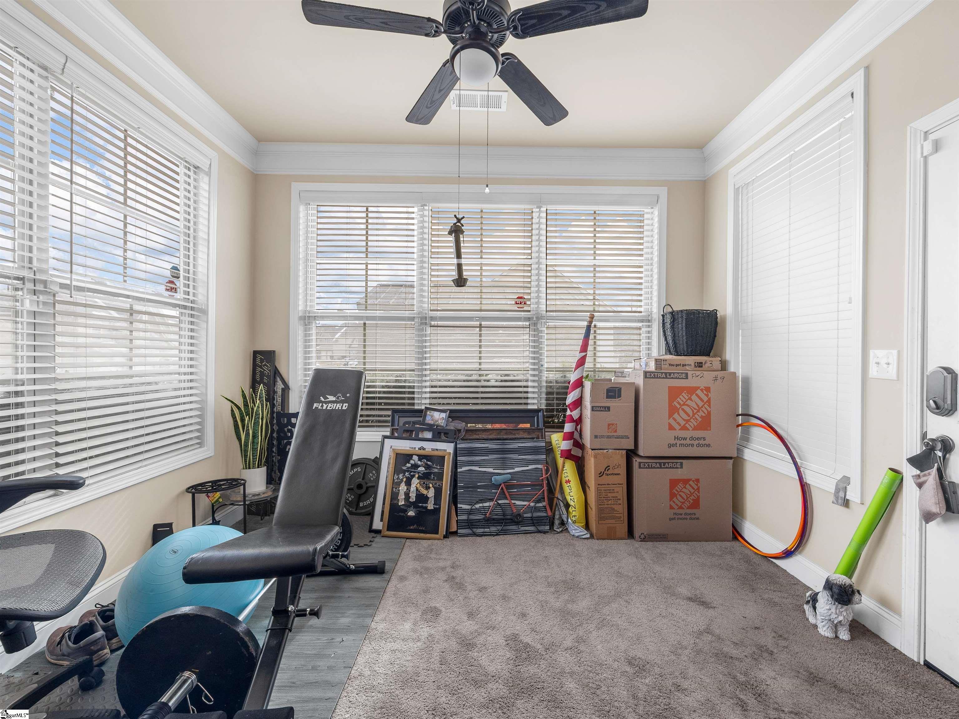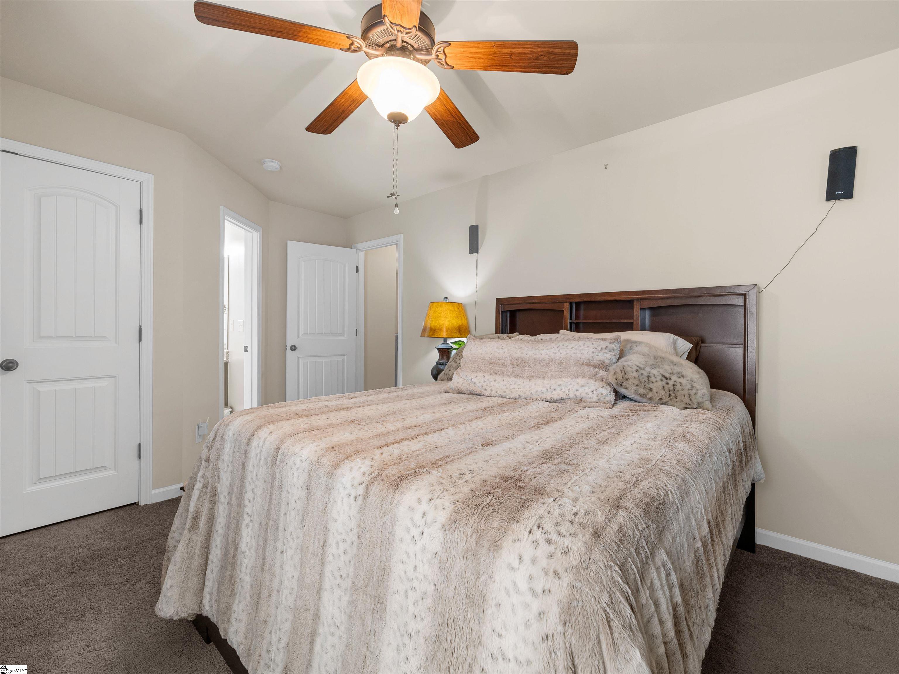 Welcome to 450 Bucklebury Road a beautiful five bedroom, four bathroom home in a prime location. The moment you enter from the front porch you’ll be greeted by a foyer that seamlessly integrates the living, dining, and kitchen areas. The kitchen is equipped with granite countertops, tile backsplash, stainless steel appliances (including a gas range), a pantry, and large center island. The breakfast area leads to a sunroom where you can access the backyard. There you will find an oversized concrete patio with a gas hook-up for your grill, storage building that conveys, and fenced in backyard. Back inside, The great room is open to the kitchen and includes a cozy corner fireplace with gas logs. Finishing out the main floor is a bedroom (Murphy bed will convey) and full bath that provides convenience for potential guest. On the second level you will find one bedroom that was used as a walk-in closet for the current owner and a full hall bath. Two additional spacious bedrooms provide comfort and share access to a full bathroom. The primary suite features a large bedroom area, en-suite bathroom with a tile shower, jetted tub, dual vanities, and walk-in closet. The walk-in laundry room is also located on the 2nd floor with close proximity to all bedrooms. The roof was replaced in 2025 and solar panels are owned, to help lower the cost of energy bills. This home is situated on an upgraded corner lot in Franklin Pointe, a highly desirable community where you’ll enjoy access to the neighborhood pool, clubhouse, and playground. Conveniently located near BMW, GSP Airport, I-85, and just minutes from downtown Greer and Greenville. Don’t miss out on all this lovely home has to offer!