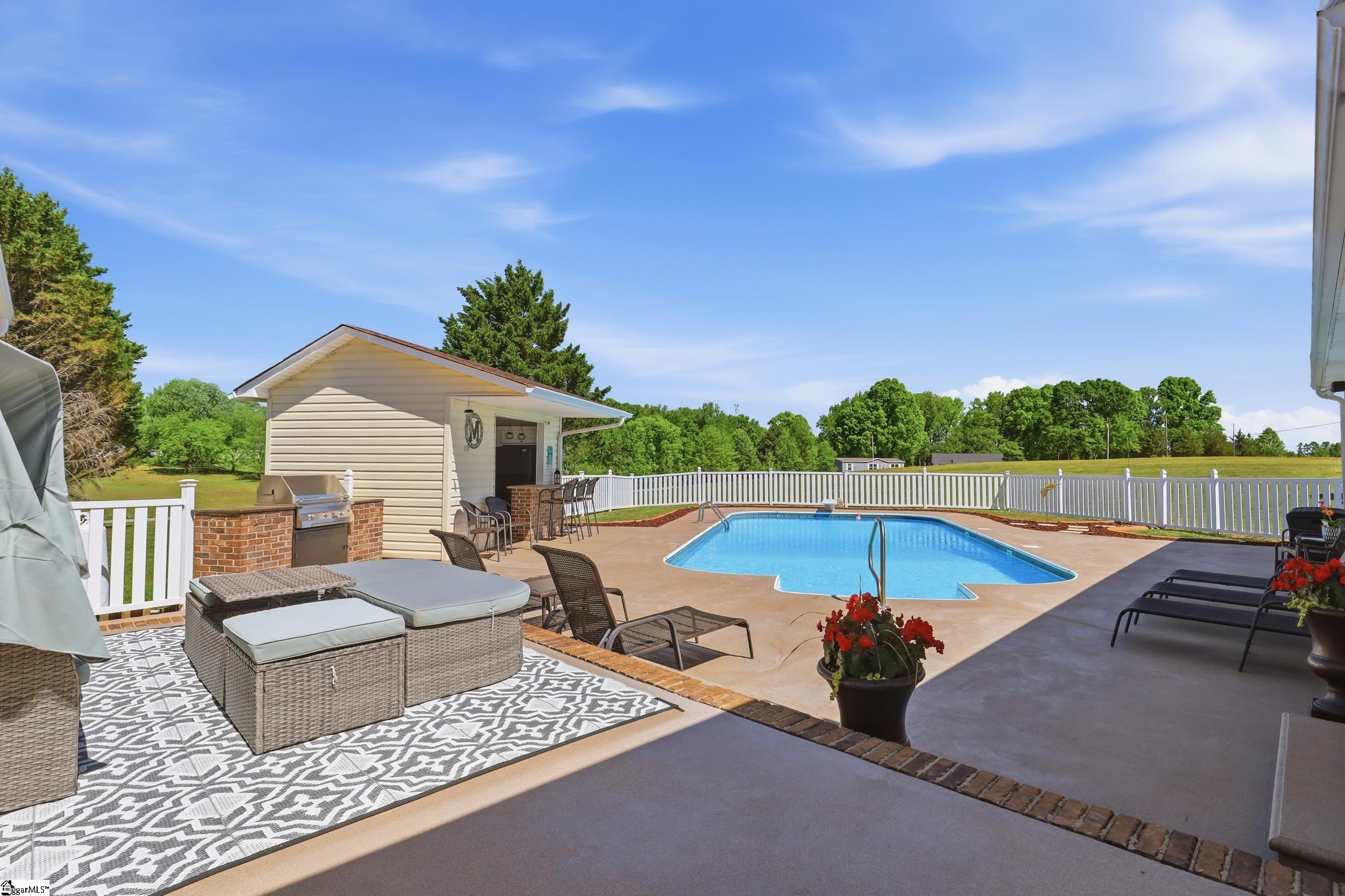 Looking for a private home with land, a pool, and space to truly live? This stunning 3 bedroom, 2 bathroom home on 4.4 acres in Piedmont, SC delivers the perfect blend of peaceful country living and resort-style outdoor luxury, all just minutes from Greenville. Welcome to 475 McMahan Mill Road, where everyday living feels like a getaway. Situated on over 4 acres of usable land in Greenville County, this property offers unmatched privacy, scenic surroundings, and room to expand, garden, or simply enjoy wide-open space. Inside, you’ll find a thoughtfully designed split floor plan with over 2,000 square feet of heated living space, featuring an inviting open-concept layout that seamlessly connects the kitchen, dining, and living areas. The kitchen is equipped with granite countertops, ample cabinetry, and a functional layout, making it ideal for both daily living and entertaining. The spacious living room is anchored by a cozy fireplace, creating the perfect atmosphere for relaxing evenings. The primary suite on the main level offers comfort and privacy, while two additional bedrooms provide flexibility for guests, family, or a home office. Step outside and experience what truly sets this home apart. The backyard is a private resort-style oasis, complete with a beautiful in-ground pool, expansive patio space, and a fully equipped covered outdoor kitchen and bar area. Whether hosting summer gatherings or enjoying quiet evenings under the stars, this outdoor space is designed to impress. Additional features include a detached 2-car garage, mature landscaping, and expansive acreage that offers endless possibilities, from recreational use to future improvements. Located in the desirable Piedmont area near Woodmont schools, this home offers convenient access to Greenville, Simpsonville, and I-85, while maintaining the peace and privacy of rural living. Homes with acreage, a pool, and this level of outdoor living are rare. Don’t miss your opportunity to own a private retreat in one of the Upstate’s most sought-after areas.
