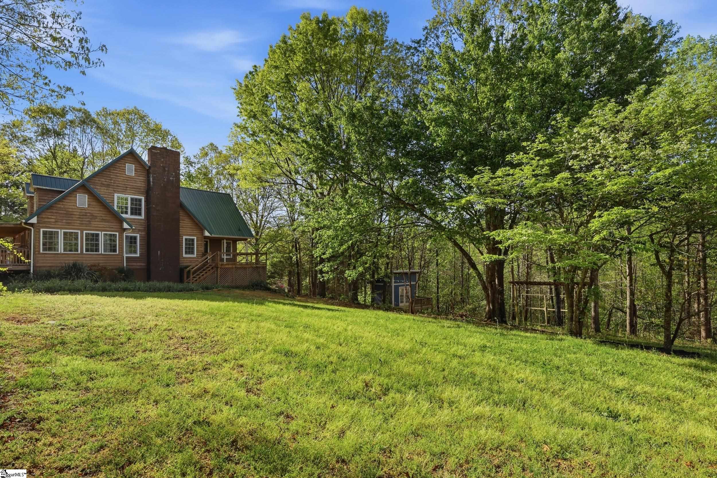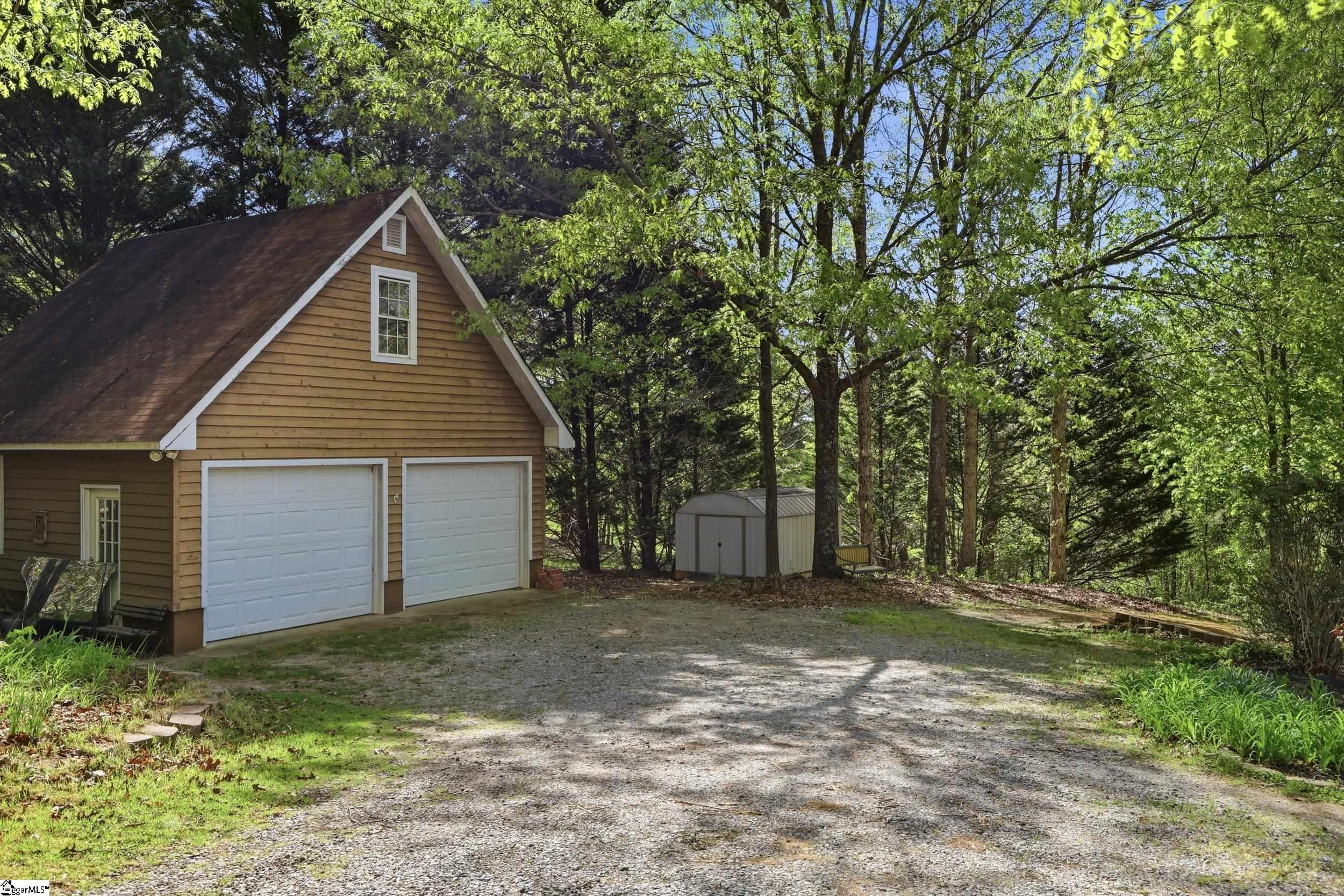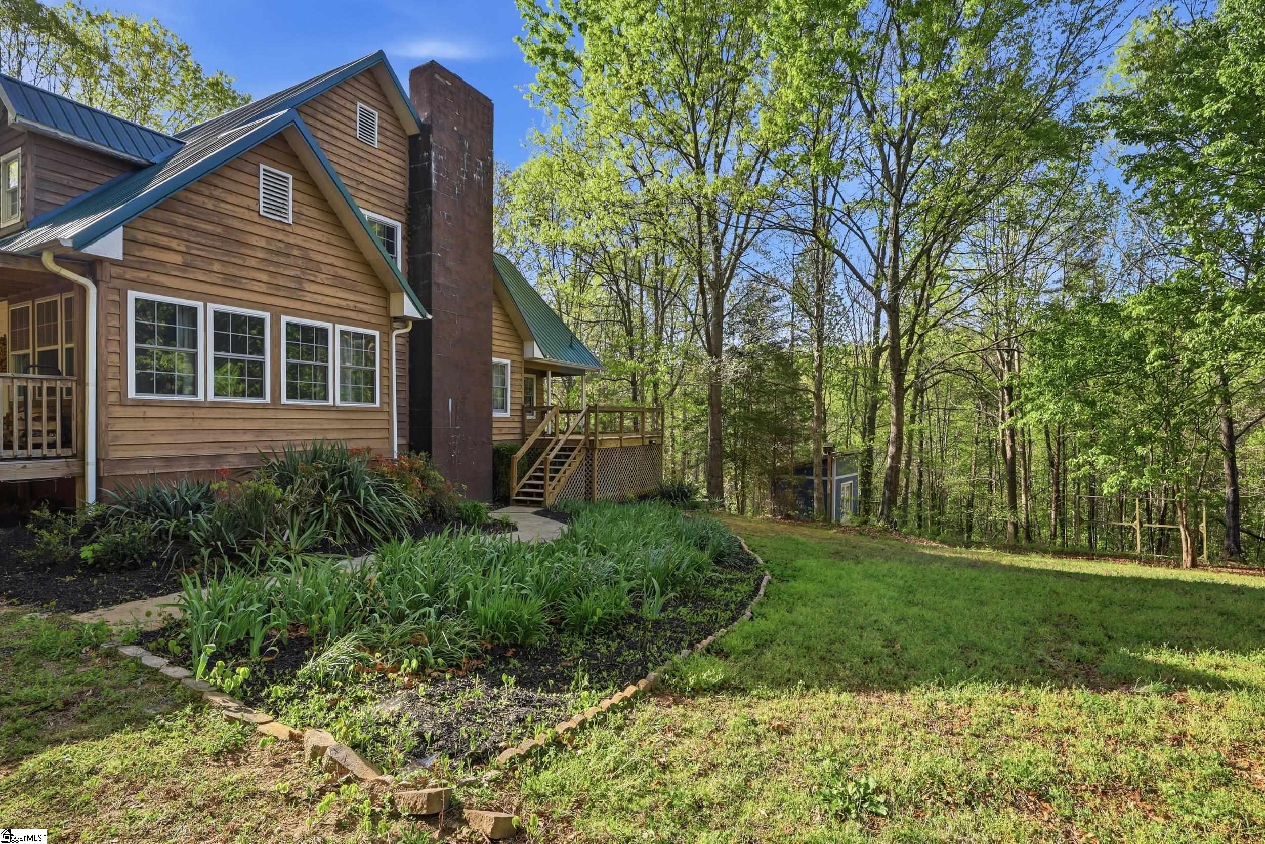 Tucked away on 5.5 acres at the base of picturesque Hogback Mountain, this charming Cape Cod-style home offers the perfect blend of privacy, natural beauty, and functional living. Located just outside of Landrum in the area locals affectionately call the “Dark Corner,” this property is a true mountain retreat with a firepit area, wooded trails, and a peaceful babbling brook right in your own backyard. A welcoming front porch sets the tone as you step inside to a thoughtfully designed layout. The main level features an exceptionally spacious primary suite complete with two oversized walk-in closets and a generously sized ensuite bath. The inviting living room is centered around a cozy fireplace, flanked by windows that frame serene, nature-filled views. A convenient half bath and access to the back deck make this space ideal for both relaxing and entertaining. The kitchen has granite countertops, stainless steel appliances, and dual pantries offering ample storage. Upstairs, you’ll find two additional large bedrooms—each with double closets, and a full bath, providing plenty of room for family or guests. One of the bedrooms has an oversized flex space with two additional closets that would be ideal for a fourth bedroom. The expansive basement adds even more versatility, featuring a private wood-paneled office or study, a large laundry and utility room, and additional unfinished space already roughed in for a future bathroom—perfect for expanding your living area or creating a custom space to suit your needs. Outside, a detached double garage includes an unfinished upper level for even more storage or potential use. Surrounded by the natural beauty of the Blue Ridge Mountains, this property offers the rare opportunity to own a private oasis while still being within reach of town conveniences. Don’t miss your chance to experience peaceful mountain living at its finest, call today!