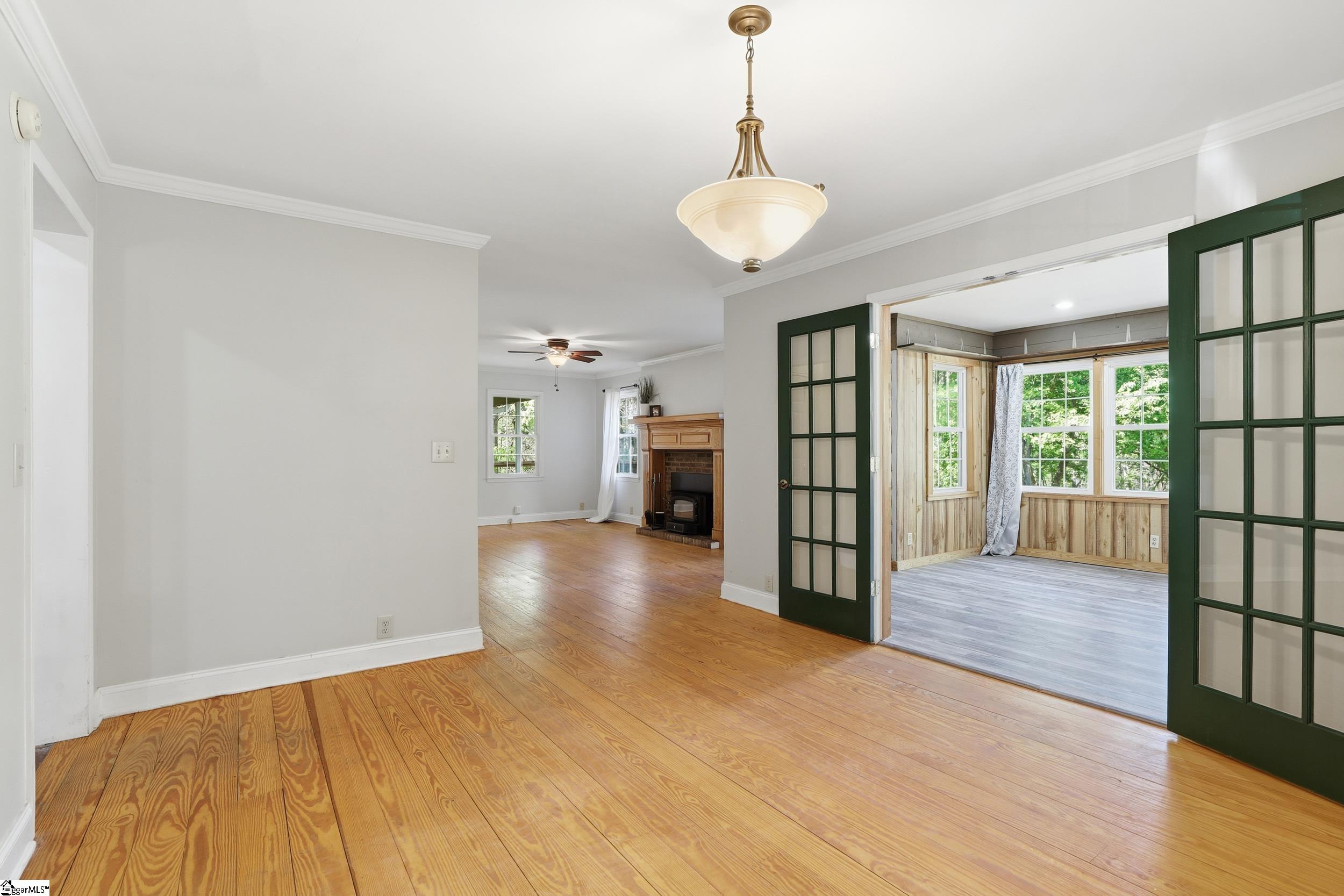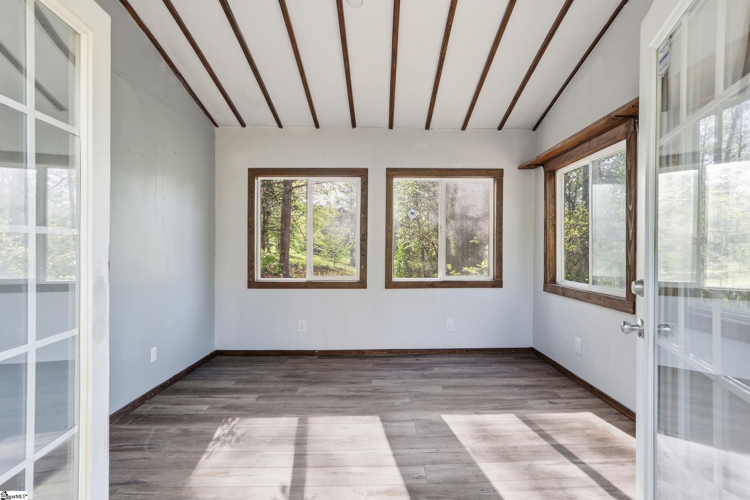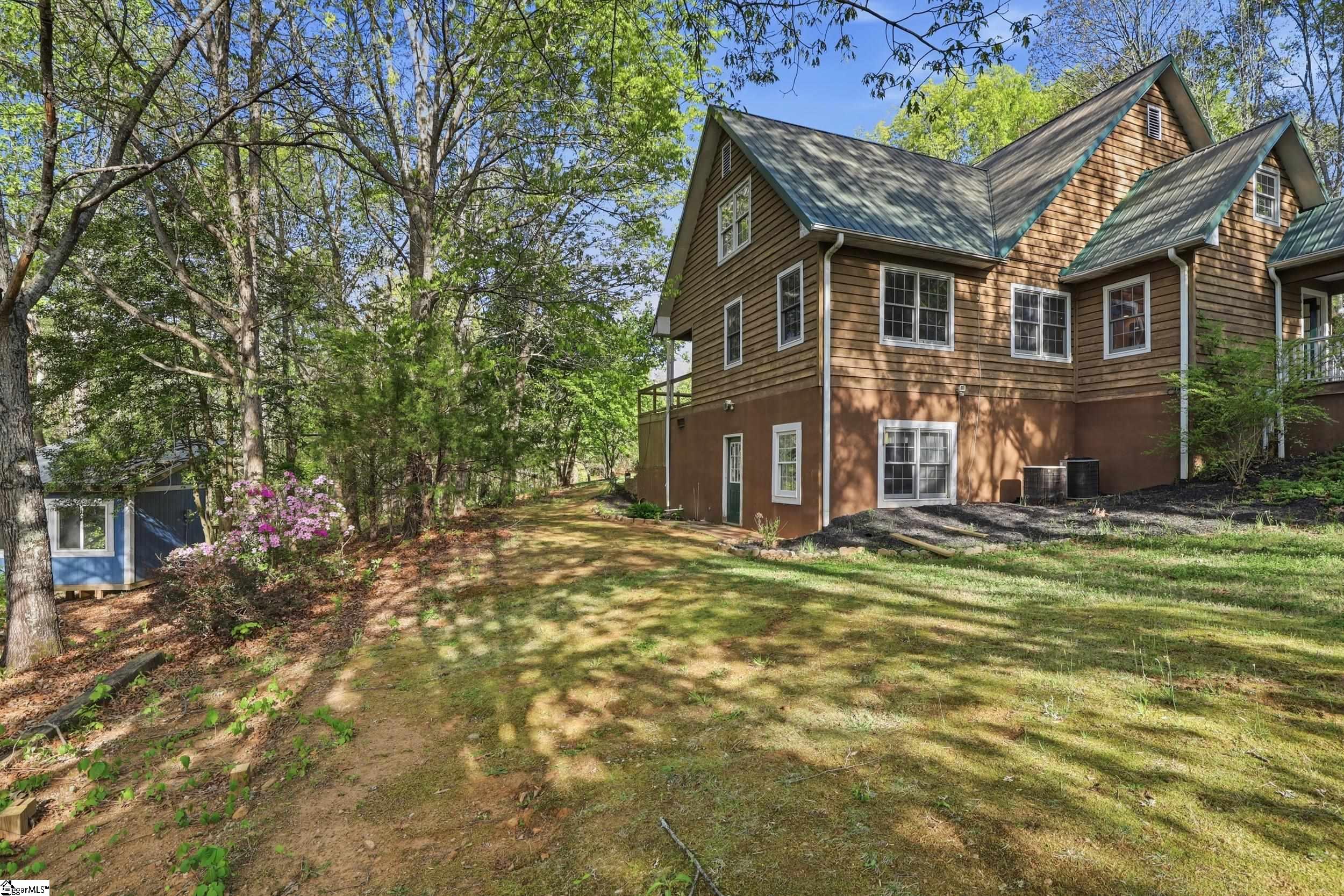 Tucked away on 5.5 acres at the base of picturesque Hogback Mountain, this charming Cape Cod-style home offers the perfect blend of privacy, natural beauty, and functional living. Located just outside of Landrum in the area locals affectionately call the “Dark Corner,” this property is a true mountain retreat with a firepit area, wooded trails, and a peaceful babbling brook right in your own backyard. A welcoming front porch sets the tone as you step inside to a thoughtfully designed layout. The main level features an exceptionally spacious primary suite complete with two oversized walk-in closets and a generously sized ensuite bath. The inviting living room is centered around a cozy fireplace, flanked by windows that frame serene, nature-filled views. A convenient half bath and access to the back deck make this space ideal for both relaxing and entertaining. The kitchen has granite countertops, stainless steel appliances, and dual pantries offering ample storage. Upstairs, you’ll find two additional large bedrooms—each with double closets, and a full bath, providing plenty of room for family or guests. One of the bedrooms has an oversized flex space with two additional closets that would be ideal for a fourth bedroom. The expansive basement adds even more versatility, featuring a private wood-paneled office or study, a large laundry and utility room, and additional unfinished space already roughed in for a future bathroom—perfect for expanding your living area or creating a custom space to suit your needs. Outside, a detached double garage includes an unfinished upper level for even more storage or potential use. Surrounded by the natural beauty of the Blue Ridge Mountains, this property offers the rare opportunity to own a private oasis while still being within reach of town conveniences. Don’t miss your chance to experience peaceful mountain living at its finest, call today!