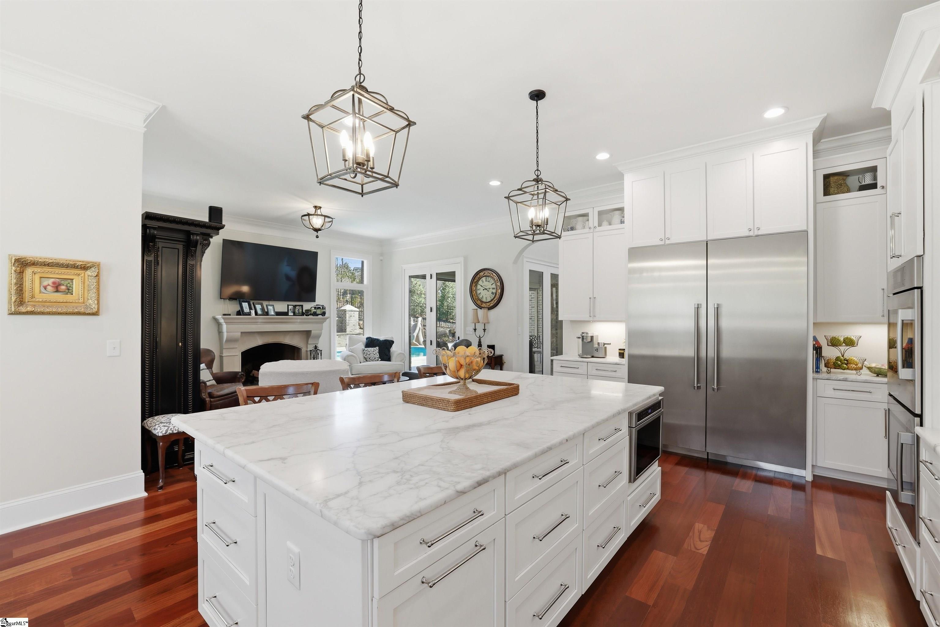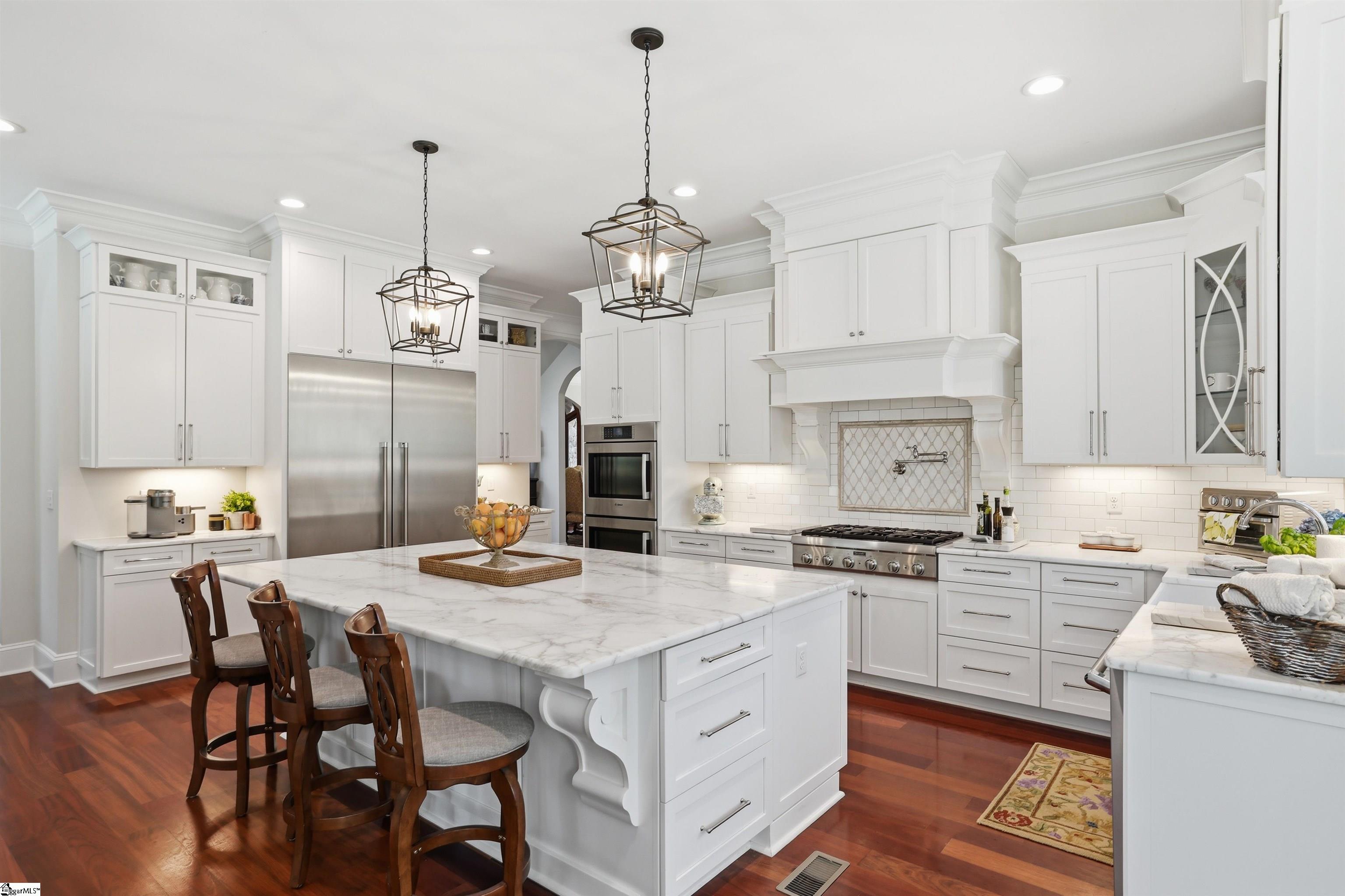 A rare opportunity to own a custom masterpiece by Rembrey Custom Homes in the prestigious, well-established Montebello subdivision. Styled in a European fashion, this home is situated on a sprawling 1.18 acre lot, this estate seamlessly blends high-end architectural detail with modern functionality. The interior showcases stunning brazilian cherry hardwood flooring throughout. A chef’s dream, the gourmet kitchen features marble countertops, luxury appliances. The kitchen is accompanied by a cozy keeping room, and a separate breakfast area. A well-appointed walk-in pantry that cleverly doubles as a laundry suite. The desirable floor plan offers two bedrooms on the main level, including a private primary retreat and a secondary guest suite, both with full en-suite baths. Upstairs, you will find three additional bedrooms: two sharing a Jack-and-Jill bath and one that has access to an additional bath, plus expansive walk-in unfinished storage. The outdoor living space is a true sanctuary. Relax on the spacious stone patio by the outdoor fireplace; the space features a remote-controlled screen, allowing for an open-air or enclosed experience at the touch of a button. The backyard oasis is anchored by a gorgeous pool and a detached, climate-controlled garage. While it is currently serving as a garage and storage, this detached structure could be the pool house of your dreams as it includes a half bath and a versatile loft space. Luxury, privacy, and craftsmanship await for you with this home.