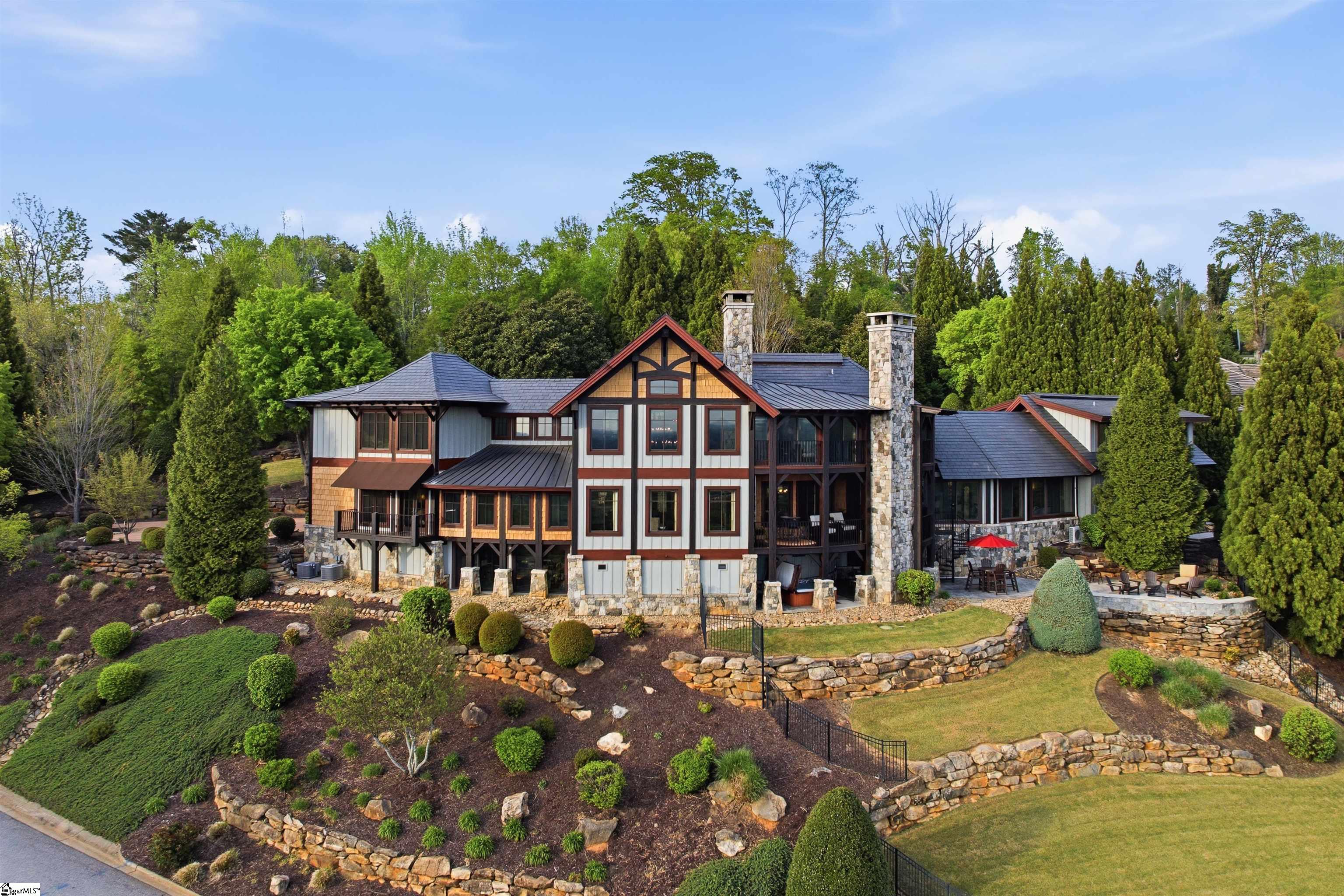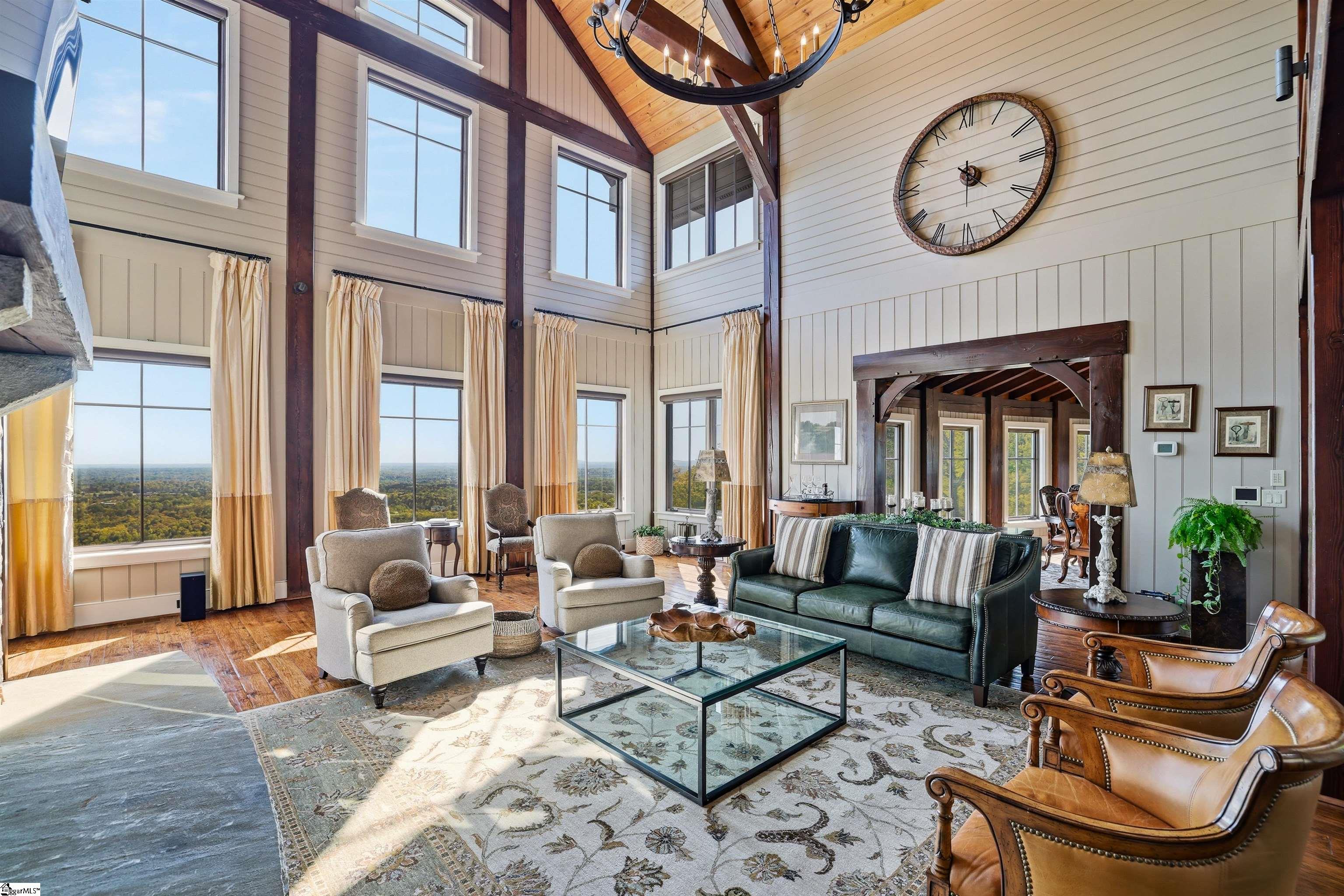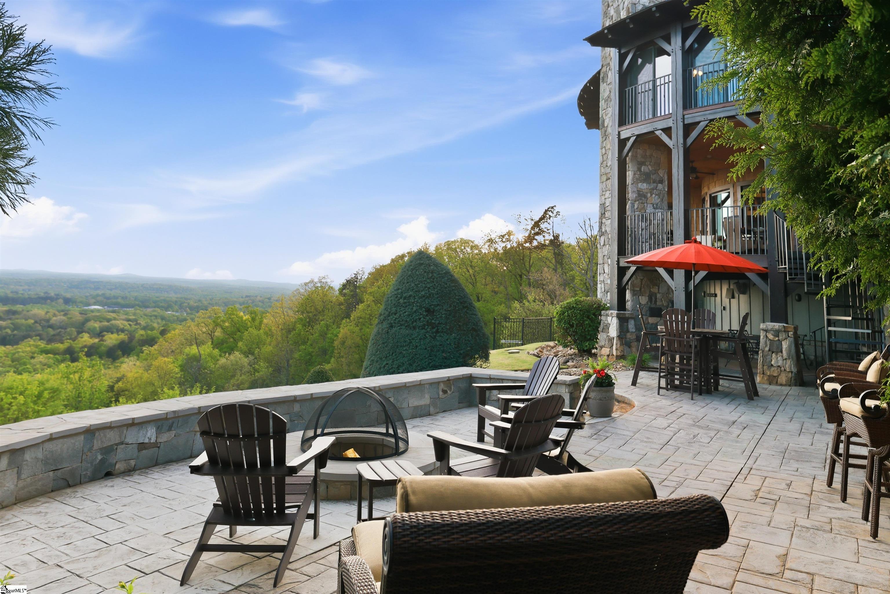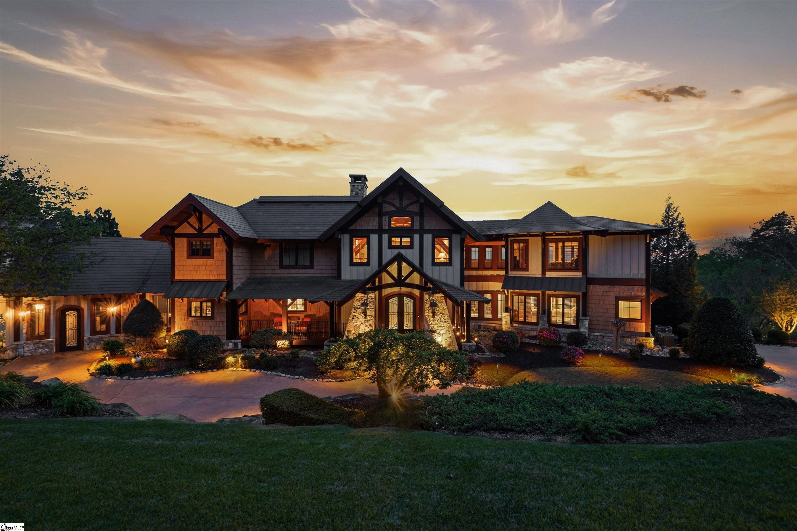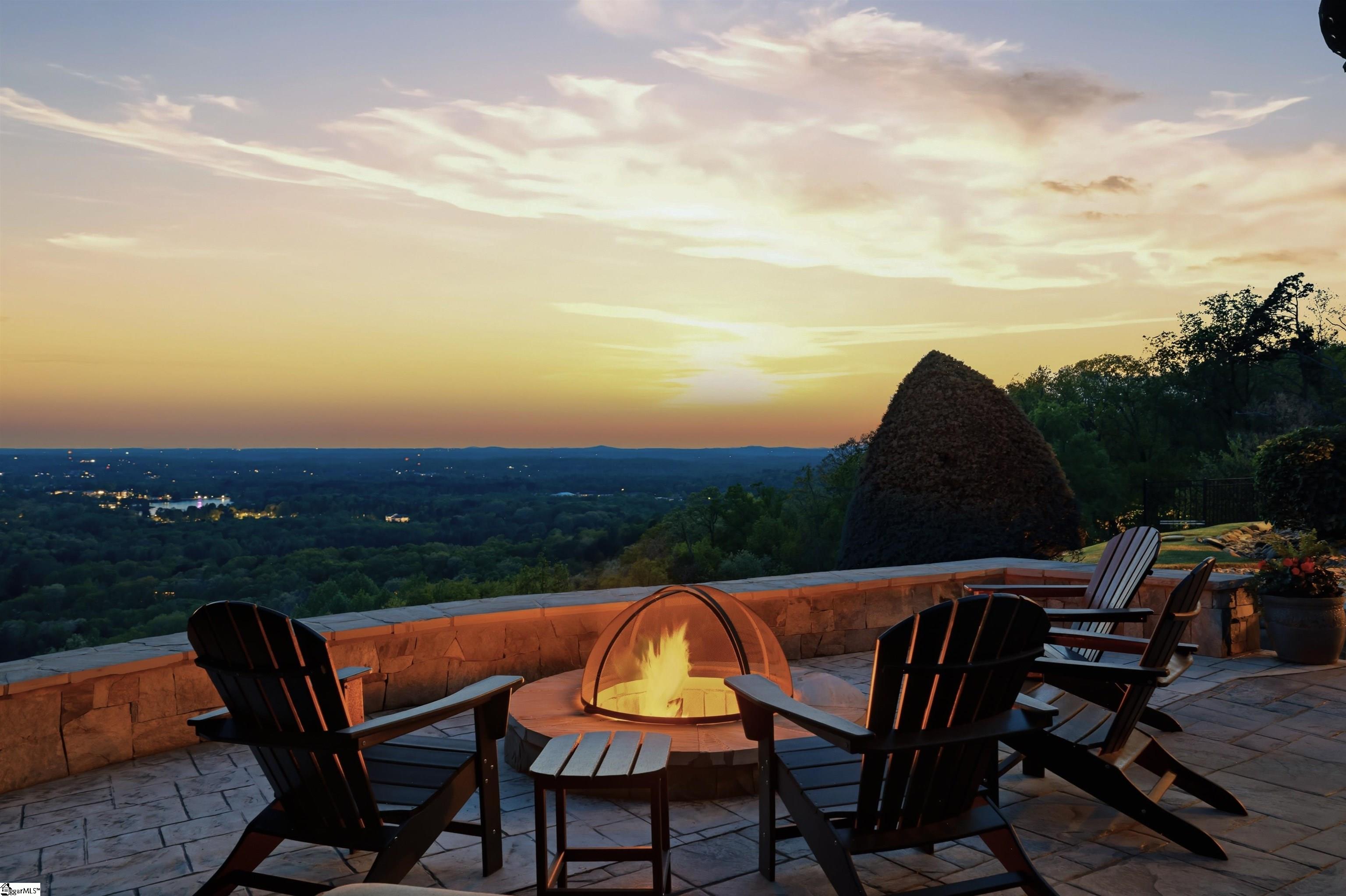 Perched atop Paris Mountain, 5 Tropicana Court is a one-of-a-kind luxury residence offering breathtaking panoramic views, exceptional craftsmanship, and a seamless blend of natural beauty and refined design. Enjoy stunning 180-degree vistas of downtown Greenville, Furman University’s Mirror Lake, and the Blue Ridge Mountains from nearly every angle of this remarkable property. Spanning over 6,000 square feet, this architectural masterpiece showcases exposed Douglas fir beams, Amish hand-scraped hickory hardwood floors, tongue-and-groove poplar walls, and custom 8-foot walnut interior doors—creating a warm, elevated aesthetic throughout with no drywall in the home. The gourmet kitchen is thoughtfully designed for both everyday living and entertaining. Featuring a fully up-fitted kitchen with custom solid wood cabinetry throughout. The main living areas offer incredible flexibility, from a dramatic great room with soaring ceilings, expansive windows, and a two-story fireplace to a private media room ideal for relaxing evenings. Multiple outdoor living spaces—including three expansive porches and a stone terrace—provide year-round enjoyment and unparalleled vantage points to take in the surrounding landscape. A fire pit area creates the perfect setting for entertaining under the stars. The home features three luxurious primary suites, each with spa-inspired bathrooms with heated floors and custom walk-in closets. An additional apartment over the garage, complete with a kitchenette and Murphy bed, offers ideal accommodations for guests or extended living. Modern conveniences include Vantage Controls automated lighting, a whole-home Juke 18-zone sound system, and a 16KW Generac propane generator for added peace of mind. Ideally located off Altamont Road in the exclusive gated City Lights subdivision, this property offers convenient access to the Swamp Rabbit Trail and is just minutes from the dining, shopping, and cultural attractions of downtown Greenville and Travelers Rest. Upgrades include a fitness studio, art studio, enclosed deck off the primary suite, custom rock wall patio with fire pit and backyard fencing. Further upgrades include approximately 2,700 sq ft of enclosed storage, a Sundance hot tub spa, fireplace enhancements, a GAF slate roof and regular maintenance that enhances the original grandeur of 5 Tropicana Court. This presents a rare opportunity to own a truly exceptional mountain retreat combining luxury, privacy, and proximity to everything Greenville has to offer. Schedule your private showing today.
