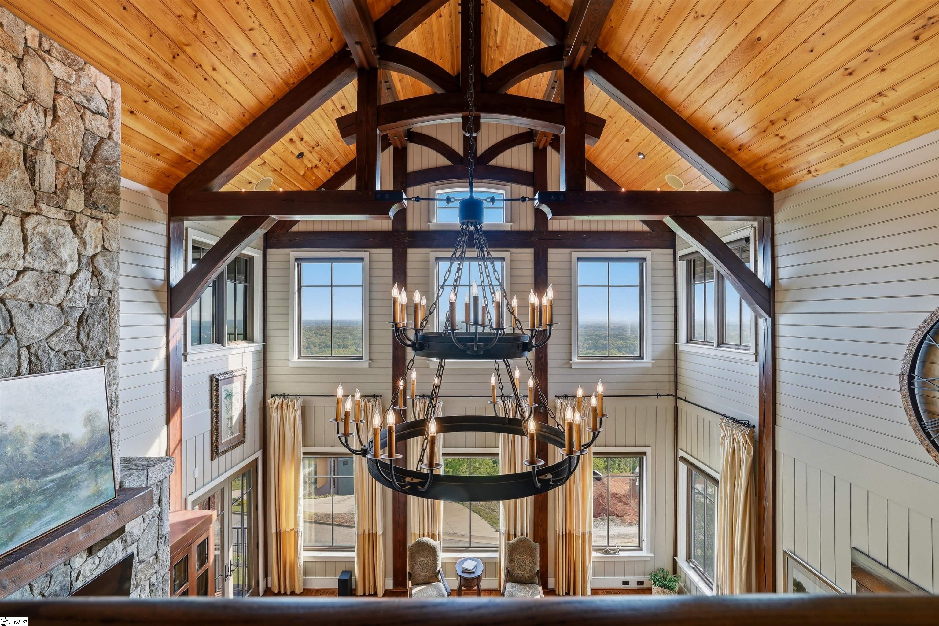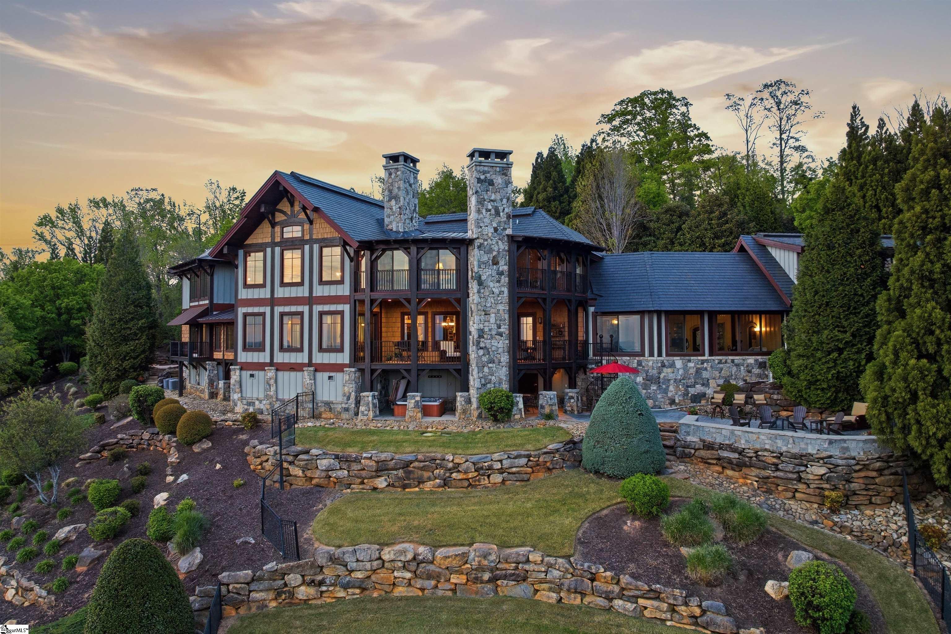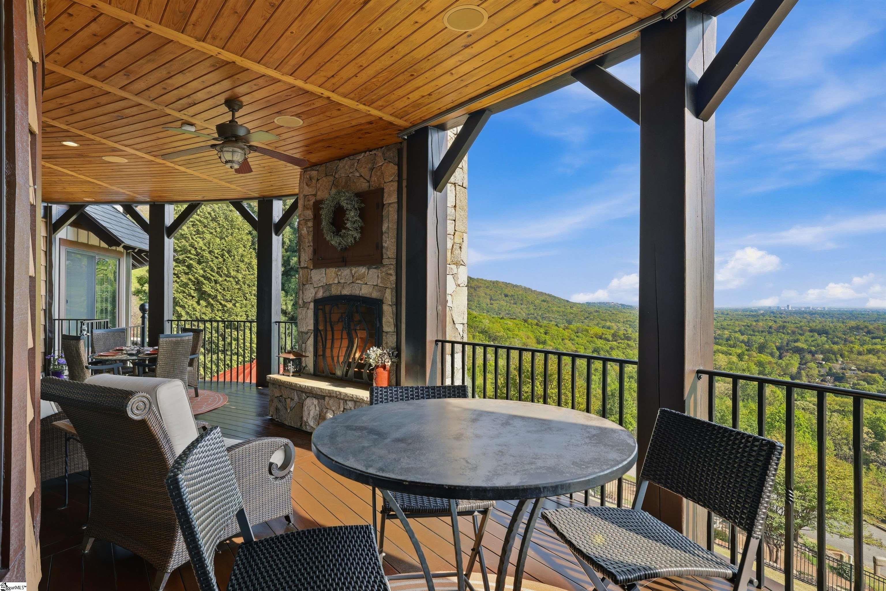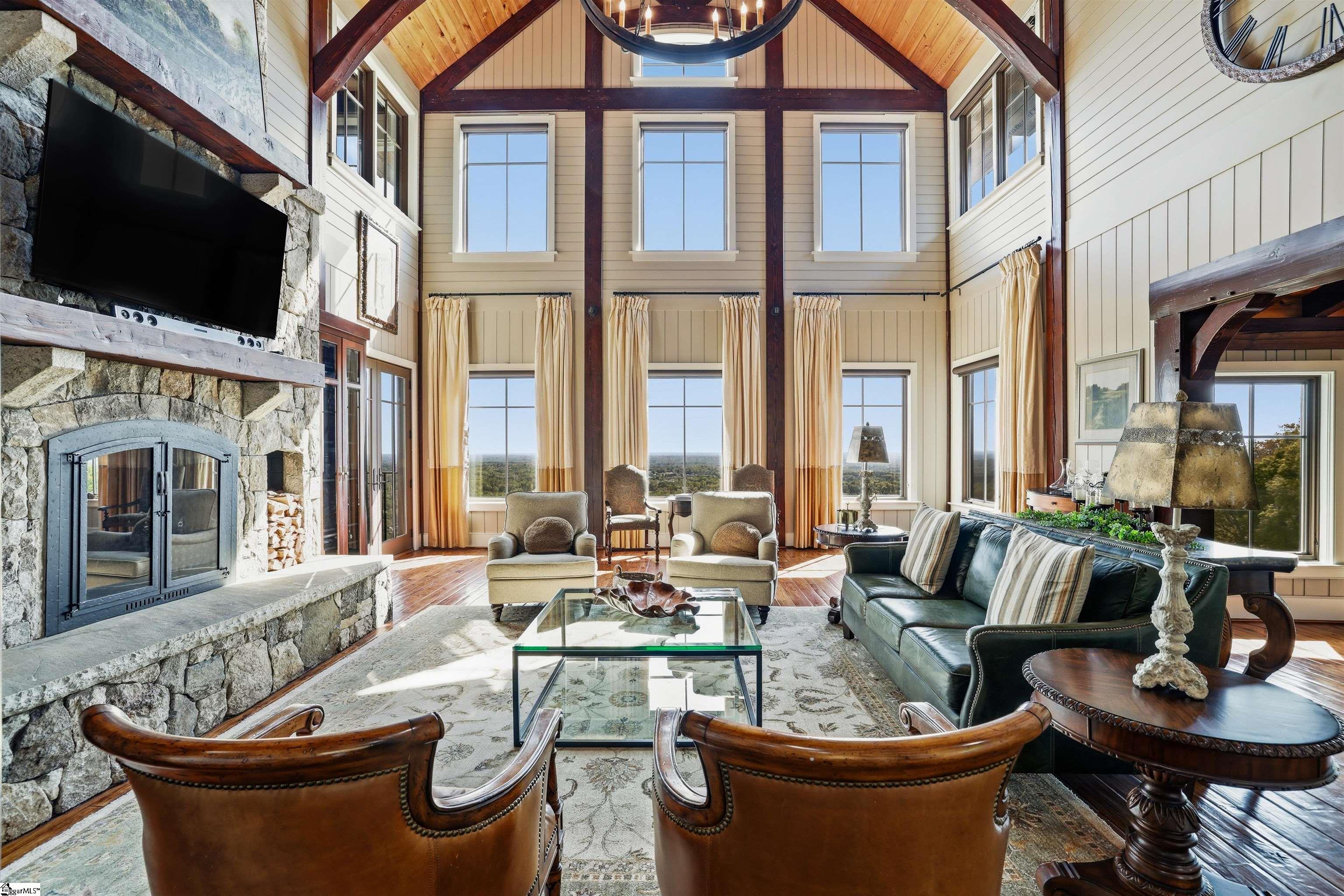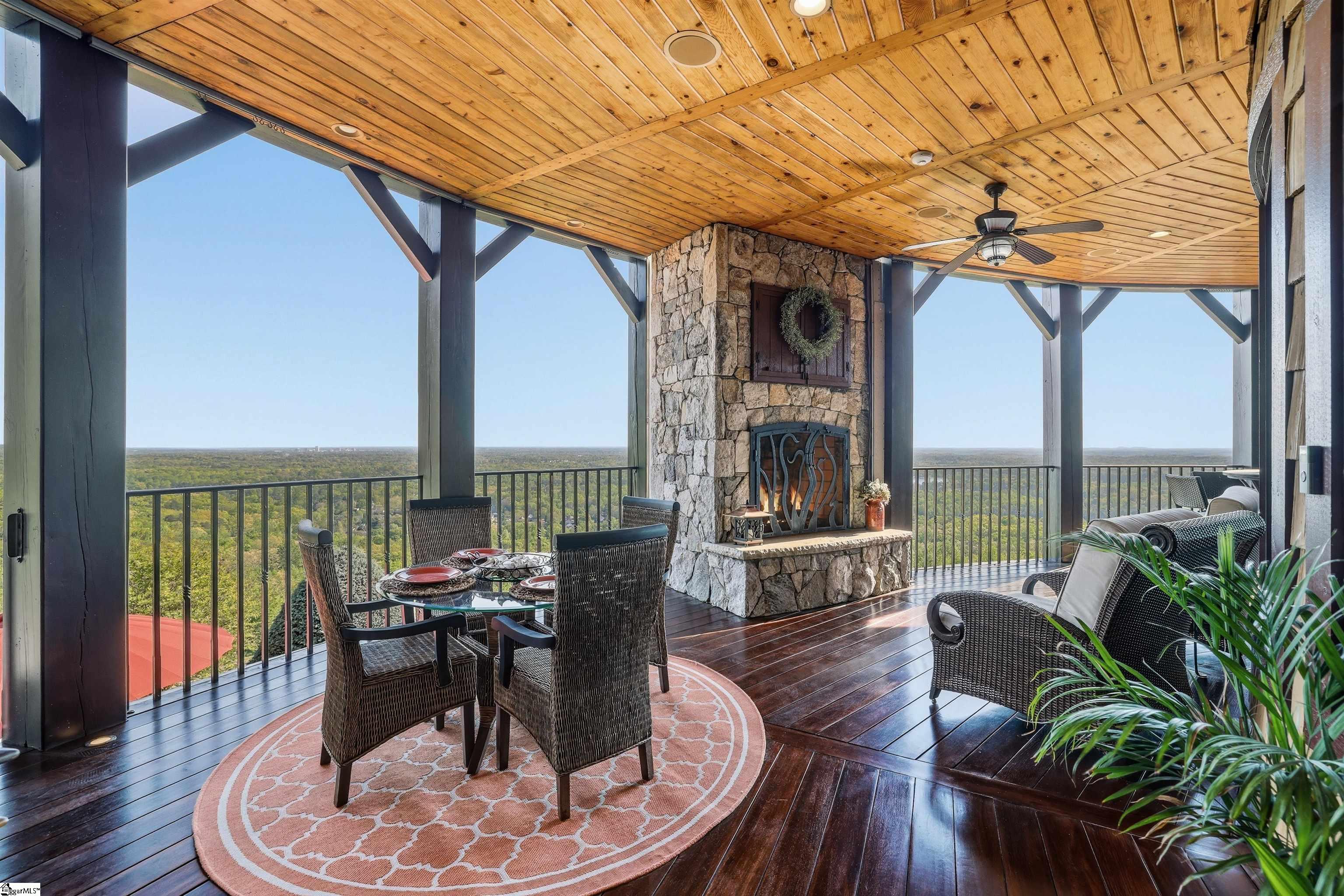 Perched atop Paris Mountain, 5 Tropicana Court is a one-of-a-kind luxury residence offering breathtaking panoramic views, exceptional craftsmanship, and a seamless blend of natural beauty and refined design. Enjoy stunning 180-degree vistas of downtown Greenville, Furman University’s Mirror Lake, and the Blue Ridge Mountains from nearly every angle of this remarkable property. Spanning over 6,000 square feet, this architectural masterpiece showcases exposed Douglas fir beams, Amish hand-scraped hickory hardwood floors, tongue-and-groove poplar walls, and custom 8-foot walnut interior doors—creating a warm, elevated aesthetic throughout with no drywall in the home. The gourmet kitchen is thoughtfully designed for both everyday living and entertaining. Featuring a fully up-fitted kitchen with custom solid wood cabinetry throughout. The main living areas offer incredible flexibility, from a dramatic great room with soaring ceilings, expansive windows, and a two-story fireplace to a private media room ideal for relaxing evenings. Multiple outdoor living spaces—including three expansive porches and a stone terrace—provide year-round enjoyment and unparalleled vantage points to take in the surrounding landscape. A fire pit area creates the perfect setting for entertaining under the stars. The home features three luxurious primary suites, each with spa-inspired bathrooms with heated floors and custom walk-in closets. An additional apartment over the garage, complete with a kitchenette and Murphy bed, offers ideal accommodations for guests or extended living. Modern conveniences include Vantage Controls automated lighting, a whole-home Juke 18-zone sound system, and a 16KW Generac propane generator for added peace of mind. Ideally located off Altamont Road in the exclusive gated City Lights subdivision, this property offers convenient access to the Swamp Rabbit Trail and is just minutes from the dining, shopping, and cultural attractions of downtown Greenville and Travelers Rest. Upgrades include a fitness studio, art studio, enclosed deck off the primary suite, custom rock wall patio with fire pit and backyard fencing. Further upgrades include approximately 2,700 sq ft of enclosed storage, a Sundance hot tub spa, fireplace enhancements, a GAF slate roof and regular maintenance that enhances the original grandeur of 5 Tropicana Court. This presents a rare opportunity to own a truly exceptional mountain retreat combining luxury, privacy, and proximity to everything Greenville has to offer. Schedule your private showing today.