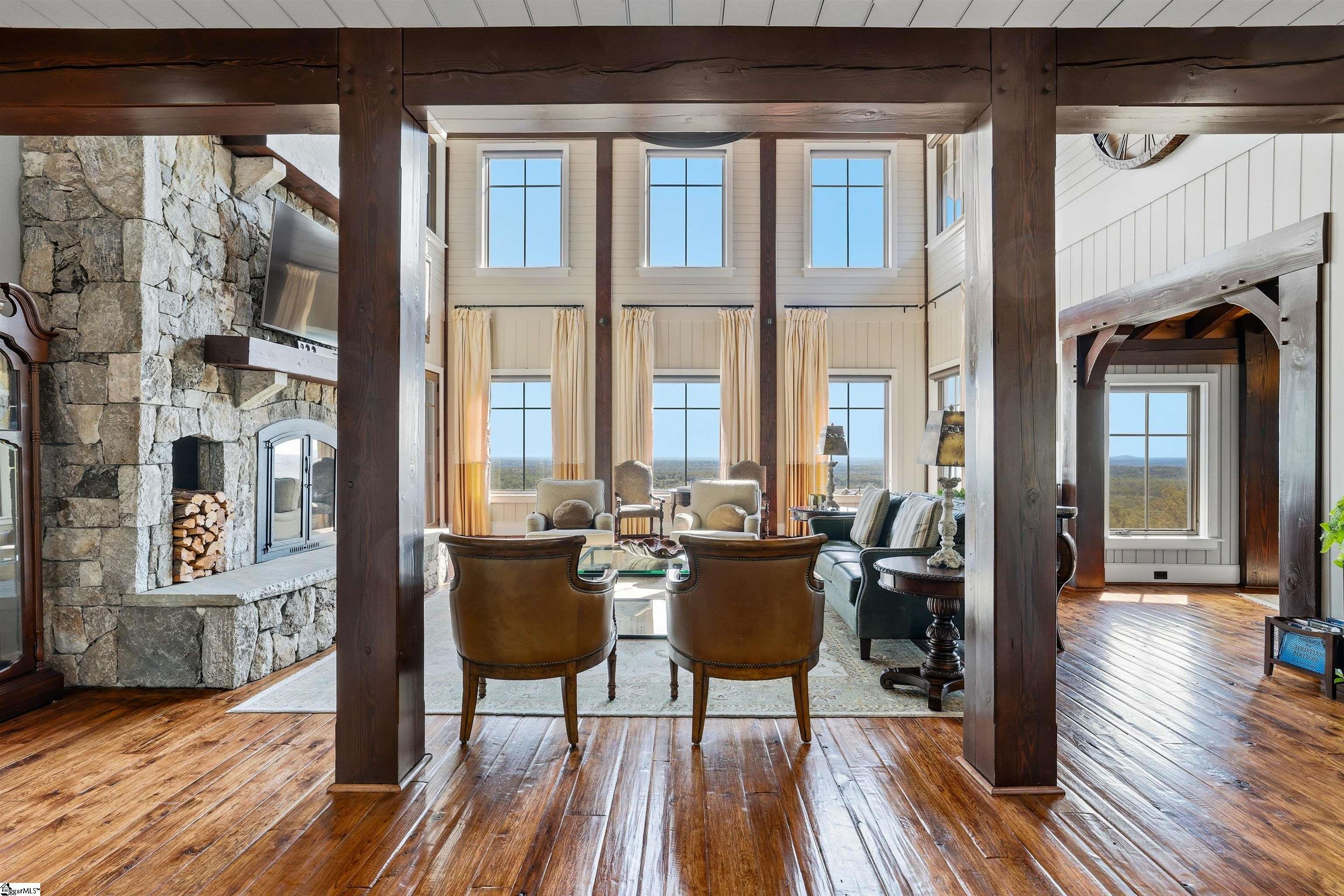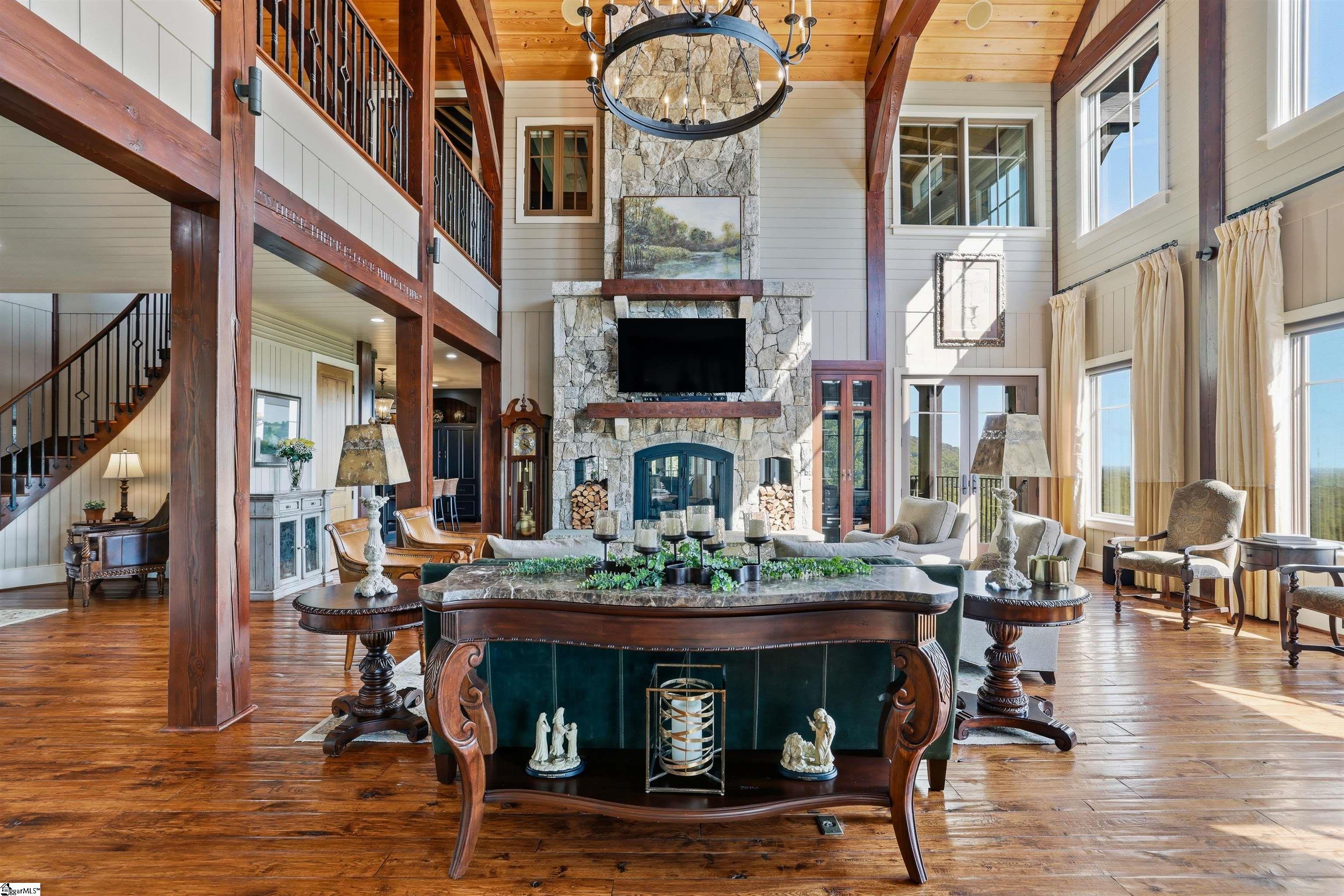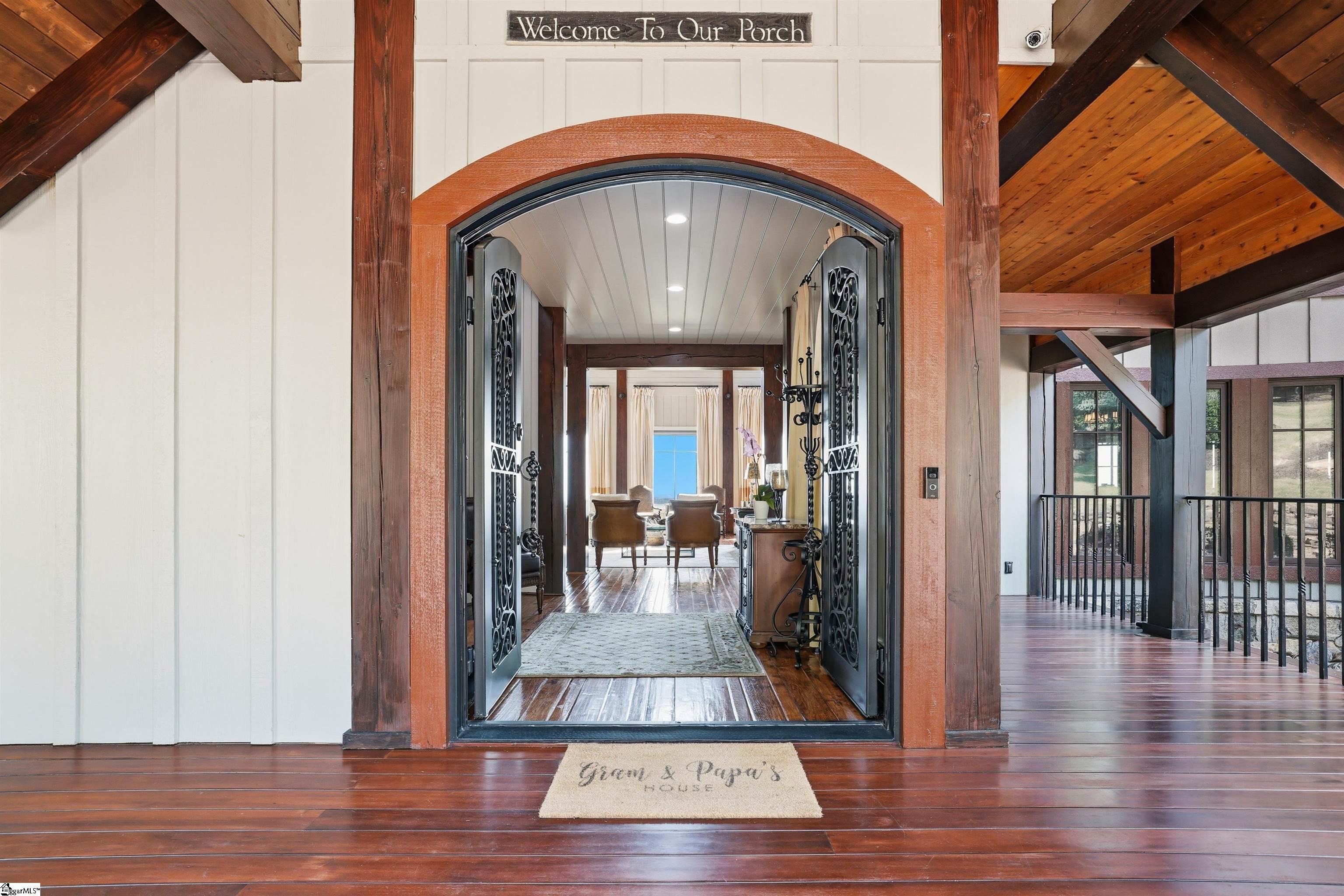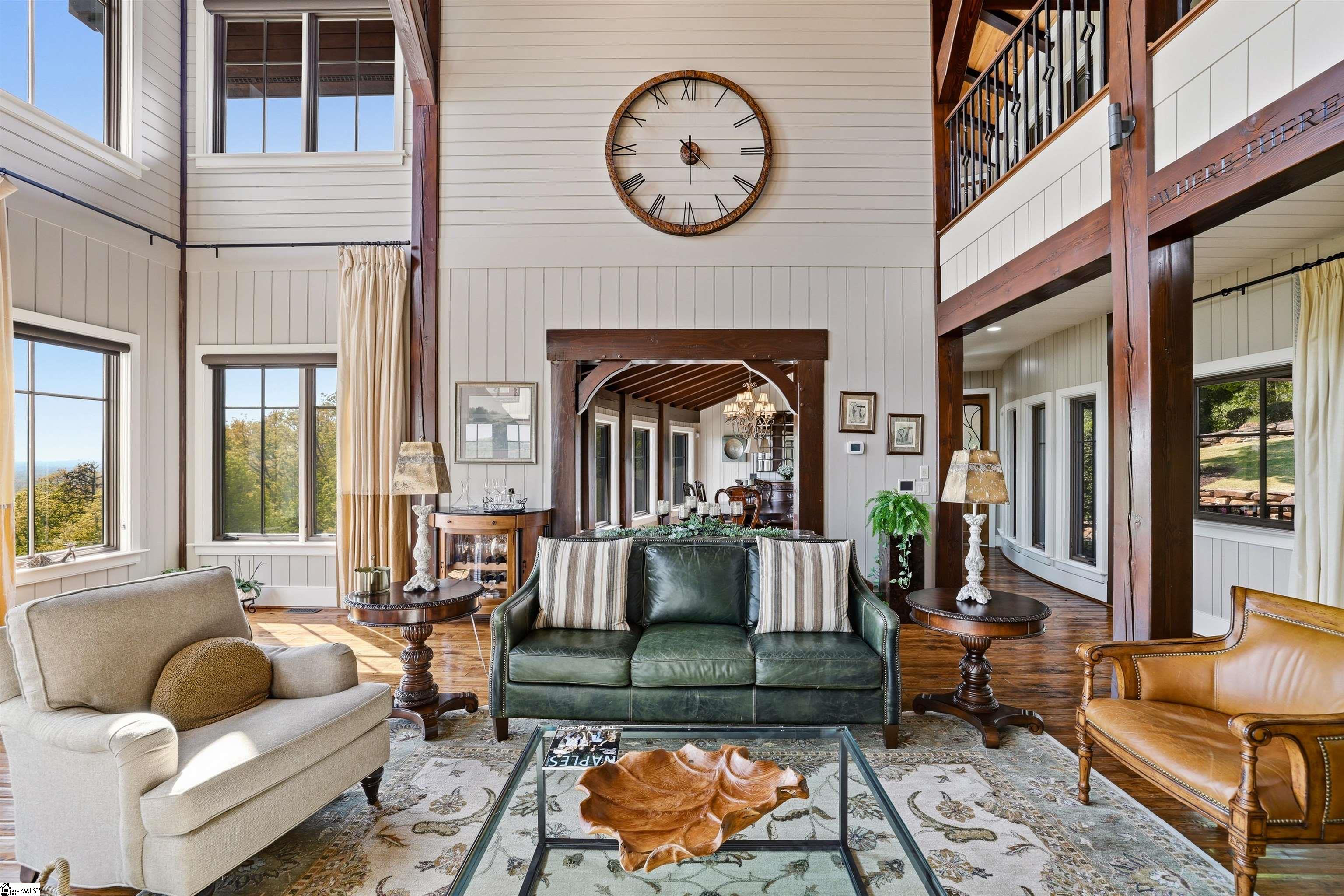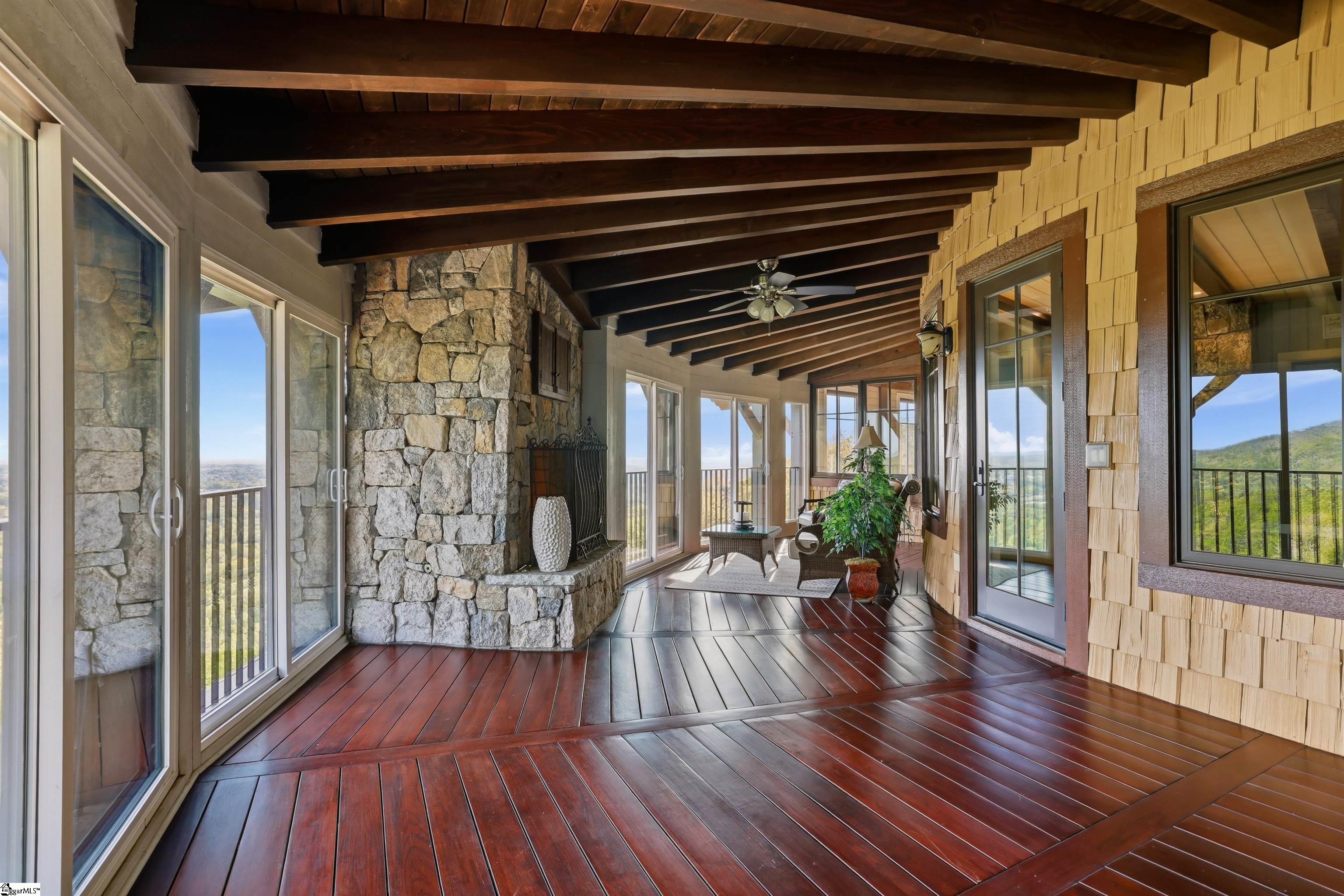 Perched atop Paris Mountain, 5 Tropicana Court is a one-of-a-kind luxury residence offering breathtaking panoramic views, exceptional craftsmanship, and a seamless blend of natural beauty and refined design. Enjoy stunning 180-degree vistas of downtown Greenville, Furman University’s Mirror Lake, and the Blue Ridge Mountains from nearly every angle of this remarkable property. Spanning over 6,000 square feet, this architectural masterpiece showcases exposed Douglas fir beams, Amish hand-scraped hickory hardwood floors, tongue-and-groove poplar walls, and custom 8-foot walnut interior doors—creating a warm, elevated aesthetic throughout with no drywall in the home. The gourmet kitchen is thoughtfully designed for both everyday living and entertaining. Featuring a fully up-fitted kitchen with custom solid wood cabinetry throughout. The main living areas offer incredible flexibility, from a dramatic great room with soaring ceilings, expansive windows, and a two-story fireplace to a private media room ideal for relaxing evenings. Multiple outdoor living spaces—including three expansive porches and a stone terrace—provide year-round enjoyment and unparalleled vantage points to take in the surrounding landscape. A fire pit area creates the perfect setting for entertaining under the stars. The home features three luxurious primary suites, each with spa-inspired bathrooms with heated floors and custom walk-in closets. An additional apartment over the garage, complete with a kitchenette and Murphy bed, offers ideal accommodations for guests or extended living. Modern conveniences include Vantage Controls automated lighting, a whole-home Juke 18-zone sound system, and a 16KW Generac propane generator for added peace of mind. Ideally located off Altamont Road in the exclusive gated City Lights subdivision, this property offers convenient access to the Swamp Rabbit Trail and is just minutes from the dining, shopping, and cultural attractions of downtown Greenville and Travelers Rest. Upgrades include a fitness studio, art studio, enclosed deck off the primary suite, custom rock wall patio with fire pit and backyard fencing. Further upgrades include approximately 2,700 sq ft of enclosed storage, a Sundance hot tub spa, fireplace enhancements, a GAF slate roof and regular maintenance that enhances the original grandeur of 5 Tropicana Court. This presents a rare opportunity to own a truly exceptional mountain retreat combining luxury, privacy, and proximity to everything Greenville has to offer. Schedule your private showing today.
