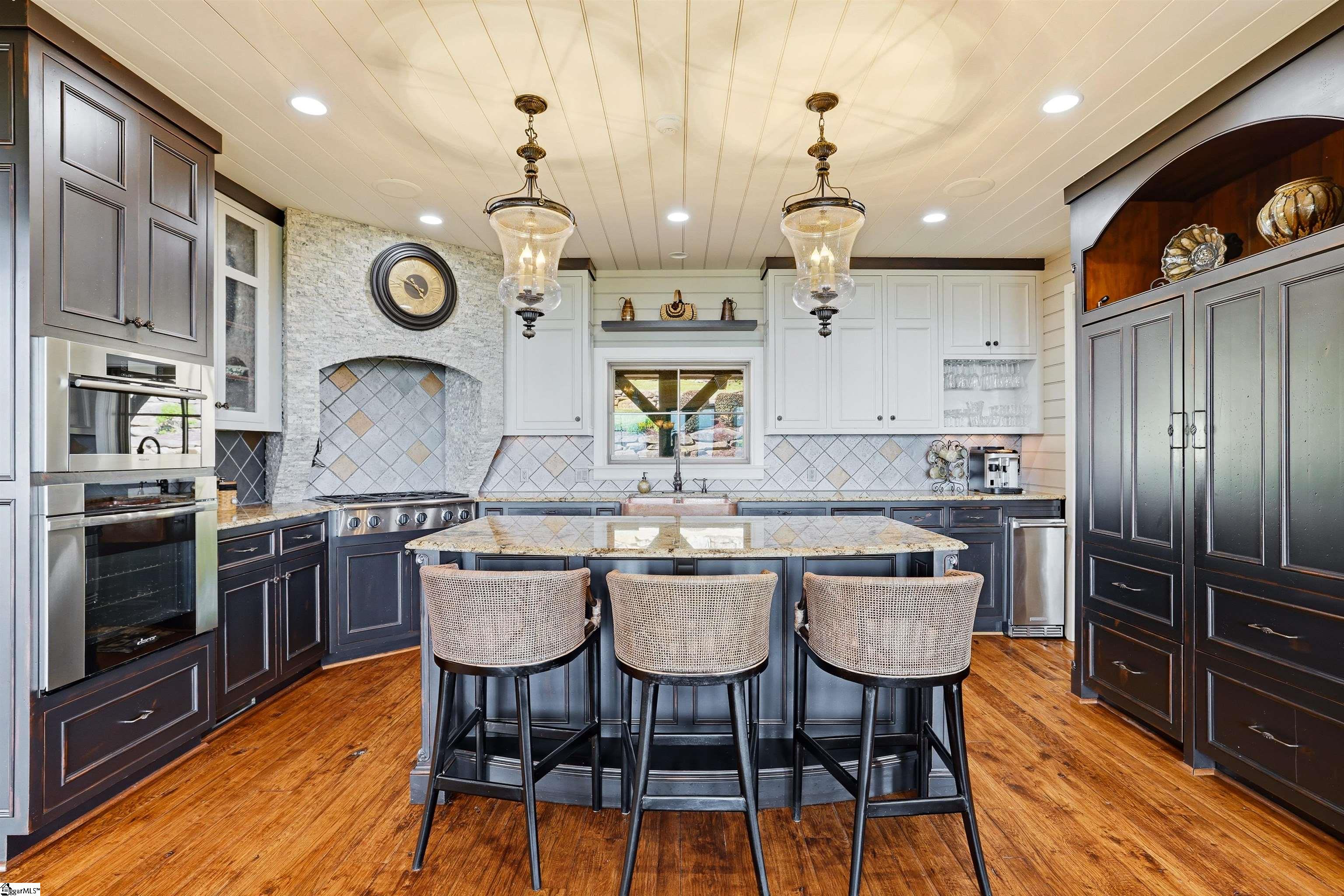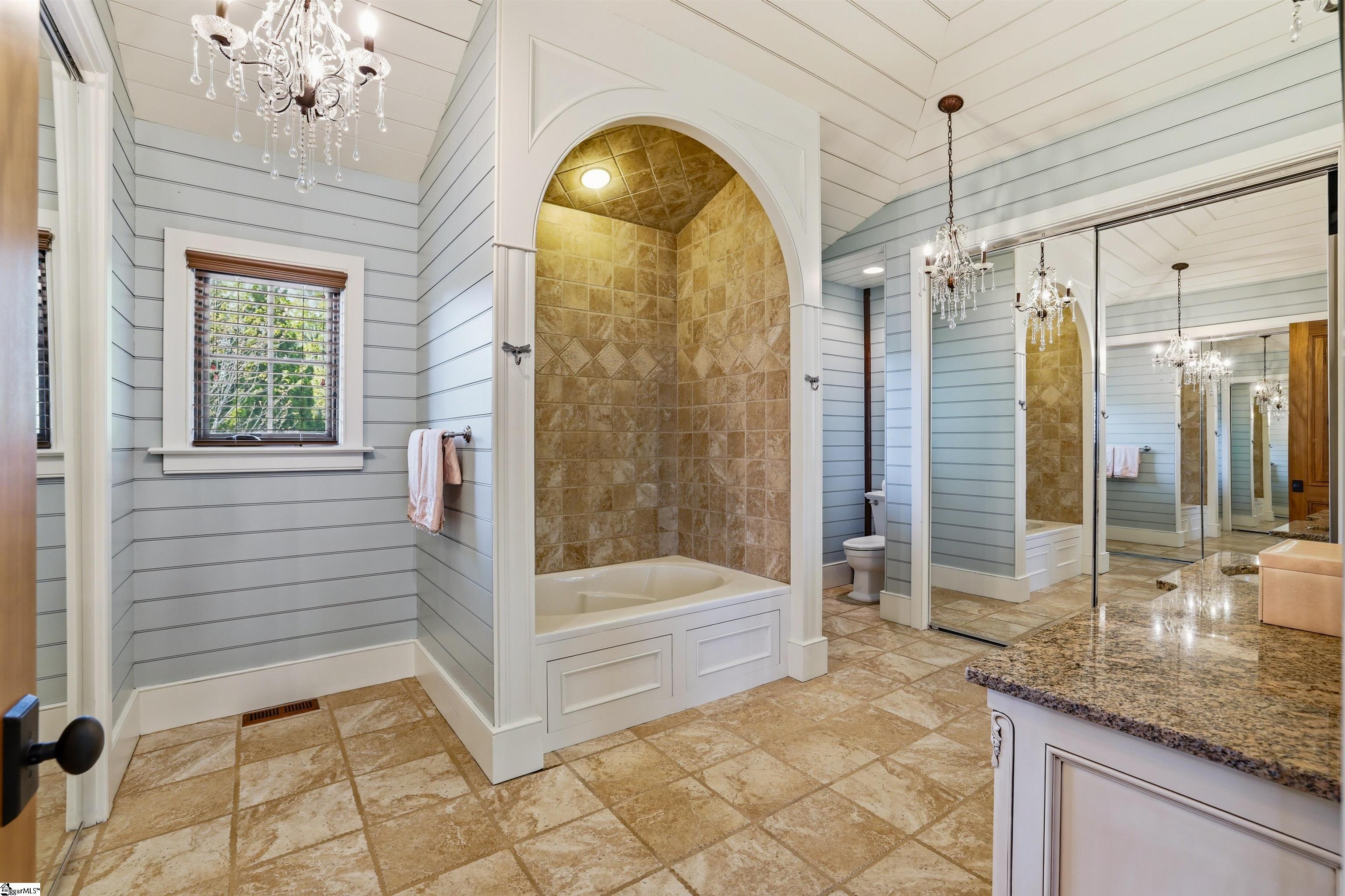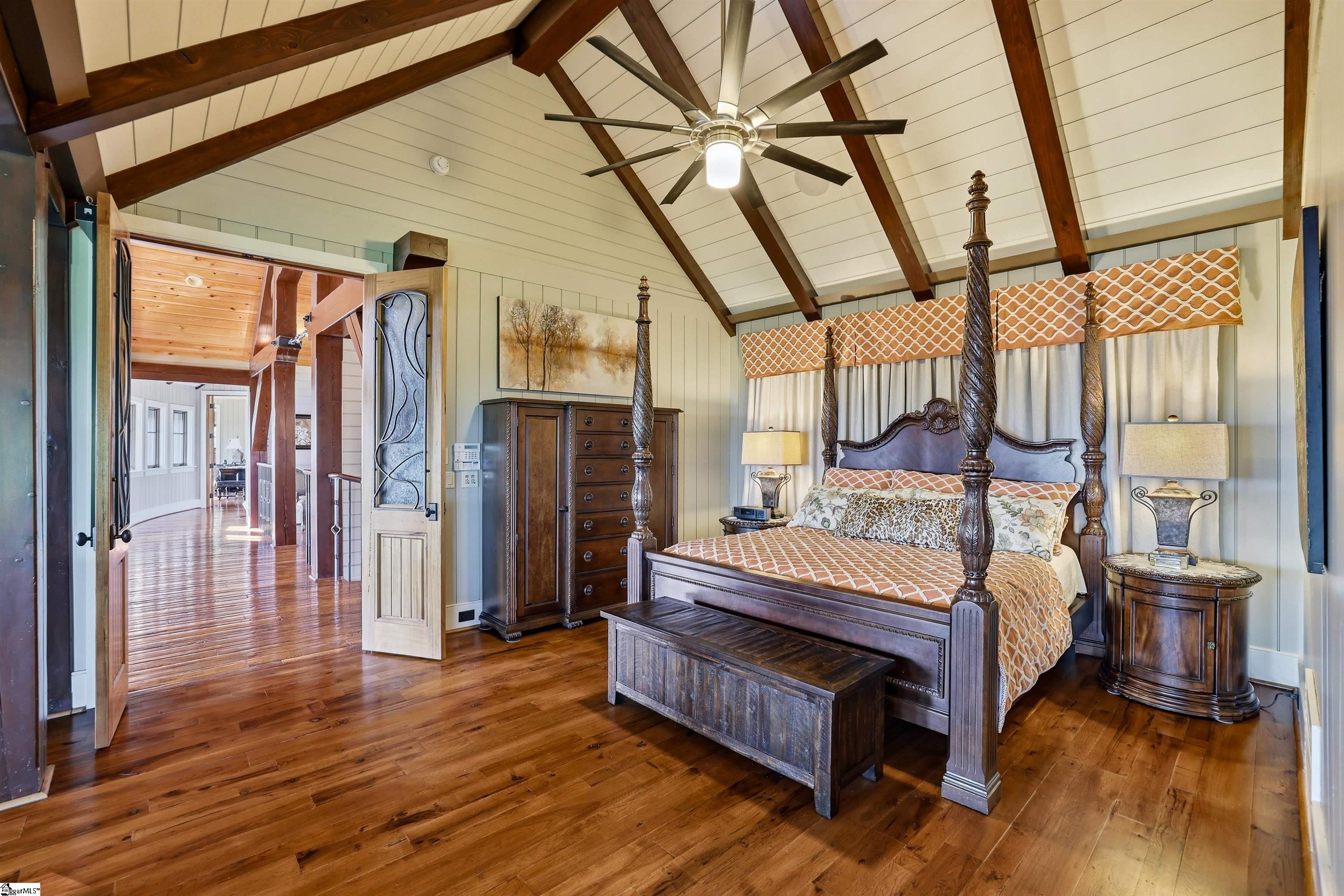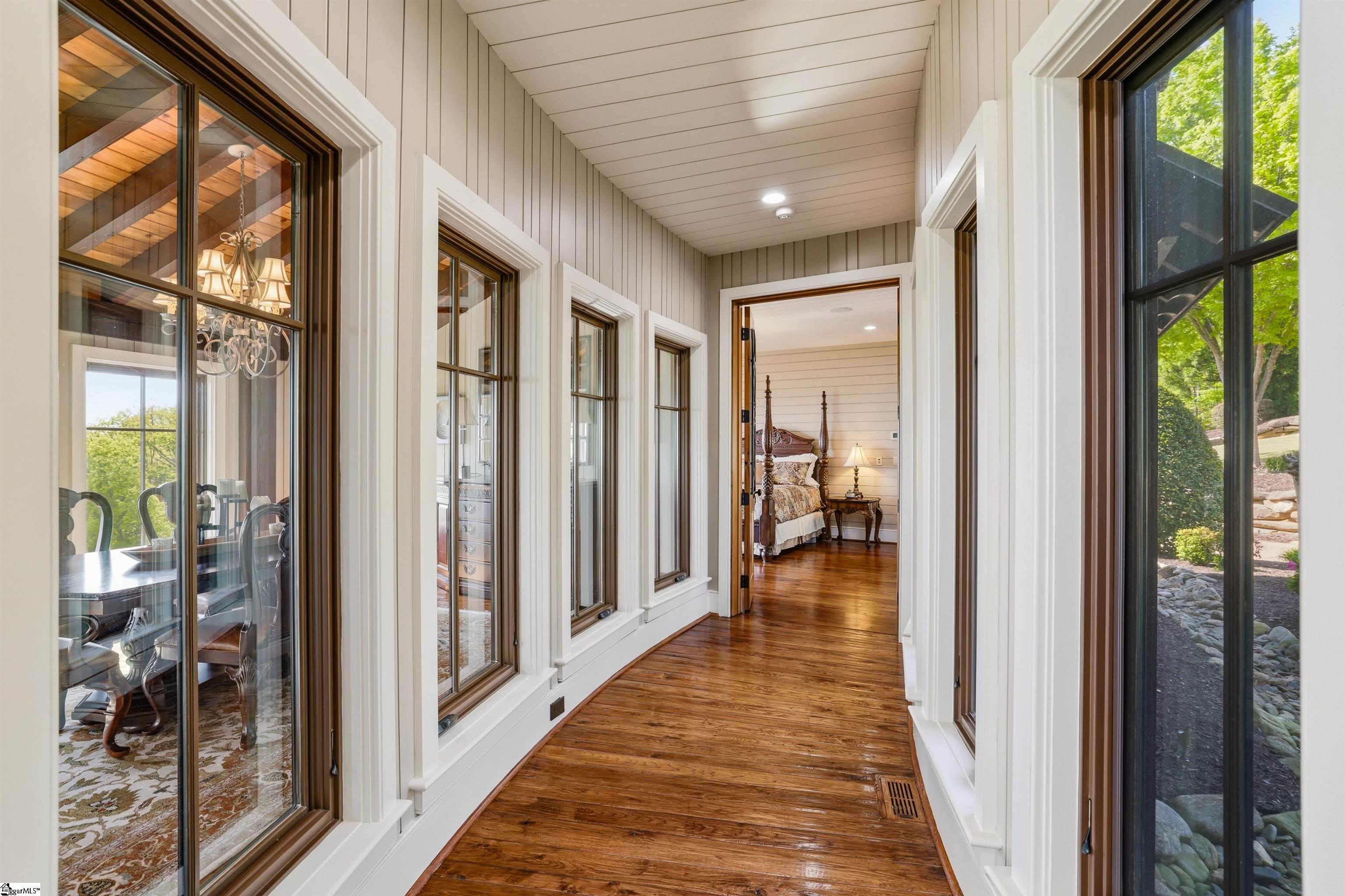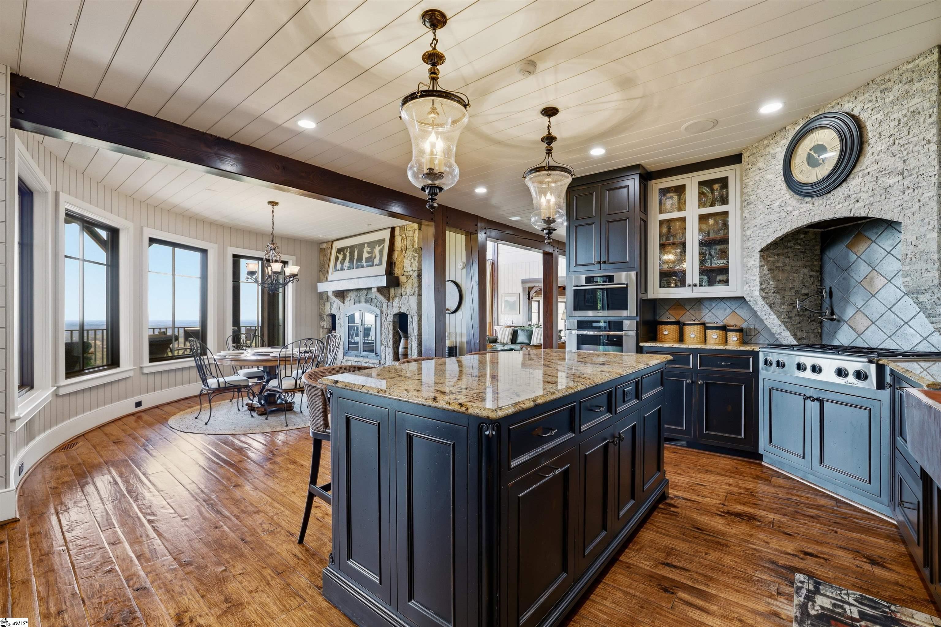 Perched atop Paris Mountain, 5 Tropicana Court is a one-of-a-kind luxury residence offering breathtaking panoramic views, exceptional craftsmanship, and a seamless blend of natural beauty and refined design. Enjoy stunning 180-degree vistas of downtown Greenville, Furman University’s Mirror Lake, and the Blue Ridge Mountains from nearly every angle of this remarkable property. Spanning over 6,000 square feet, this architectural masterpiece showcases exposed Douglas fir beams, Amish hand-scraped hickory hardwood floors, tongue-and-groove poplar walls, and custom 8-foot walnut interior doors—creating a warm, elevated aesthetic throughout with no drywall in the home. The gourmet kitchen is thoughtfully designed for both everyday living and entertaining. Featuring a fully up-fitted kitchen with custom solid wood cabinetry throughout. The main living areas offer incredible flexibility, from a dramatic great room with soaring ceilings, expansive windows, and a two-story fireplace to a private media room ideal for relaxing evenings. Multiple outdoor living spaces—including three expansive porches and a stone terrace—provide year-round enjoyment and unparalleled vantage points to take in the surrounding landscape. A fire pit area creates the perfect setting for entertaining under the stars. The home features three luxurious primary suites, each with spa-inspired bathrooms with heated floors and custom walk-in closets. An additional apartment over the garage, complete with a kitchenette and Murphy bed, offers ideal accommodations for guests or extended living. Modern conveniences include Vantage Controls automated lighting, a whole-home Juke 18-zone sound system, and a 16KW Generac propane generator for added peace of mind. Ideally located off Altamont Road in the exclusive gated City Lights subdivision, this property offers convenient access to the Swamp Rabbit Trail and is just minutes from the dining, shopping, and cultural attractions of downtown Greenville and Travelers Rest. Upgrades include a fitness studio, art studio, enclosed deck off the primary suite, custom rock wall patio with fire pit and backyard fencing. Further upgrades include approximately 2,700 sq ft of enclosed storage, a Sundance hot tub spa, fireplace enhancements, a GAF slate roof and regular maintenance that enhances the original grandeur of 5 Tropicana Court. This presents a rare opportunity to own a truly exceptional mountain retreat combining luxury, privacy, and proximity to everything Greenville has to offer. Schedule your private showing today.