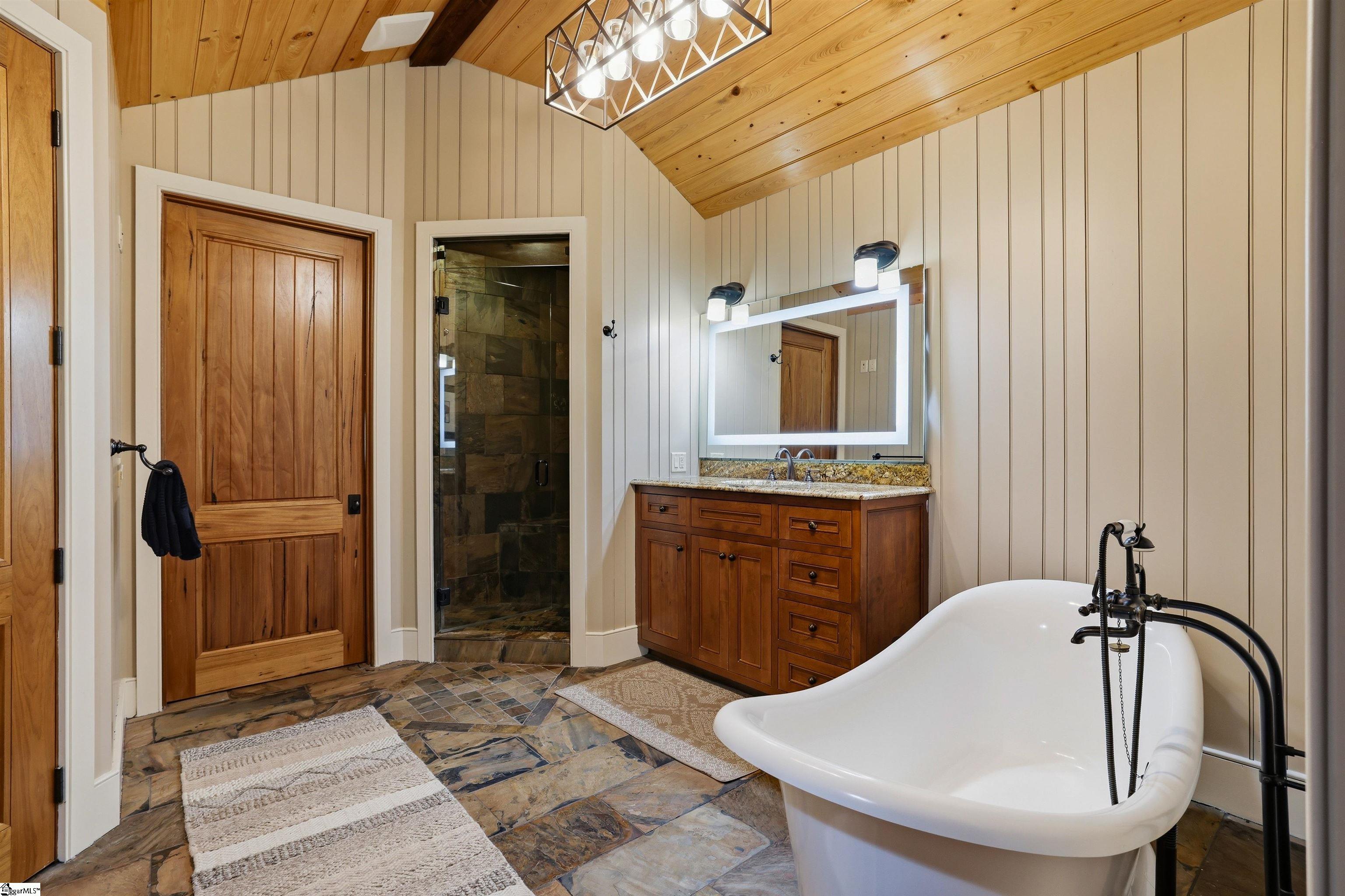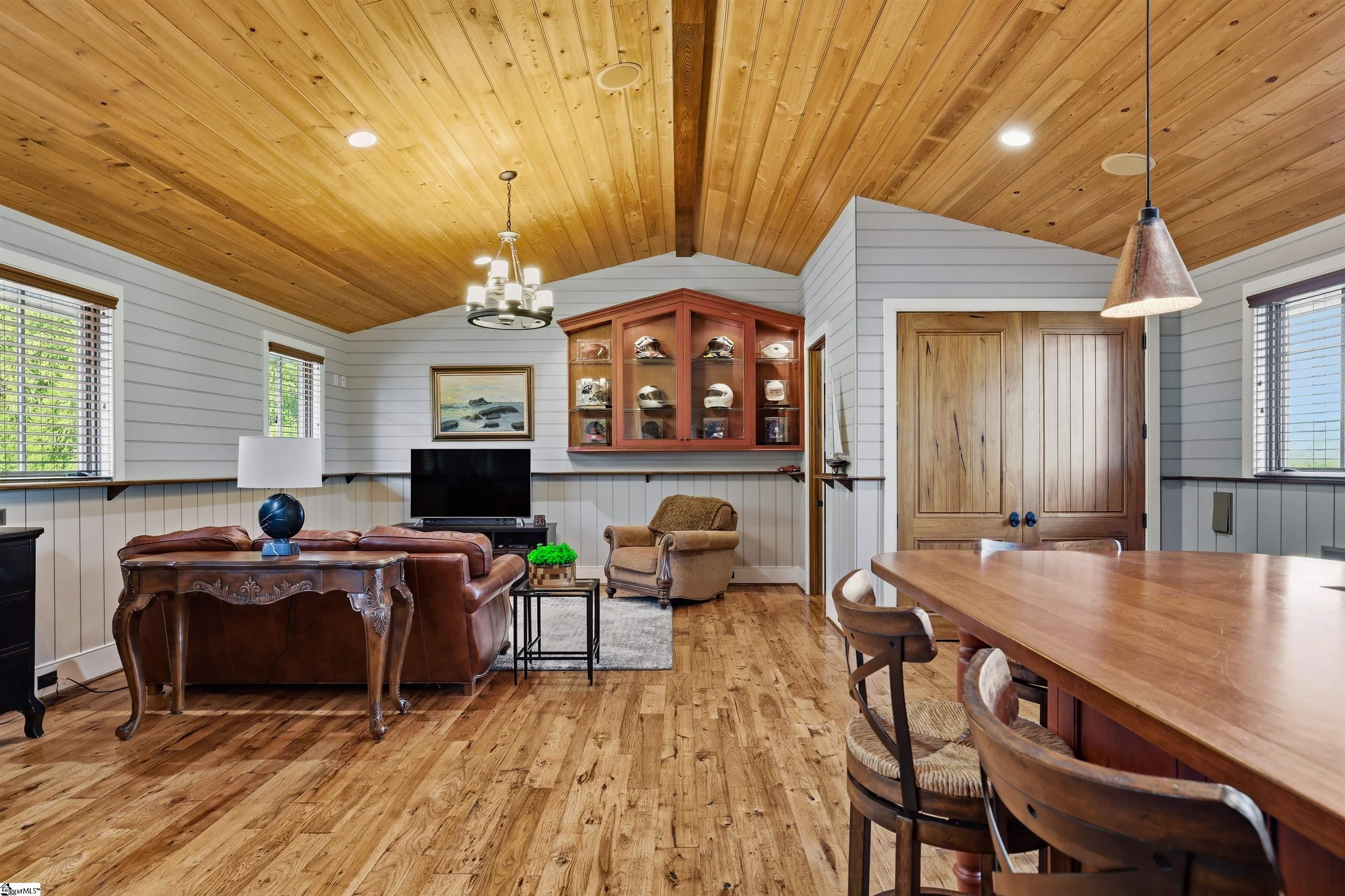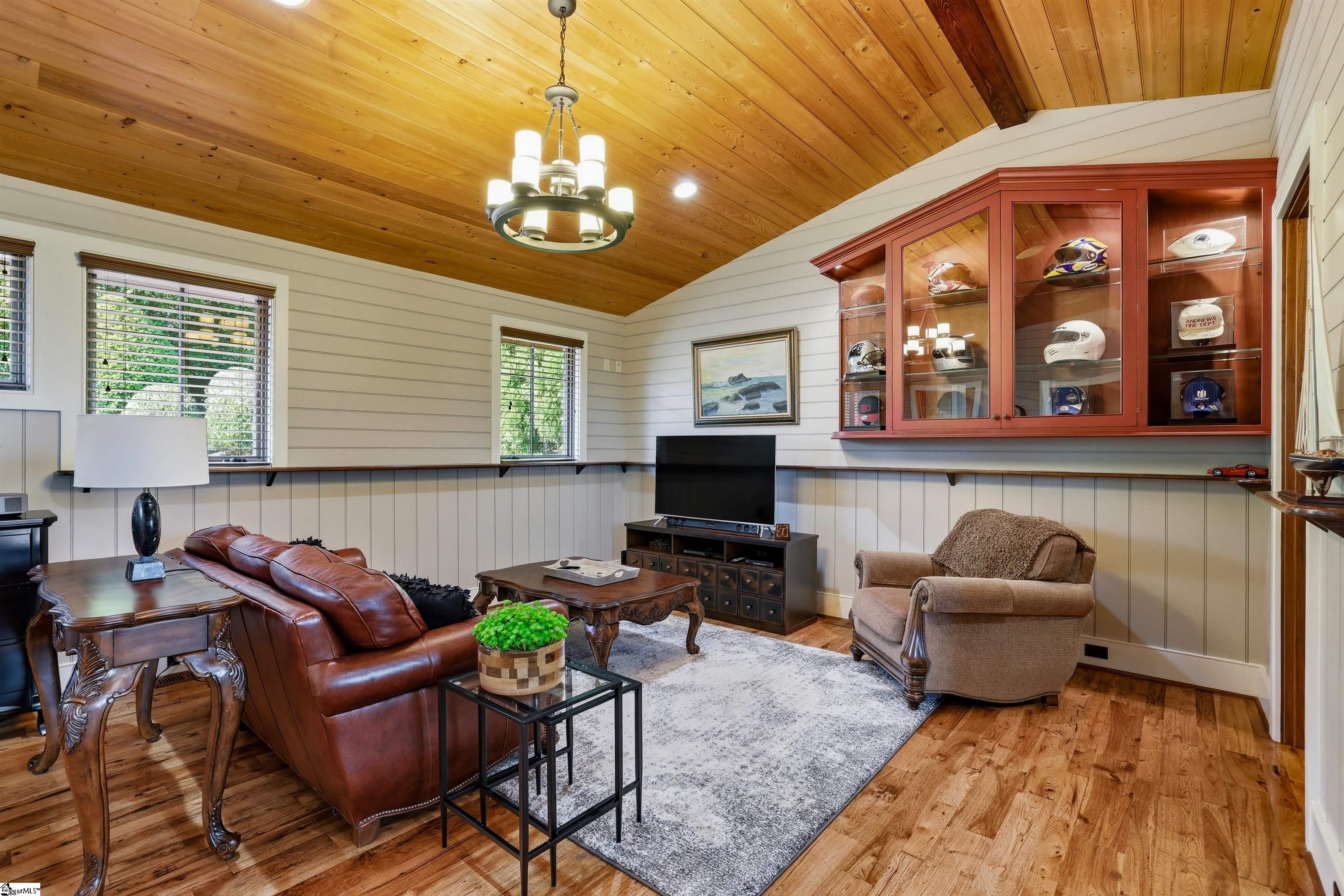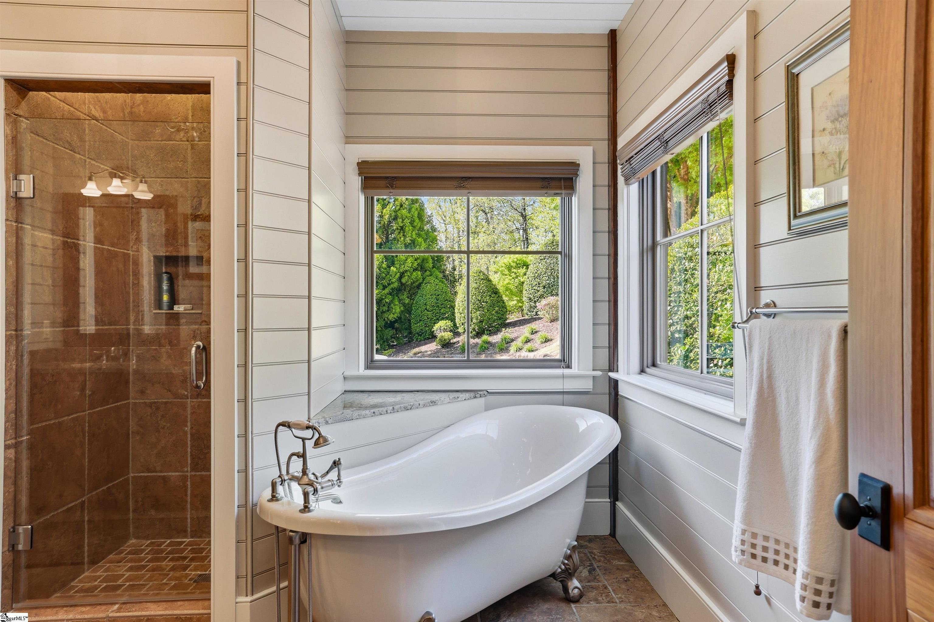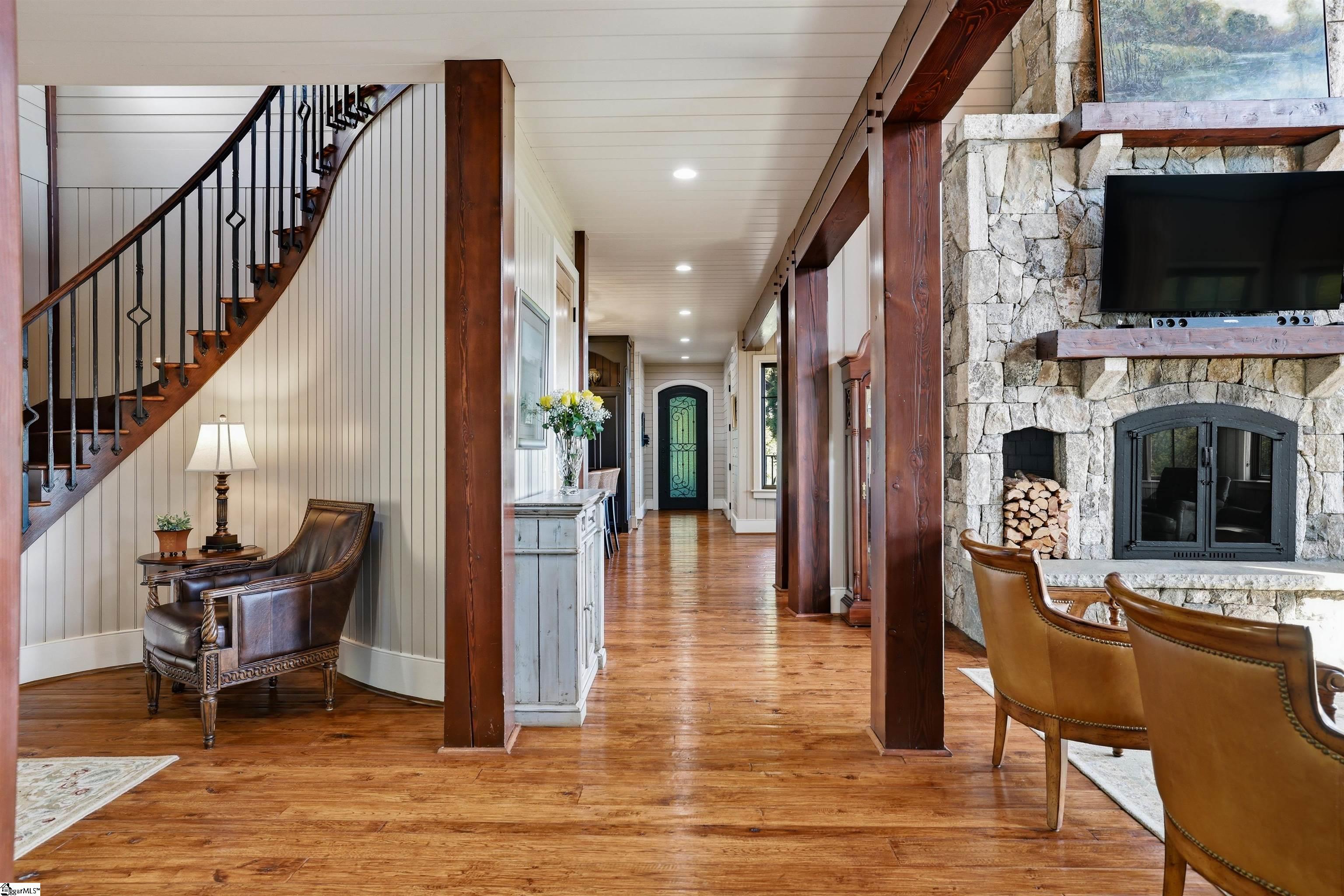 Perched atop Paris Mountain, 5 Tropicana Court is a one-of-a-kind luxury residence offering breathtaking panoramic views, exceptional craftsmanship, and a seamless blend of natural beauty and refined design. Enjoy stunning 180-degree vistas of downtown Greenville, Furman University’s Mirror Lake, and the Blue Ridge Mountains from nearly every angle of this remarkable property. Spanning over 6,000 square feet, this architectural masterpiece showcases exposed Douglas fir beams, Amish hand-scraped hickory hardwood floors, tongue-and-groove poplar walls, and custom 8-foot walnut interior doors—creating a warm, elevated aesthetic throughout with no drywall in the home. The gourmet kitchen is thoughtfully designed for both everyday living and entertaining. Featuring a fully up-fitted kitchen with custom solid wood cabinetry throughout. The main living areas offer incredible flexibility, from a dramatic great room with soaring ceilings, expansive windows, and a two-story fireplace to a private media room ideal for relaxing evenings. Multiple outdoor living spaces—including three expansive porches and a stone terrace—provide year-round enjoyment and unparalleled vantage points to take in the surrounding landscape. A fire pit area creates the perfect setting for entertaining under the stars. The home features three luxurious primary suites, each with spa-inspired bathrooms with heated floors and custom walk-in closets. An additional apartment over the garage, complete with a kitchenette and Murphy bed, offers ideal accommodations for guests or extended living. Modern conveniences include Vantage Controls automated lighting, a whole-home Juke 18-zone sound system, and a 16KW Generac propane generator for added peace of mind. Ideally located off Altamont Road in the exclusive gated City Lights subdivision, this property offers convenient access to the Swamp Rabbit Trail and is just minutes from the dining, shopping, and cultural attractions of downtown Greenville and Travelers Rest. Upgrades include a fitness studio, art studio, enclosed deck off the primary suite, custom rock wall patio with fire pit and backyard fencing. Further upgrades include approximately 2,700 sq ft of enclosed storage, a Sundance hot tub spa, fireplace enhancements, a GAF slate roof and regular maintenance that enhances the original grandeur of 5 Tropicana Court. This presents a rare opportunity to own a truly exceptional mountain retreat combining luxury, privacy, and proximity to everything Greenville has to offer. Schedule your private showing today.