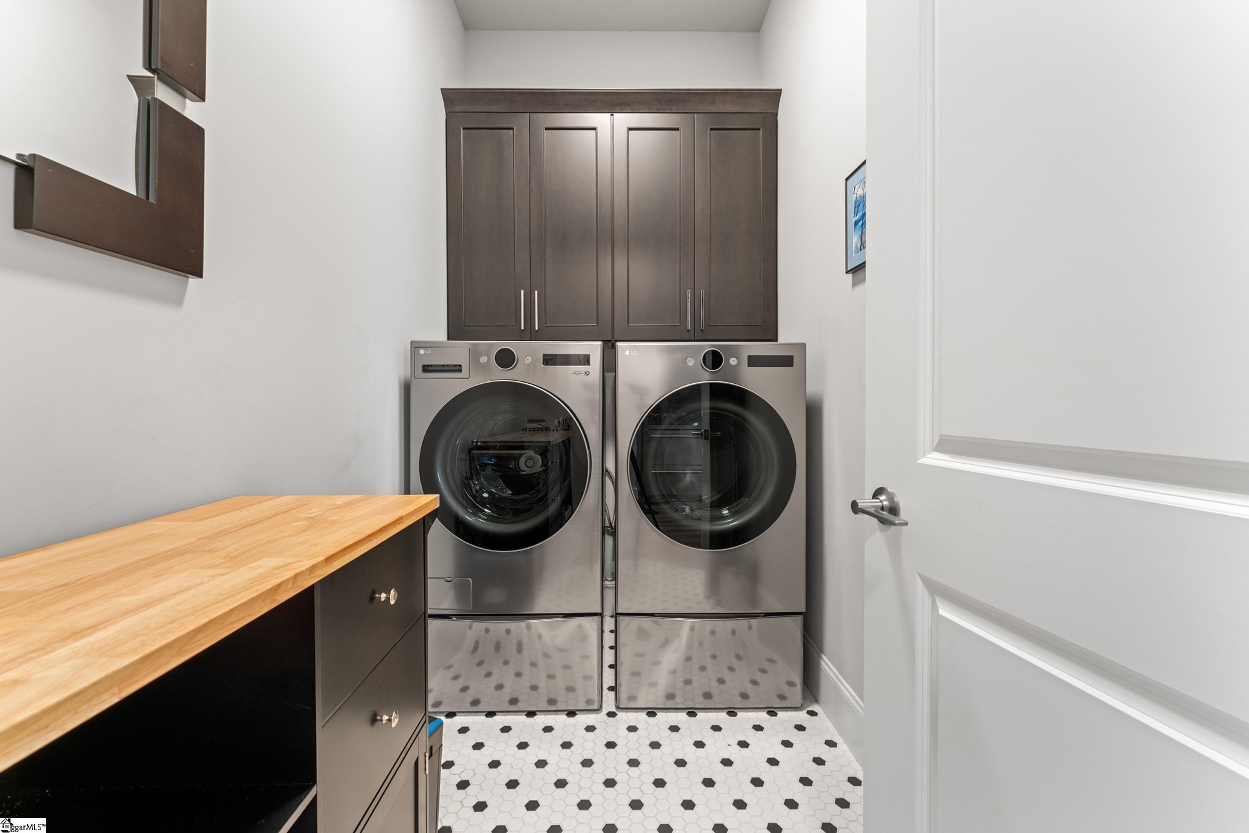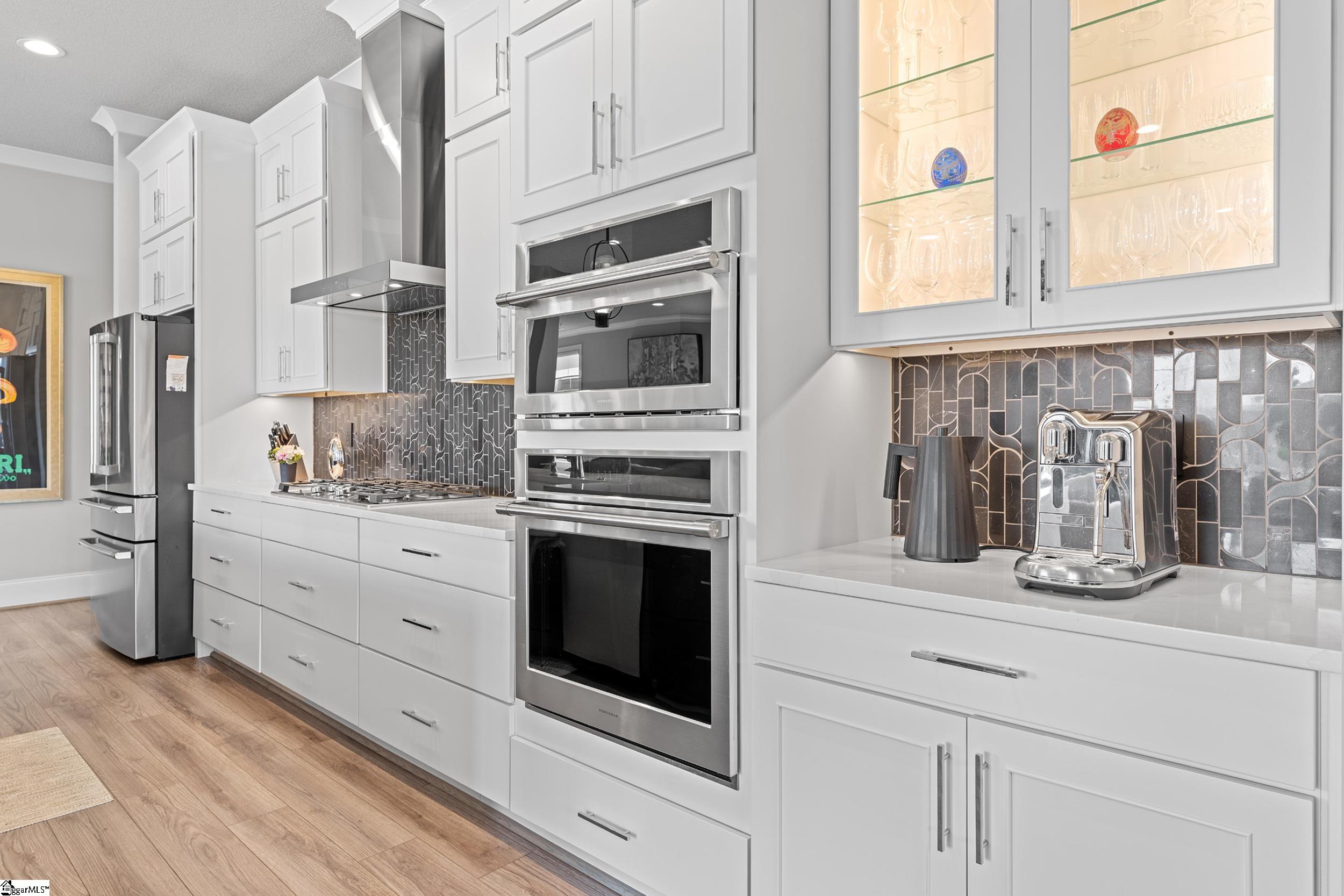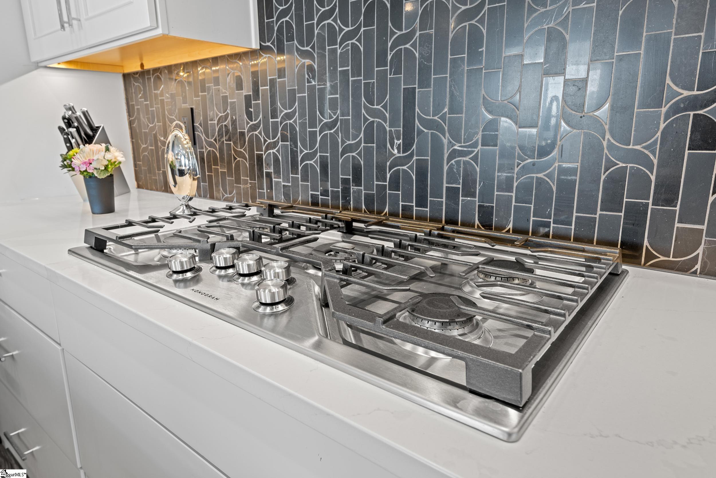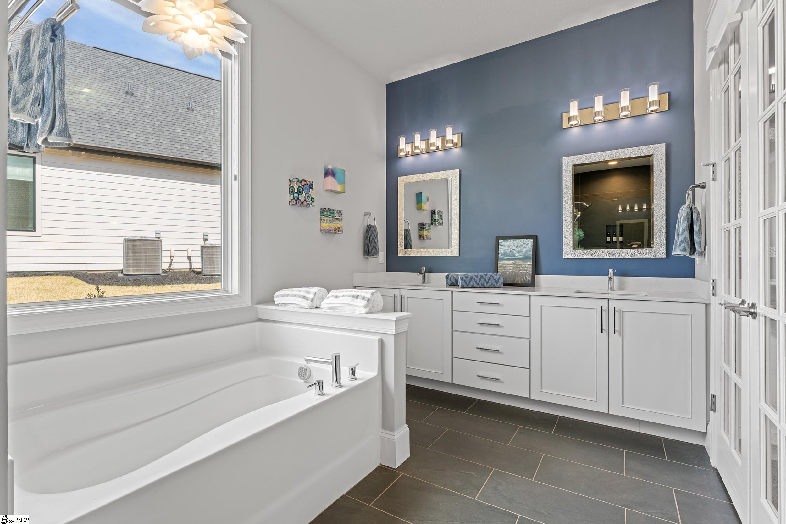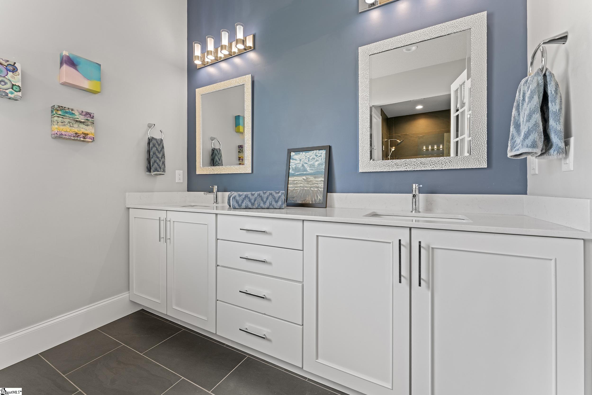 Welcome to this light-filled, energy-efficient, expertly crafted contemporary home in the heart of Five Forks—one of Greenville County’s most sought-after locations, known for its convenience to shopping, dining, and everyday amenities. Designed for both comfort and style, the main level features soaring 10-foot ceilings and a spacious open-concept living and dining area, perfect for gathering and entertaining. The chef’s kitchen is a true centerpiece, showcasing Monogram stainless steel appliances and a stunning 12-foot quartz waterfall island. The main-level primary suite offers a spa-like tiled bath, while a dedicated study/media room, designer half bath with warm copper tones, and a tiled laundry room complete the first floor. Upstairs, you’ll find two additional bedrooms, a beautifully finished full bath with a frameless glass tub enclosure, and a bright loft/flex space ideal for a second living area, office, or playroom. No detail has been overlooked in this luxury home. Interior highlights include transom windows that enhance natural light, crown molding throughout the main level, a floor-to-ceiling Perpetuo stone linear gas fireplace, a natural marble Pietra Divina backsplash, custom closets and pantry storage, smart-controlled roller shades, designer lighting and fans, and a truly stunning Barletta multidrop chandelier by Eurofase that makes a statement in the stairwell. Thoughtful construction upgrades further enhance the home’s efficiency and comfort, including roof decking upgraded from standard plywood to Solar Board—featuring a reflective silver coating on both sides that helps reduce heat transfer and improves energy retention by minimizing loss through the roof. Outdoor living is just as impressive, with professionally designed landscaping, low-voltage lighting, drip irrigation, and a beautifully fenced garden featuring perennials and Japanese maples. Enjoy it all from the screened and covered porch with a stone-faced gas fireplace and epoxy-coated flooring perfect for year-round enjoyment. The garage is equally well-equipped with epoxy flooring, EV wiring, and a transfer switch for a generator. Situated on a beautiful corner lot in a quiet neighborhood, this low-maintenance property also includes lawn care, irrigation, and trash service covered by the HOA. This is a rare opportunity to own a thoughtfully designed, move-in-ready home in one of the Upstate’s most desirable areas. Schedule your showing today, this one won’t last!