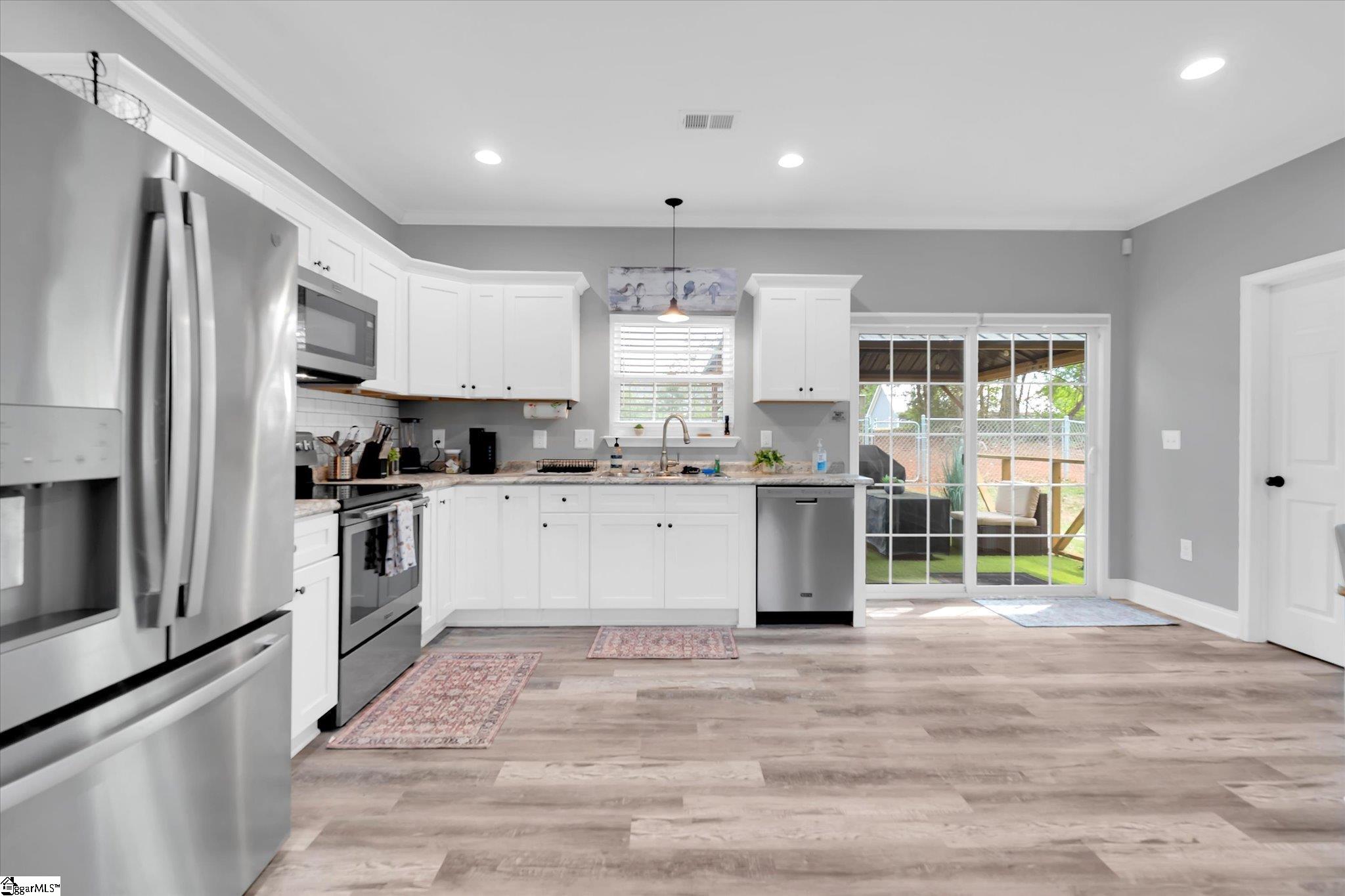 Looking for a Home without HOA or an Investment Home for Airbnb or Short Term Rental?? This modern 3-bedroom, 2-bath home sits on a spacious half-acre lot and is fully optimized for flexibility as a primary residence or income-producing short-term rental. The open-concept layout features luxury vinyl plank flooring throughout and a completely carpet-free design, making the home durable and low-maintenance, ideal for high guest turnover. The primary suite includes a large walk-in closet, dual sinks, and a relaxing private feel. A convenient side entrance leads directly into the laundry room, offering functional access for everyday living or guest use. Exterior finishes include stone veneer and vinyl siding, providing strong curb appeal with minimal upkeep. The fenced backyard enhances privacy and usability, featuring a gazebo, perfect for outdoor entertaining, a key driver for Airbnb guest satisfaction. With no HOA restrictions, this property provides added flexibility for short-term rental use. Its layout, finishes, and outdoor amenities make it a strong candidate for Airbnb or VRBO, while still serving perfectly as a full-time residence.