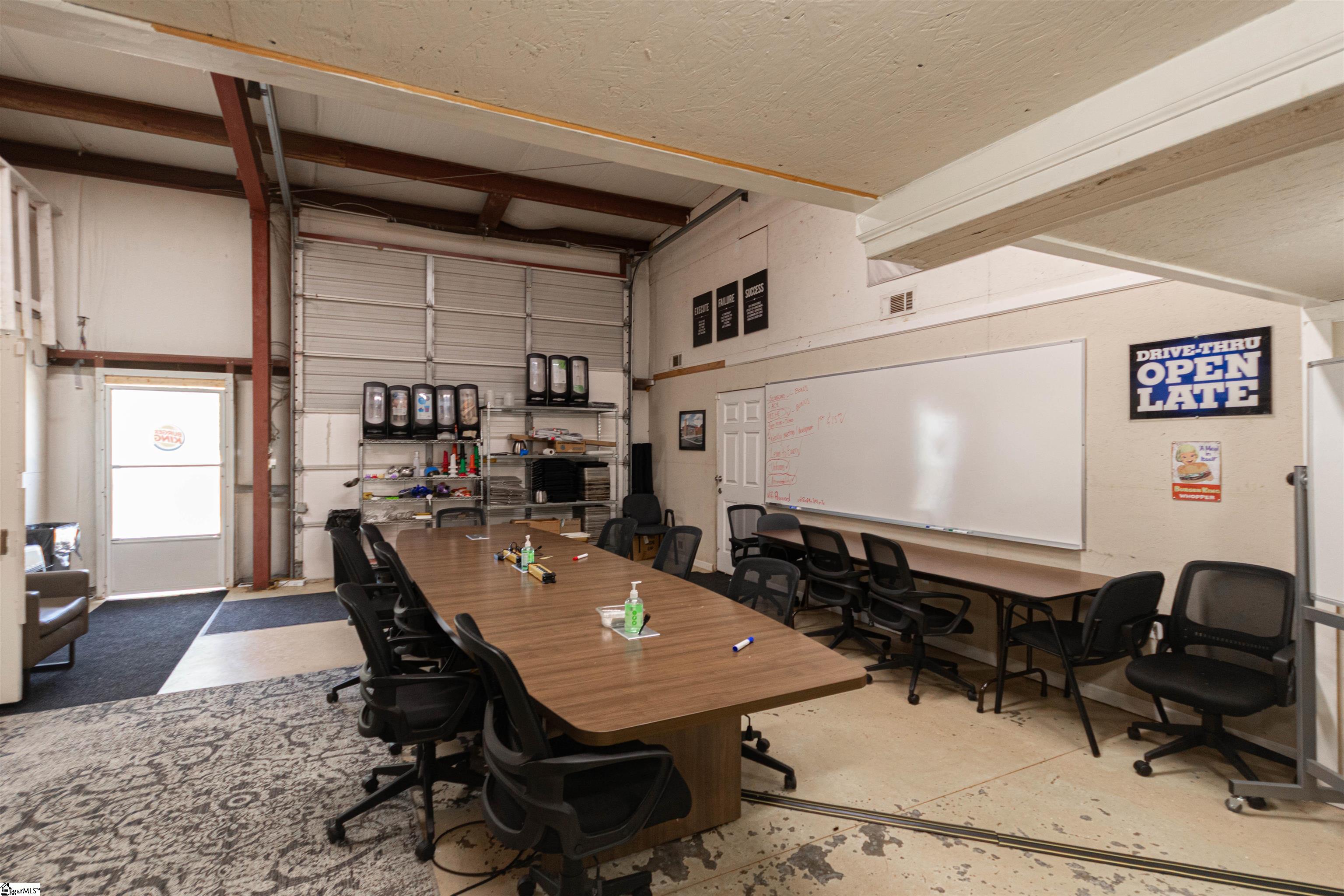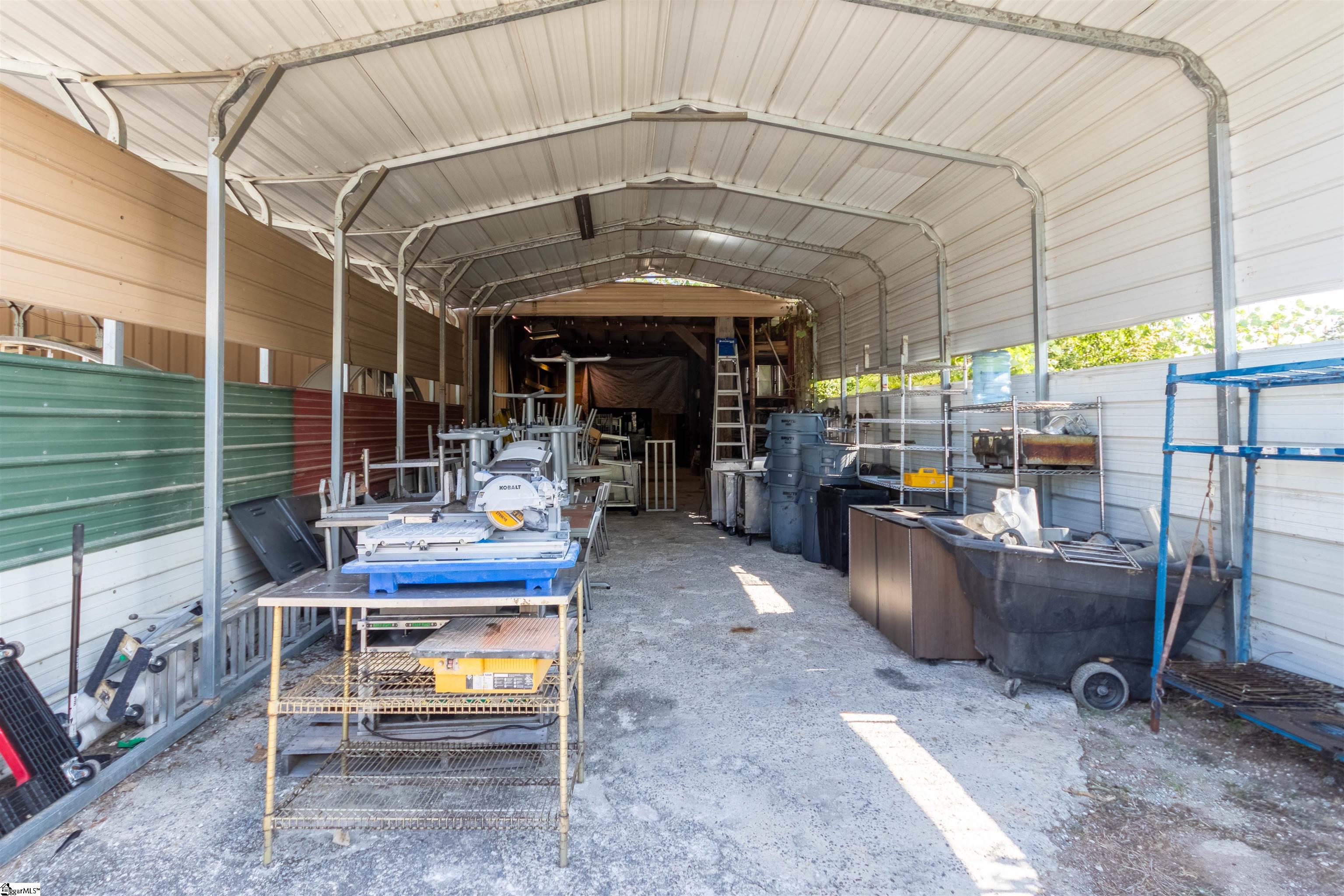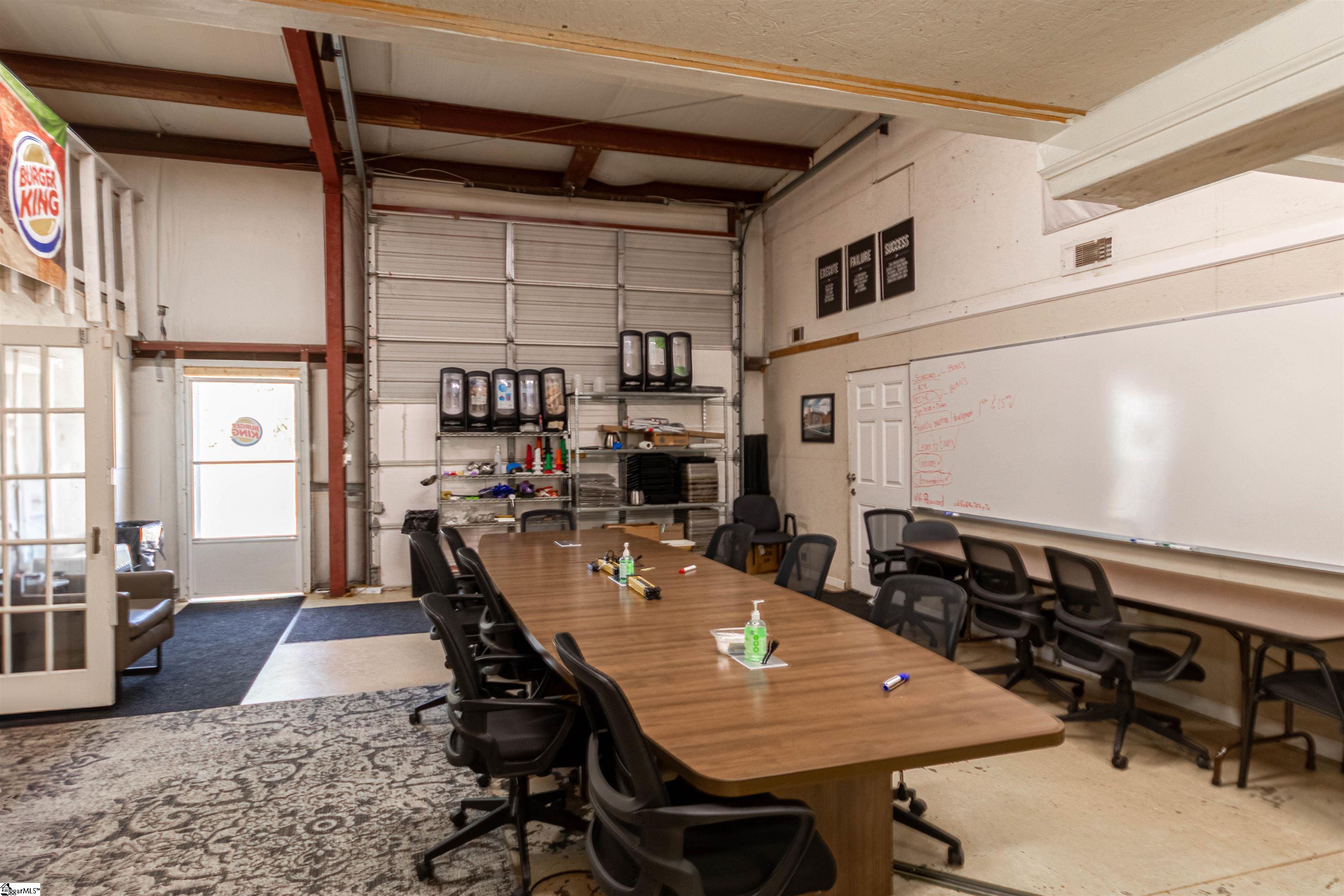 Spacious commercial building located just off Lake Greenwood, offering a flexible layout for a variety of business needs. The property features three large, camper-sized carport bays and generous warehouse space. Portions of the building are heated and cooled, including some office and meeting areas. The main level includes multiple workspaces, a kitchen, a full bathroom with shower, and an additional half bath. Upstairs offers several separate rooms ideal for offices or storage, along with another half bath. The property is currently on well water and septic, with public water expected once county lines are extended (timeline not yet available). Ample lot space and parking provide added convenience for a wide range of uses.