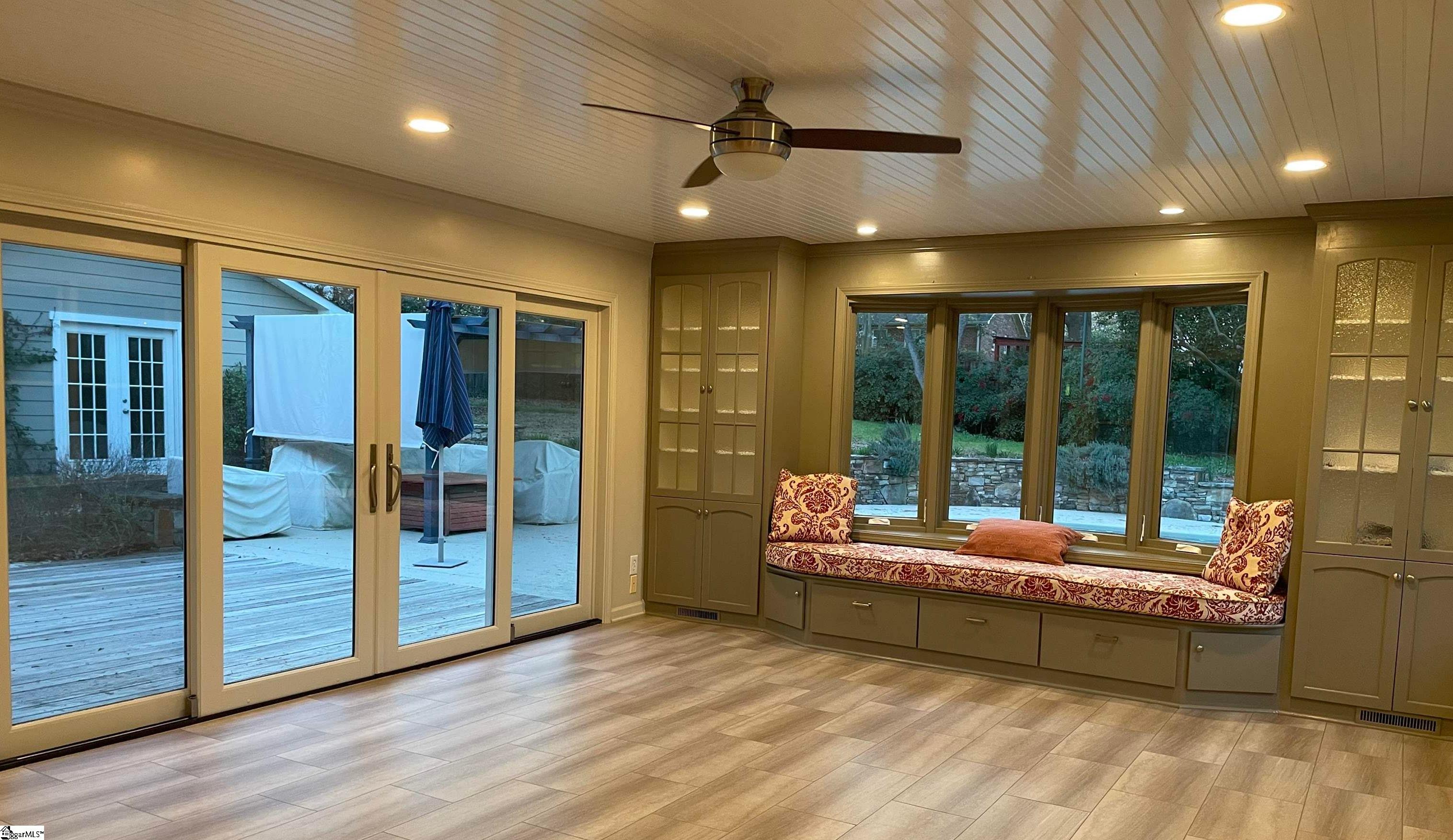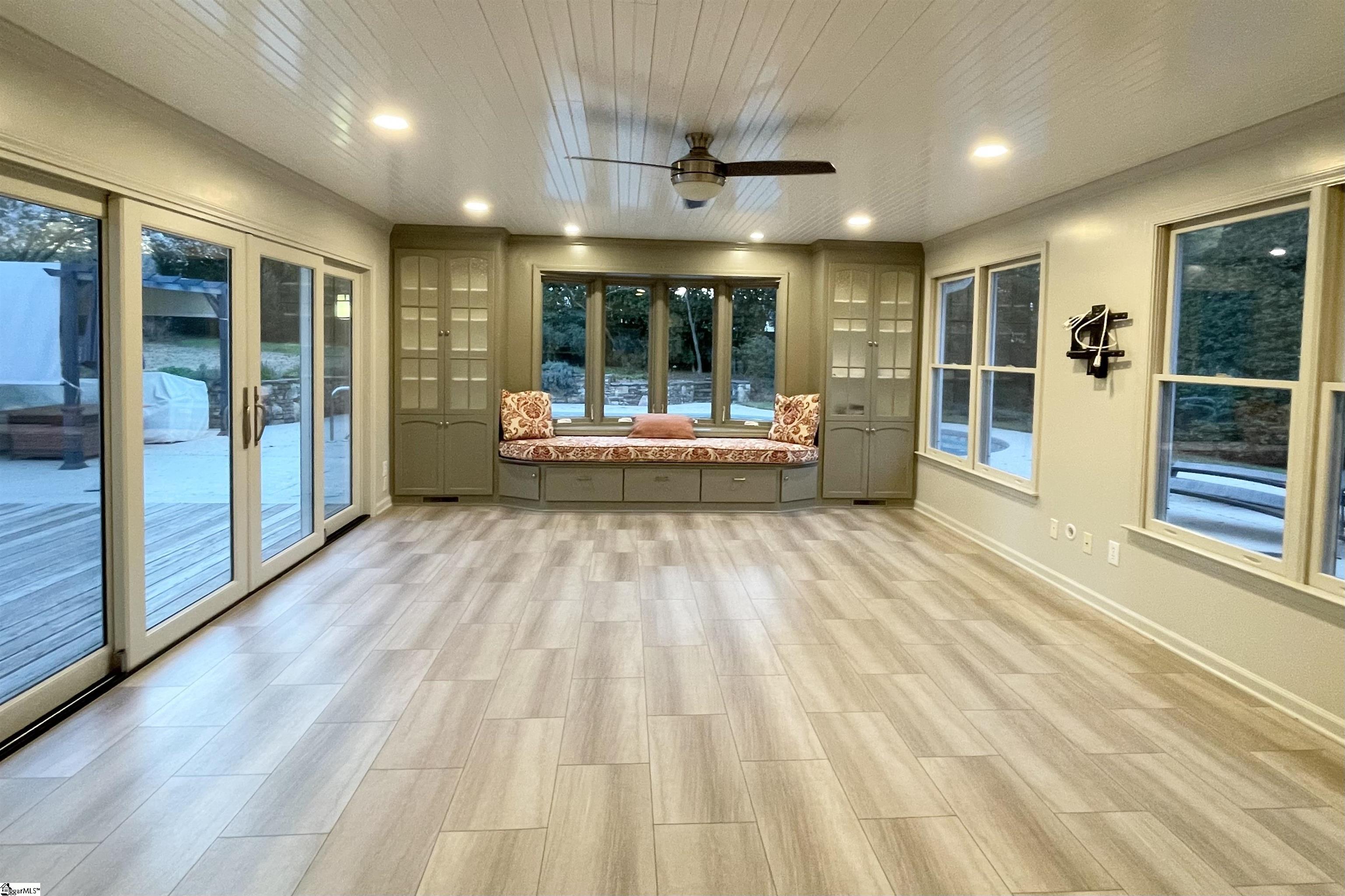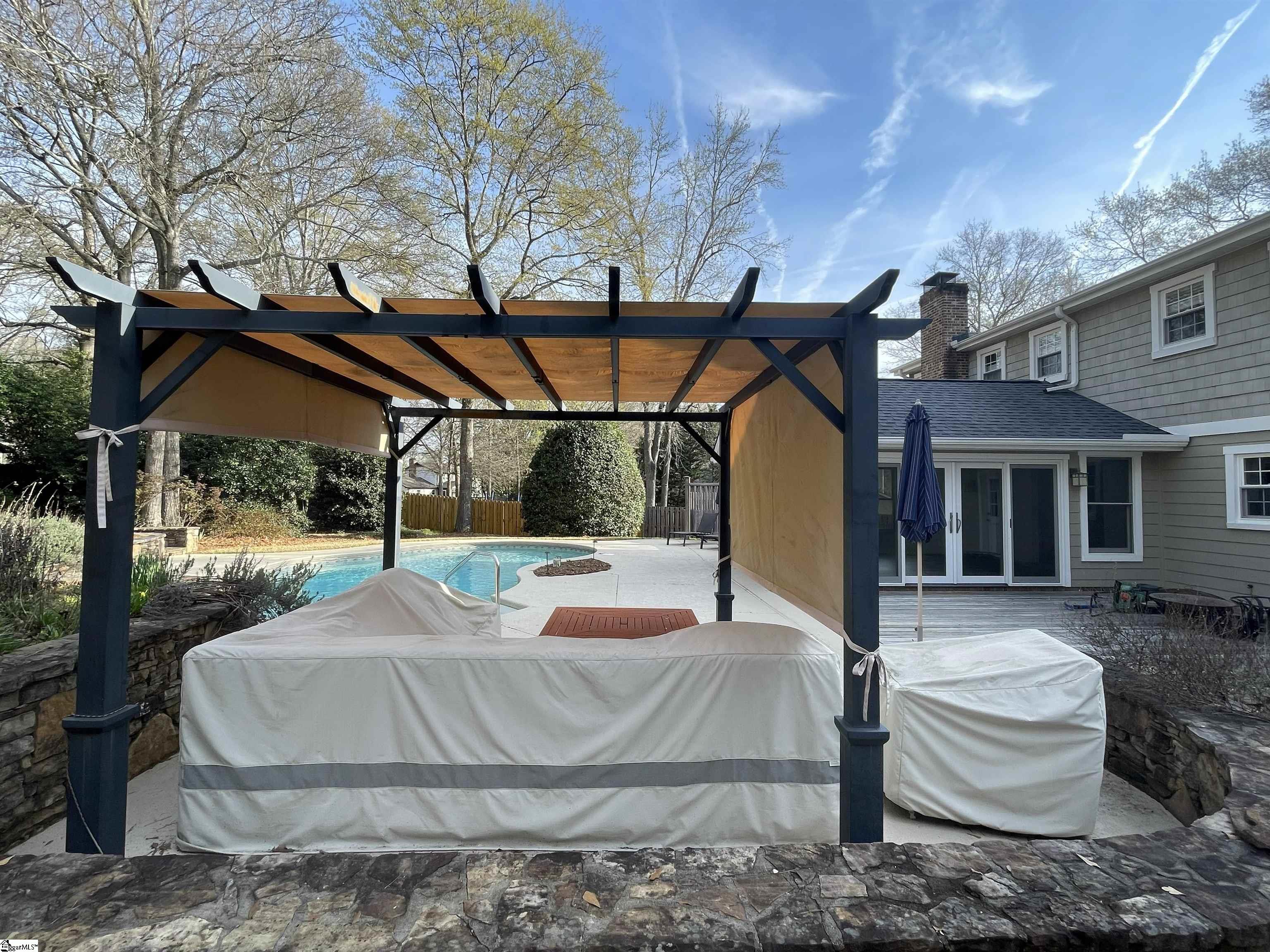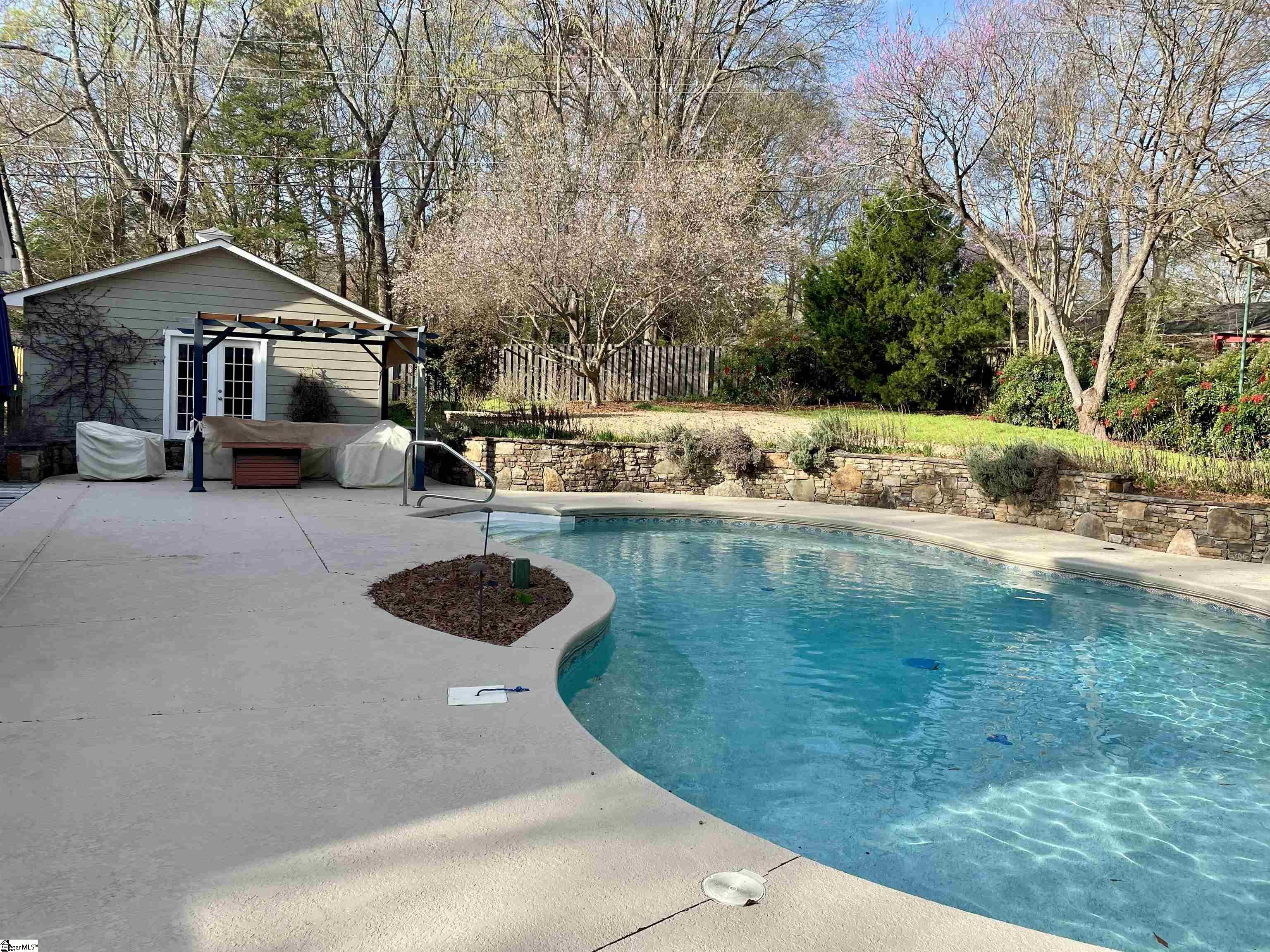 Established Poinsettia Neighborhood in Simpsonville… Day or Night, this stunning 4-bedroom, 3.5-bath Craftsman-style home perfectly captures the essence of modern luxury without the restrictions of an HOA!! From the moment you step onto the wrap-around porch with its classic stone posts and porch swing, you’ll feel right at HOME. The interior boasts an open-concept 27’x14′ living room with rich hardwood floors and a cozy gas fireplace that flows seamlessly into a custom kitchen. The kitchen features granite countertops, a beautiful bar, a built-in wine rack, and appliances, including a gas cooktop, wall oven, and warming drawer. A unique stained-glass pocket door leads to a spacious pantry, and there’s a half bath nearby for guests. The formal dining room has French doors, a custom mirrored wall, and a unique chandelier. Perfect for entertaining, the living room and kitchen extend into a bright four-season sunroom with built-in cabinets, a window seat, a NEW bay window, and NEW sliding doors that open to a true backyard oasis. Here, you’ll find a self-cleaning Saltwater Pool (pool deck was resurfaced in 2025), an expansive 16×19 deck, and a large patio surrounded by mature landscaping, flagstone walkways, and a 6′ privacy fence. Upstairs, the Primary Suite serves as a private retreat, featuring a Juliet balcony overlooking the pool, cathedral ceilings, a custom walk-in closet with a built-in window seat, and a spa-like ensuite bath with a soaking tub and oversized walk-in shower. Three additional spacious bedrooms, two additional full bathrooms, and a dedicated home office provide ample space for family and work. Beyond its beauty, the home is packed with practical upgrades and storage solutions, including a NEW roof (2025), RESURFACED concrete patio surrounding the amazing pool (2025), UPDATED electrical (2025), plantation shutters throughout, a sprinkler system, yard and pool lighting, built-in cabinets in the mud and laundry room, and OWNED solar panels that offer significant monthly savings. For those with hobbies or extra vehicles, the property includes an attached 2-car garage, a detached workshop/garage, and room for RV parking. Located just a short golf cart ride from the vibrant shops, dining, and NEW parks and amenities of downtown Simpsonville, this home offers the perfect balance of peaceful retreat and community connection. Easy access off 385, in addition to the Fairview Road shopping and restaurants!!