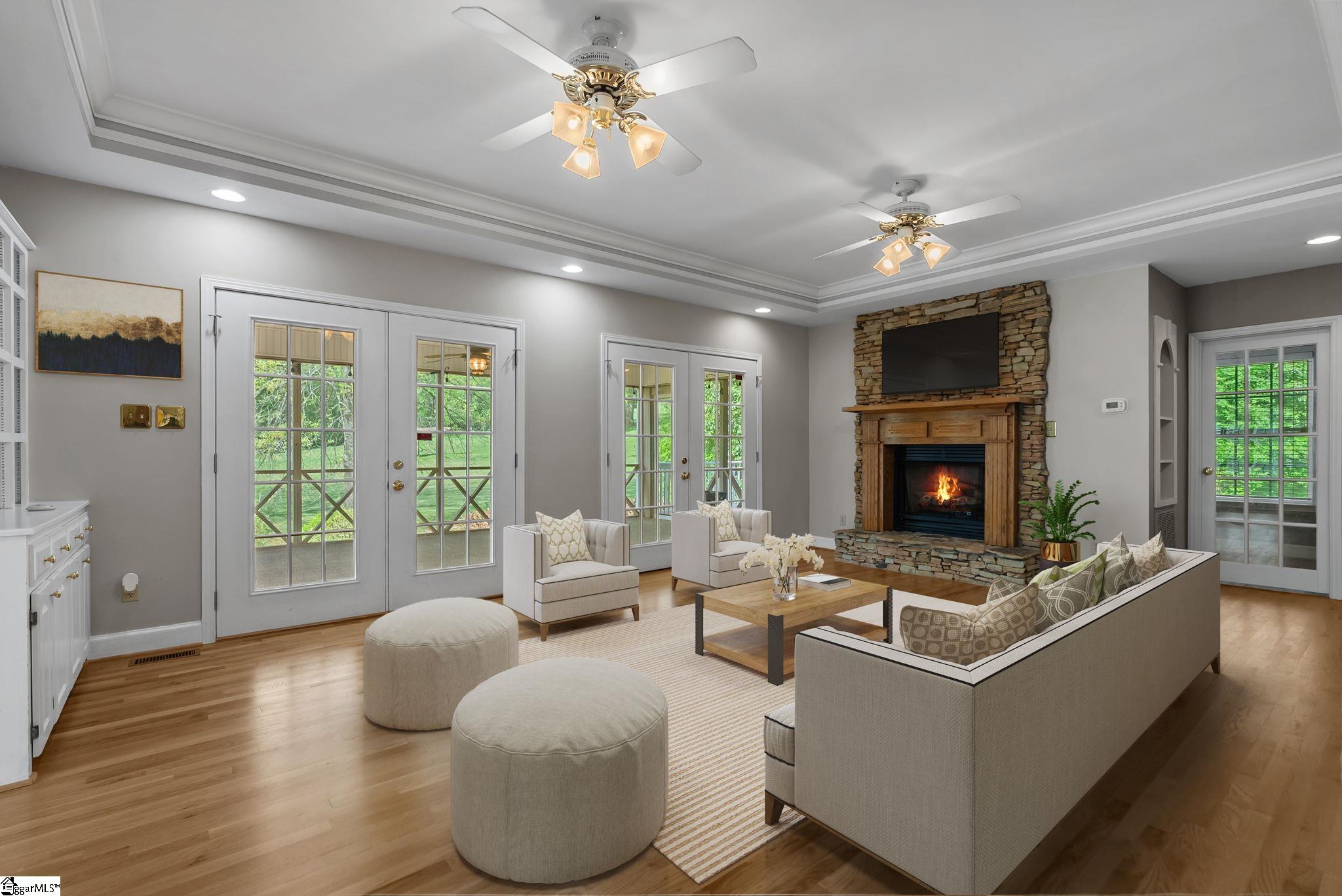 Welcome to 528 Riveredge Court in Moore, SC, a spacious and versatile 5-bedroom home in Spartanburg County offering over 4,000 square feet, a walkout basement, and nearly 1.5 acres of private, level land. Designed for both everyday living and entertaining, the main level features hardwood floors, multiple dining areas, and a well-appointed kitchen with granite countertops, stainless steel appliances, and abundant storage. A private home office creates the ideal work-from-home setup. Outdoor living shines with a screened porch and multiple sun-filled decks, perfect for relaxing or entertaining guests. The expansive, level backyard offers excellent privacy and ample space for a future pool or outdoor retreat. Upstairs, you’ll find four generously sized bedrooms, including two potential primary suites, all with walk-in closets. Professionally cleaned carpet on the 2nd floor enhances the home’s move-in-ready appeal. The walkout basement provides exceptional flexibility for multigenerational living, guest space, or extended entertaining, complete with a large bedroom, full bath, and additional storage. Additional features include a heated and cooled workshop off the garage, ideal for hobbies, a home gym, or extra workspace. Located in Moore, SC with convenient access to Spartanburg, Greenville, and major corridors, this property offers the perfect balance of privacy and accessibility. 18 mins to BMW, 25 to Greenville. Home has been inspected at seller expense – repairs DONE!