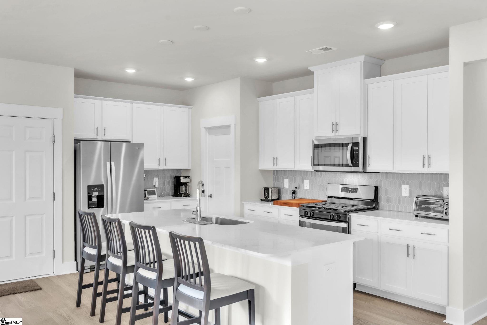 Welcome to this newer construction home built in 2025, offering 5 bedrooms, 3 full bathrooms, and a flexible, open layout designed for modern living. Less than a year old and with transferable builder warranties available, this property delivers the benefits of new construction with added peace of mind. Situated on a desirable corner lot in the Cedar Shoals community, this home offers added space, light, and privacy. The main level features an open-concept living area that flows into the dining space and kitchen—perfect for everyday living and entertaining. The kitchen includes quartz countertops, white cabinetry, stainless steel appliances, a gas range, walk-in pantry, and a large center island with seating. A main-level bedroom and full bath add convenience and flexibility for guests or a home office. Upstairs, the spacious primary suite offers a walk-in closet and private bath with dual sinks and a tiled shower. Additional bedrooms are generously sized, and the large loft provides a second living area ideal for a media room, playroom, or workspace. The laundry room is conveniently located upstairs. Enjoy outdoor living on the covered back patio with natural gas grill hookups, enhanced by the home’s corner lot setting, which provides extra breathing room and a more open feel. Additional highlights include a two-car garage, ample storage, and modern finishes throughout. Cedar Shoals offers sidewalks, a community pool, and easy access to shopping, dining, SC-153, and I-85. Move-in ready and thoughtfully designed—this home checks all the boxes. This home is eligible for USDA Financing for buyers that qualify.