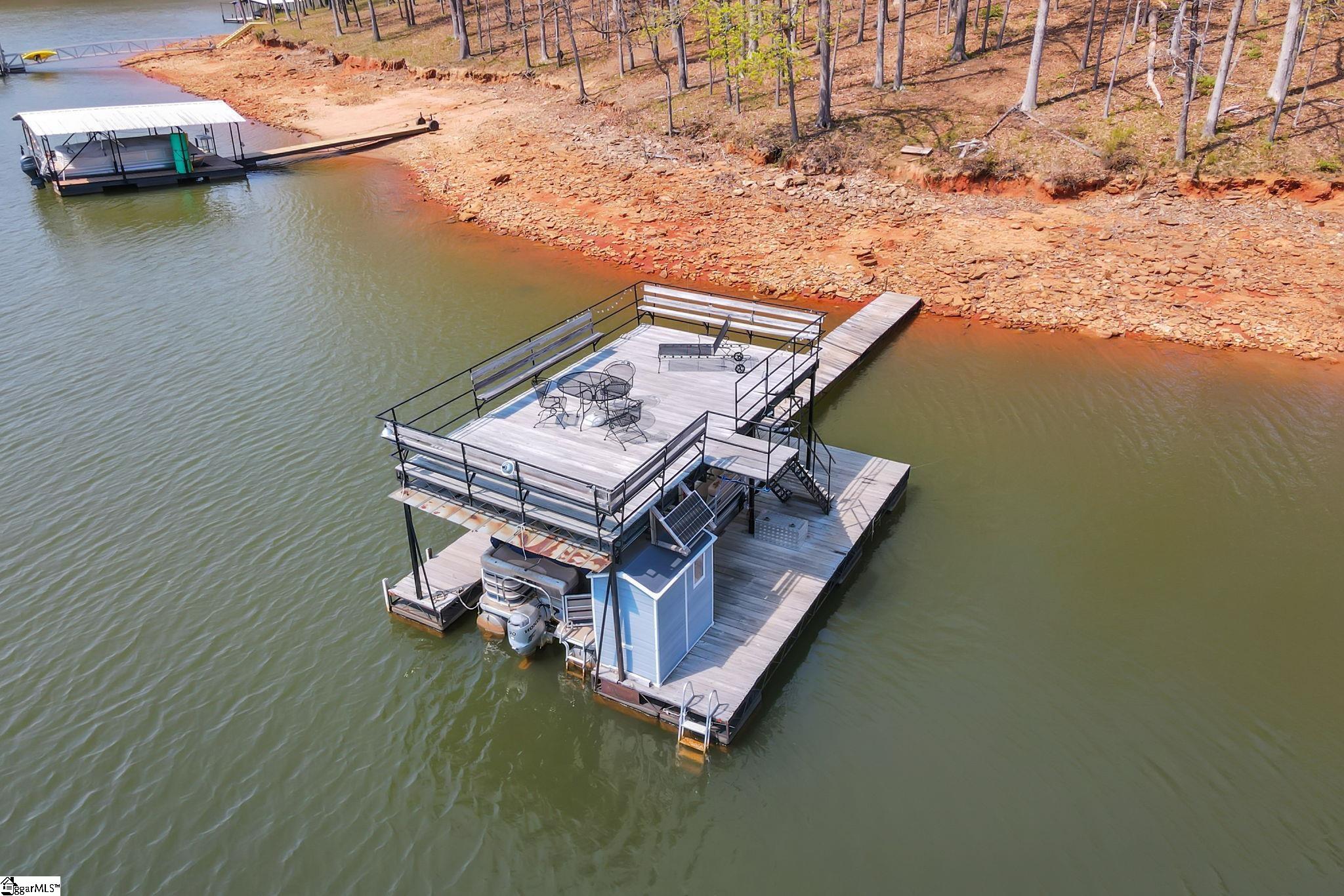 Check out this rare Lake Hartwell find! This property features a double lot on deep water located off the main Tugaloo channel at marker T14, offering 189 feet of water frontage. The lot includes a two-story covered dock and a sandy beach area. The large double lot is situated on a quiet dead-end street with no HOA, allowing for numerous expansion options. The bungalow-style home was recently refreshed in 2026 with new windows, granite countertops, and fresh paint. This three-bedroom, one-bath home features an open-concept kitchen and living area with a wood-burning fireplace, a screened porch, and a deck offering exceptional sunrise and sunset views. Additional features include an enclosed laundry and storage room and a patio for lake equipment. Currently operating as a VRBO, the property is being offered furnished, including a pontoon boat and trailer. It is conveniently located near I-85 (Exit 11 North or Exit 4 South) with quick access to the Hattons Ford boat landing.This is a wonderful opportunity to enjoy the lake immediately while planning for the future.