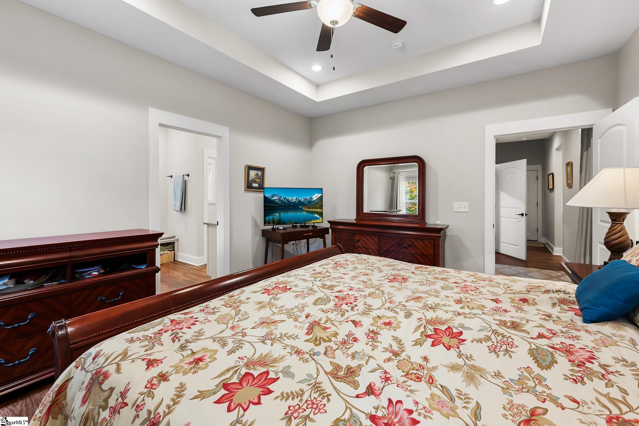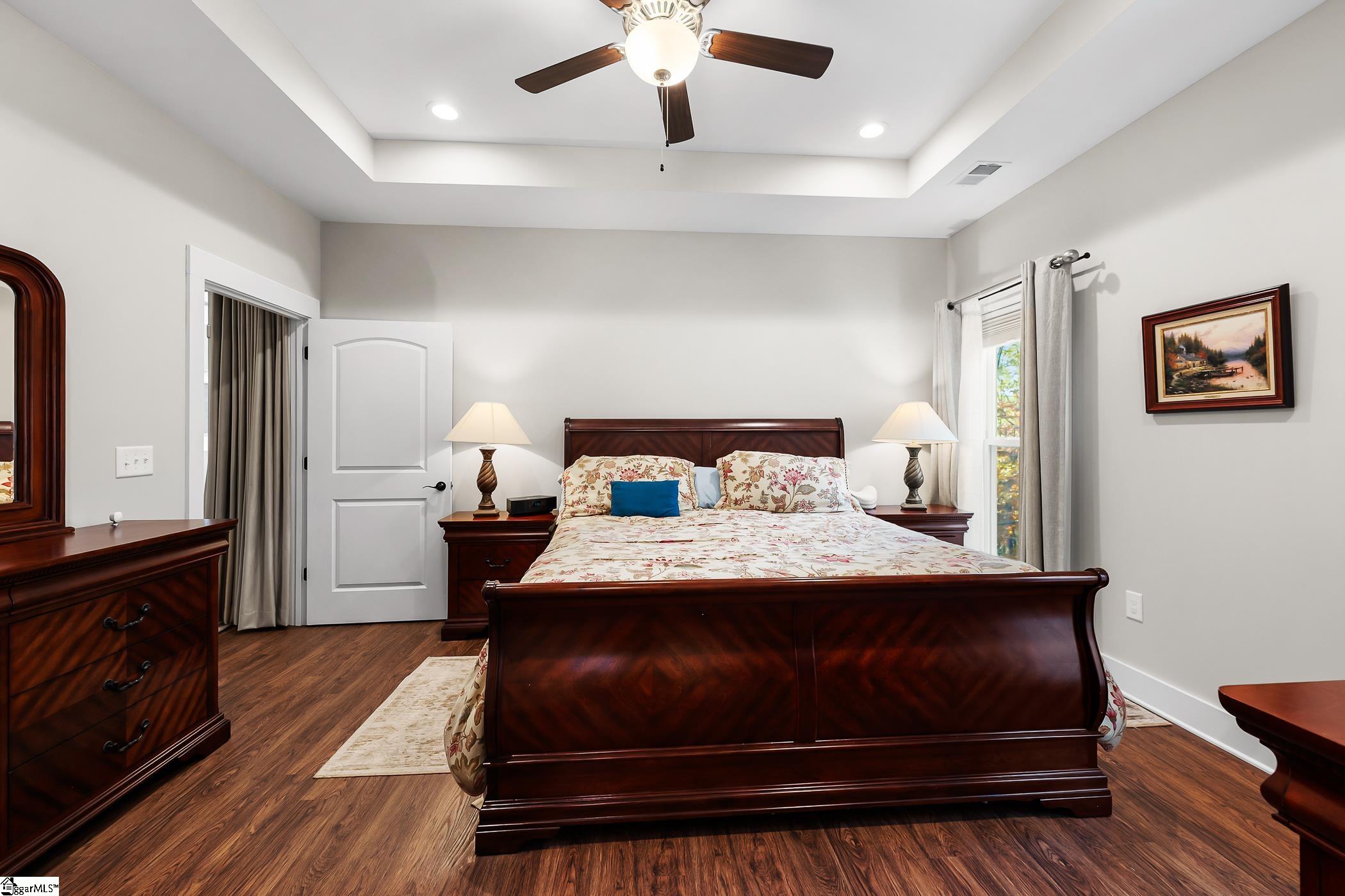 Welcome to your dream home, nestled on 1.66 acres within the prestigious gated community of Riverstead. This custom-built 2021 residence perfectly blends modern elegance, comfort, and natural beauty. Ideally located just ten minutes from Travelers Rest and thirty minutes from Downtown Greenville, the property offers both tranquility and convenience. The light-filled, open-concept living area is designed for year-round entertaining, featuring a spacious great room that flows seamlessly into the gourmet kitchen with quartz countertops, stainless steel appliances, and an oversized island. Beautiful Luxury Vinyl Plank floors enhance the main living spaces, while the covered back patio and elevated deck provide ideal spots for outdoor living and peaceful wooded views. The main level includes the primary suite with tray ceiling, dual vanities, and walk-in shower, along with two additional bedrooms. Upstairs, you’ll find a private guest suite with a full bathroom. Additional highlights include a whole-home water filtration system, private well, full-house generator, and transferable leaf guard system. The golf cart conveys with the property, offering added convenience for enjoying the Riverstead lifestyle. Riverstead is a gated conservation community featuring over six miles of hiking and mountain biking trails, 2.5 miles of river access for canoeing, kayaking, and fishing, and a 250-acre protected nature preserve known as Riverstead Park. Residents enjoy a community farm producing organic fruits, vegetables, honey, and eggs, along with a pavilion, family barn, pool, and activity fields. With panoramic Blue Ridge Mountain views and spacious one- to five-acre homesites, Riverstead offers a rare opportunity to live surrounded by nature without sacrificing modern comforts.