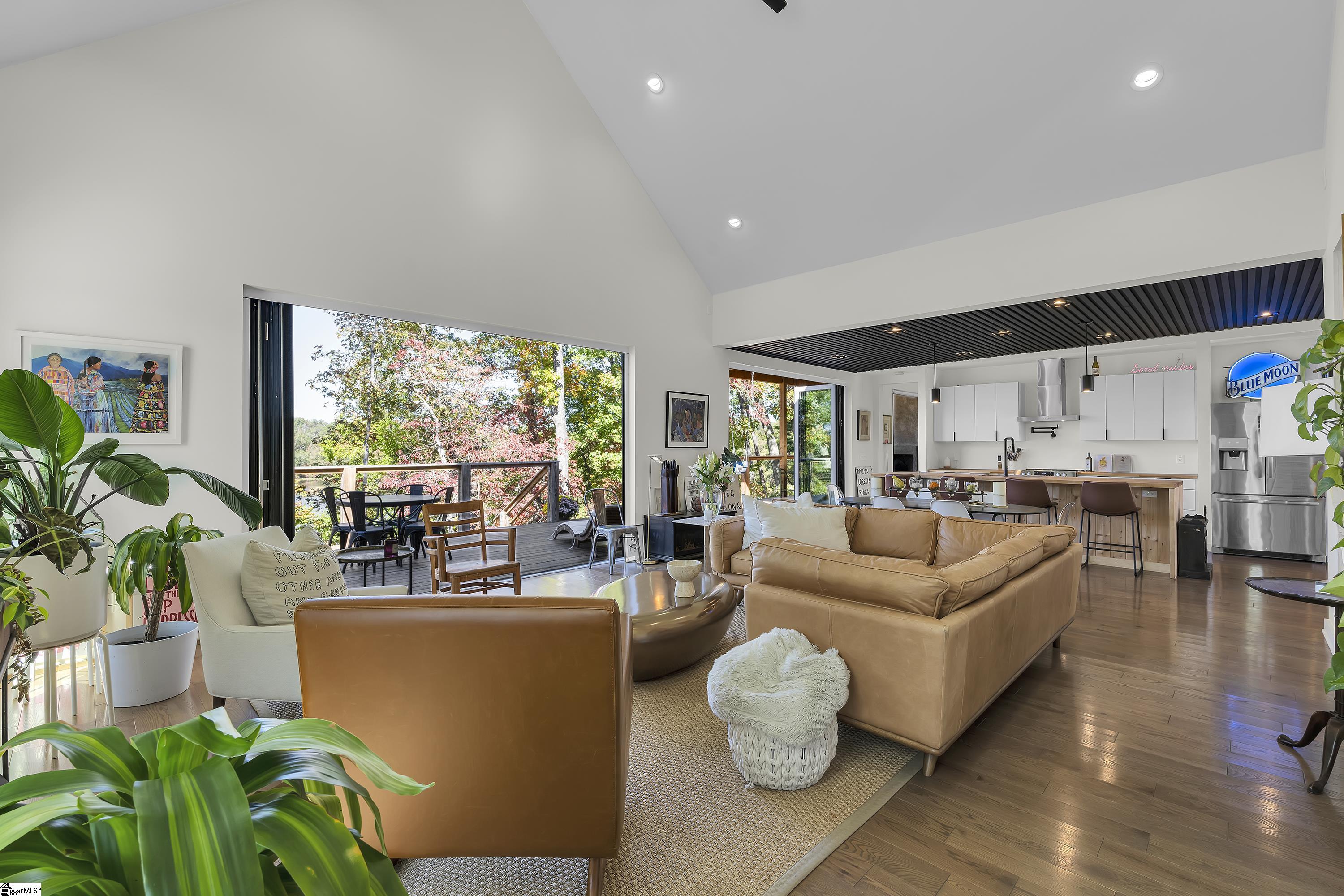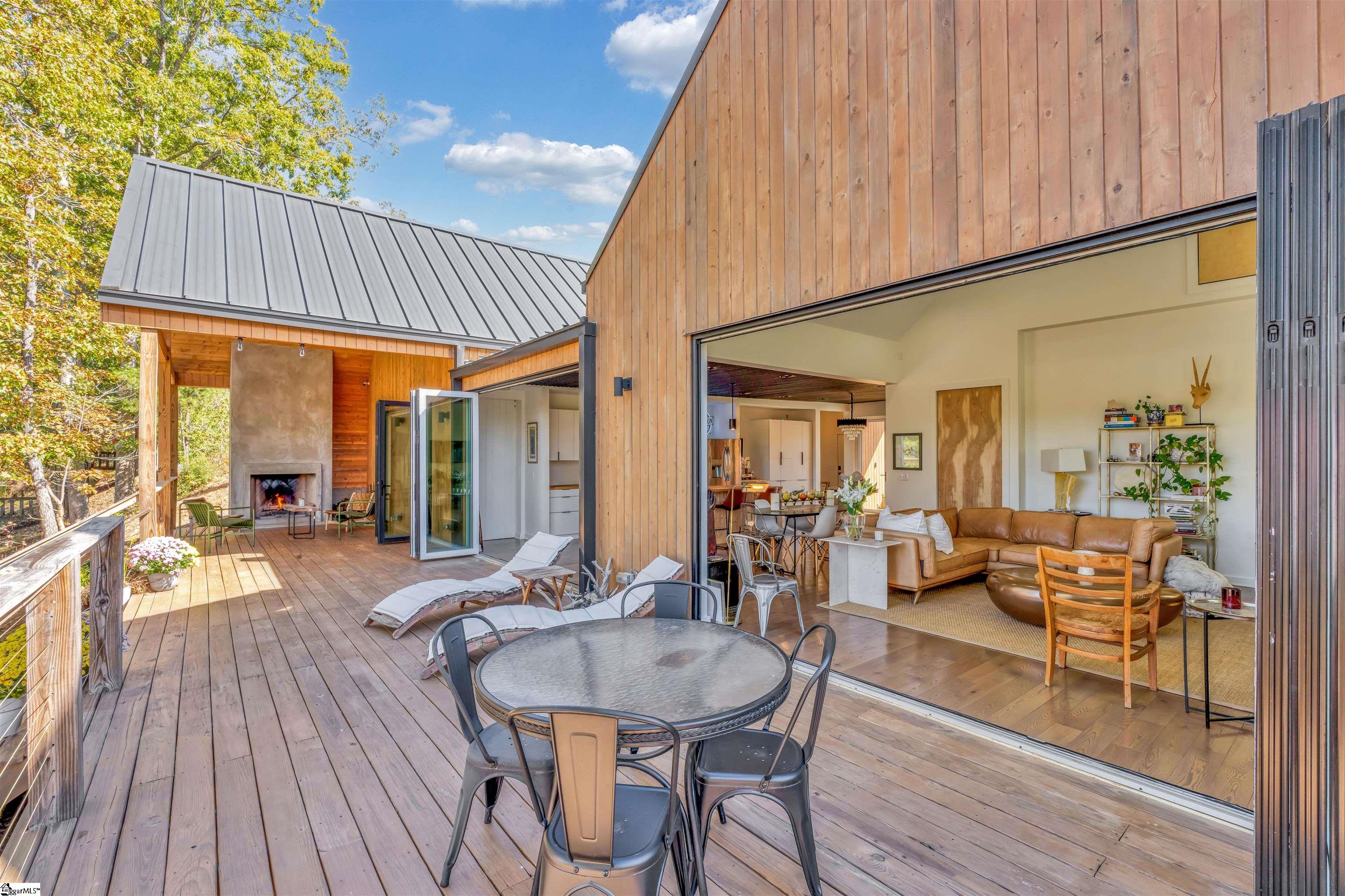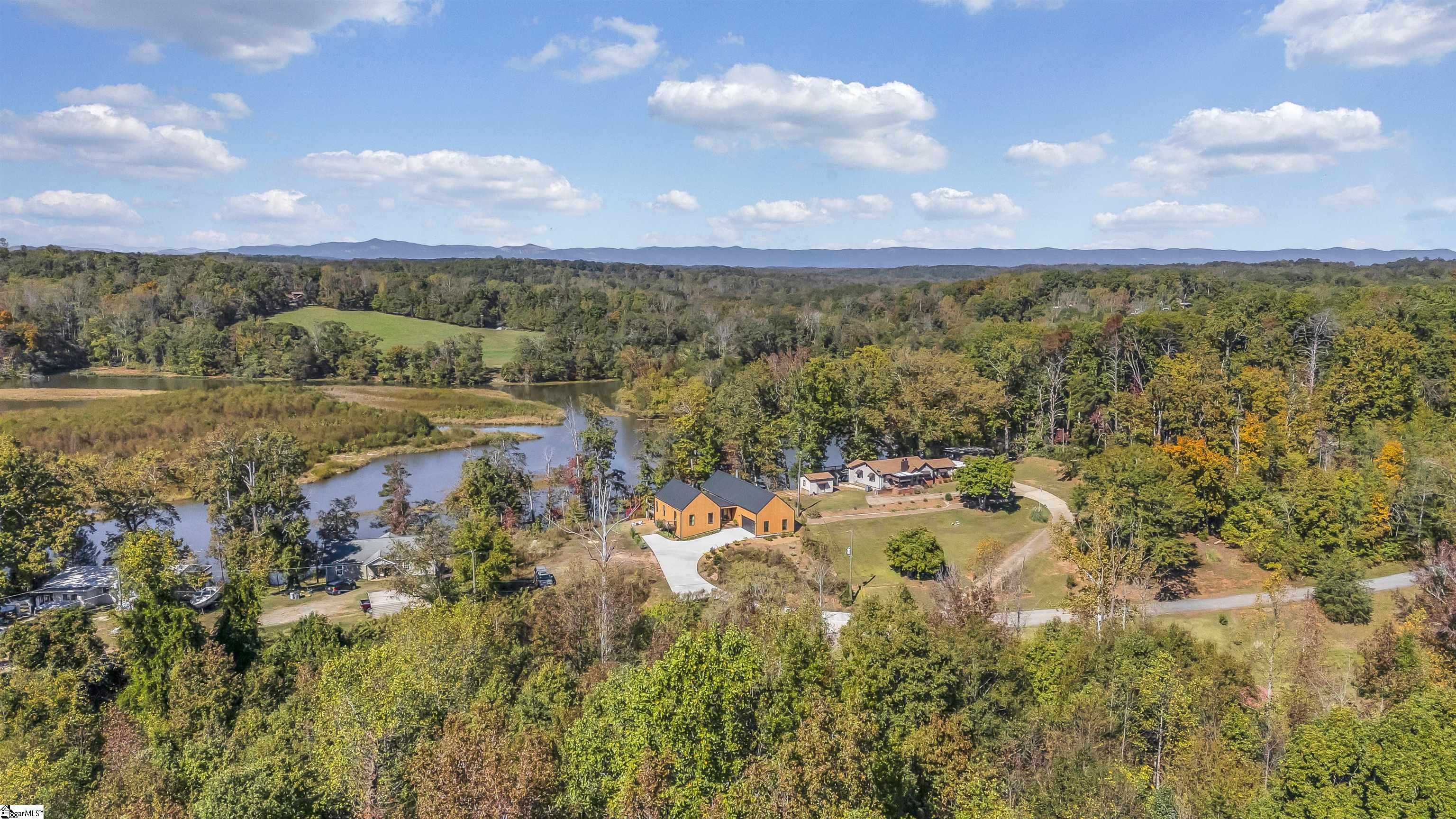 Welcome to your new dream home that has been custom built by one of Greenville’s finest architects from the foundation up with so many amazing features both inside and out on Saluda Lake which is over 300 acres of incredible and clean water with no boat or motor restrictions with ample wildlife, incredible fishing, and so much more! This custom built home oozes with character tons of modern contemporary details throughout with exterior features such as cedar siding with water-based natural cedar paint for longevity, McElroy commercial grade 16 inch standing seam metal roof with a 40 year warranty, commercial grade box gutters and downspouts, amazing covered decks, grilling and entertainment areas and a covered front welcoming front porch as well! This home sits on top of this amazing lot with incredible views of the lake from the entire rear of the home with views from the main living and dining and kitchen areas, as well as from the primary bedroom suite throughout the year! You won’t believe the multi nana type door systems that ALL open up to enhance this already amazing floor plan in that these doors bring the exterior rear porch (complete with ice a current volcanic pumice wood-burning fireplace with covered lounge area and vaulted wood plank ceilings with additional grilling and chilling deck) into the inside the living spaces!!! You will absolutely love this all one level home with an upstairs bonus room or office loft area where you truly will find such a well designed quality over quantity layout! The main living area is open to both the dining area, as well as the modern gourmet kitchen which comes complete with large entertainment island and high end, sleek, modern fixtures, complete with a bespoke, modern black slate ceiling! The master bedroom suite is on the main level and has a vaulted ceiling and direct access to the rear cover deck with wood-burning fireplace, a large walk-in closet with industrial features and fixtures complete with double vanities, a walk in shower with multi jet heads and a sliding glass door and easy access to the large laundry room complete with sink and additional storage space. Above the master is the bonus room which doubles as a loft or home office. The two additional guest bedrooms both have their own private bathrooms (one with custom tiled walk-in shower, and the other with a tub- shower combination) Both bedrooms come with with double action doors and one has mother-in-law suite setup! Additional features this home has to only name a few are beautiful hardwood floors throughout, vaulted ceilings, incredible natural light, an oversized attached 2-car plus garage, charcoal water filtration system, encapsulated crawlspace with dehumidifier, Tesla wall charger, high-end fixtures and features throughout, the list goes on and on! The icing on the cake is your own private dock at the lake with a 40 foot gangway, an outdoor shower and hose at dock and a 16 foot Jet Ski! You truly can’t go wrong if you want to be on a lake and still remain within 15 minutes to downtown Greenville, South Carolina. Come see 562 Club Drive today and prepare to fall in love!