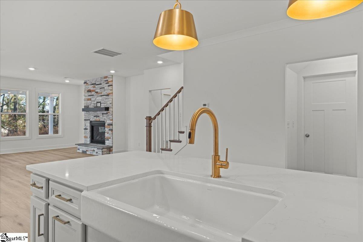 Home is Move in Ready! Welcome to Pelham Crossing! The only new single-family homes and villas just off sought-after Pelham Road.** * Unbeatable location * Gourmet kitchen * Luxury Primary Suite * Expanded covered back porch** Offering over 3100 square feet of thoughtfully crafted living space, the Augusta home caters to those seeking comfort and style. The covered front porch leads to a spacious foyer with an adjacent formal dining room with coffered ceilings and continues into the open concept living room and kitchen. The living room with its large windows and high ceilings give the room a bright feel along with a cozy gas fireplace with stone surround. The gourmet kitchen features beautiful soft white cabinetry, Quartz countertops, tiled backsplash, under cabinet lighting, large island with farmhouse sink for extra prep space and seating and upgraded stainless steel appliances including a gas cooktop, double wall oven and range hood. The breakfast area leads out to the expanded covered back porch which overlooks your large backyard. The luxurious Primary Suite is located on the main level and features a generous walk in closet, double vanities and amazing Roman tiled shower with two showerheads, seat and frameless glass door. The laundry room is also located on the main level for added convenience. Up the Oak staircase with iron rail you have 5 additional bedrooms, all with walk in closets and two with en suite bathrooms, an additional hall bath with double sinks, a large loft space and even an unfinished storage area. This home also comes with a tankless water heater and standard irrigation system included. Smart home technology, energy-efficient design, and a dedicated local warranty team ensure long-term comfort and convenience. Just off Pelham Road in Greenville, SC discover prestigious single-family homes and villas. Blending modern living and craftsman style architecture. Nestled in a prime location, these homes offer easy access to local amenities, parks, and dining options. With thoughtfully designed floor plans and premier finishes, you’ll find a space that suits your lifestyle. Explore the possibilities of living in one of South Carolina’s most sought-after areas! Come by today and make Pelham Crossing your new home. See Sales Agent for additional pricing information.
