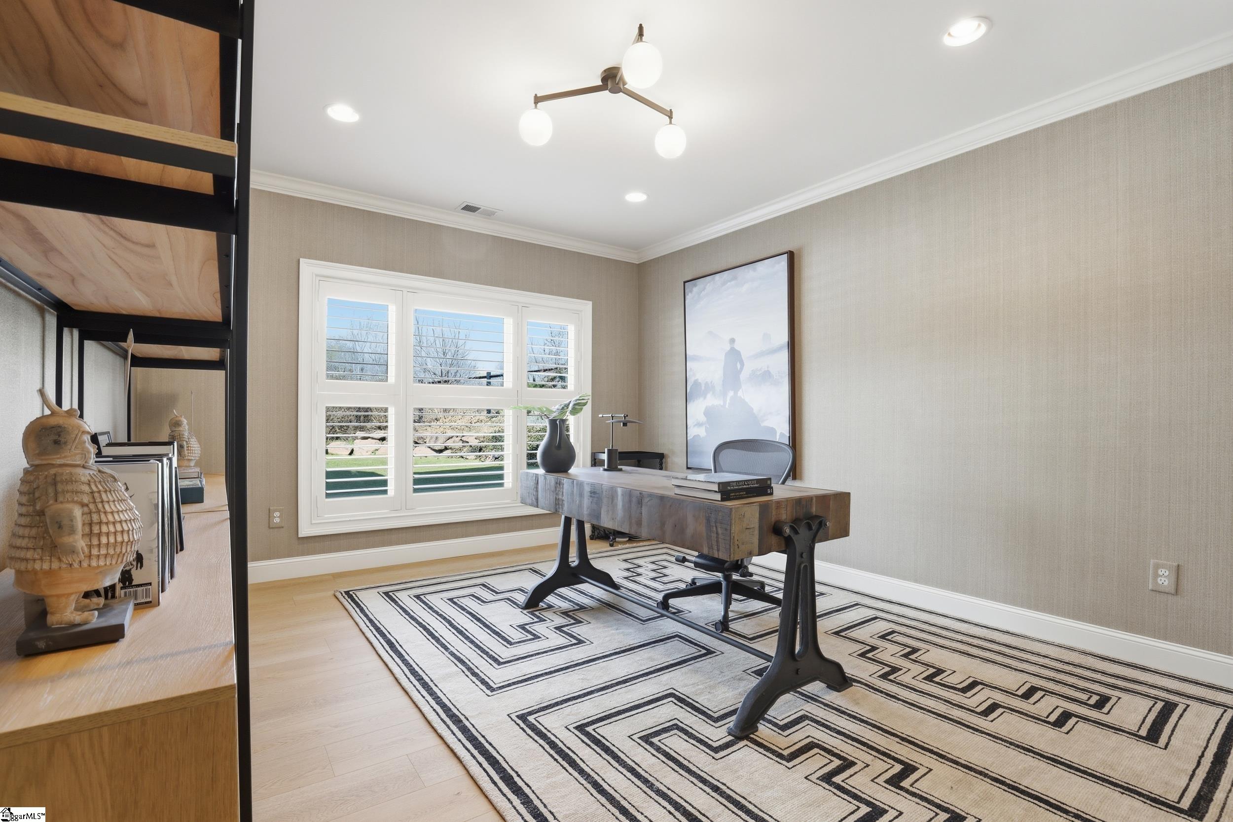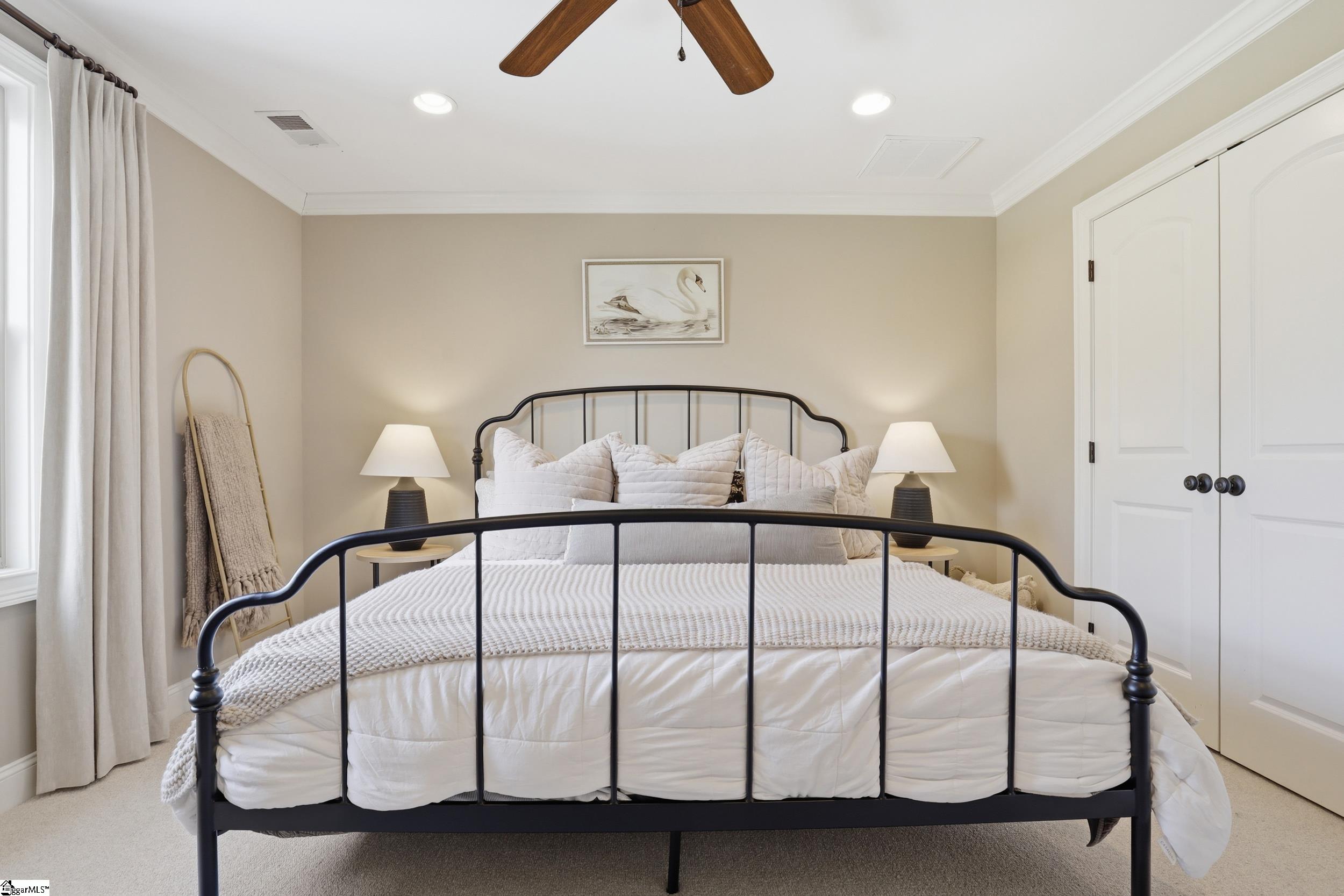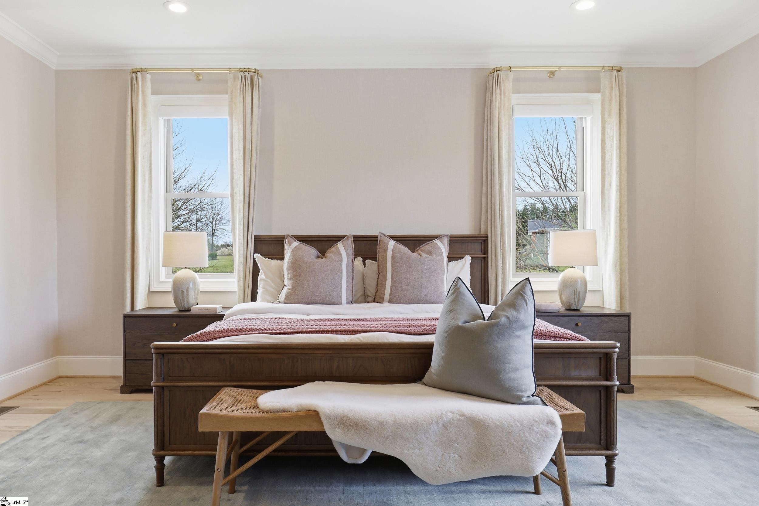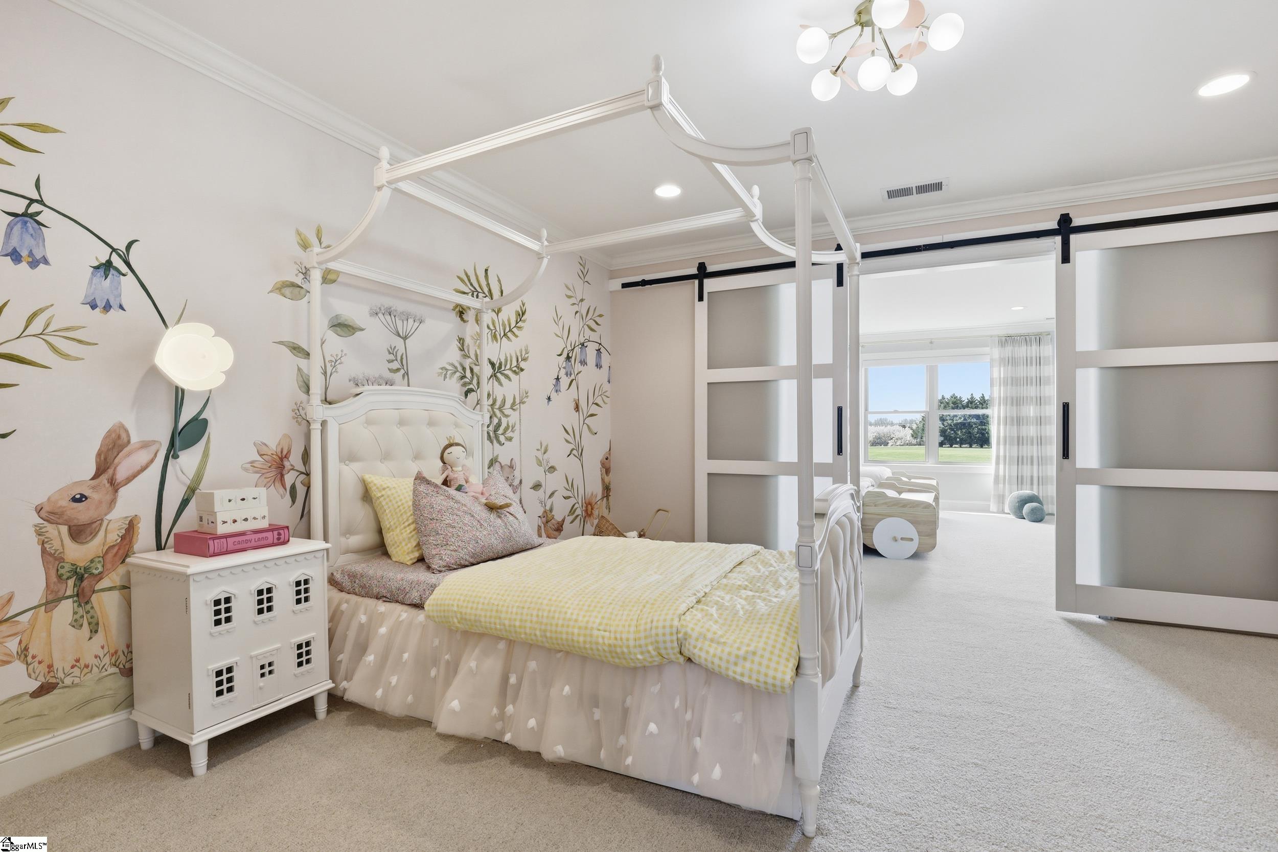 Surrounded by 4.5 acres of peaceful countryside, 602 Jenkins Bridge offers next level design, serious fun, and will wow even the most discerning of buyers. It is a MUST see! Around every corner is an intentional effort to maximize functionality, enjoy hosting, and live comfortably- inside and out. Beyond the home itself, the location is something truly special. While the setting feels quiet and tucked away, it is only 5 minutes from shopping, restaurants, and groceries at Fairview Rd. with CityScape Winery, Happy Cow Creamery, and interstate access nearby. It is only 25 minutes from downtown Greenville and the GSP airport. The outdoor living spaces define this property. A custom gunite zero-entry saltwater pool and spa is complemented by a turfed four hole putting green, outdoor kitchen, fireplace, and fire pit. A second level porch overlooks it all, creating an ideal setting for both quiet evenings and large gatherings. With a half bath and second refrigerator just inside, no detail was spared in the functionality of the outdoor space. The current owners expanded the property by an additional acre and a half, adding to the serenity and feel of privacy and the ability to tap into a natural water source. Inside, the home opens with a spacious foyer and soaring ceilings. Wood beams warm the open living areas and the stone fireplace creates architectural character. The kitchen is appointed with a full size Electrolux refrigerator and freezer, custom floating shelving, updated hardware, new lighting, and a new range hood. In the living room, built in shelving adds scale and makes an impressive visual impact. The main level primary suite is conveniently located, with generous closet space and an adjoining small office. A well designed laundry room off the garage provides excellent storage and makes a useful “drop zone.” Upstairs, two oversized bedrooms- both just over 400 sqft- share the level with the fourth bedroom. Two full bathrooms and an additional sitting area complete the upper level. The options for how to use these spaces are endless. 3 bedrooms? Homeschool room? Playroom? Craft space? More office space? Guest room? You can truly have your pick. The lower level delivers nearly 2,500 square feet of finished space designed for both work and play. A dedicated office or optional fifth bedroom is paired with its own full bathroom. Additional highlights include a home gym with its own garage door, a wet bar with beverage refrigerator, a media room, and ample storage, including a locked cedar closet. A climbing wall, foam pit, and playhouse offer memorable play spaces- kids will never want to leave! The home has been professionally decorated. For those who appreciate it just as it’s styled, nearly all of the furnishings are available to be purchased alongside the home- allowing for a seamless, move-right-in experience. It is truly BETTER than new. This home has received numerous updates throughout over the past 6 months. Improvements include all new carpeting, refinished hardwood floors on the main level, engineered hardwood flooring on the lower level, a new roof installed in 2025, and a whole home water filtration system. Additional updates and improvements are available in the associated documents-there are too many to list.