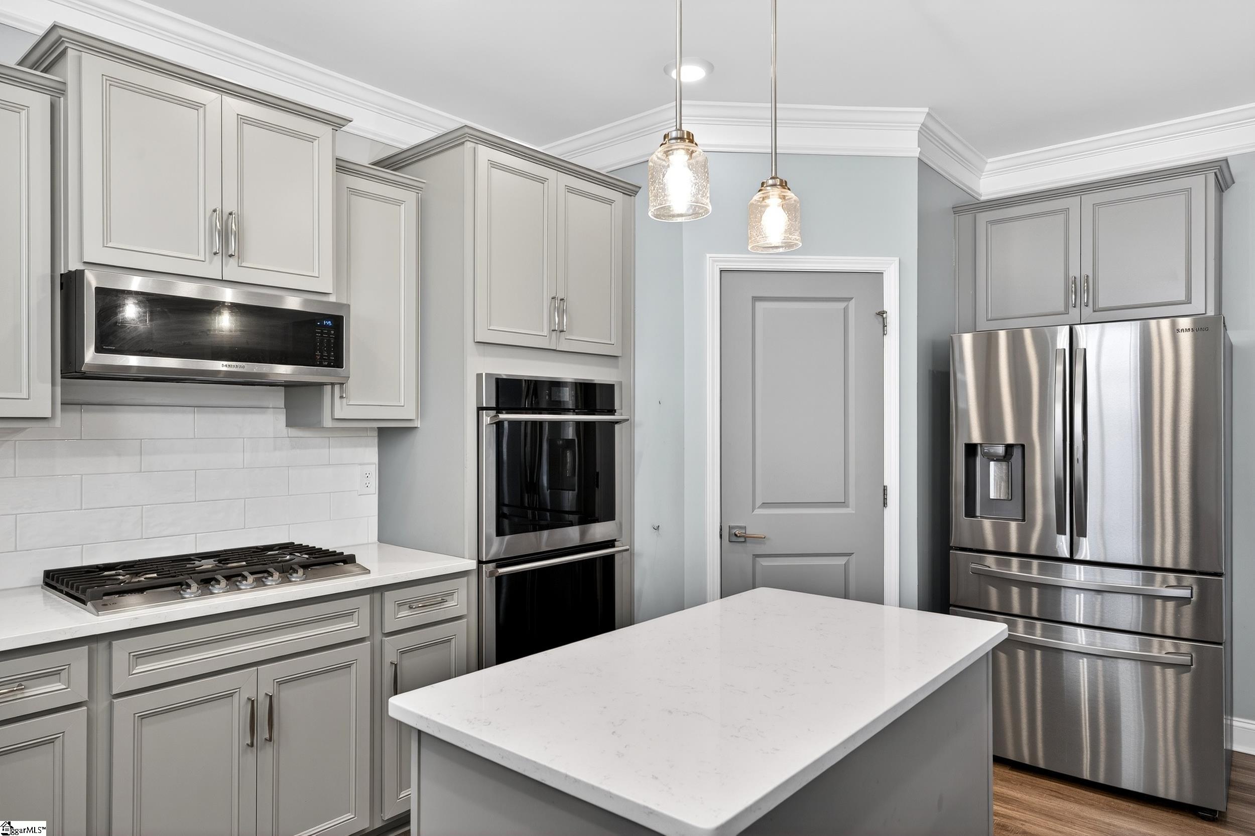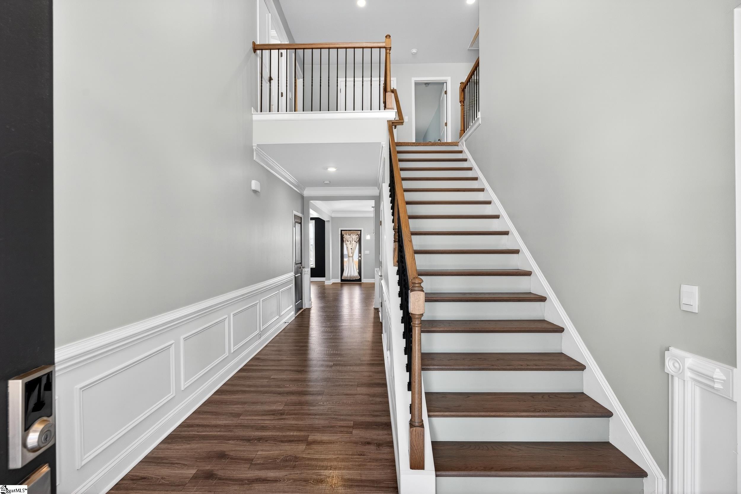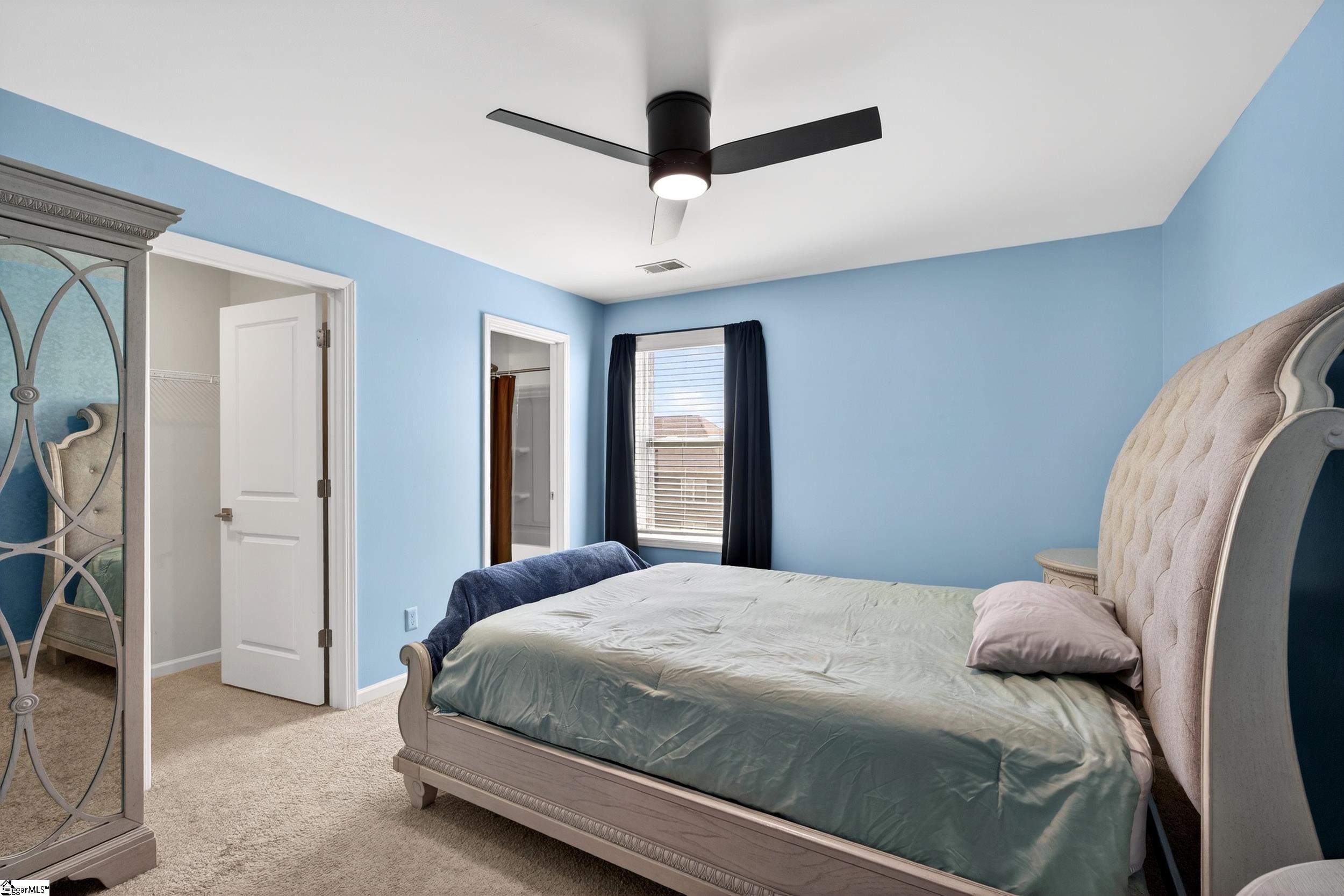 Welcome to 6030 Thicket Lane—where everyday living feels elevated and thoughtfully designed spaces create a home you’ll truly enjoy. From the moment you step inside, the home invites you to settle in. Picture slow mornings in the sunlit breakfast nook, coffee in hand, as natural light pours through the windows and the backyard comes to life. The spacious rear yard, complete with a privacy fence, provides a comfortable setting for outdoor enjoyment, pets, or simply unwinding in your own space. The main level blends function with style. A dedicated home office framed by elegant bowed windows creates a bright, inspiring place to work or relax. Nearby, the formal dining room makes a lasting impression with its coffered ceiling, wainscoting, and chair rail detailing—creating a refined backdrop for gatherings. Throughout the main living areas, durable wide-plank luxury vinyl plank flooring offers both style and everyday durability. At the heart of the home, the open living area features a coffered ceiling and a gas log fireplace with a custom decorative surround—bringing warmth and architectural interest to the space. Thoughtfully integrated into this area is a custom wall safe, offering discreet, built-in security without sacrificing style. The kitchen is designed for both efficiency and functionality, featuring abundant counter space, quartz surfaces, and a layout that flows seamlessly into bar seating—ideal for casual meals or conversation while cooking. A premium Electrolux double oven with a five-burner gas cooktop, built-in microwave, sink, and walk-in pantry complete this well-appointed space. A whole-home water filtration system and tankless water heater add modern convenience, while updated lighting, a statement chandelier, and ceiling fans create a cohesive, polished feel throughout. Upstairs, the layout continues to deliver comfort and privacy. The primary suite is a peaceful retreat, entered through double doors and filled with natural light. The en-suite bath includes a soaking tub, separate shower, and dual vanity, while the expansive walk-in closet provides exceptional storage and organization. Two additional bedrooms share a thoughtfully designed Jack-and-Jill bath with a double vanity, and the fourth bedroom enjoys its own private full bath. A centrally located laundry room and thoughtful upgrades like enhanced closet lighting, accent walls, and HDMI wiring add ease to everyday living. Additional storage has been carefully designed to maximize both space and utility. Beneath the stairs, a finished storage area houses a custom security safe—providing a secure and easily accessible solution for valuables while maintaining a clean, organized look. Step outside and enjoy an extended living space designed for year-round enjoyment. The oversized patio offers both covered and open areas, ideal for everything from shaded afternoons to sunny weekends. An extended driveway pad provides additional flexibility for parking or recreation. Set within the Pine Valley community in Boiling Springs, residents enjoy access to shared amenities including a covered gathering area with picnic tables, playgrounds, a community pool, and pickleball courts—creating opportunities to connect and enjoy the neighborhood. With its blend of refined finishes, smart design, and distinctive features like integrated security elements and thoughtful storage solutions, 6030 Thicket Lane stands apart as a home that balances comfort, style, and everyday functionality.