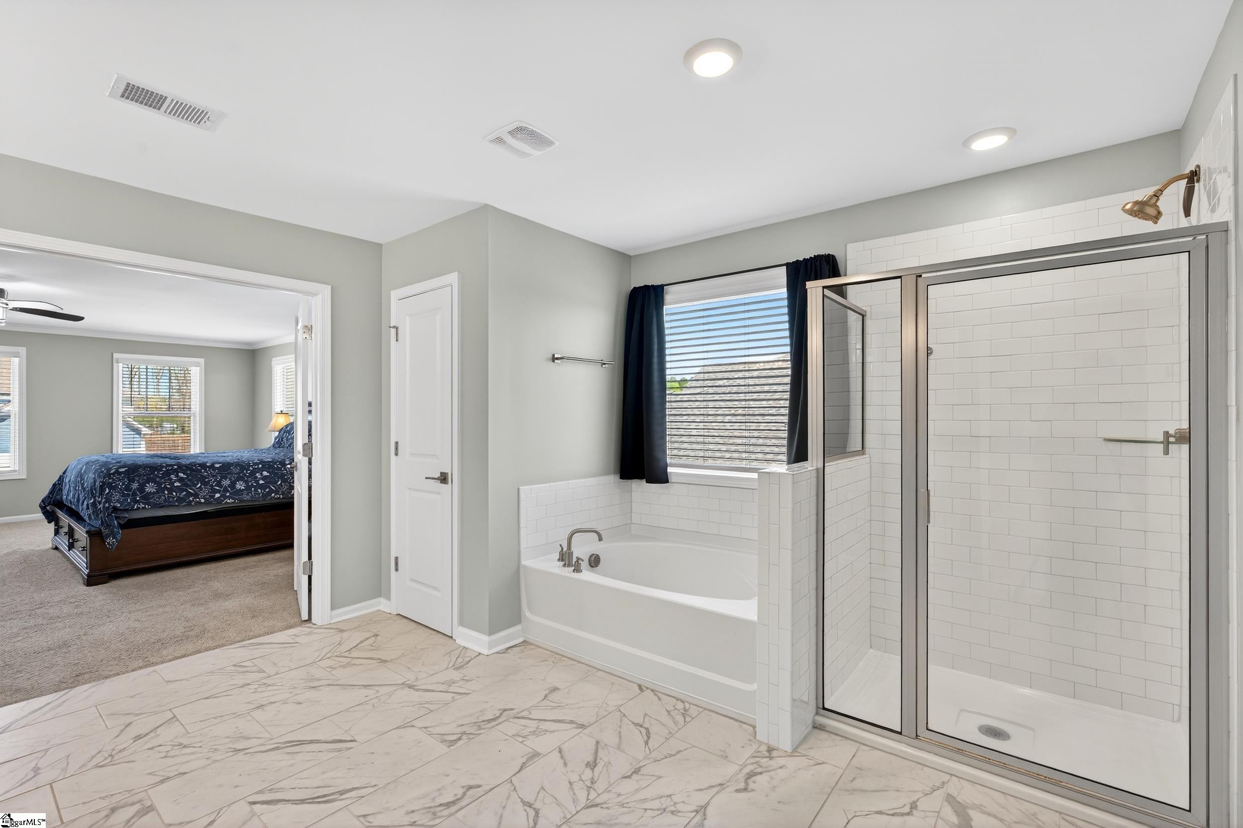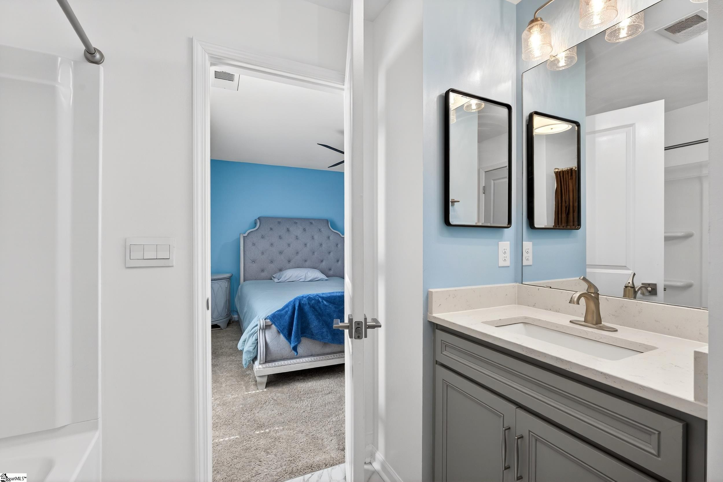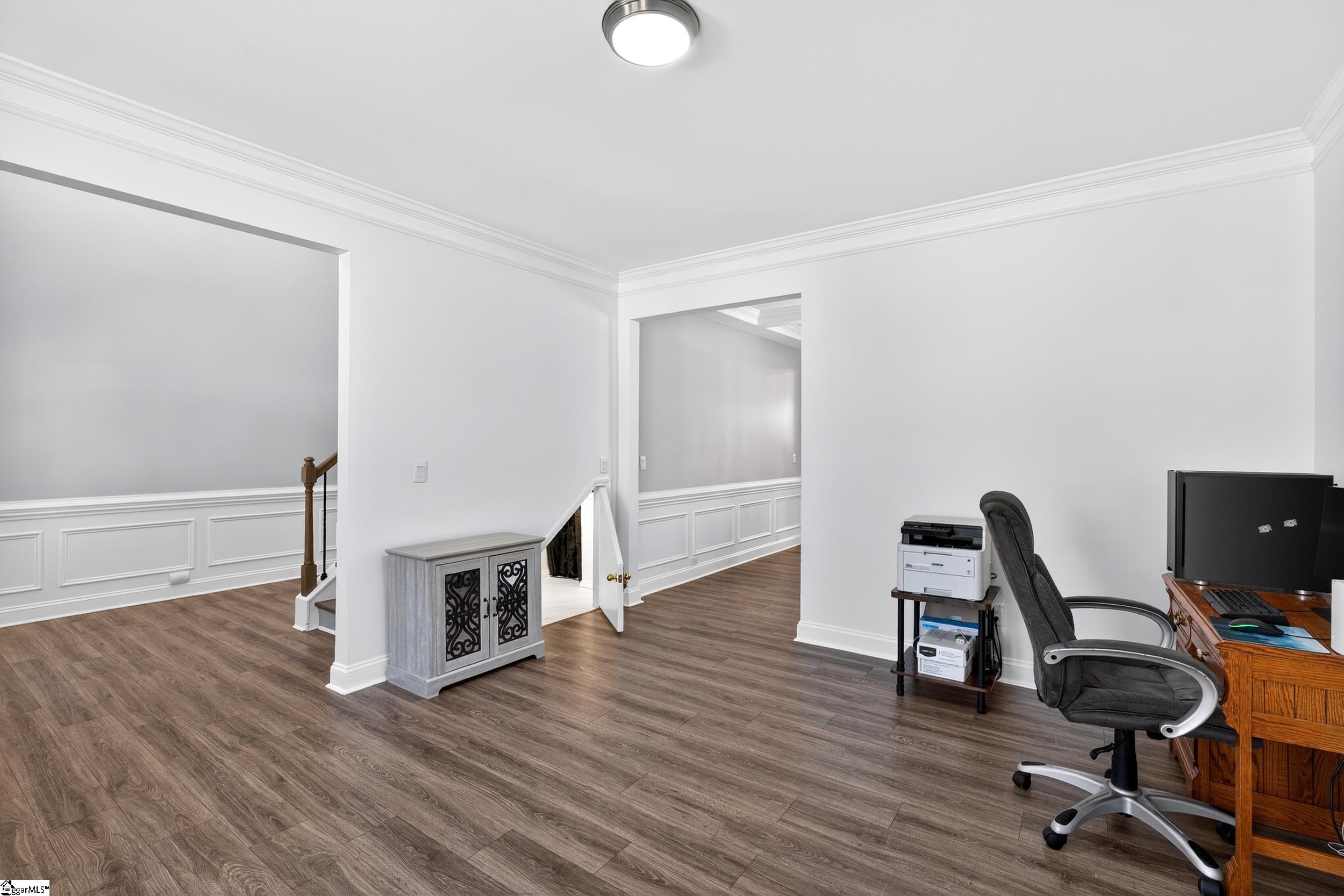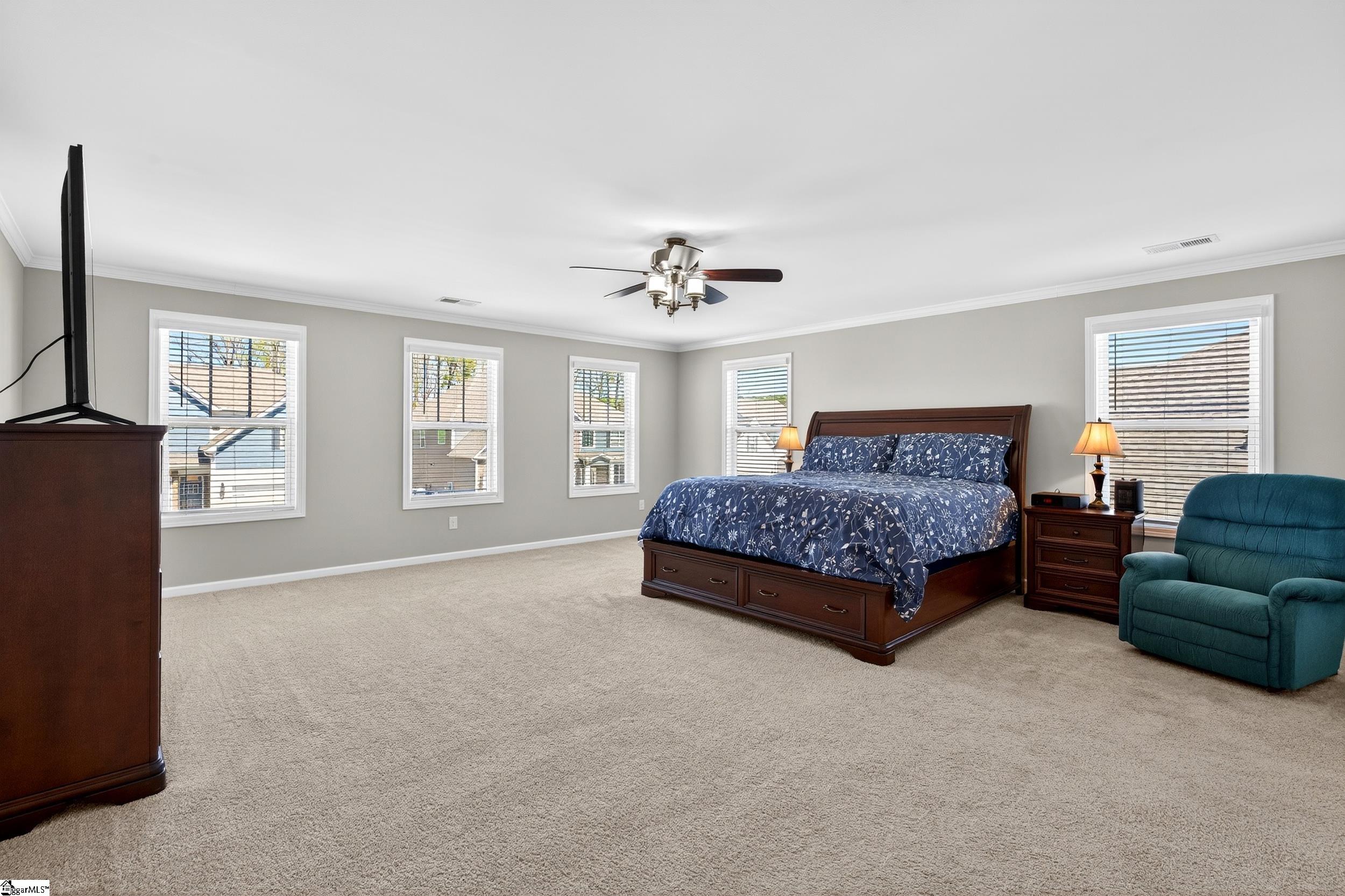 Welcome to 6030 Thicket Lane—where everyday living feels elevated and thoughtfully designed spaces create a home you’ll truly enjoy. From the moment you step inside, the home invites you to settle in. Picture slow mornings in the sunlit breakfast nook, coffee in hand, as natural light pours through the windows and the backyard comes to life. The spacious rear yard, complete with a privacy fence, provides a comfortable setting for outdoor enjoyment, pets, or simply unwinding in your own space. The main level blends function with style. A dedicated home office framed by elegant bowed windows creates a bright, inspiring place to work or relax. Nearby, the formal dining room makes a lasting impression with its coffered ceiling, wainscoting, and chair rail detailing—creating a refined backdrop for gatherings. Throughout the main living areas, durable wide-plank luxury vinyl plank flooring offers both style and everyday durability. At the heart of the home, the open living area features a coffered ceiling and a gas log fireplace with a custom decorative surround—bringing warmth and architectural interest to the space. Thoughtfully integrated into this area is a custom wall safe, offering discreet, built-in security without sacrificing style. The kitchen is designed for both efficiency and functionality, featuring abundant counter space, quartz surfaces, and a layout that flows seamlessly into bar seating—ideal for casual meals or conversation while cooking. A premium Electrolux double oven with a five-burner gas cooktop, built-in microwave, sink, and walk-in pantry complete this well-appointed space. A whole-home water filtration system and tankless water heater add modern convenience, while updated lighting, a statement chandelier, and ceiling fans create a cohesive, polished feel throughout. Upstairs, the layout continues to deliver comfort and privacy. The primary suite is a peaceful retreat, entered through double doors and filled with natural light. The en-suite bath includes a soaking tub, separate shower, and dual vanity, while the expansive walk-in closet provides exceptional storage and organization. Two additional bedrooms share a thoughtfully designed Jack-and-Jill bath with a double vanity, and the fourth bedroom enjoys its own private full bath. A centrally located laundry room and thoughtful upgrades like enhanced closet lighting, accent walls, and HDMI wiring add ease to everyday living. Additional storage has been carefully designed to maximize both space and utility. Beneath the stairs, a finished storage area houses a custom security safe—providing a secure and easily accessible solution for valuables while maintaining a clean, organized look. Step outside and enjoy an extended living space designed for year-round enjoyment. The oversized patio offers both covered and open areas, ideal for everything from shaded afternoons to sunny weekends. An extended driveway pad provides additional flexibility for parking or recreation. Set within the Pine Valley community in Boiling Springs, residents enjoy access to shared amenities including a covered gathering area with picnic tables, playgrounds, a community pool, and pickleball courts—creating opportunities to connect and enjoy the neighborhood. With its blend of refined finishes, smart design, and distinctive features like integrated security elements and thoughtful storage solutions, 6030 Thicket Lane stands apart as a home that balances comfort, style, and everyday functionality.