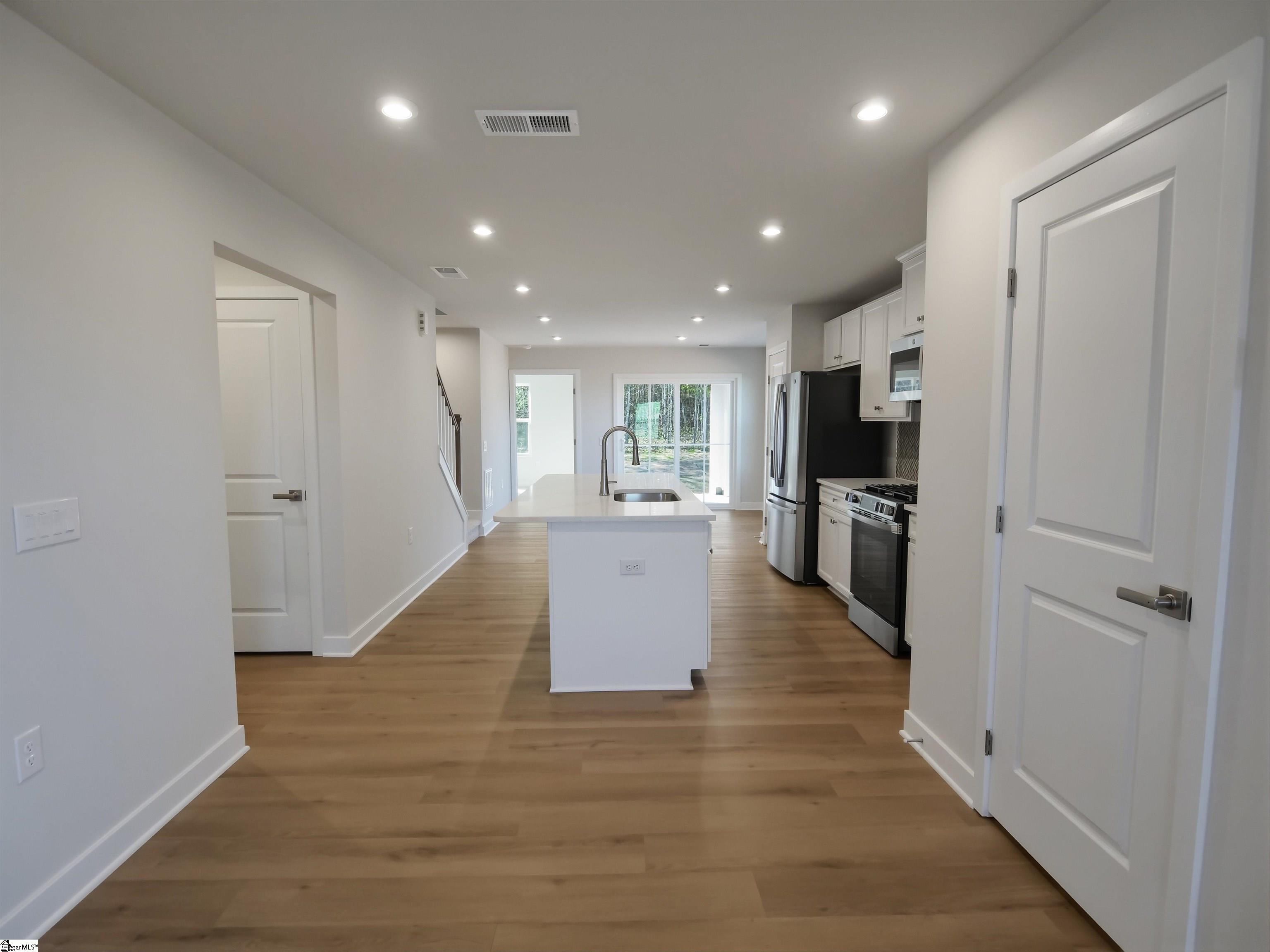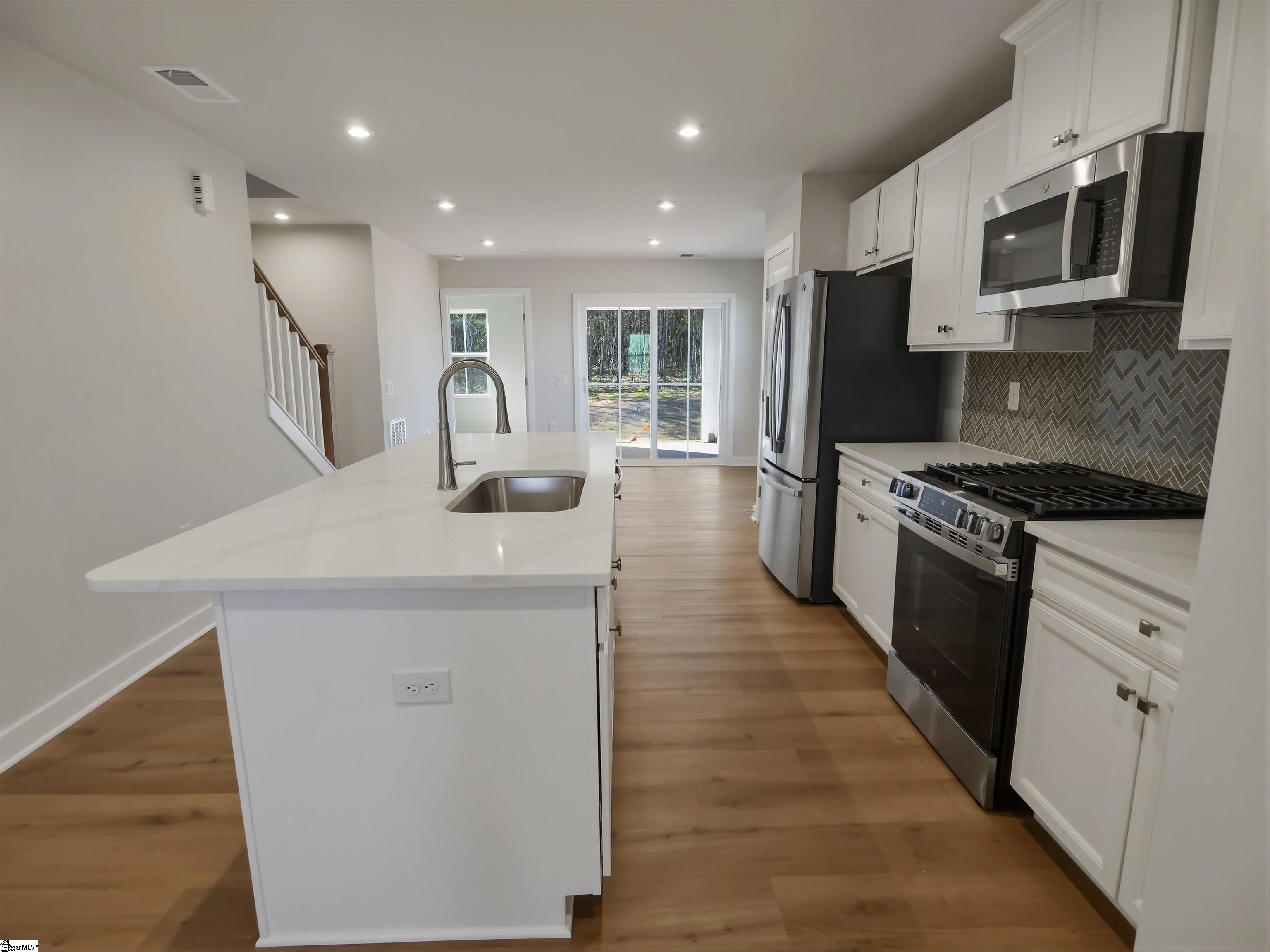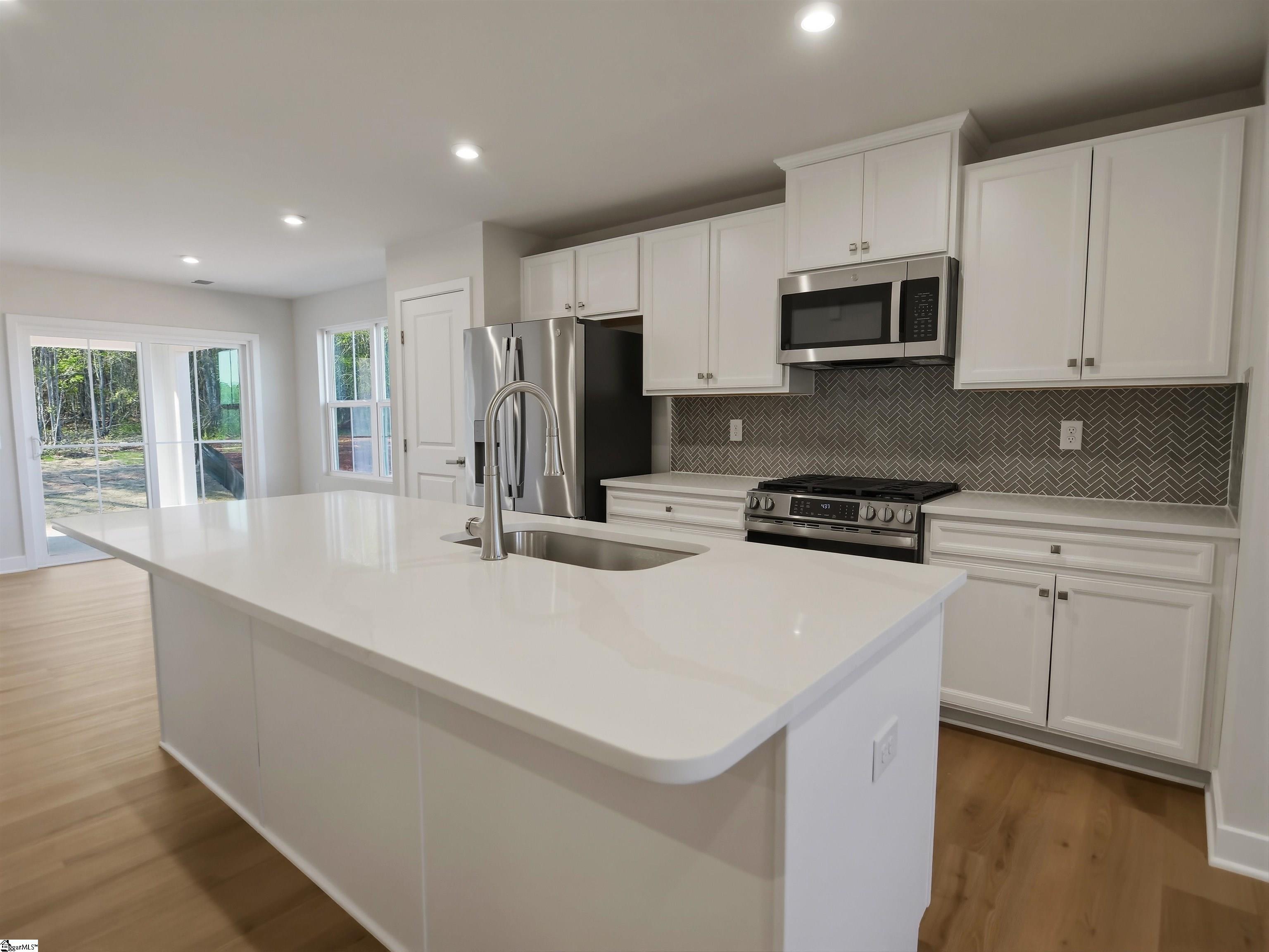 MOVE IN READY with main level owner’s suite, covered back porch and chef’s kitchen at BEECH GLEN! Enter through the attached garage and step into a bright and beautifully arranged kitchen with a spacious center island topped with sparkling quartz. This chef’s kitchen includes a gas range and fantastic herringbone backsplash with white cabinetry. All common areas feature gorgeous durable LVP plank floors. The adjacent great room and formal dining area are the perfect setup for hosting family and friends, whether indoors or out on the covered back porch. A well-appointed owner’s suite on the main level features a dual vanity bath and large walk-in closet. Just around the corner is an ultra convenient large laundry center. Upstairs, you’ll find two additional bedrooms, a full bath, and an incredible storage room to keep things organized. Beech Glen offers community amenities designed to bring neighbors together- pavilion with fireplace, pet park, nature path, and pickleball courts. Best of all LAWN CARE and EXTERIOR INSURANCE are included! Schedule your visit today!