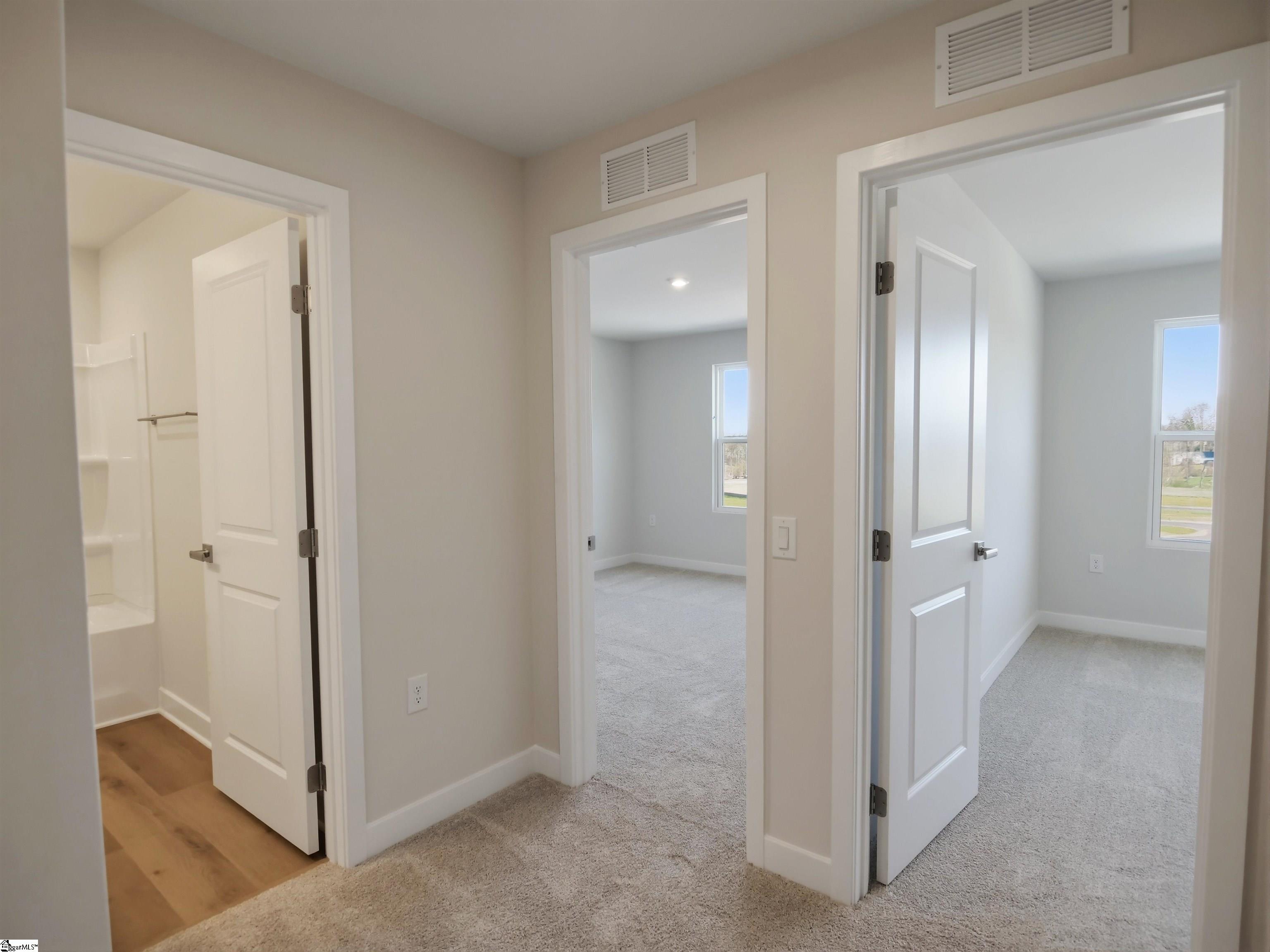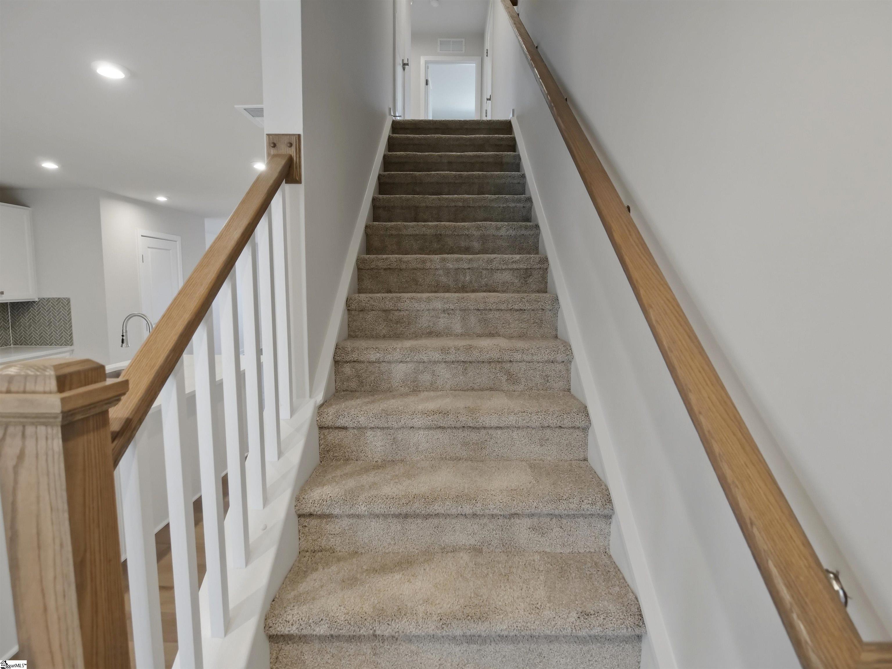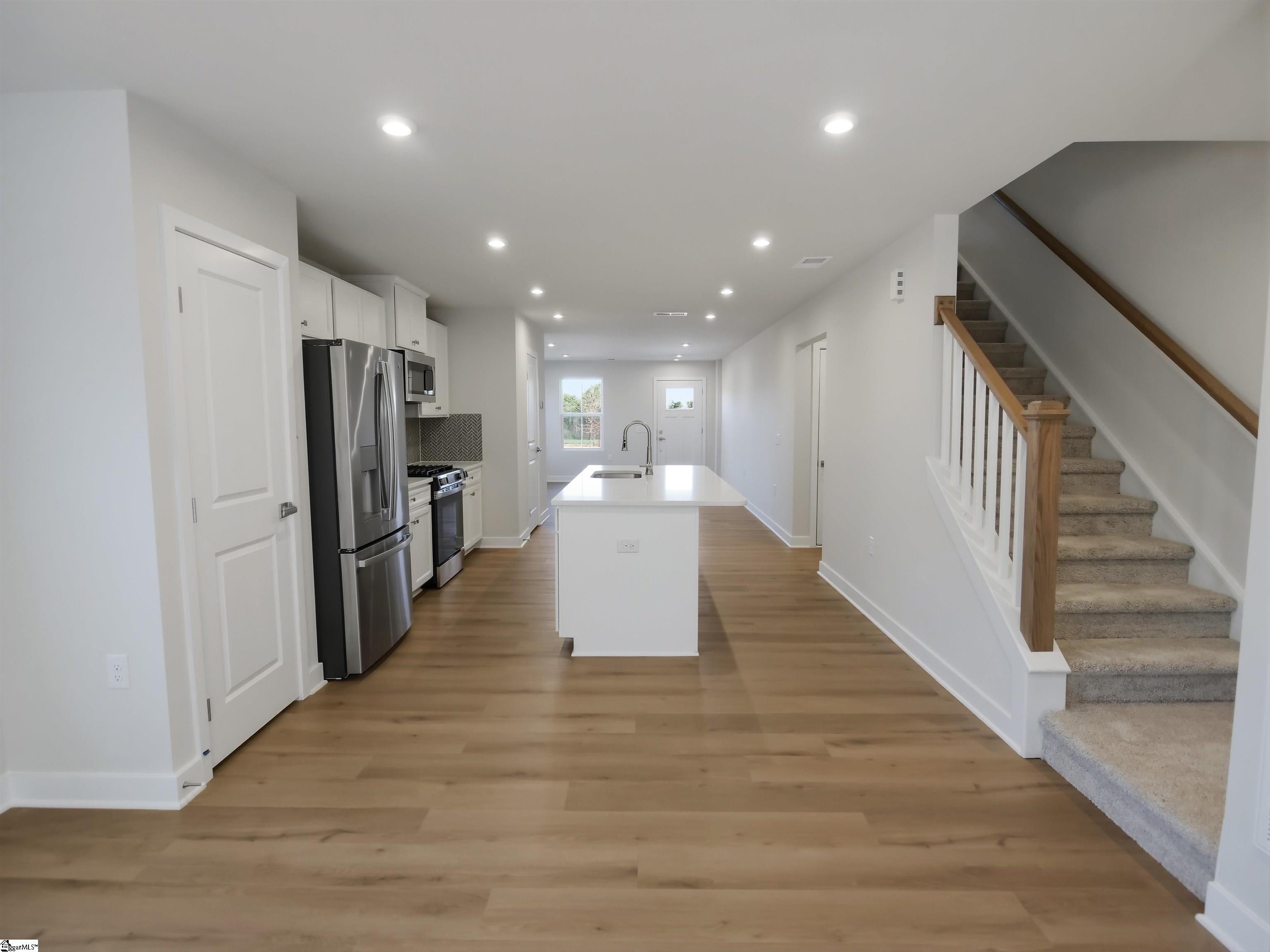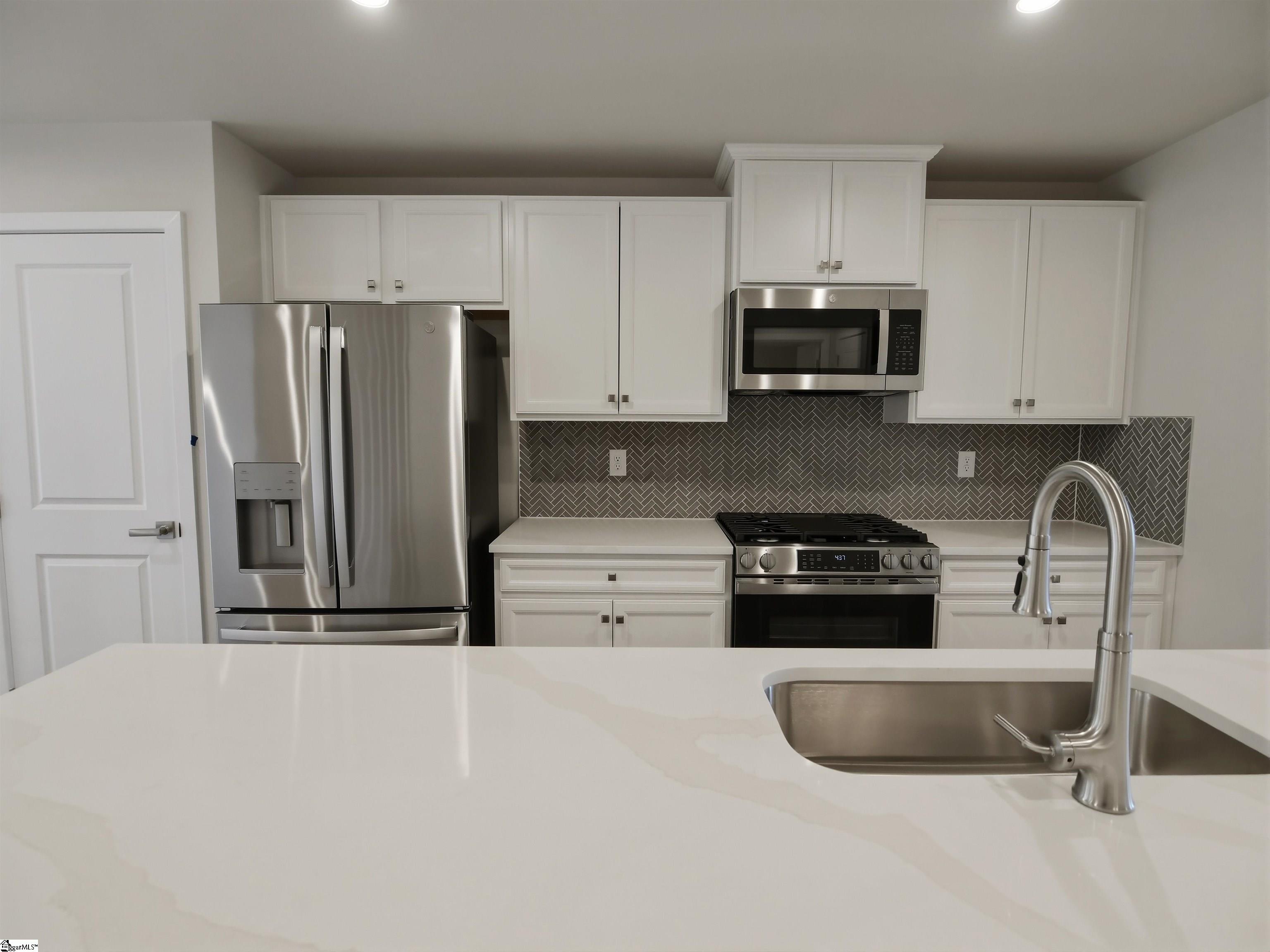 MOVE IN READY with main level owner’s suite, covered back porch and chef’s kitchen at BEECH GLEN! Enter through the attached garage and step into a bright and beautifully arranged kitchen with a spacious center island topped with sparkling quartz. This chef’s kitchen includes a gas range and fantastic herringbone backsplash with white cabinetry. All common areas feature gorgeous durable LVP plank floors. The adjacent great room and formal dining area are the perfect setup for hosting family and friends, whether indoors or out on the covered back porch. A well-appointed owner’s suite on the main level features a dual vanity bath and large walk-in closet. Just around the corner is an ultra convenient large laundry center. Upstairs, you’ll find two additional bedrooms, a full bath, and an incredible storage room to keep things organized. Beech Glen offers community amenities designed to bring neighbors together- pavilion with fireplace, pet park, nature path, and pickleball courts. Best of all LAWN CARE and EXTERIOR INSURANCE are included! Schedule your visit today!