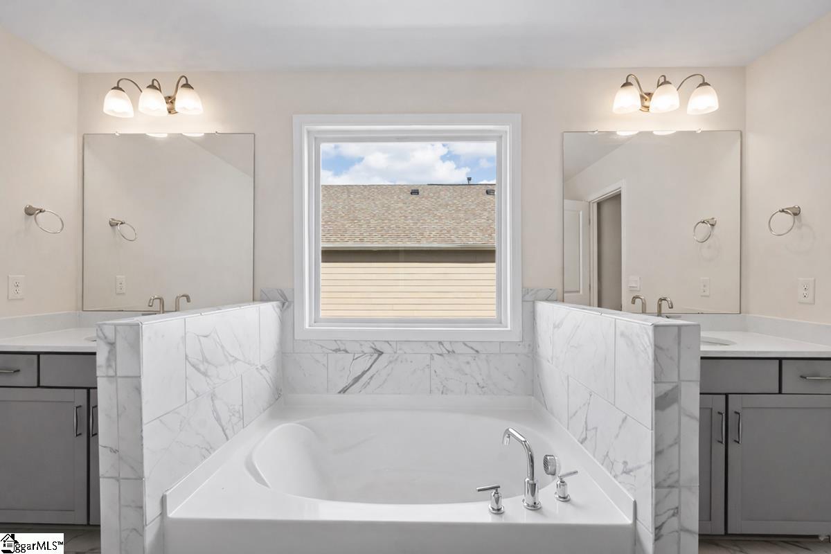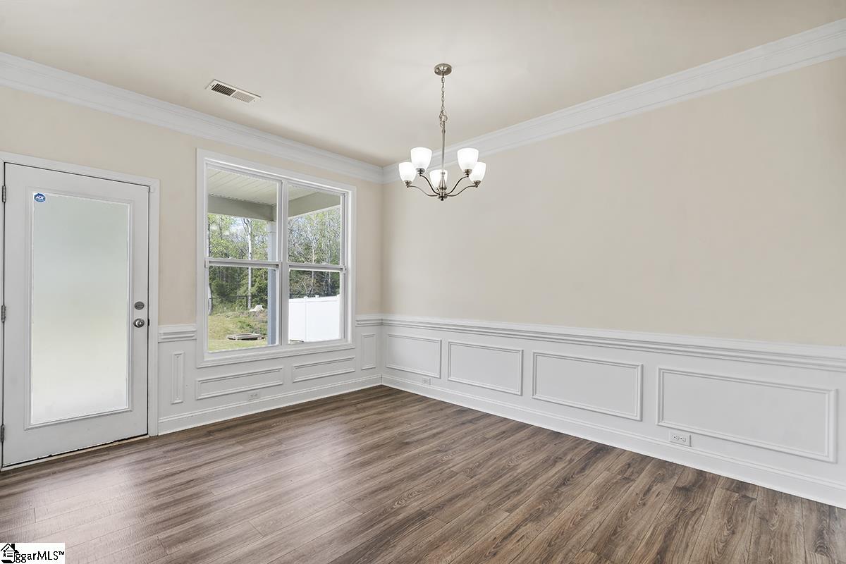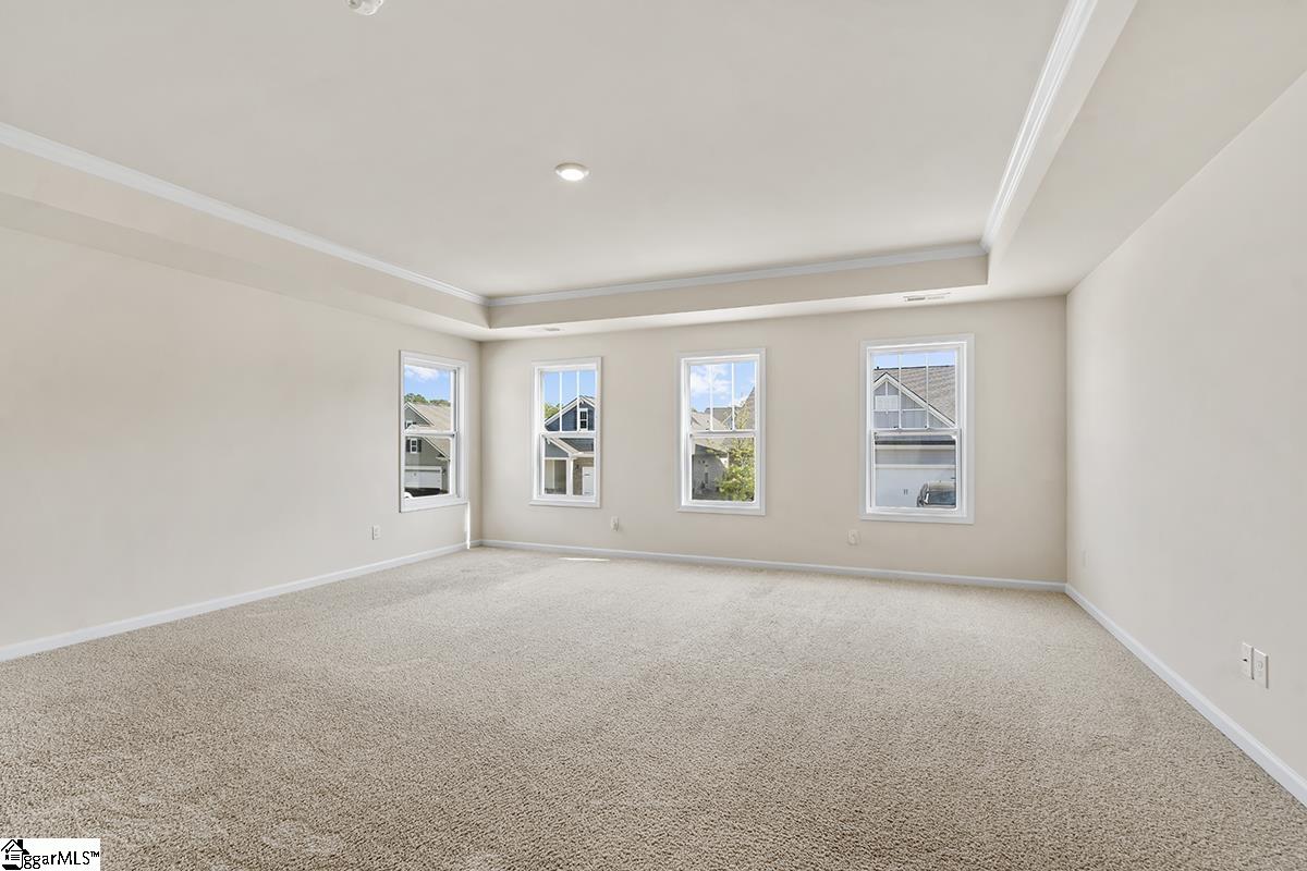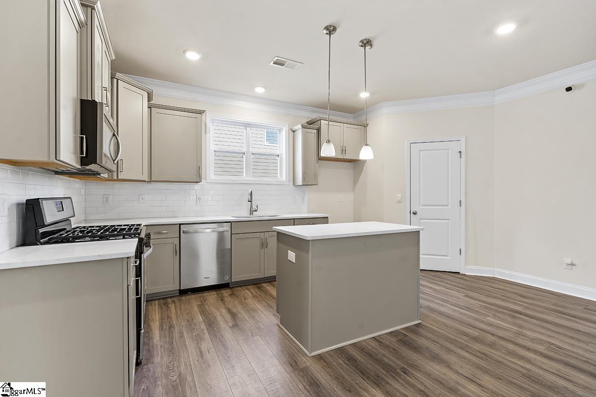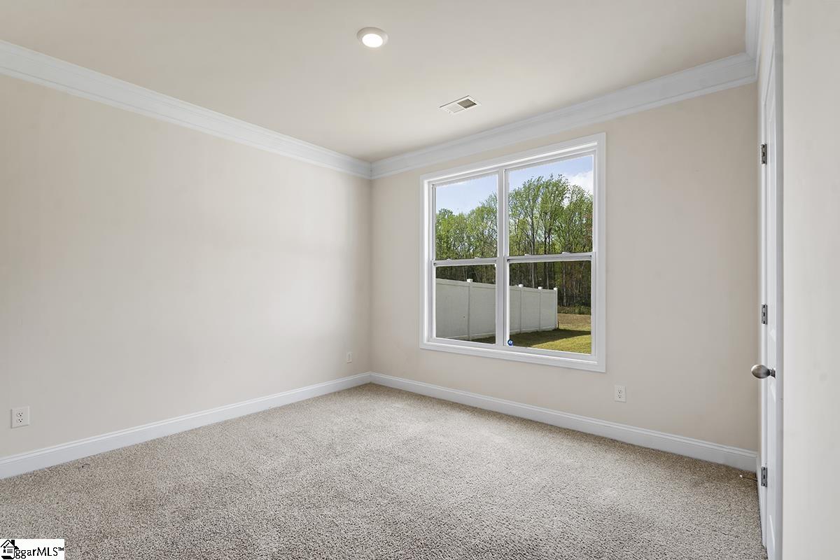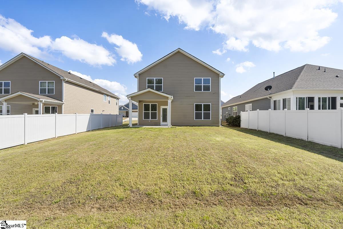 Welcome to Heritage Village—an exclusive community with limited opportunities remaining! This stunning 5-bedroom, 3-bath Berkshire plan offers over 2,700 square feet of thoughtfully designed living space just one mile from I-385 and minutes to shopping, dining, medical facilities, and Heritage Park. The main level features a secondary bedroom with private bath access, gleaming 5” hardwood floors, and elegant finishes including chair rail, wainscoting, and crown molding. The gourmet kitchen boasts gray cabinetry, quartz countertops, a spacious island, stainless steel appliances, and a gas range—opening to a warm and inviting family room with gas fireplace. Upstairs, the luxurious owner’s suite includes a trey ceiling, spa-like bath with tile shower, soaking tub, and a large walk-in closet. Enjoy outdoor living on the covered patio, plus the convenience of a 2-car garage. Energy-efficient construction in a prime location—don’t miss one of the final opportunities in this desirable community! Come see this home today!