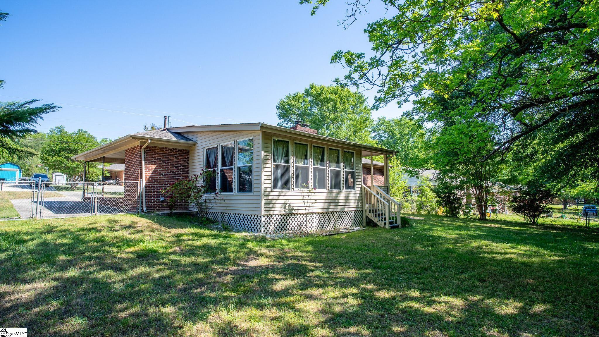 Welcome to your private retreat in the heart of Taylors! Located in the established Colonial Hills community—where there are no HOA fees or restrictive covenants—620 Creighton Drive offers the perfect blend of classic brick character and modern peace of mind. This charming full-brick ranch sits on a sprawling 0.65-acre level lot, providing a rare, park-like setting that extends all the way to the center of the creek at the rear. The grounds are a gardener’s dream, featuring a fully fenced backyard, walnut trees, fruit trees, azaleas, and blooming butterfly bushes. Low-maintenance vinyl and aluminum trim, an attached carport, and an extra-long driveway with an additional parking pad make exterior upkeep and guest parking a breeze. What truly sets this home apart are two versatile bonus spaces designed for work and play. First, a massive 16×24 sunroom filled with thermo-paned windows offers the ultimate flex space for a game room, hobby area, or home gym. Second, hobbyists will fall in love with the 20×24 detached garage/workshop, featuring a concrete floor, roll-up door, and a covered front porch. It is already wired for electricity and ready to house your next big project. Inside, the home shines with refinished red-oak hardwood floors that flow through the living area, dining room, and all three bedrooms. The spacious kitchen is equipped with solid wood cabinets, a large built-in pantry, an island for extra prep, and a new stainless steel refrigerator. On chilly evenings, the masonry fireplace with gas logs in the den provides a cozy atmosphere capable of heating the entire main living area. The most expensive updates have already been handled for you, including a one-year-old roof, new ductwork, and energy-efficient vinyl tilt-out thermal windows. The 2.5-ton HVAC system is under a transferable warranty and has been meticulously serviced twice a year. For added security, the seller is including a 1-Year First American Home Warranty. Conveniently located near the Eastside YMCA, Paris Mountain, and top-rated schools (Brushy Creek, Northwood, and Eastside High), this home is spotless and move-in ready. Schedule your tour today to experience the best value and space on the Eastside!