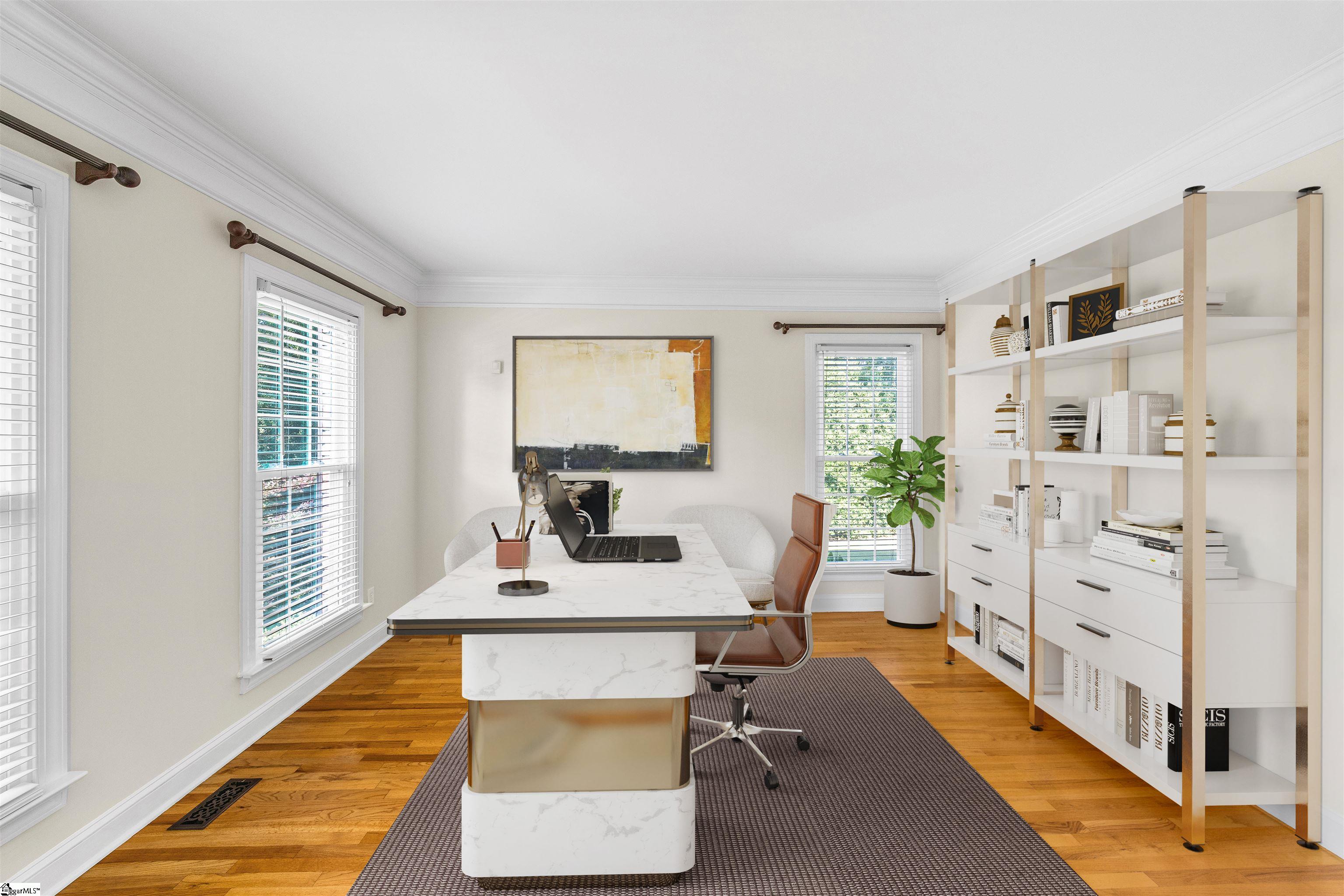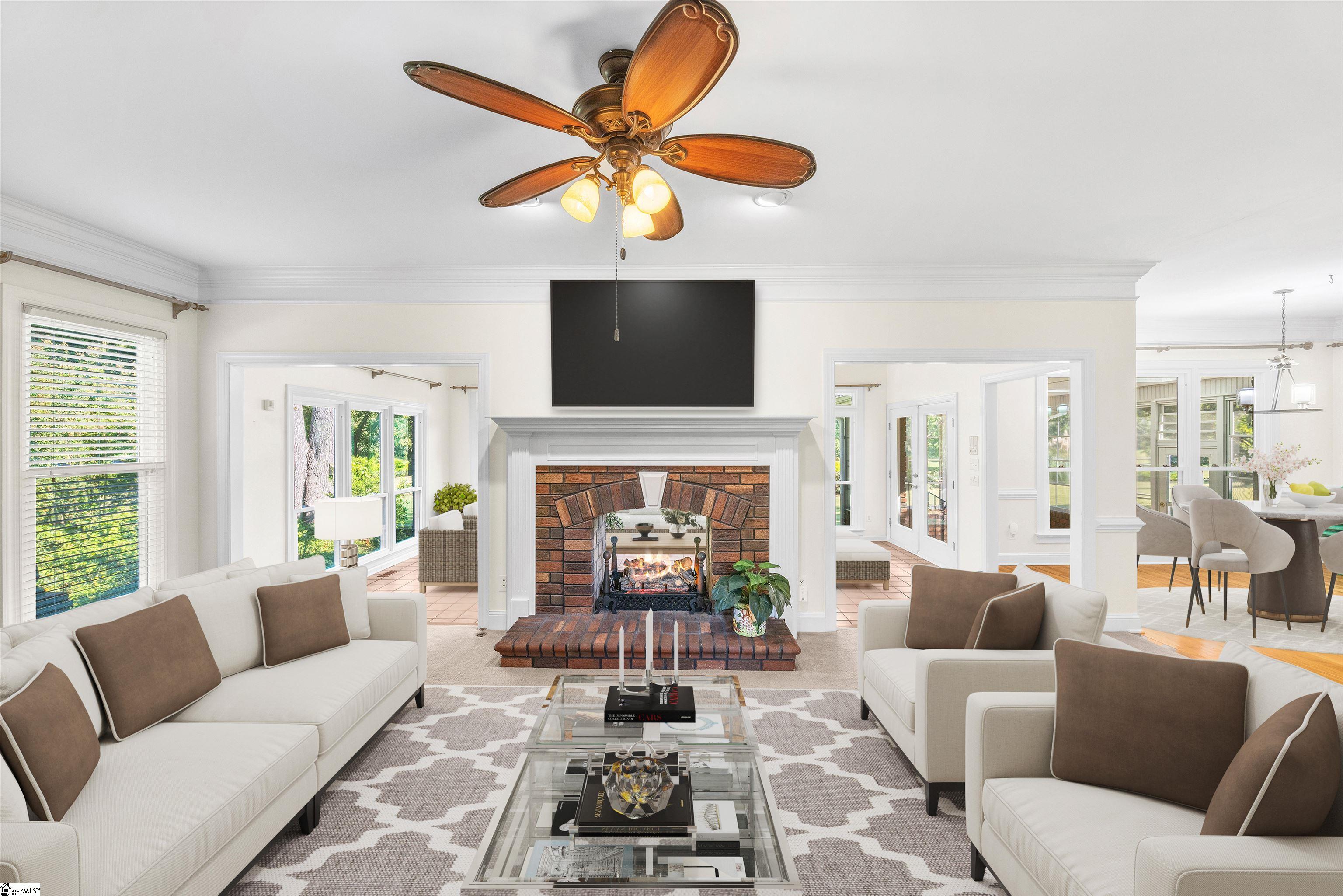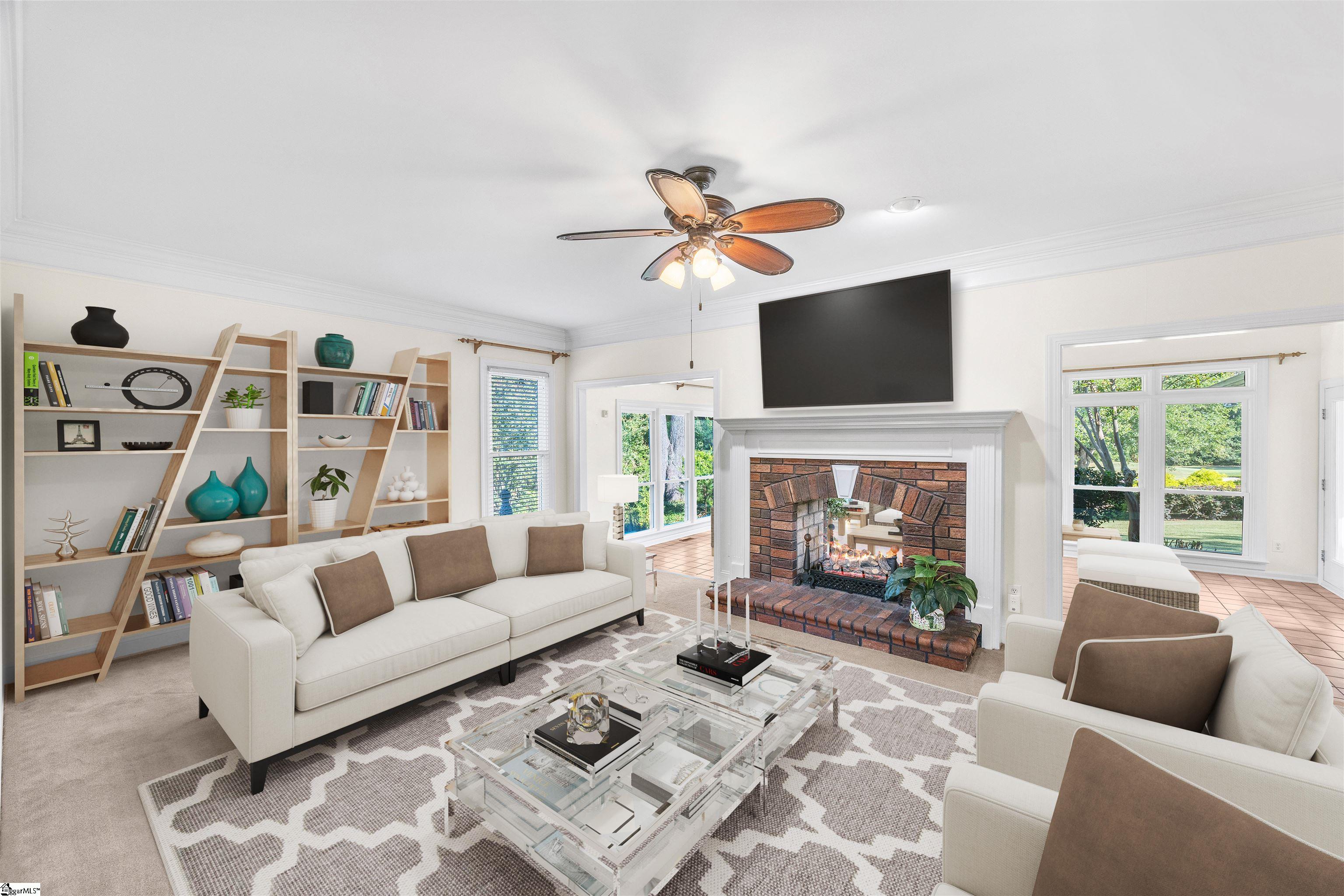 Welcome to this beautiful all-brick home, perfectly located in the popular Willow Creek community and offering amazing views of the 5th hole on the golf course. This well-maintained home is full of thoughtful updates and is sure to impress. Step inside to find shining hardwood floors, a cozy double-sided fireplace, and a flexible bonus room that works great as a home office — or even as an extra bedroom. Enjoy the bright and airy sunroom with tiled floors, which opens up to an enclosed patio with EZEBREEZE windows — a perfect place to relax and enjoy the view all year round. The spacious primary suite is a true retreat, featuring a sitting area with private access to a balcony that overlooks the golf course — ideal for morning coffee or winding down in the evening. There’s also extra space that can be used as a nursery or kitchenette, a huge walk-in closet, and a spa-like bathroom with a jetted tub, separate shower, and double vanity. Recent updates include: • All-new windows • Encapsulated crawl space • Epoxy-coated garage floor • Tons of attic storage Laundry Connections added to the upper level Plus, Willow Creek has just upgraded its community amenities — including Four brand new pickleball courts, basketball court and tennis courts. The Junior Sized Olympic lap pool is very popular to escape the summer heat.