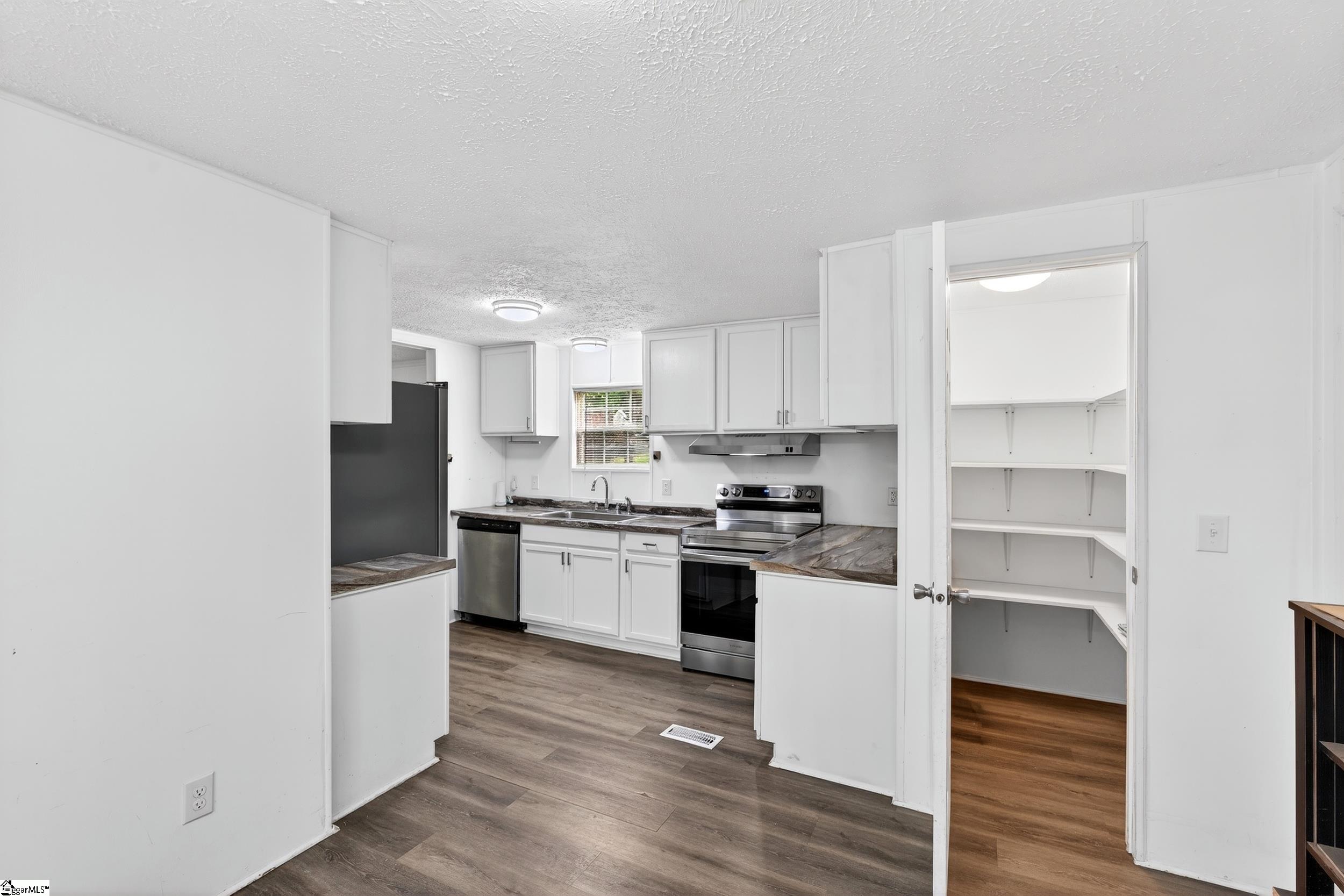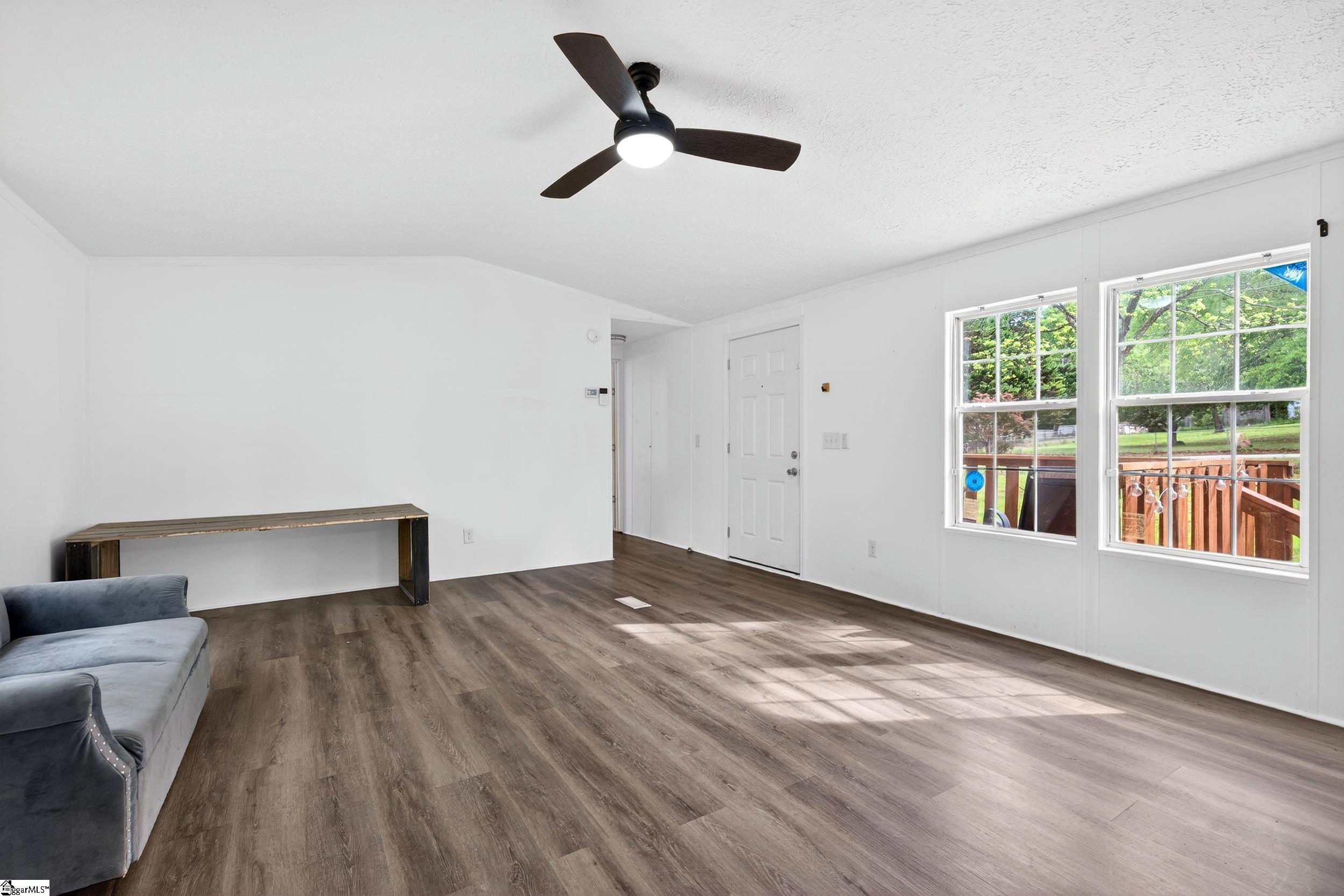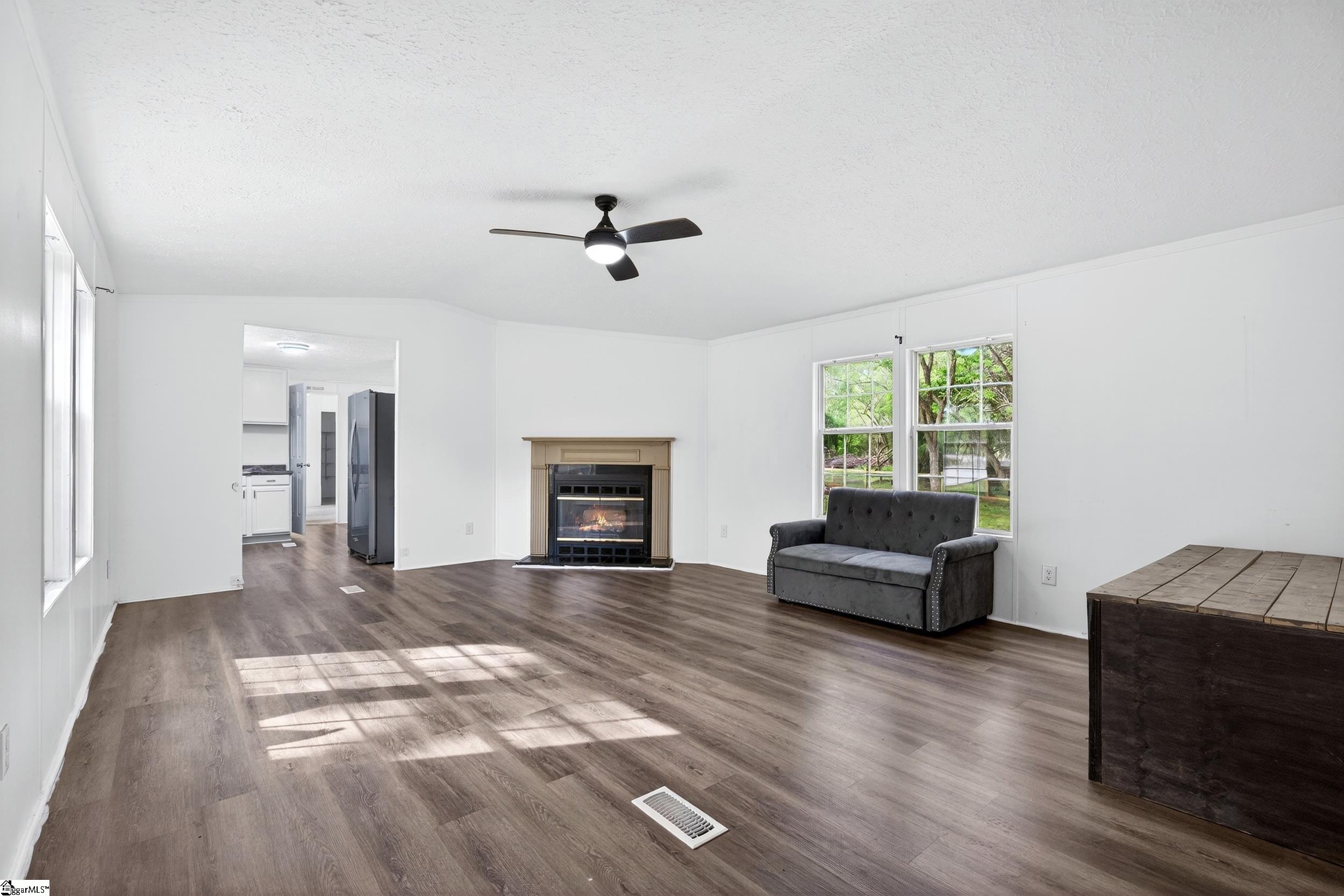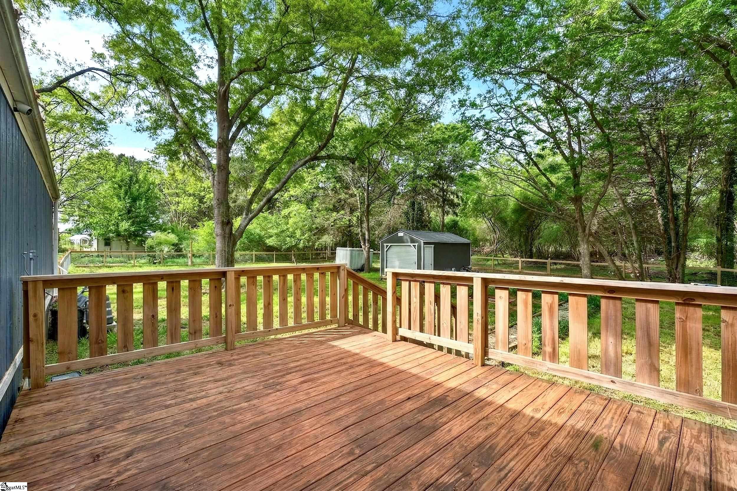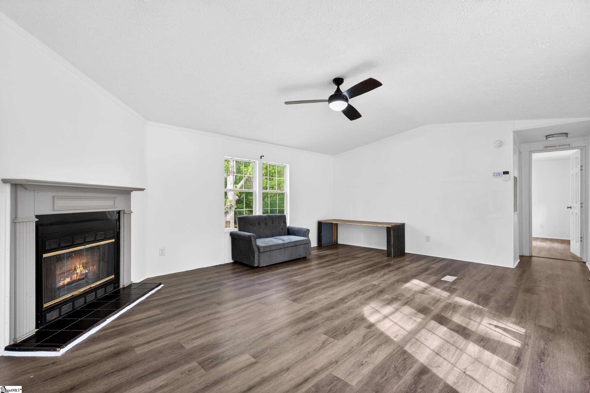 Discover your next home in this beautifully updated, FHA-compliant property designed with both comfort and functionality in mind. As you enter, you’re welcomed by soaring vaulted ceilings and a warm wood-burning fireplace, creating an inviting atmosphere perfect for relaxing or entertaining. The kitchen has been completely refreshed and serves as the centerpiece of the home, featuring brand-new cabinetry, modern countertops, stainless steel appliances, and a large walk-in pantry with plenty of storage space. The primary suite presents a private retreat with vaulted ceilings, an oversized walk-in closet, and an en-suite bathroom complete with extra storage. Positioned on the opposite side of the home, the second bedroom and full bathroom provide an ideal setup for guests, family members, or a home office. Outdoor living is just as impressive, with two spacious decks that are perfect for gatherings or enjoying peaceful surroundings. The home sits on just under an acre, featuring a large yard with mature trees that provide both beauty and privacy, along with a brand new farmhouse-style fence and a newly installed concrete driveway that enhance both curb appeal and functionality. Ideally located just minutes from downtown Fountain Inn, with convenient access to I-385, shopping, dining, and everyday amenities, this home offers the perfect balance of quiet living and accessibility. It is also located within the highly desirable Rudolph Gordon School District. Don’t miss your chance to see this charming property—schedule your private showing today! *NOTE: PROPERTY IS AGENT OWNED.*