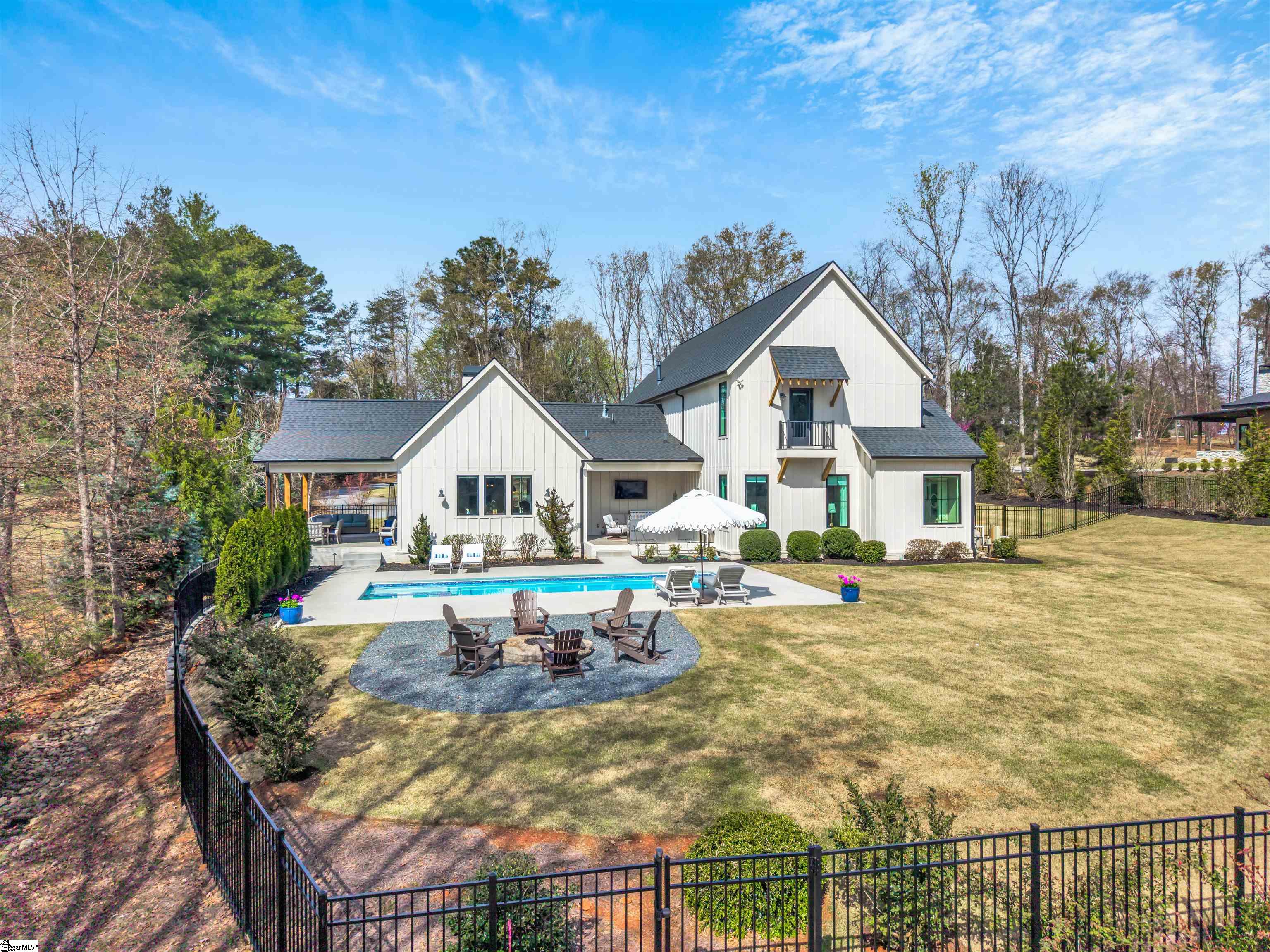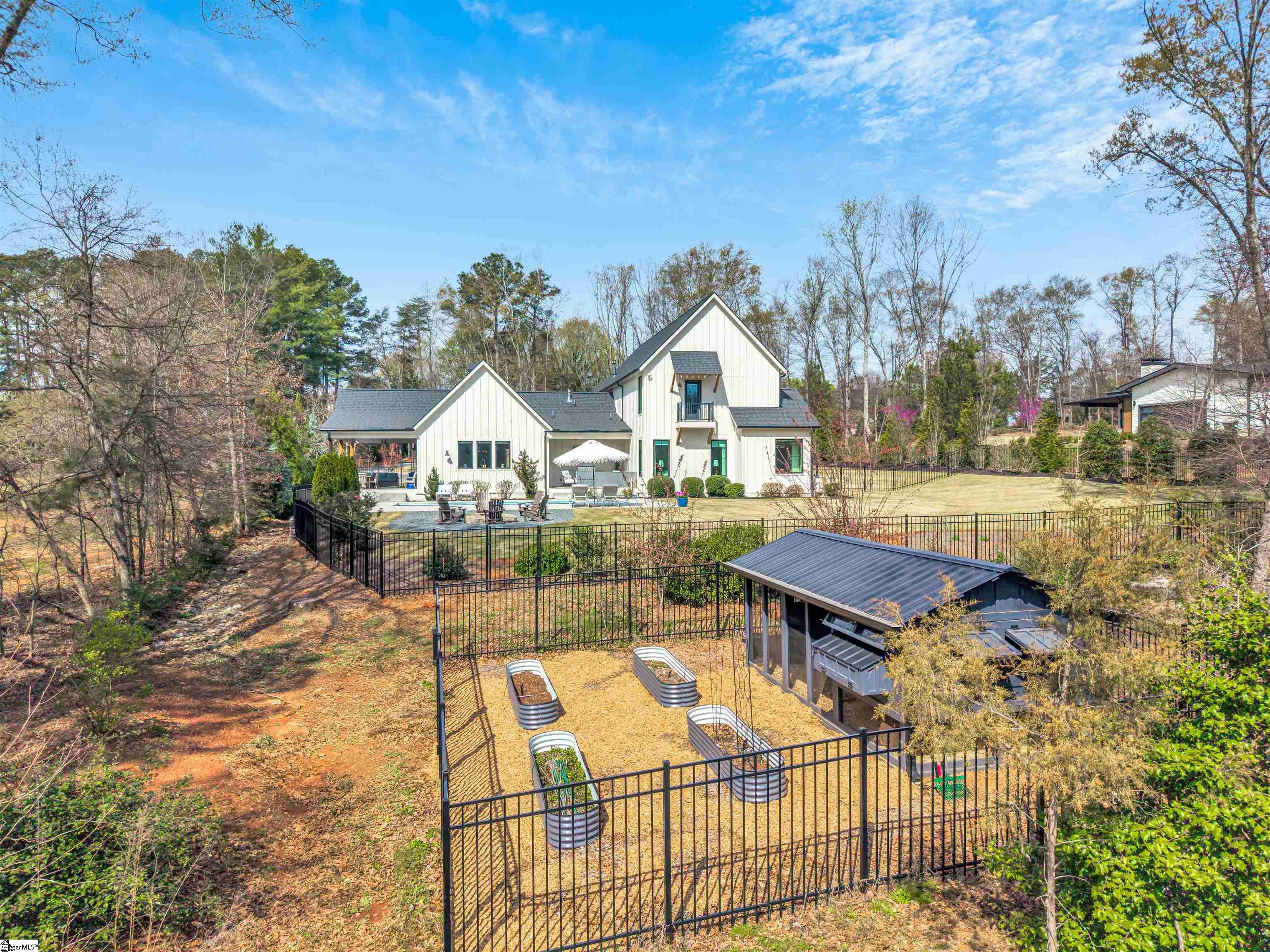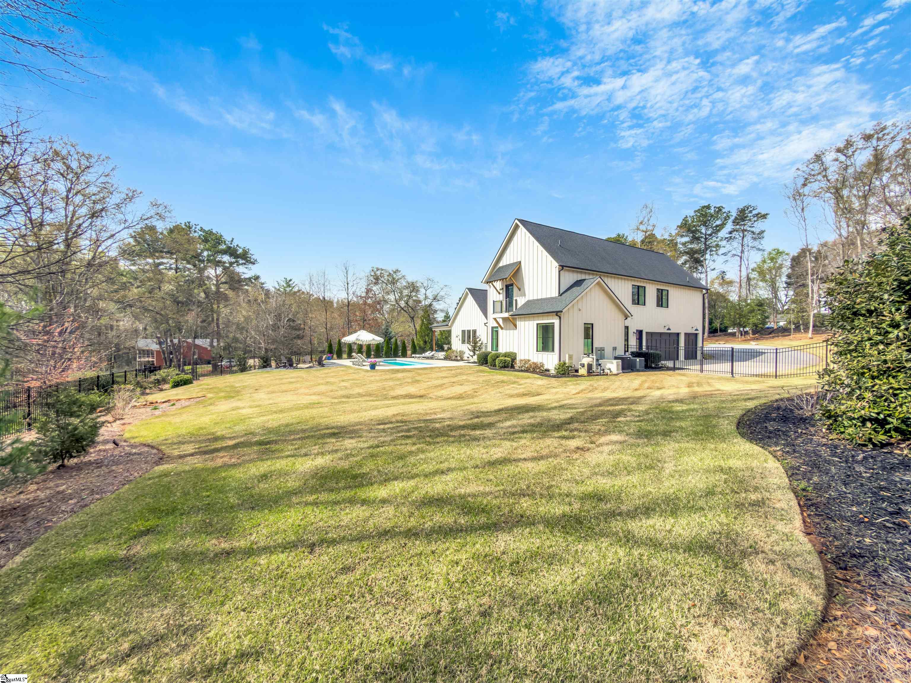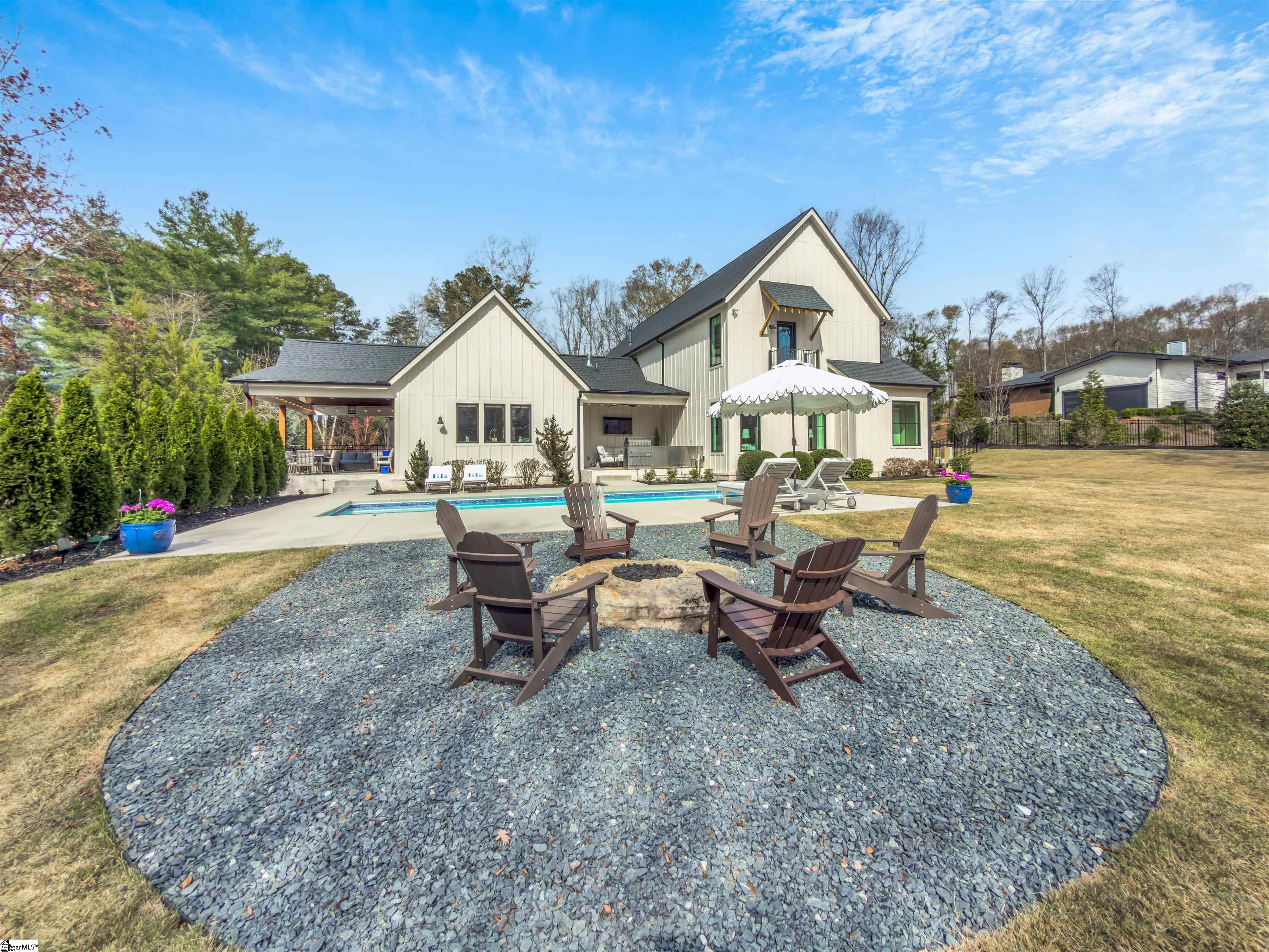 Located on 1.5 acres, 71 Blacks Drive offers the space, privacy, and upgrades rarely found this close to Greenville. A circular driveway and mature trees create a peaceful setting while still providing convenient access to shopping, dining, interstate, and GSP International. Inside, the home features an open layout filled with natural light, soaring ceilings, and beautiful wide-plank wood floors. The kitchen is designed for both everyday living and entertaining. highlighted by a large quartzite island. professional six-burner gas cooktop with griddle, double wall ovens, microwave, stainless steel appliances, ice-maker, and a spacious pantry. The main level includes a private primary suite with a spa-style bath featuring dual vanities, a soaking tub, and a tiled shower. An additional bedroom or office and full bath are also located on the main floor. Upstairs offers a large bonus and recreation space with a masonry fireplace, two additional bedrooms, a full bath, and backyard views from a charming Juliet balcony. The backyard has recently been transformed into a true outdoor retreat with a new pool and hot tub, a custom outdoor kitchen, fenced yard, fire pit, and professionally installed outdoor lighting that creates a beautiful evening atmosphere. Additional property features include raised garden beds, a custom chicken coop with water access, a three-car side-entry garage, and a whole house gas generator. Offering acreage, luxury outdoor living, and close proximity to downtown Greenville and no HOA, this property provides a rare opportunity to enjoy space and privacy while remaining convenient to everything the area has to offer.