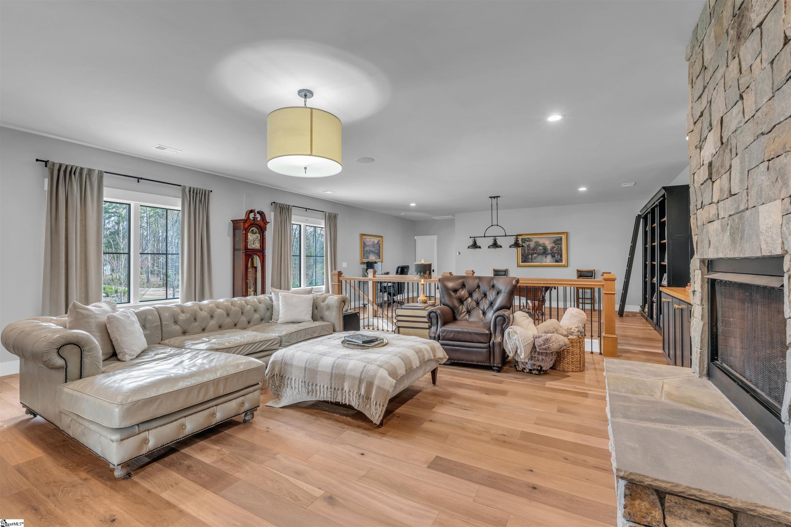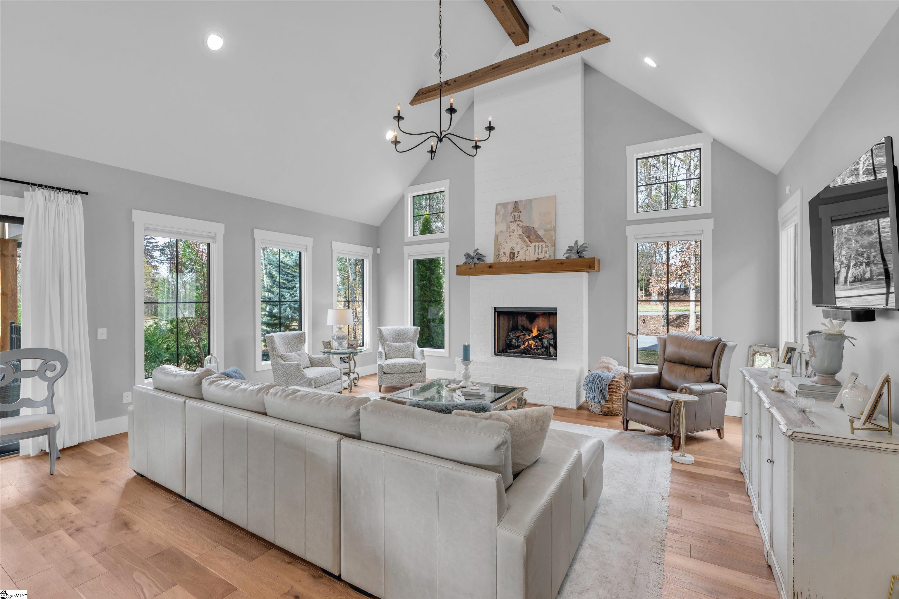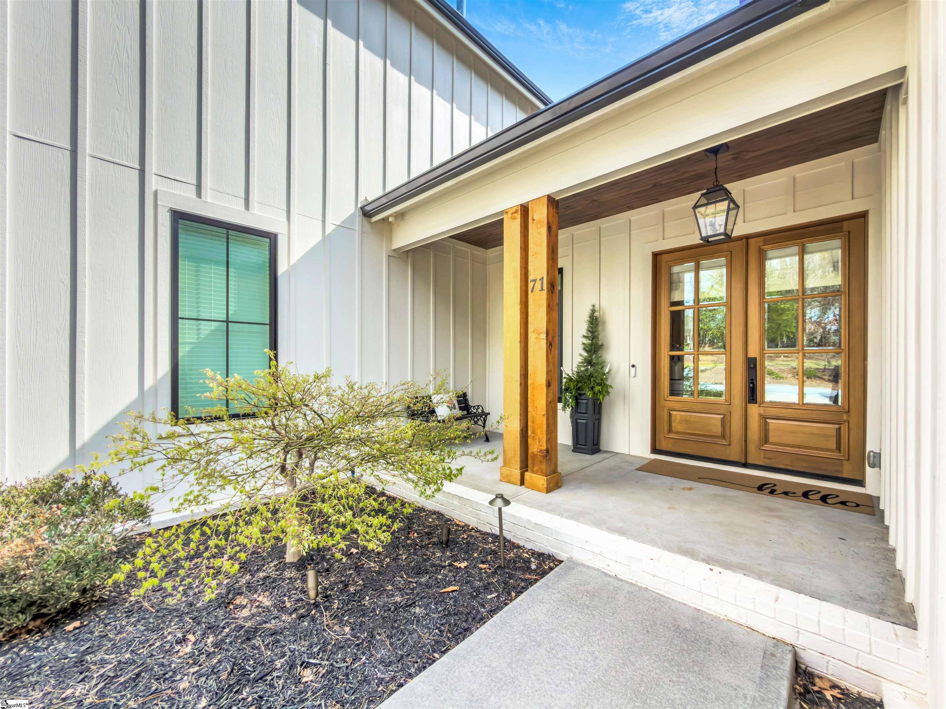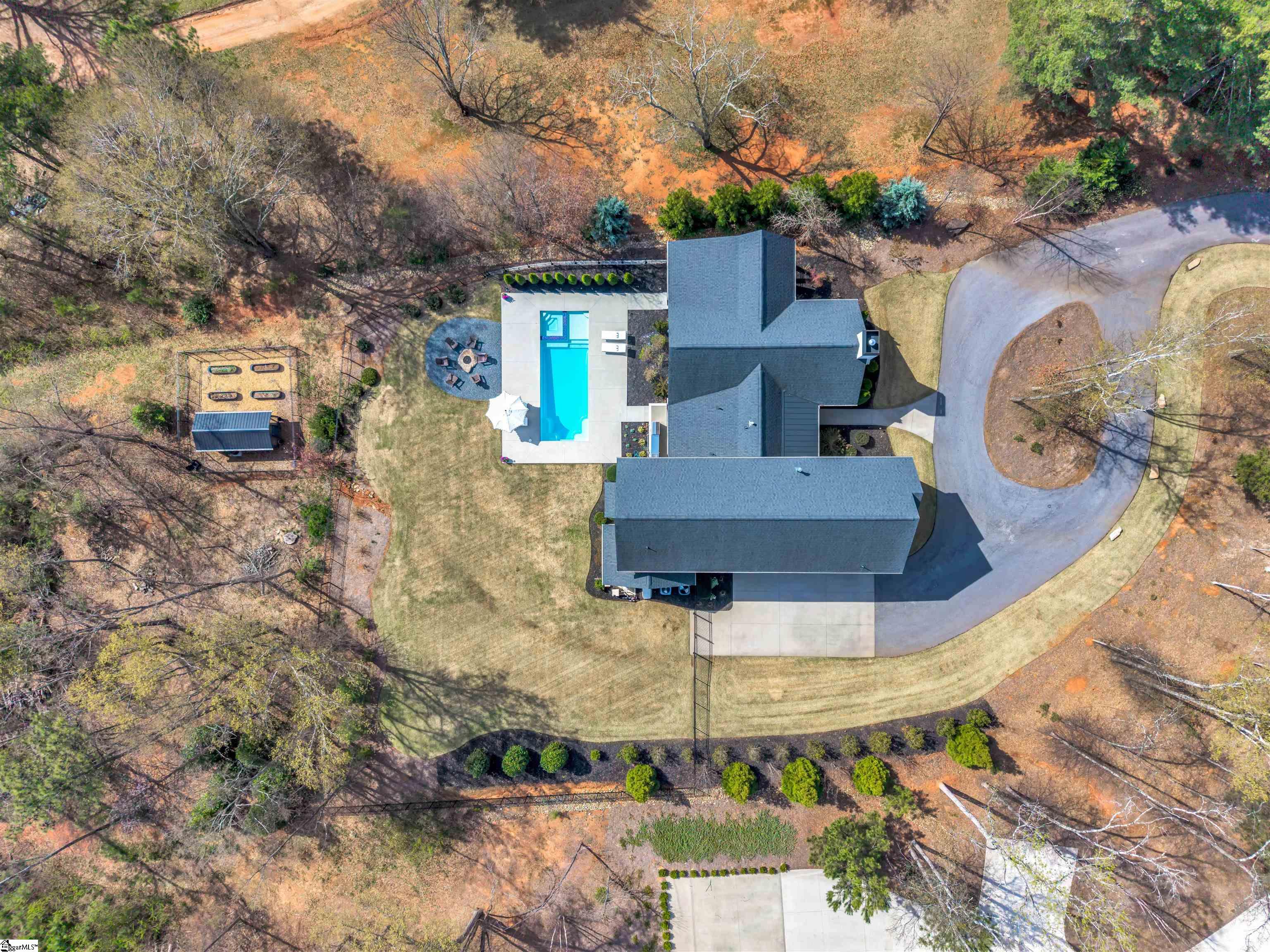 Located on 1.5 acres, 71 Blacks Drive offers the space, privacy, and upgrades rarely found this close to Greenville. A circular driveway and mature trees create a peaceful setting while still providing convenient access to shopping, dining, interstate, and GSP International. Inside, the home features an open layout filled with natural light, soaring ceilings, and beautiful wide-plank wood floors. The kitchen is designed for both everyday living and entertaining. highlighted by a large quartzite island. professional six-burner gas cooktop with griddle, double wall ovens, microwave, stainless steel appliances, ice-maker, and a spacious pantry. The main level includes a private primary suite with a spa-style bath featuring dual vanities, a soaking tub, and a tiled shower. An additional bedroom or office and full bath are also located on the main floor. Upstairs offers a large bonus and recreation space with a masonry fireplace, two additional bedrooms, a full bath, and backyard views from a charming Juliet balcony. The backyard has recently been transformed into a true outdoor retreat with a new pool and hot tub, a custom outdoor kitchen, fenced yard, fire pit, and professionally installed outdoor lighting that creates a beautiful evening atmosphere. Additional property features include raised garden beds, a custom chicken coop with water access, a three-car side-entry garage, and a whole house gas generator. Offering acreage, luxury outdoor living, and close proximity to downtown Greenville and no HOA, this property provides a rare opportunity to enjoy space and privacy while remaining convenient to everything the area has to offer.