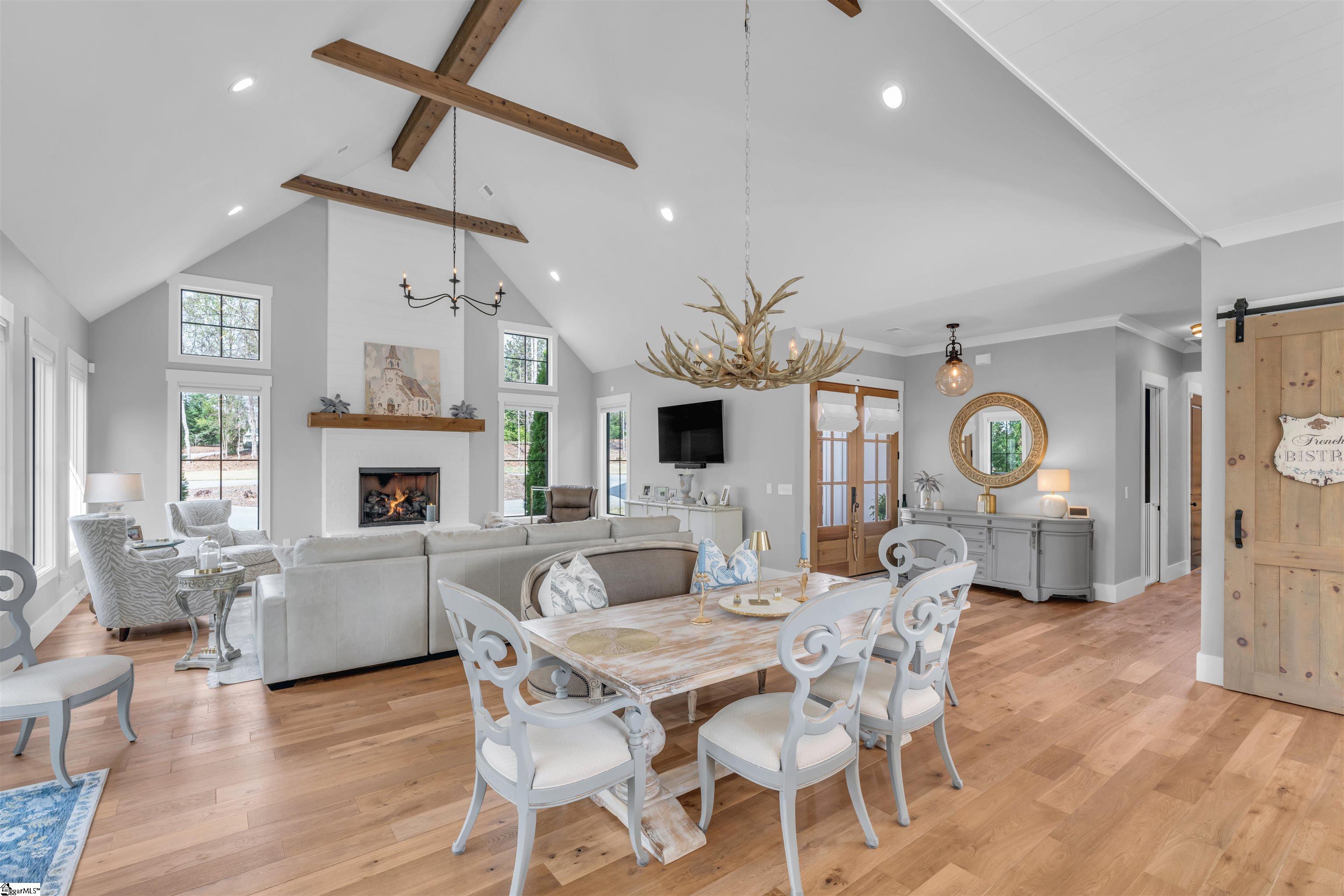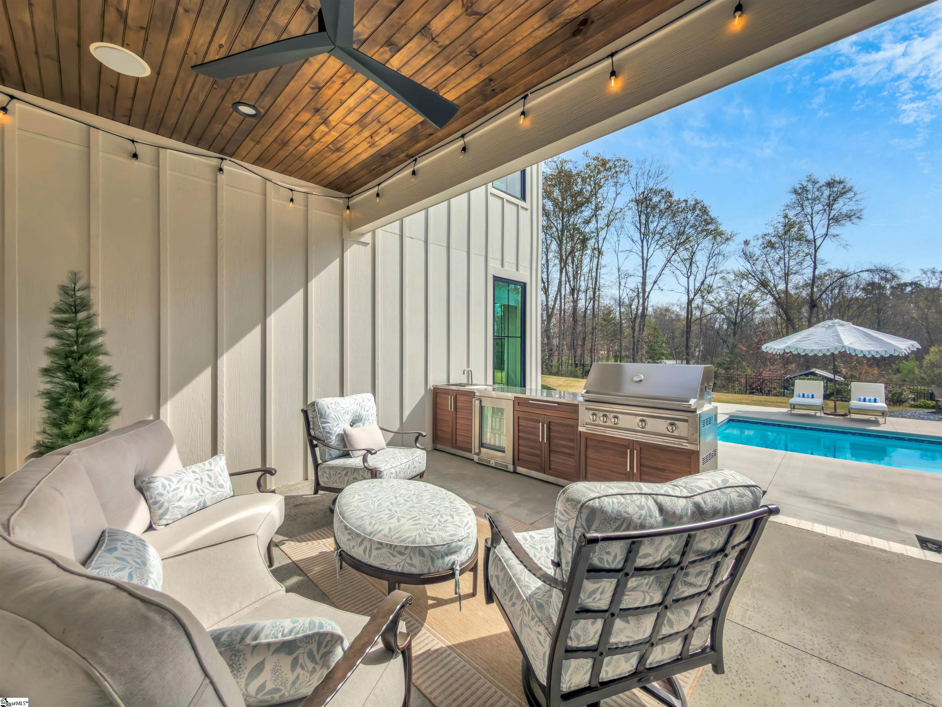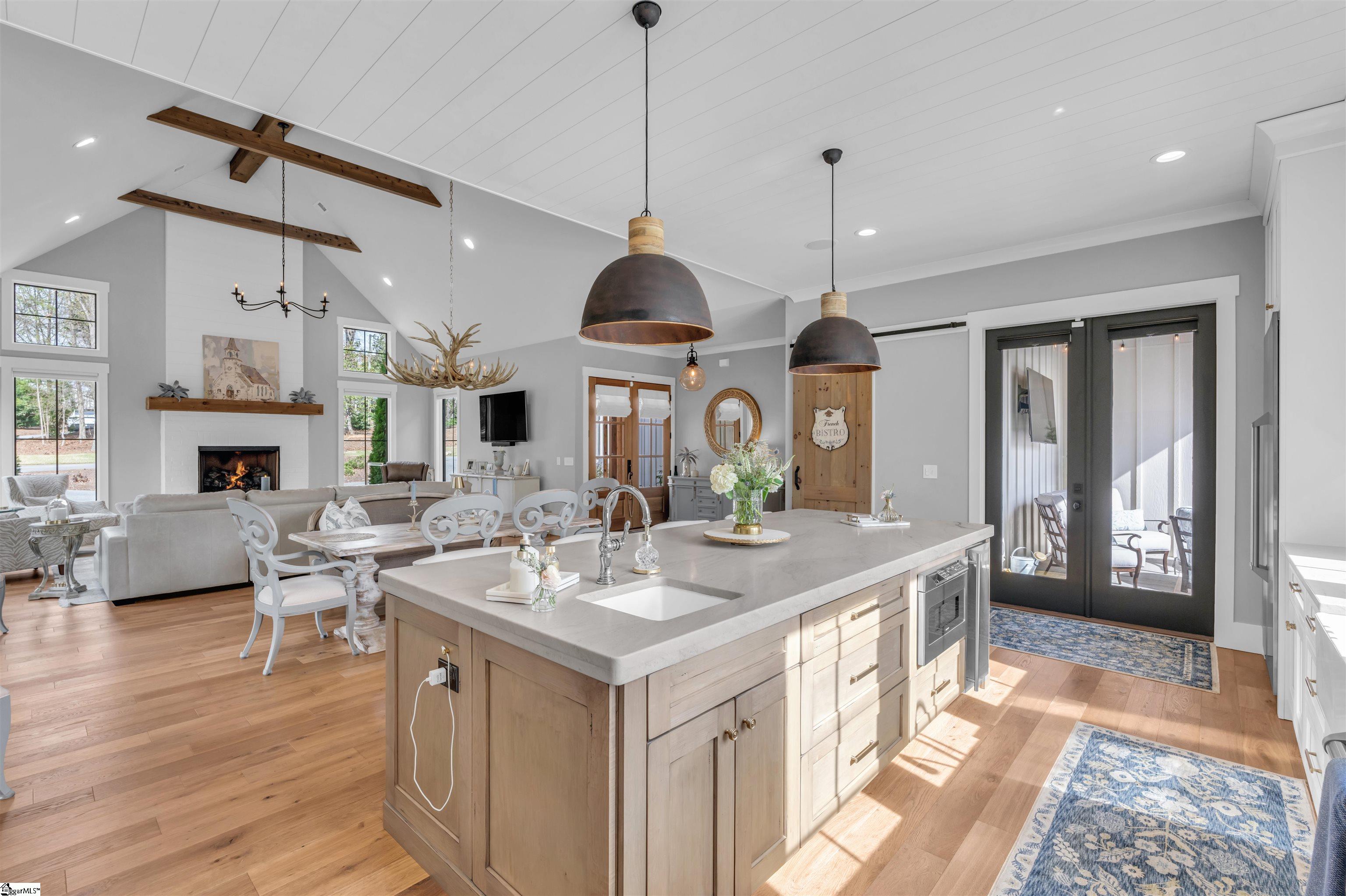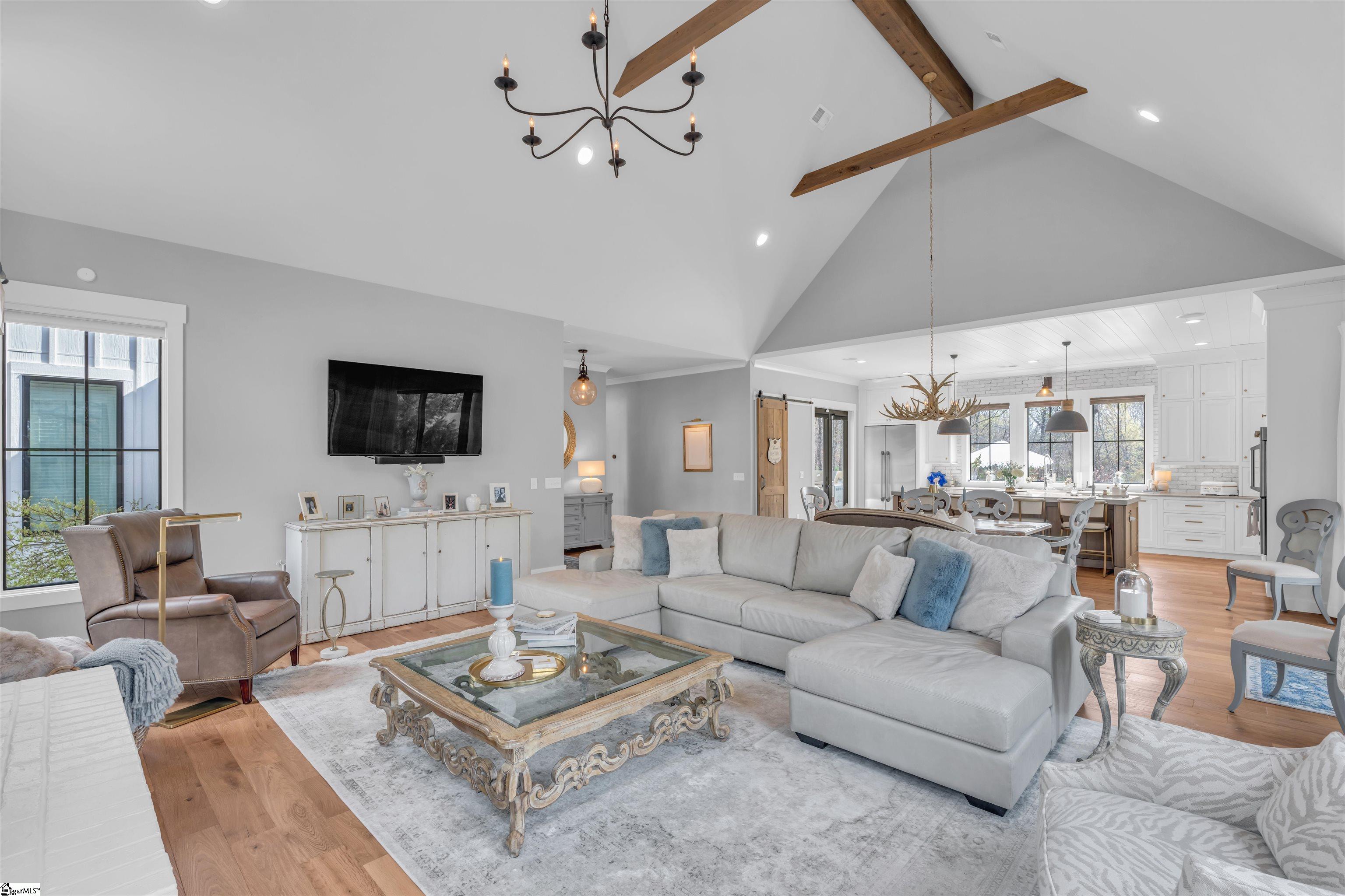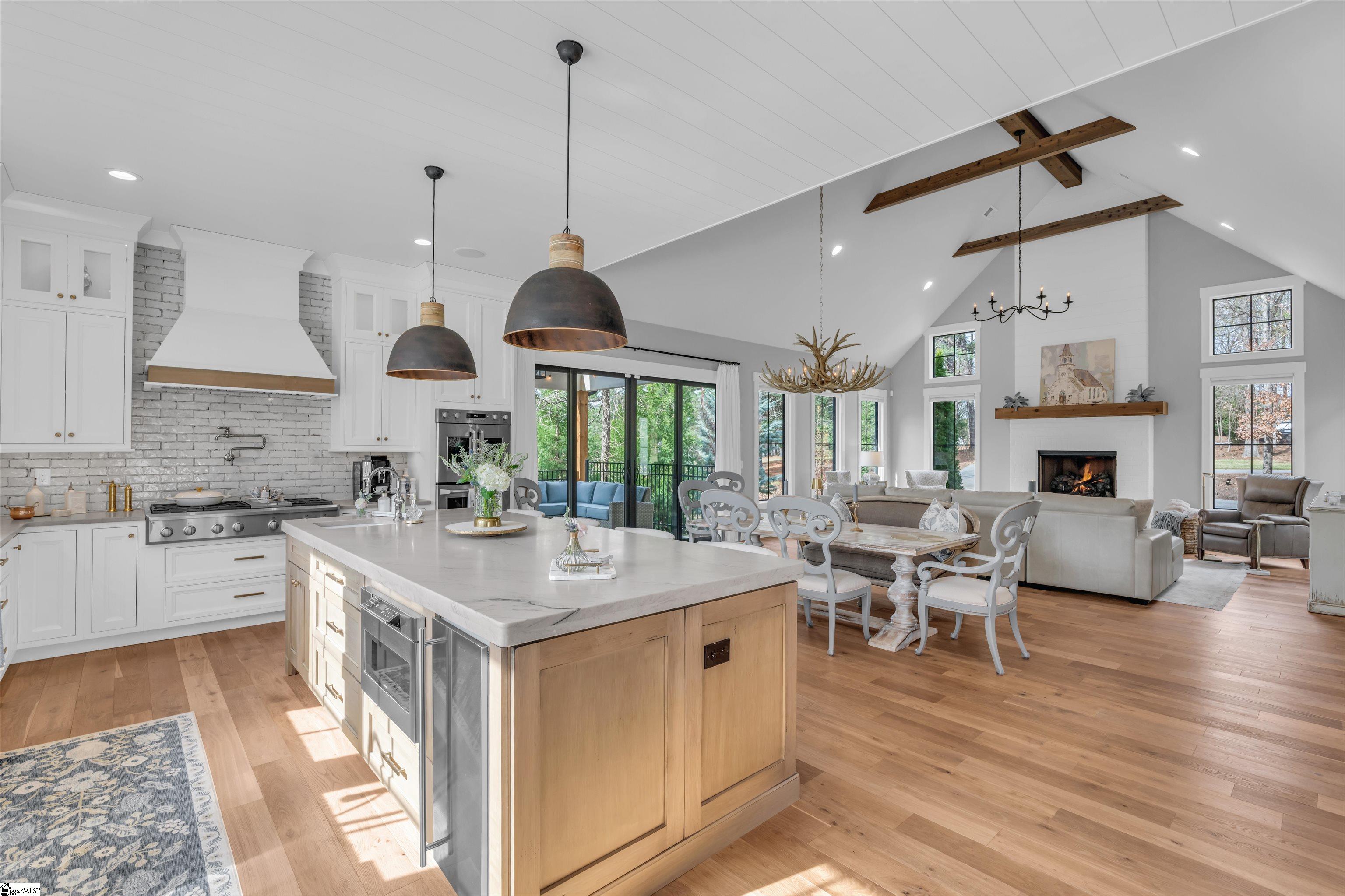 Located on 1.5 acres, 71 Blacks Drive offers the space, privacy, and upgrades rarely found this close to Greenville. A circular driveway and mature trees create a peaceful setting while still providing convenient access to shopping, dining, interstate, and GSP International. Inside, the home features an open layout filled with natural light, soaring ceilings, and beautiful wide-plank wood floors. The kitchen is designed for both everyday living and entertaining. highlighted by a large quartzite island. professional six-burner gas cooktop with griddle, double wall ovens, microwave, stainless steel appliances, ice-maker, and a spacious pantry. The main level includes a private primary suite with a spa-style bath featuring dual vanities, a soaking tub, and a tiled shower. An additional bedroom or office and full bath are also located on the main floor. Upstairs offers a large bonus and recreation space with a masonry fireplace, two additional bedrooms, a full bath, and backyard views from a charming Juliet balcony. The backyard has recently been transformed into a true outdoor retreat with a new pool and hot tub, a custom outdoor kitchen, fenced yard, fire pit, and professionally installed outdoor lighting that creates a beautiful evening atmosphere. Additional property features include raised garden beds, a custom chicken coop with water access, a three-car side-entry garage, and a whole house gas generator. Offering acreage, luxury outdoor living, and close proximity to downtown Greenville and no HOA, this property provides a rare opportunity to enjoy space and privacy while remaining convenient to everything the area has to offer.