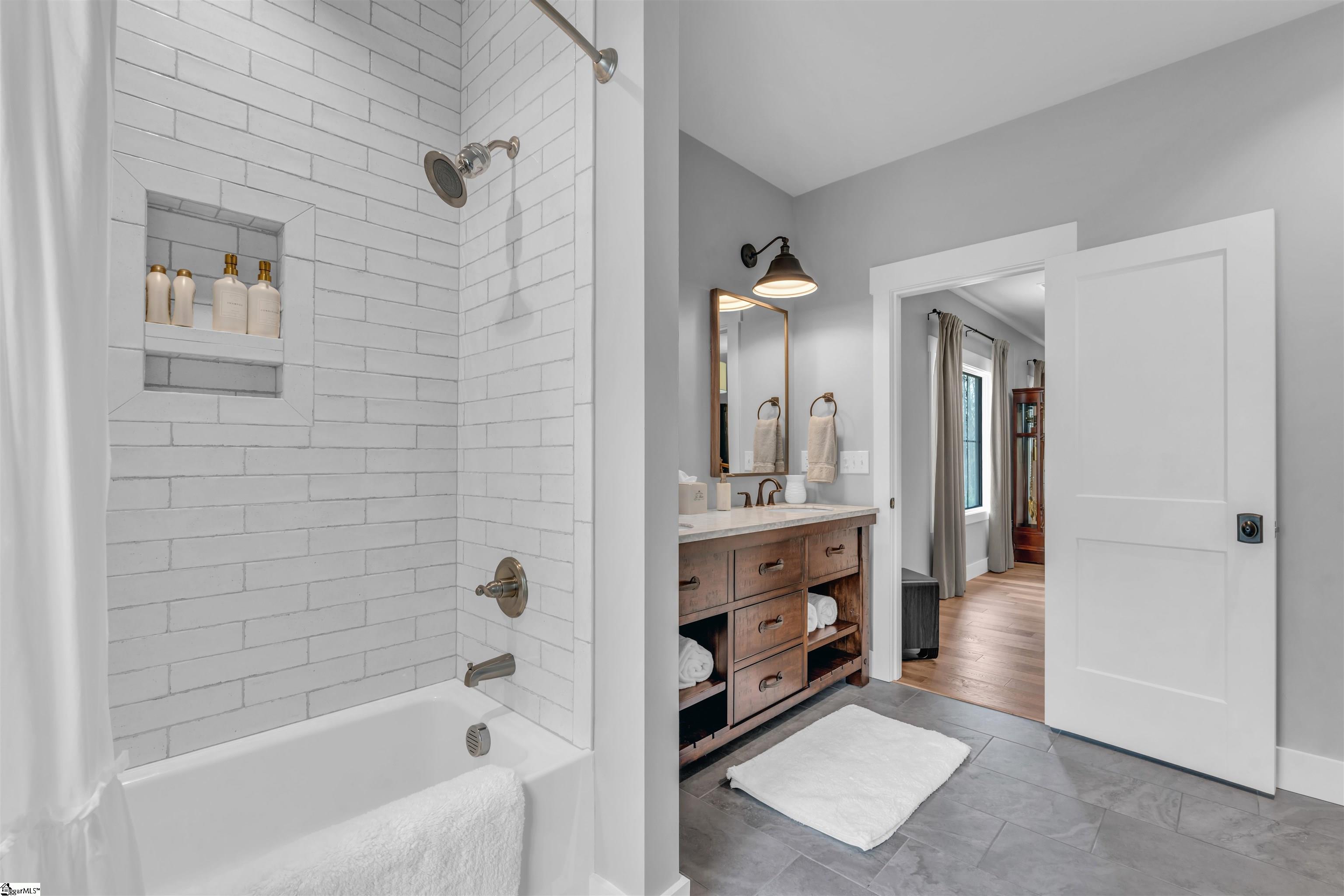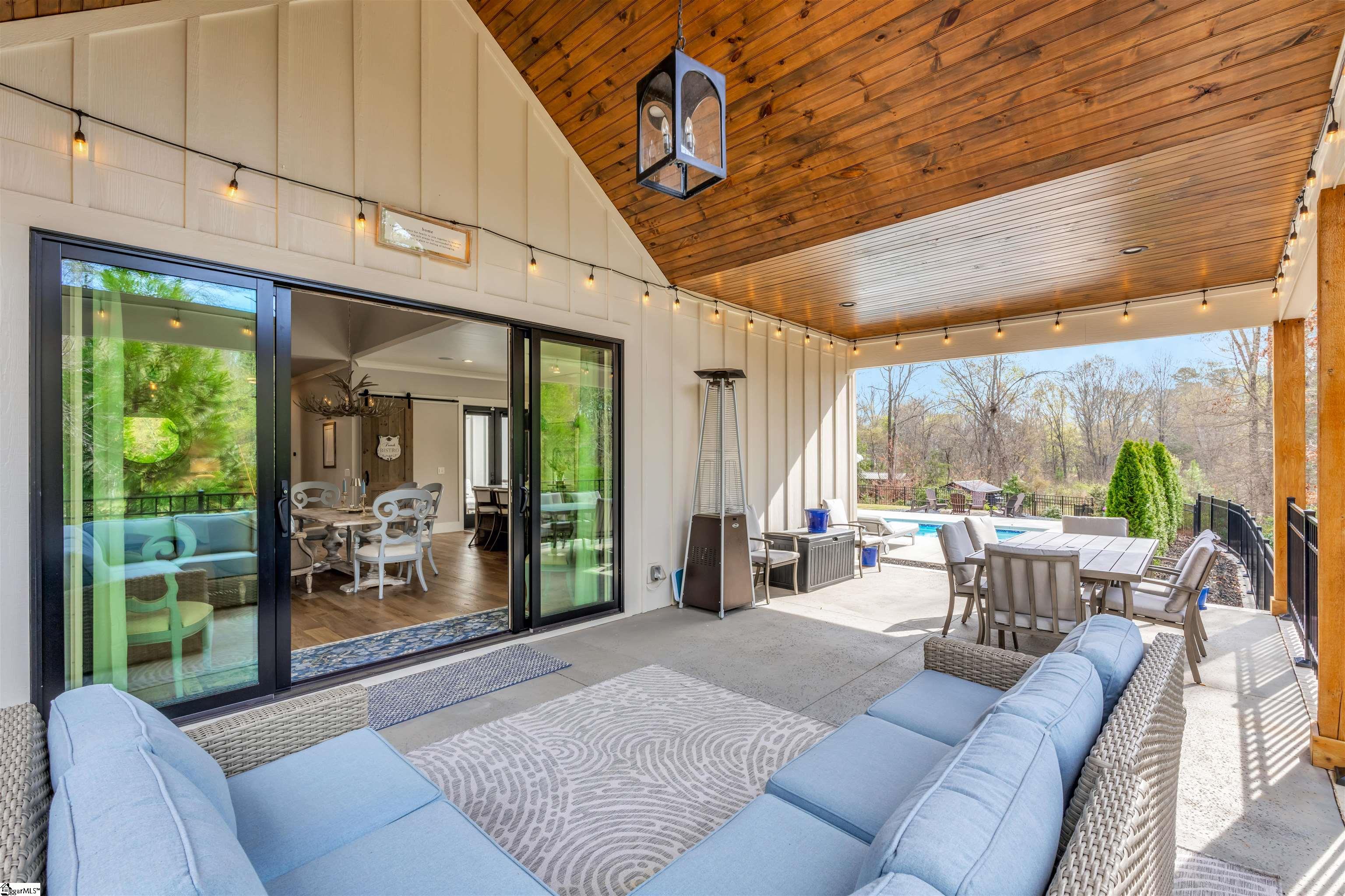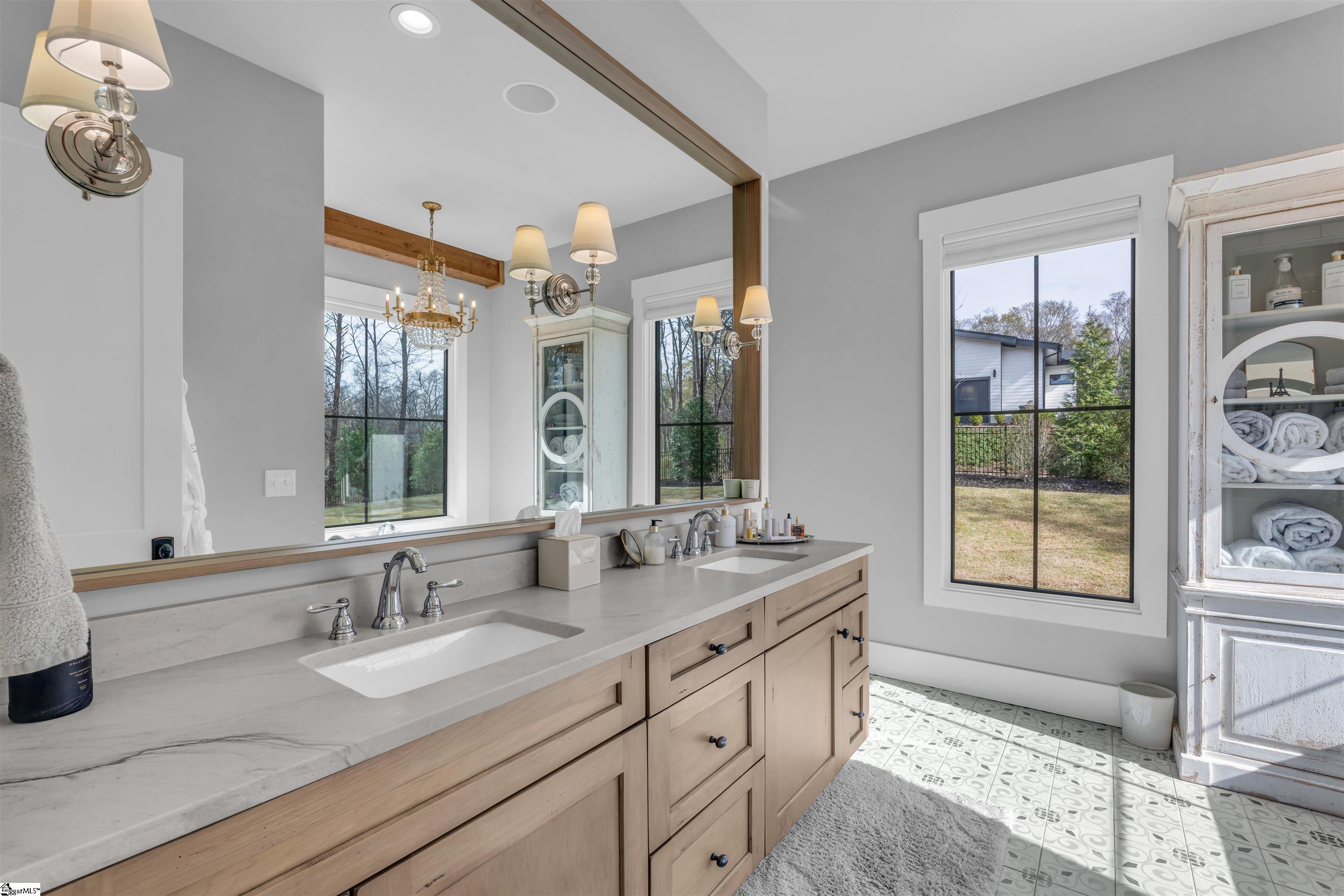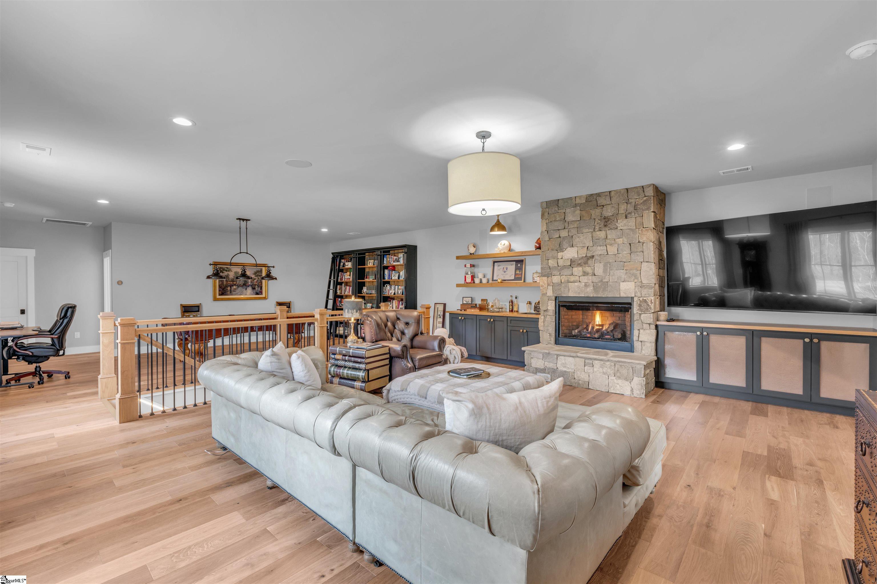 Located on 1.5 acres, 71 Blacks Drive offers the space, privacy, and upgrades rarely found this close to Greenville. A circular driveway and mature trees create a peaceful setting while still providing convenient access to shopping, dining, interstate, and GSP International. Inside, the home features an open layout filled with natural light, soaring ceilings, and beautiful wide-plank wood floors. The kitchen is designed for both everyday living and entertaining. highlighted by a large quartzite island. professional six-burner gas cooktop with griddle, double wall ovens, microwave, stainless steel appliances, ice-maker, and a spacious pantry. The main level includes a private primary suite with a spa-style bath featuring dual vanities, a soaking tub, and a tiled shower. An additional bedroom or office and full bath are also located on the main floor. Upstairs offers a large bonus and recreation space with a masonry fireplace, two additional bedrooms, a full bath, and backyard views from a charming Juliet balcony. The backyard has recently been transformed into a true outdoor retreat with a new pool and hot tub, a custom outdoor kitchen, fenced yard, fire pit, and professionally installed outdoor lighting that creates a beautiful evening atmosphere. Additional property features include raised garden beds, a custom chicken coop with water access, a three-car side-entry garage, and a whole house gas generator. Offering acreage, luxury outdoor living, and close proximity to downtown Greenville and no HOA, this property provides a rare opportunity to enjoy space and privacy while remaining convenient to everything the area has to offer.