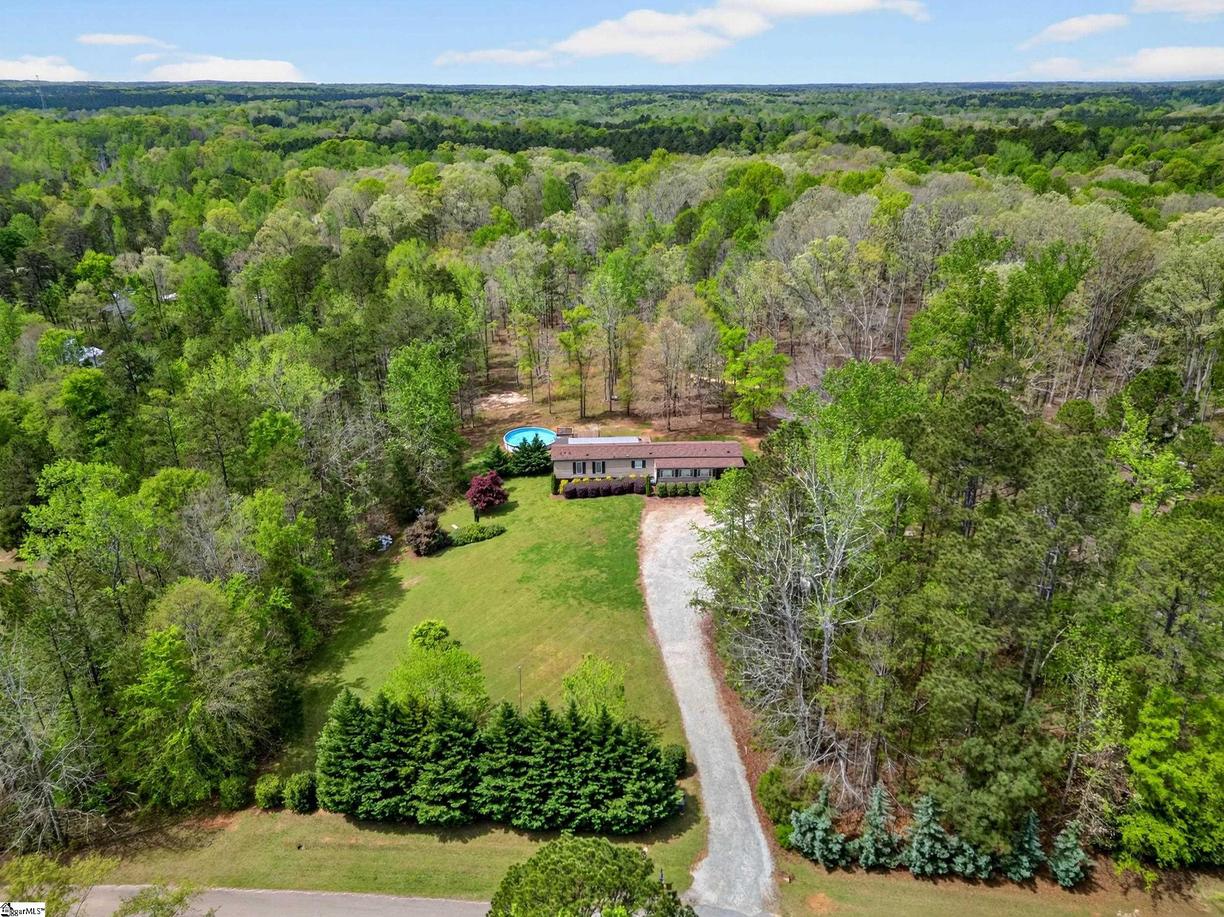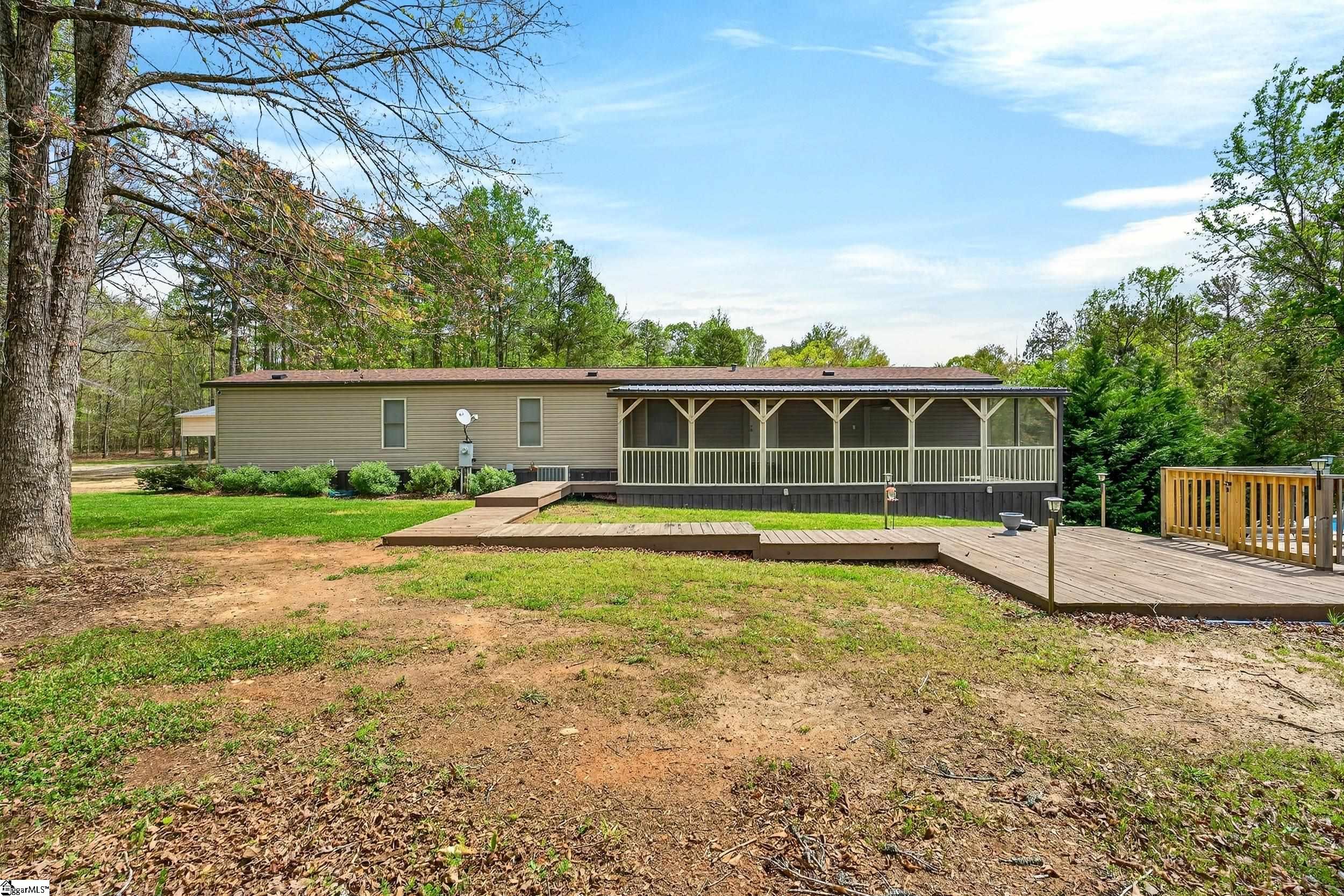 Escape to the peace and privacy of country living with this beautifully maintained property set on nearly 7 acres in the quiet countryside of Gray Court! Tucked away on a small, low-traffic street in the desirable Hickory Tavern area, this wooded property offers the perfect blend of space, comfort, and opportunity. Create your dream mini-farm, explore nature trails, or simply enjoy the privacy and freedom this property provides. A separate homesite and RV connection are already equipped with power, water, and septic is ready for another home, manufactured home, or guest setup—perfect for multi-generational living, rental potential, or future expansion! Additional features include a 2-car detached garage with electricity, a carport, and multiple outbuildings for storage, hobbies, or workspace. The well maintained manufactured home has been thoughtfully upgraded and is in excellent condition. Inside, you’ll find a bright open floor plan connecting the living, dining, and kitchen areas—ideal for everyday living and entertaining. The living space features a cozy electric fireplace, while the kitchen is equipped with stainless steel appliances and great functionality. Make sure to check out the hidden walk-in laundry room directly behind the full size cabinets, adjacent to the refrigerator. This 3 bedroom, 2 bathroom home includes a spacious primary suite with double vanities, a relaxing garden tub, and separate shower, creating a comfortable retreat at the end of the day. LVP flooring in the bedrooms adds durability and style. A large sunroom/flex space provides the perfect spot for a home office, hobby room, or additional living area. Step outside and enjoy the natural surroundings from the large screened porch overlooking the woods, or spend summer days relaxing by the swimming pool with extensive decking—an ideal space for gatherings and outdoor enjoyment. *Home buyers- this home qualifies for 0% down USDA financing, as well as interest rate buy down and closing cost assistance when using preferred lender- ask for details!* The almost 7-acre property offers incredible versatility— If you’re looking for privacy, land, and flexibility while still being within reach of Upstate amenities, this unique property offers endless possibilities. Country living with city convenience—shopping, dining, and medical care are all within 15-20 minutes. Properties like this are rare, so don’t miss your chance to enjoy the best of both worlds. Come experience the space, quiet, and opportunity that 71 Lodgeview Ct has to offer! Schedule your showing today!