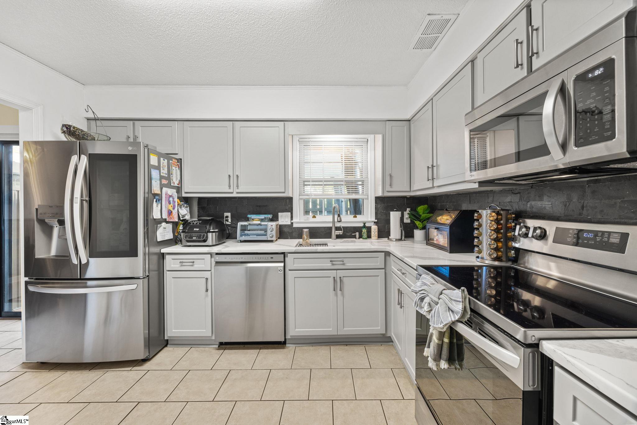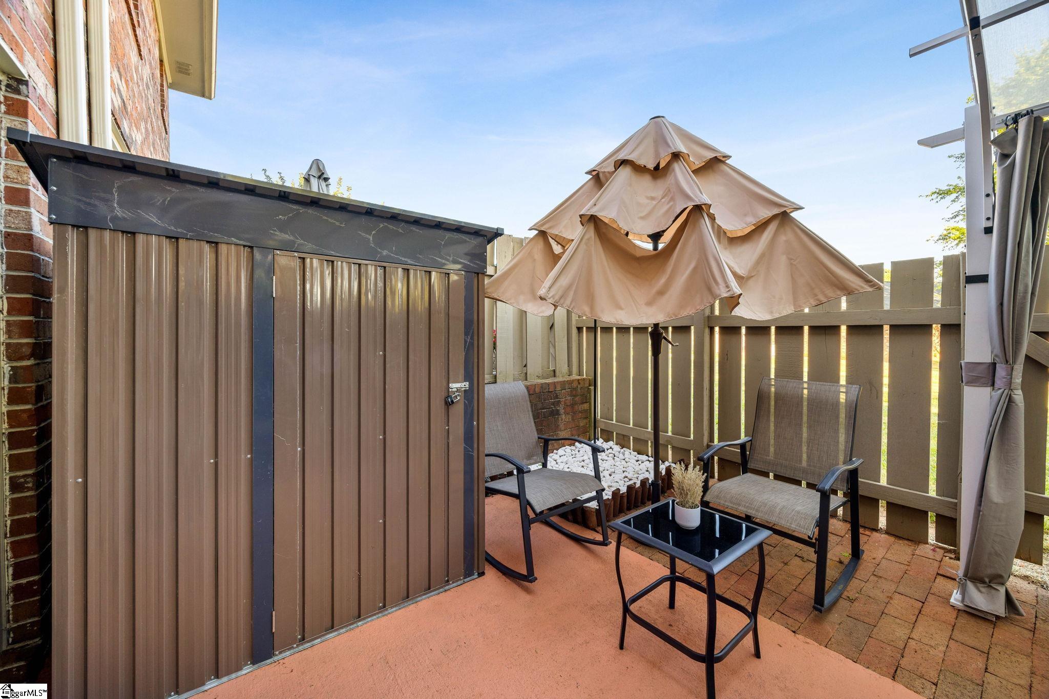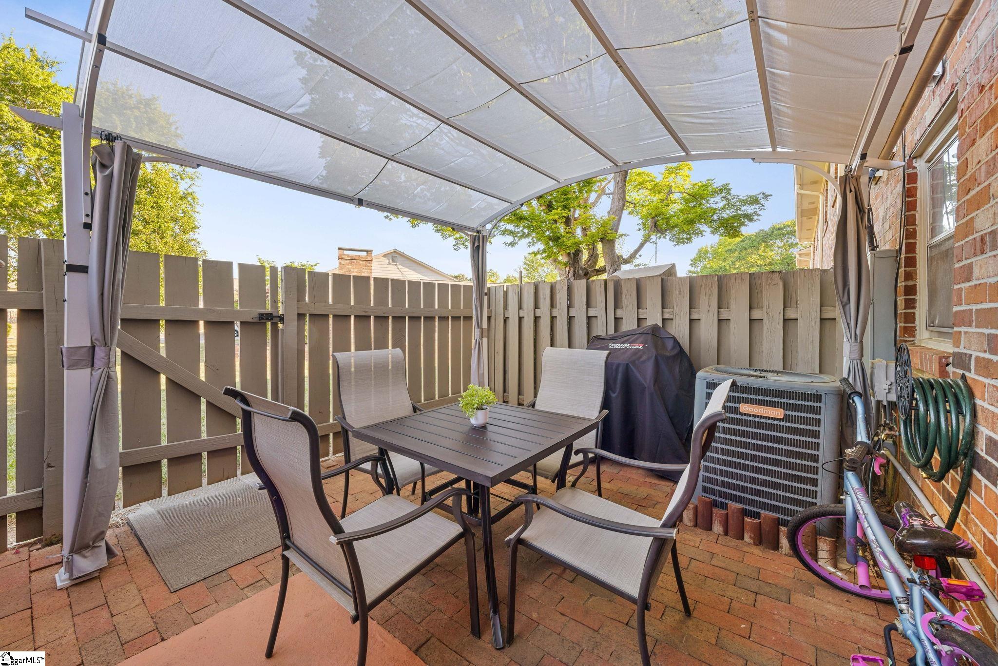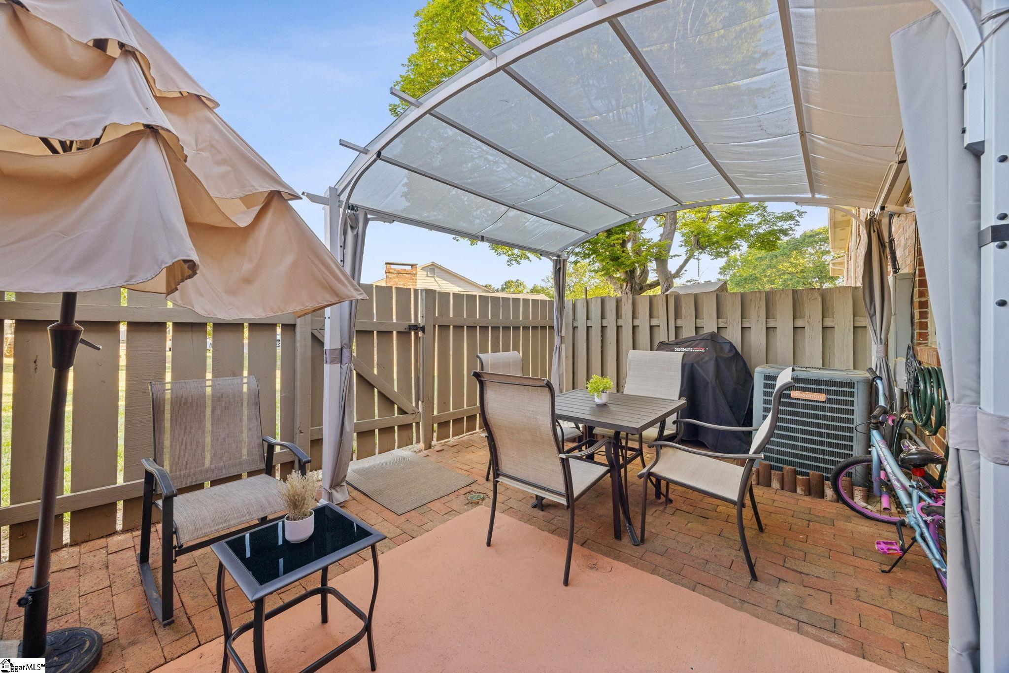 Discover easy, low-maintenance living in the desirable Bridgeview community! This charming condo offers access to fantastic neighborhood amenities including a community pool and playground—perfect for relaxing or enjoying time outdoors this summer! Ideally located just minutes from Downtown Greenville, you’ll enjoy quick access to a vibrant mix of dining, shopping, and entertainment. Outdoor enthusiasts will appreciate being just minutes from the Swamp Rabbit Trail, offering miles of scenic paths for walking, running, or biking. This home has been thoughtfully updated with modern finishes and major improvements throughout. The kitchen was beautifully upgraded in 2023–2024 with new quartz countertops, all stainless steel appliances, and refaced cabinets and drawers featuring soft-close functionality. Additional upgrades completed in 2025 include new primary and guest bathroom cabinets and toilets with updated plumbing, new bathroom flooring, a new shower head with plumbing updates, new attic insulation, and the addition of a patio pergola and shed—perfect for outdoor enjoyment and extra storage. A brand-new water heater was installed in early 2026, adding even more value and peace of mind. Don’t miss this move-in ready opportunity in a prime location!!