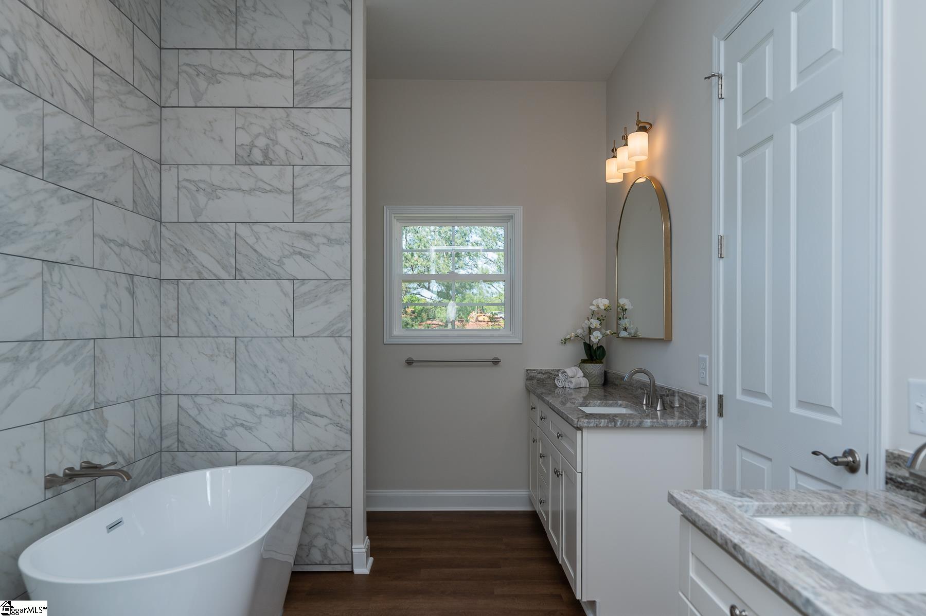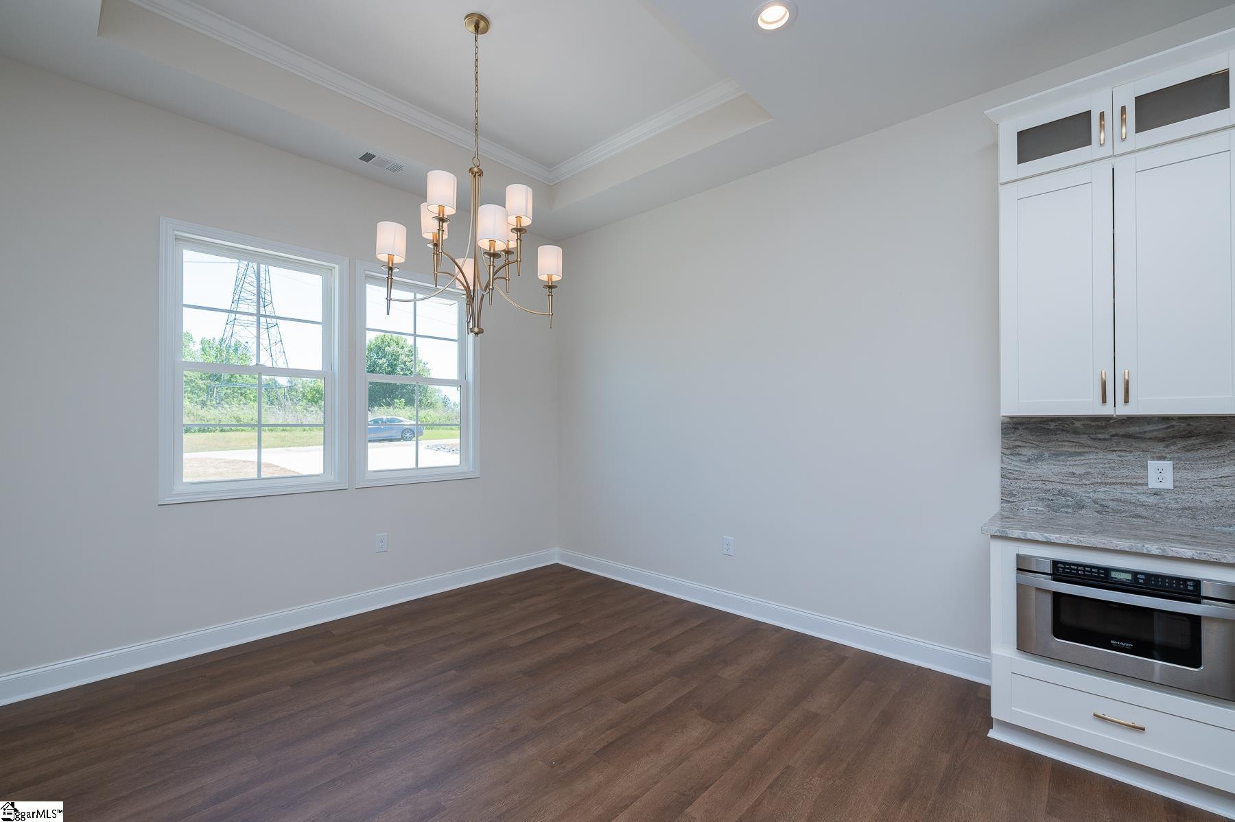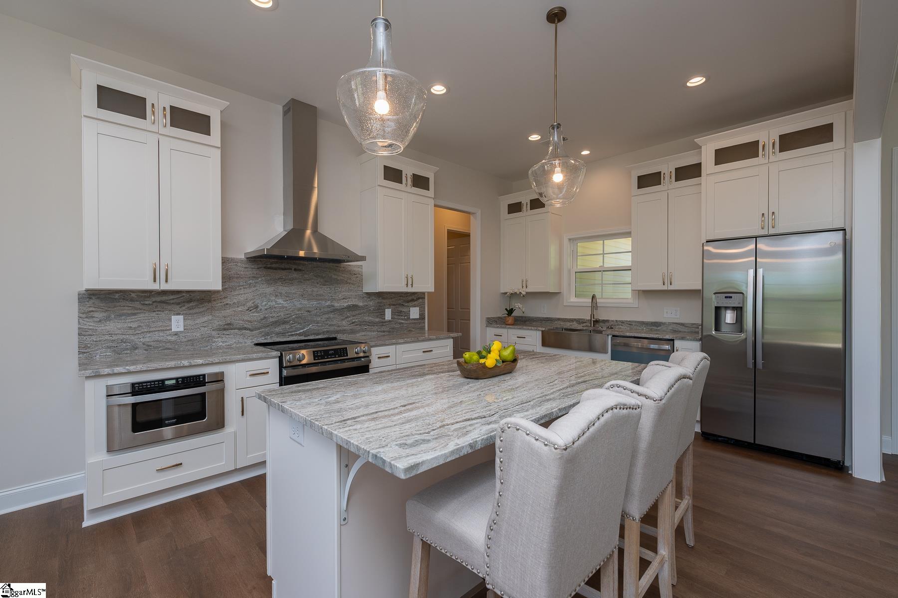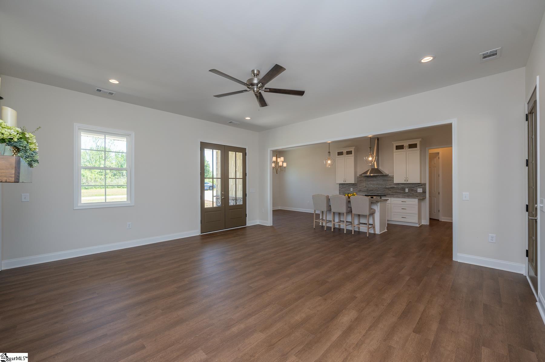 Custom New Construction with High-End Finishes & Exceptional Detail This beautifully built 3-bedroom, 2-bath home offers a perfect blend of craftsmanship, style, and functionality. Featuring 10-foot ceilings throughout the home, the layout feels open, spacious, and filled with natural light. The open-concept living area showcases a stone fireplace and flows seamlessly into the designer kitchen, complete with granite countertops, custom cabinetry, stainless steel appliances, a large island, and custom light fixtures—ideal for both everyday living and entertaining. A separate office with a board and batten accent wall provides a dedicated and stylish workspace. The primary suite is a true retreat, offering a spa-like bath with a tile walk-in shower, soaking tub, double vanity with granite tops, and a spacious walk-in closet. Granite countertops are featured throughout the home for a cohesive, high-end finish. Additional features include: Luxury vinyl plank flooring throughout main living areas Laundry room with utility sink Split bedroom floor plan for added privacy Quality craftsmanship and upgraded finishes throughout The 2-car garage is oversized with 11-foot ceilings and an 8-foot tall door opening, perfect for larger vehicles or additional storage. Exterior highlights include attractive stone work on the front elevation, enhancing curb appeal, and a covered back porch with ceiling fans, ideal for relaxing or entertaining while enjoying the private, scenic setting. This home delivers modern finishes, thoughtful design, and lasting value—move-in ready.