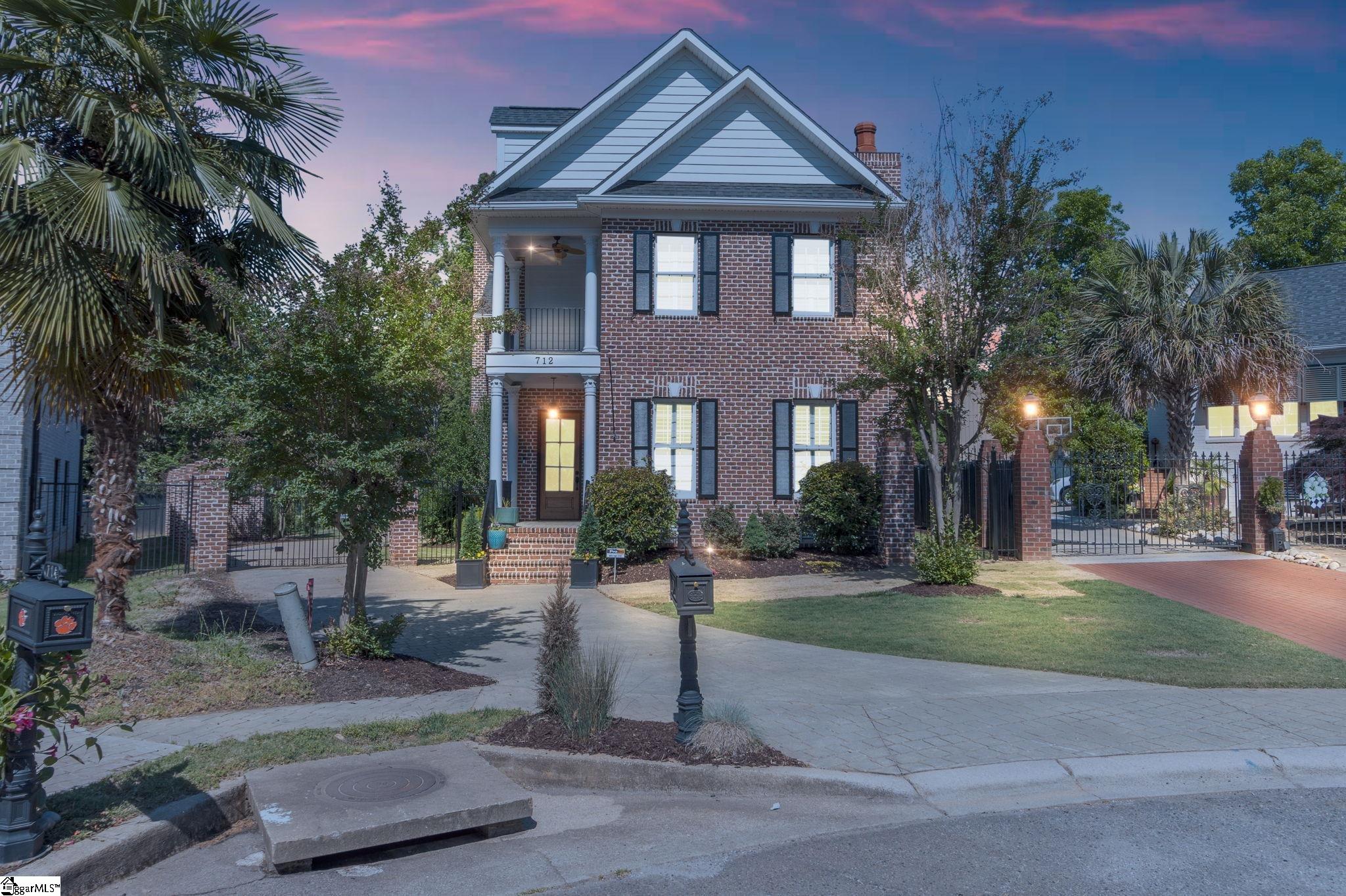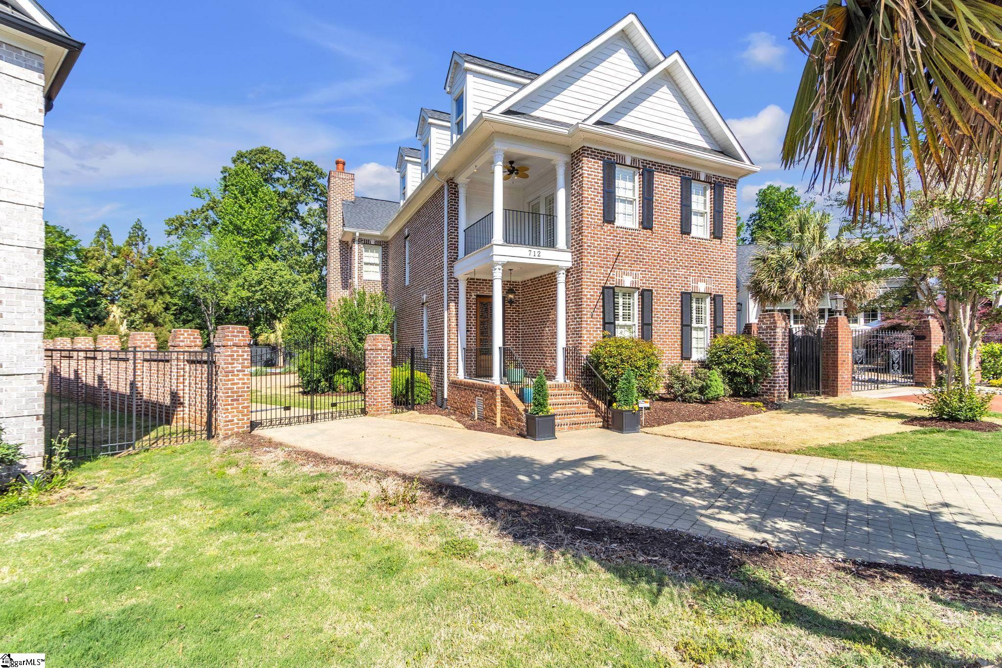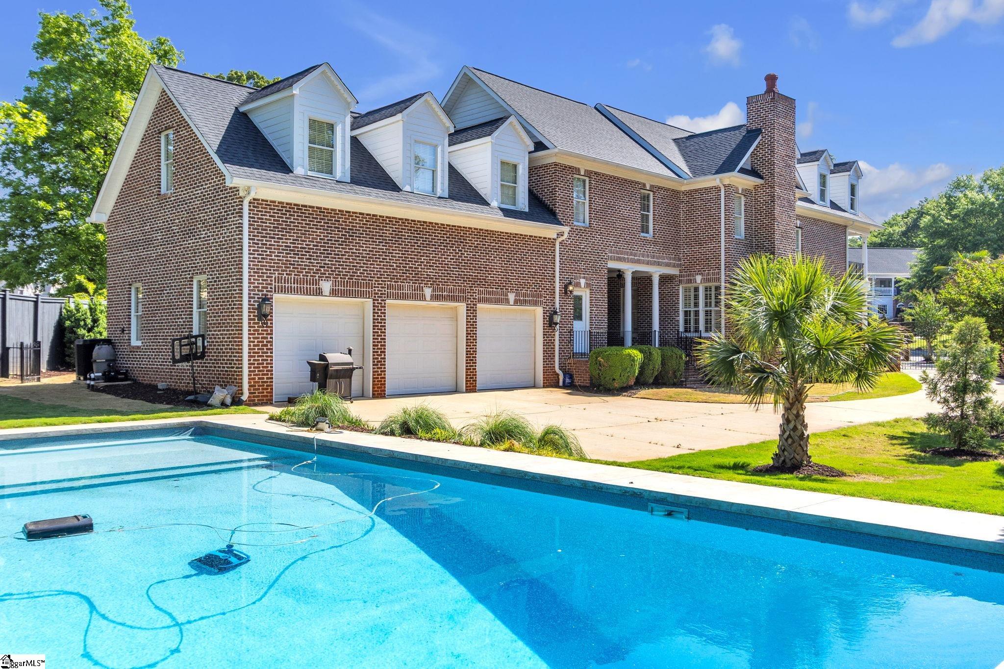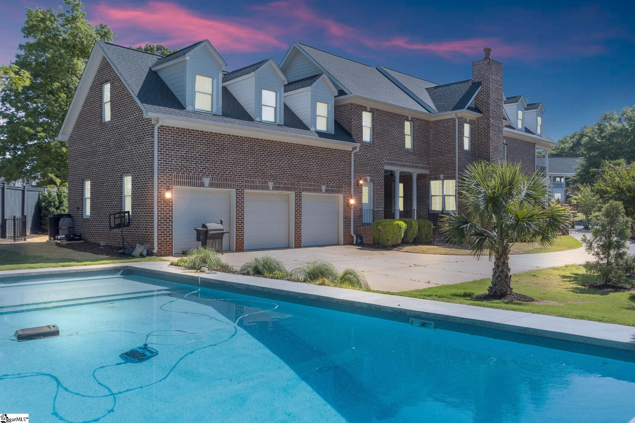 This is not your typical home—it’s a fully realized CHARLESTON-STYLE ESTATE where architectural detail and thoughtful design converge at every turn. From the moment you arrive, the ALL BRICK EXTERIOR, BRICK PAVER DRIVEWAY, and GATED ENTRY set a tone of timeless sophistication. A BEVELED GLASS FRONT DOOR welcomes you inside, where 12 FT CEILINGS, HARDWOOD FLOORS, PLANTATION SHUTTERS, and extensive CROWN MOLDING immediately establish the home’s refined character. ARCHED DOORWAYS and a striking CRYSTAL CHANDELIER elevate the main living spaces. The FRONT SITTING ROOM features a GAS FIREPLACE flanked by BUILT-IN BOOKSHELVES, while the formal DINING ROOM impresses with PILLARS and DECORATIVE CEILING MOLDING. Just beyond, a true BUTLER’S PANTRY serves as an entertainer’s dream—complete with WINE BAR, MINI FRIDGE, GRANITE COUNTERTOPS, TILED BACKSPLASH, and CUSTOM CABINETRY, including GLASS-FRONT ACCENTS. The KITCHEN is both functional and elegant, offering GRANITE COUNTERTOPS, a STAINLESS FARM SINK, an additional PREP SINK, WHITE CABINETRY with PULL-OUT SHELVING, and a GAS COOKTOP WITH GRIDDLE. A bright BREAKFAST ROOM and SEPARATE PANTRY/MUD ROOM WITH SINK add convenience. The kitchen opens seamlessly into the FAMILY ROOM, where a COFFERED CEILING, second GAS FIREPLACE, BUILT-INS, and abundant WINDOWS create a warm, inviting space. Also on the main level is a PRIVATE OFFICE, ideal for work or study. Upstairs, accessible via DUAL STAIRCASES, you’ll find a thoughtfully designed layout featuring FOUR BEDROOMS, including a JACK-AND-JILL BATH and an additional ENSUITE BEDROOM. The PRIMARY SUITE is a true retreat, showcasing a COFFERED CEILING, WALK-OUT TERRACE, and a SPA-LIKE BATH with OVERSIZED TILED SHOWER (DUAL SPRAYERS & SEATING), DUAL VANITIES, and HIS-AND-HERS CLOSETS. The upper level also includes a LARGE BONUS ROOM with a MINI BAR (SINK, MINI FRIDGE, MICROWAVE, and CABINETRY), A FLEX OFFICE NOOK, and a COZY READING NOOK OR DEN—perfect for a library or media space. Step outside to a PRIVATE BACKYARD OASIS featuring a WROUGHT IRON FENCE, ELECTRIC GATE, and BRICK PRIVACY WALL. Enjoy the COVERED PATIO WITH FANS just off the kitchen, a newly installed IN-GROUND POOL, and an OUTDOOR FIREPLACE ideal for grilling and entertaining. MATURE PALM TREES complete the resort-like setting. Additional highlights include a 3-CAR GARAGE, CENTRAL VACUUM SYSTEM, NEW CARPET, and numerous updates throughout. All of this is located in a PRIME EASTSIDE LOCATION with convenient access to DOWNTOWN GREEr and GREENVILLE, GSP AIRPORT, HOSPITALS, SHOPPING, DINING, and TOP-RATED SCHOOLS. A rare opportunity to own a home that blends CLASSIC CHARLESTON CHARM with MODERN LUXURY.