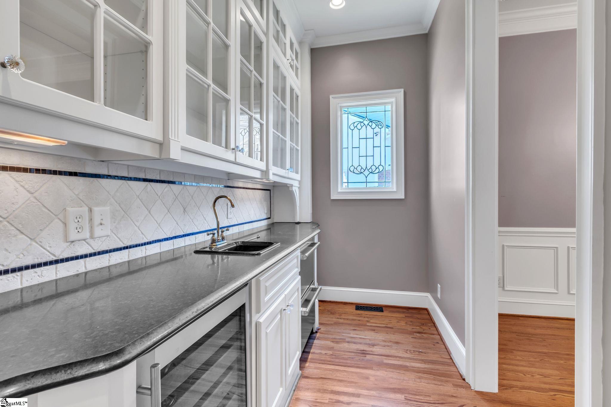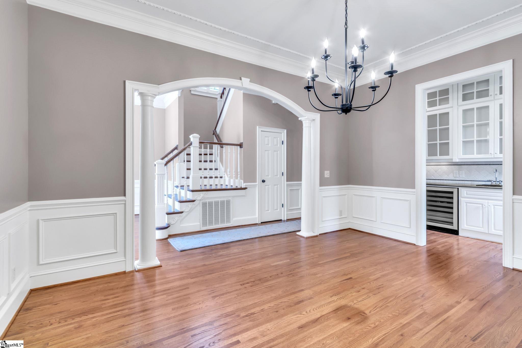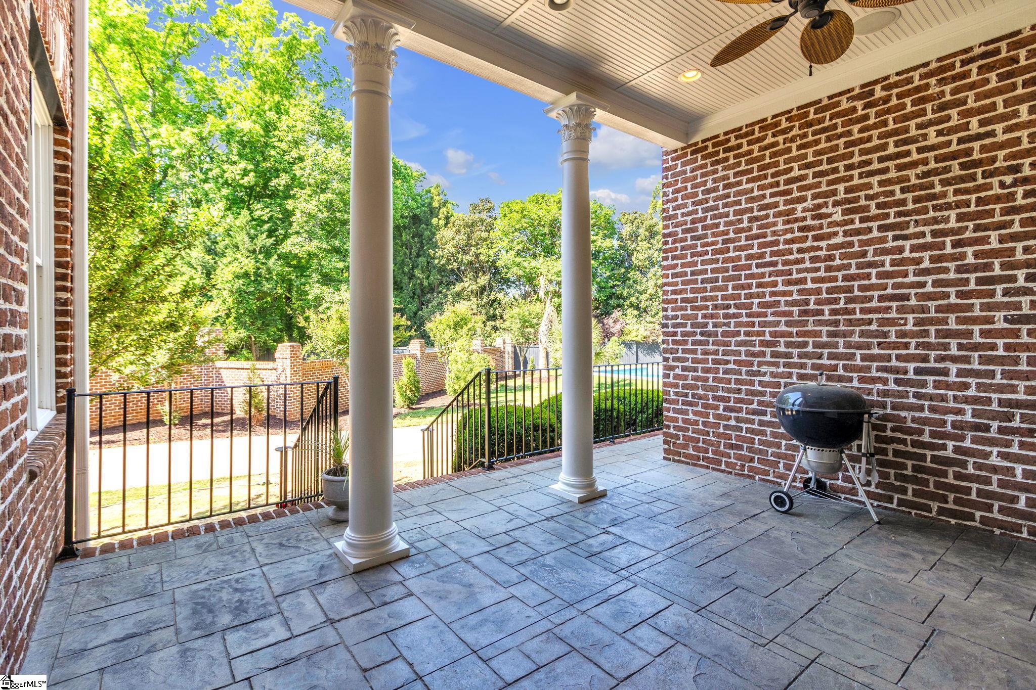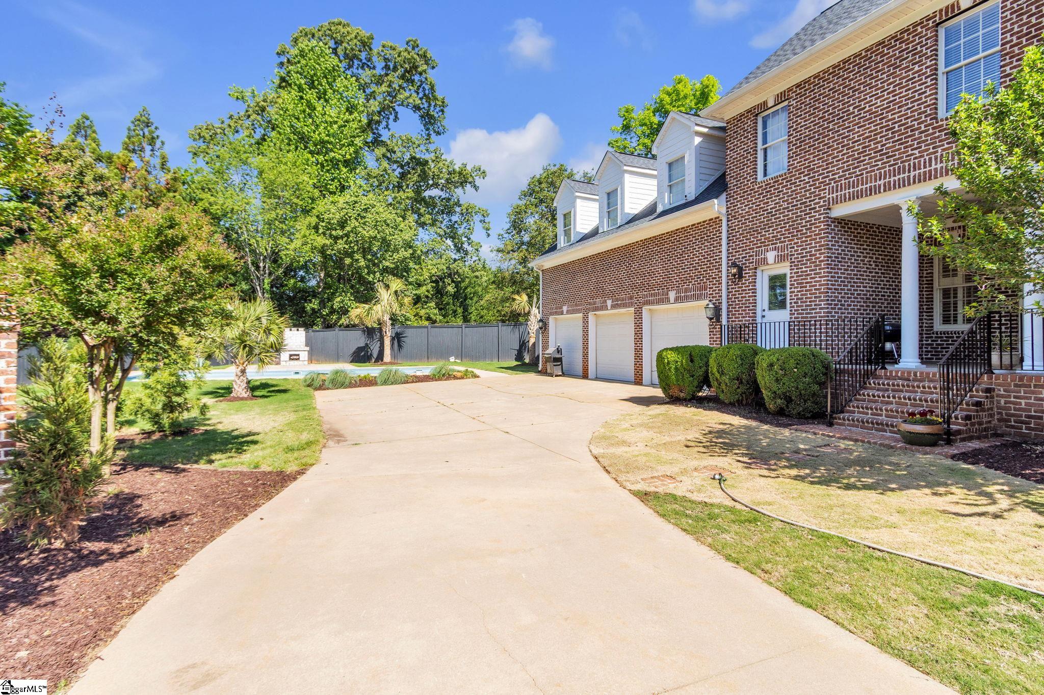 This is not your typical home—it’s a fully realized CHARLESTON-STYLE ESTATE where architectural detail and thoughtful design converge at every turn. From the moment you arrive, the ALL BRICK EXTERIOR, BRICK PAVER DRIVEWAY, and GATED ENTRY set a tone of timeless sophistication. A BEVELED GLASS FRONT DOOR welcomes you inside, where 12 FT CEILINGS, HARDWOOD FLOORS, PLANTATION SHUTTERS, and extensive CROWN MOLDING immediately establish the home’s refined character. ARCHED DOORWAYS and a striking CRYSTAL CHANDELIER elevate the main living spaces. The FRONT SITTING ROOM features a GAS FIREPLACE flanked by BUILT-IN BOOKSHELVES, while the formal DINING ROOM impresses with PILLARS and DECORATIVE CEILING MOLDING. Just beyond, a true BUTLER’S PANTRY serves as an entertainer’s dream—complete with WINE BAR, MINI FRIDGE, GRANITE COUNTERTOPS, TILED BACKSPLASH, and CUSTOM CABINETRY, including GLASS-FRONT ACCENTS. The KITCHEN is both functional and elegant, offering GRANITE COUNTERTOPS, a STAINLESS FARM SINK, an additional PREP SINK, WHITE CABINETRY with PULL-OUT SHELVING, and a GAS COOKTOP WITH GRIDDLE. A bright BREAKFAST ROOM and SEPARATE PANTRY/MUD ROOM WITH SINK add convenience. The kitchen opens seamlessly into the FAMILY ROOM, where a COFFERED CEILING, second GAS FIREPLACE, BUILT-INS, and abundant WINDOWS create a warm, inviting space. Also on the main level is a PRIVATE OFFICE, ideal for work or study. Upstairs, accessible via DUAL STAIRCASES, you’ll find a thoughtfully designed layout featuring FOUR BEDROOMS, including a JACK-AND-JILL BATH and an additional ENSUITE BEDROOM. The PRIMARY SUITE is a true retreat, showcasing a COFFERED CEILING, WALK-OUT TERRACE, and a SPA-LIKE BATH with OVERSIZED TILED SHOWER (DUAL SPRAYERS & SEATING), DUAL VANITIES, and HIS-AND-HERS CLOSETS. The upper level also includes a LARGE BONUS ROOM with a MINI BAR (SINK, MINI FRIDGE, MICROWAVE, and CABINETRY), A FLEX OFFICE NOOK, and a COZY READING NOOK OR DEN—perfect for a library or media space. Step outside to a PRIVATE BACKYARD OASIS featuring a WROUGHT IRON FENCE, ELECTRIC GATE, and BRICK PRIVACY WALL. Enjoy the COVERED PATIO WITH FANS just off the kitchen, a newly installed IN-GROUND POOL, and an OUTDOOR FIREPLACE ideal for grilling and entertaining. MATURE PALM TREES complete the resort-like setting. Additional highlights include a 3-CAR GARAGE, CENTRAL VACUUM SYSTEM, NEW CARPET, and numerous updates throughout. All of this is located in a PRIME EASTSIDE LOCATION with convenient access to DOWNTOWN GREEr and GREENVILLE, GSP AIRPORT, HOSPITALS, SHOPPING, DINING, and TOP-RATED SCHOOLS. A rare opportunity to own a home that blends CLASSIC CHARLESTON CHARM with MODERN LUXURY.