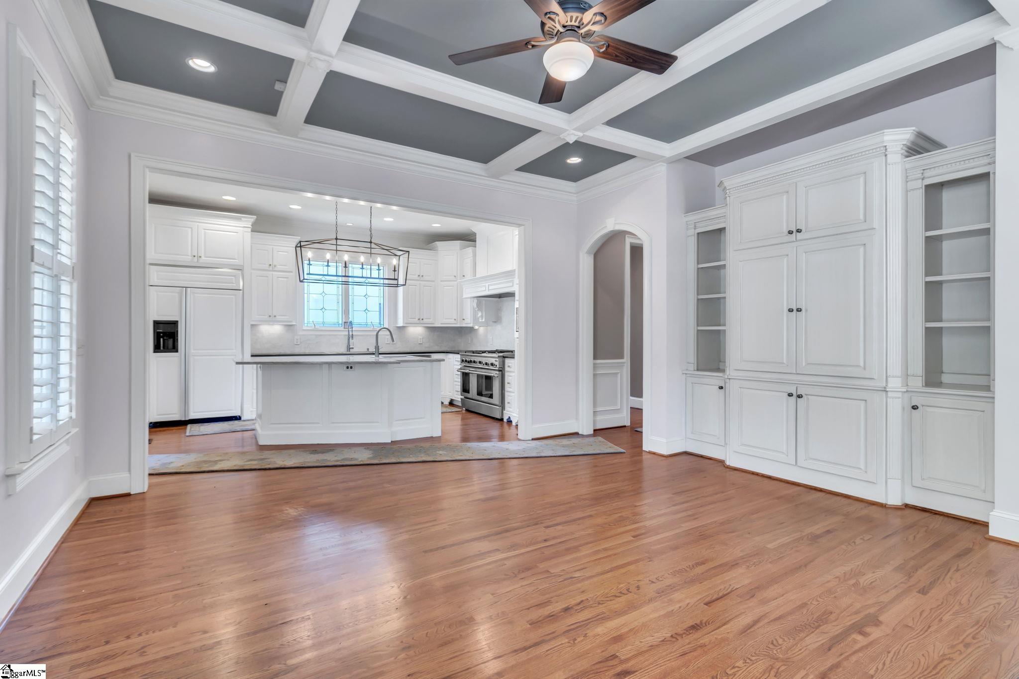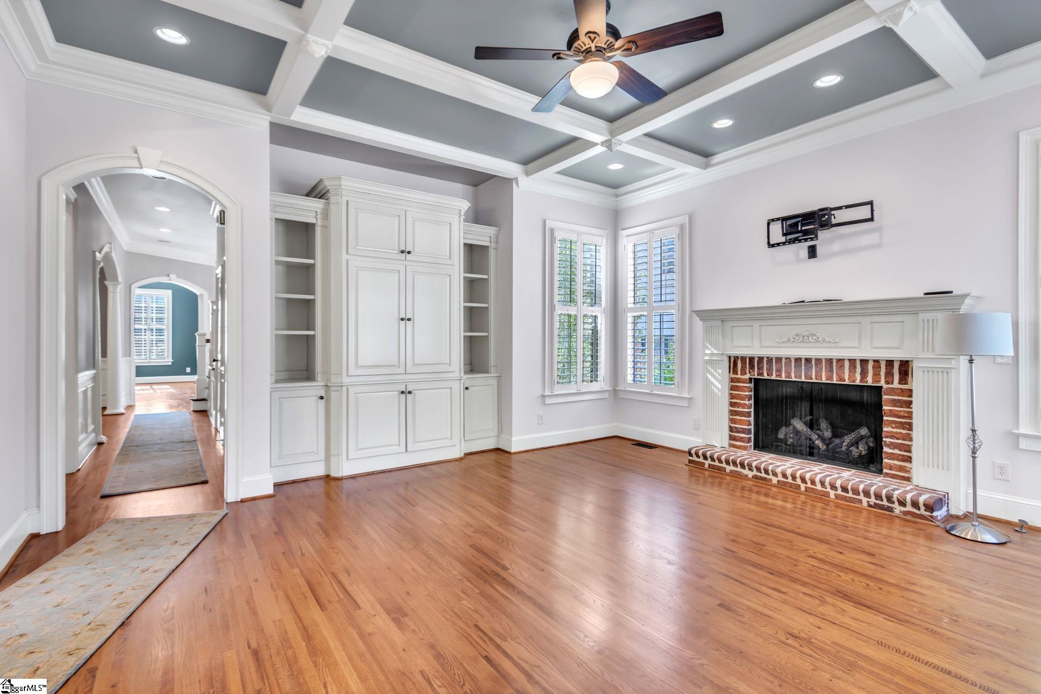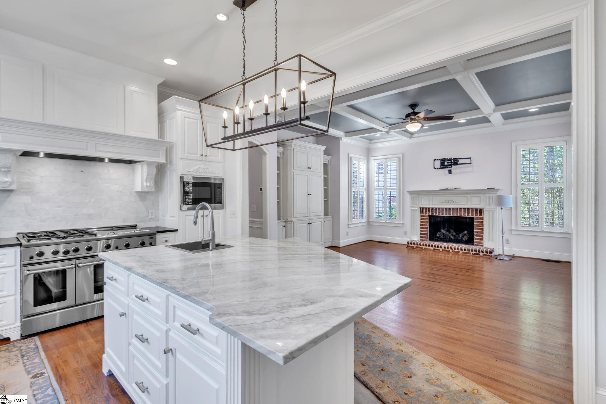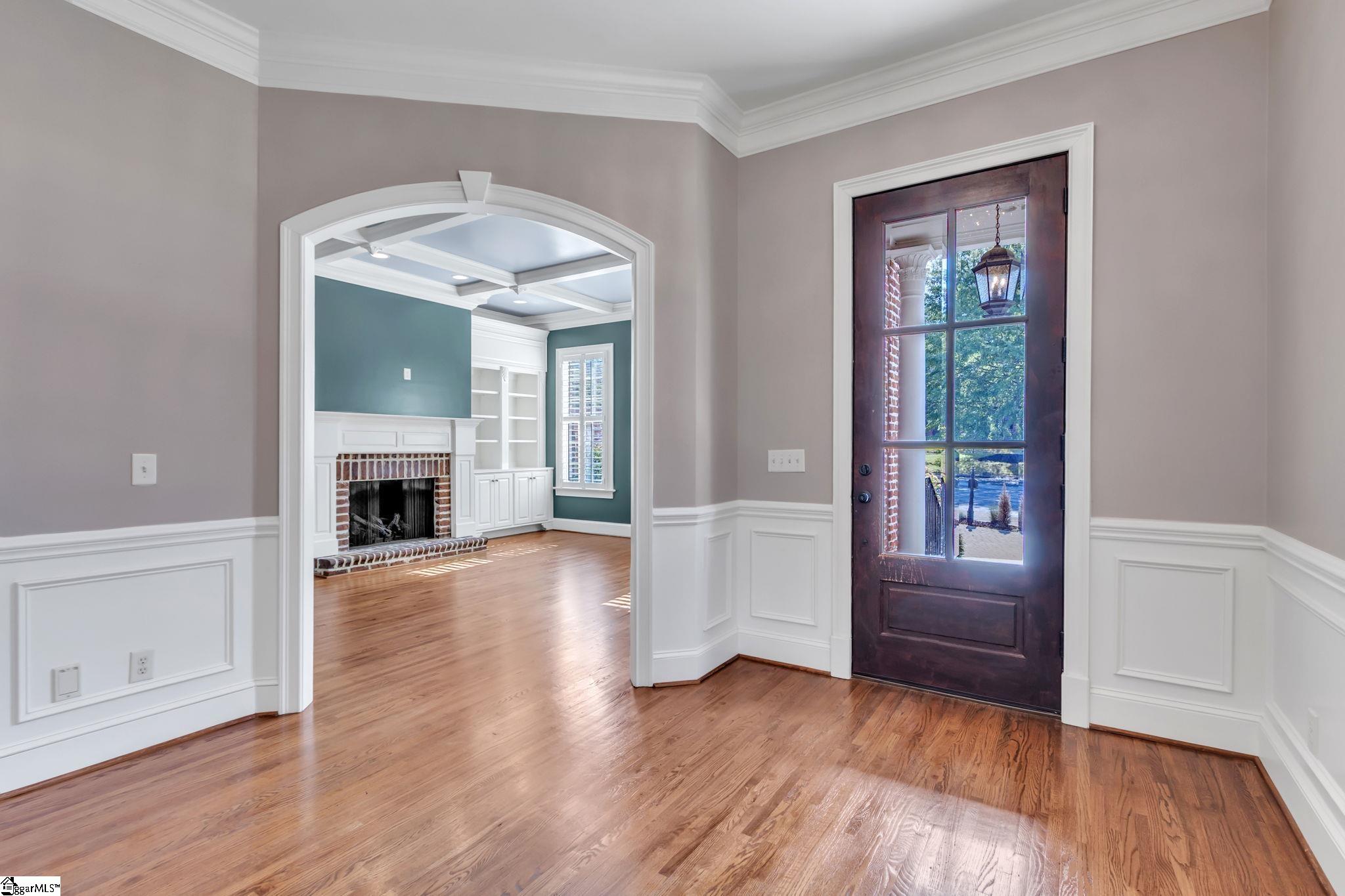 This is not your typical home—it’s a fully realized CHARLESTON-STYLE ESTATE where architectural detail and thoughtful design converge at every turn. From the moment you arrive, the ALL BRICK EXTERIOR, BRICK PAVER DRIVEWAY, and GATED ENTRY set a tone of timeless sophistication. A BEVELED GLASS FRONT DOOR welcomes you inside, where 12 FT CEILINGS, HARDWOOD FLOORS, PLANTATION SHUTTERS, and extensive CROWN MOLDING immediately establish the home’s refined character. ARCHED DOORWAYS and a striking CRYSTAL CHANDELIER elevate the main living spaces. The FRONT SITTING ROOM features a GAS FIREPLACE flanked by BUILT-IN BOOKSHELVES, while the formal DINING ROOM impresses with PILLARS and DECORATIVE CEILING MOLDING. Just beyond, a true BUTLER’S PANTRY serves as an entertainer’s dream—complete with WINE BAR, MINI FRIDGE, GRANITE COUNTERTOPS, TILED BACKSPLASH, and CUSTOM CABINETRY, including GLASS-FRONT ACCENTS. The KITCHEN is both functional and elegant, offering GRANITE COUNTERTOPS, a STAINLESS FARM SINK, an additional PREP SINK, WHITE CABINETRY with PULL-OUT SHELVING, and a GAS COOKTOP WITH GRIDDLE. A bright BREAKFAST ROOM and SEPARATE PANTRY/MUD ROOM WITH SINK add convenience. The kitchen opens seamlessly into the FAMILY ROOM, where a COFFERED CEILING, second GAS FIREPLACE, BUILT-INS, and abundant WINDOWS create a warm, inviting space. Also on the main level is a PRIVATE OFFICE, ideal for work or study. Upstairs, accessible via DUAL STAIRCASES, you’ll find a thoughtfully designed layout featuring FOUR BEDROOMS, including a JACK-AND-JILL BATH and an additional ENSUITE BEDROOM. The PRIMARY SUITE is a true retreat, showcasing a COFFERED CEILING, WALK-OUT TERRACE, and a SPA-LIKE BATH with OVERSIZED TILED SHOWER (DUAL SPRAYERS & SEATING), DUAL VANITIES, and HIS-AND-HERS CLOSETS. The upper level also includes a LARGE BONUS ROOM with a MINI BAR (SINK, MINI FRIDGE, MICROWAVE, and CABINETRY), A FLEX OFFICE NOOK, and a COZY READING NOOK OR DEN—perfect for a library or media space. Step outside to a PRIVATE BACKYARD OASIS featuring a WROUGHT IRON FENCE, ELECTRIC GATE, and BRICK PRIVACY WALL. Enjoy the COVERED PATIO WITH FANS just off the kitchen, a newly installed IN-GROUND POOL, and an OUTDOOR FIREPLACE ideal for grilling and entertaining. MATURE PALM TREES complete the resort-like setting. Additional highlights include a 3-CAR GARAGE, CENTRAL VACUUM SYSTEM, NEW CARPET, and numerous updates throughout. All of this is located in a PRIME EASTSIDE LOCATION with convenient access to DOWNTOWN GREEr and GREENVILLE, GSP AIRPORT, HOSPITALS, SHOPPING, DINING, and TOP-RATED SCHOOLS. A rare opportunity to own a home that blends CLASSIC CHARLESTON CHARM with MODERN LUXURY.