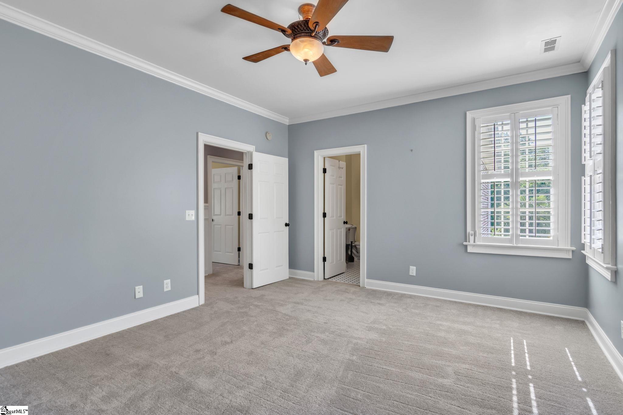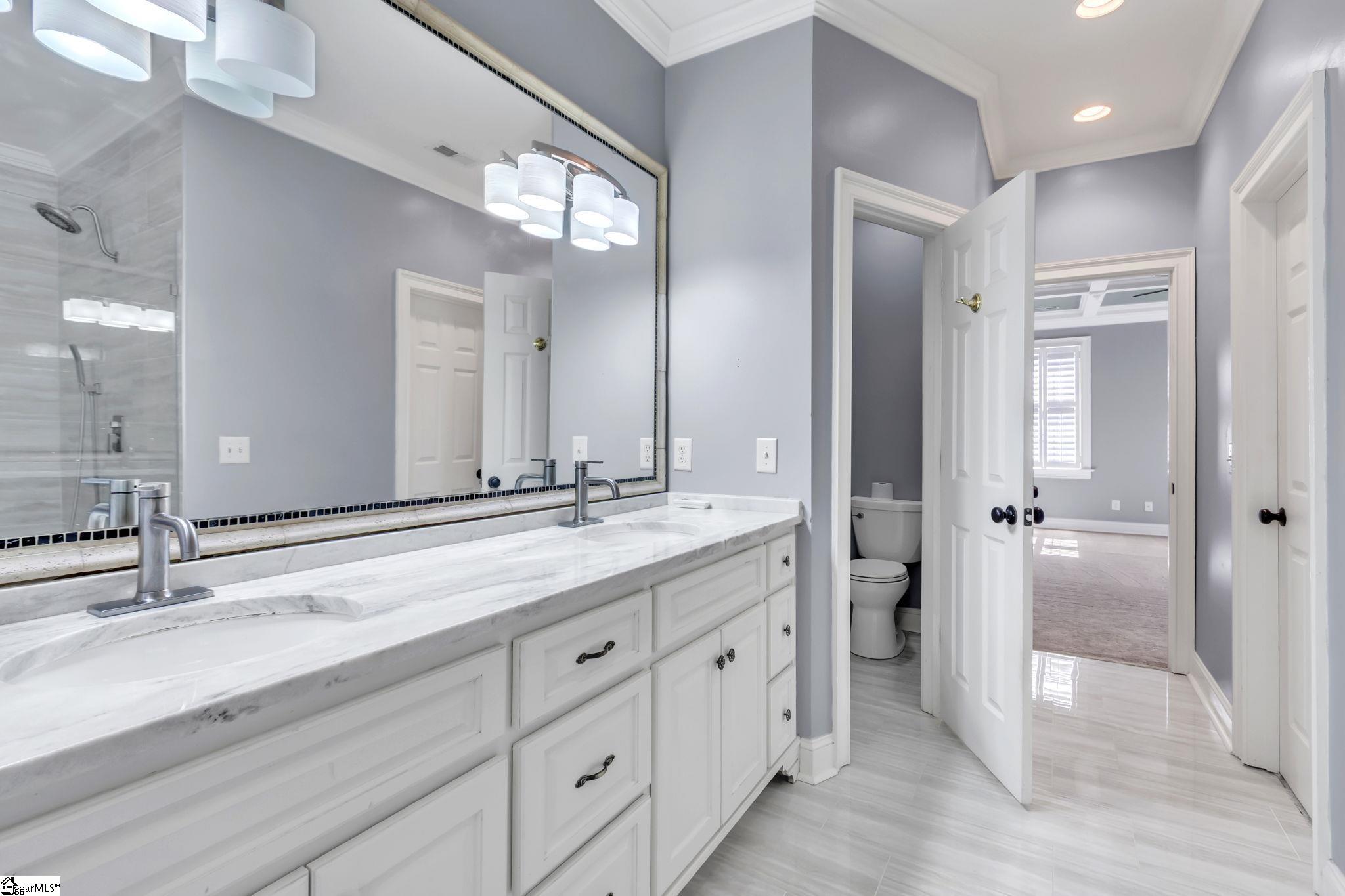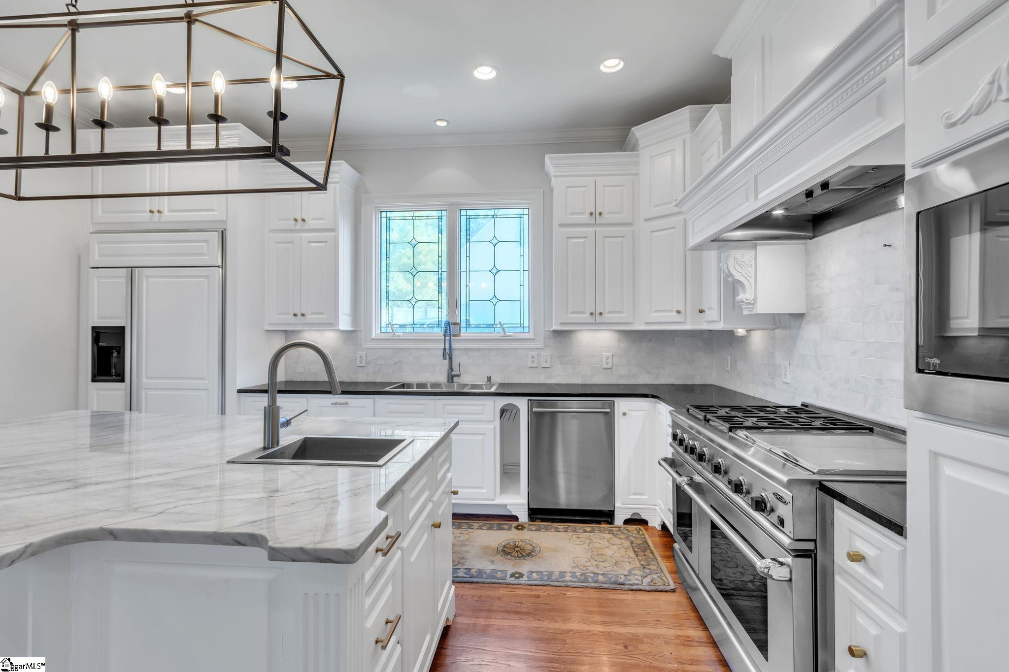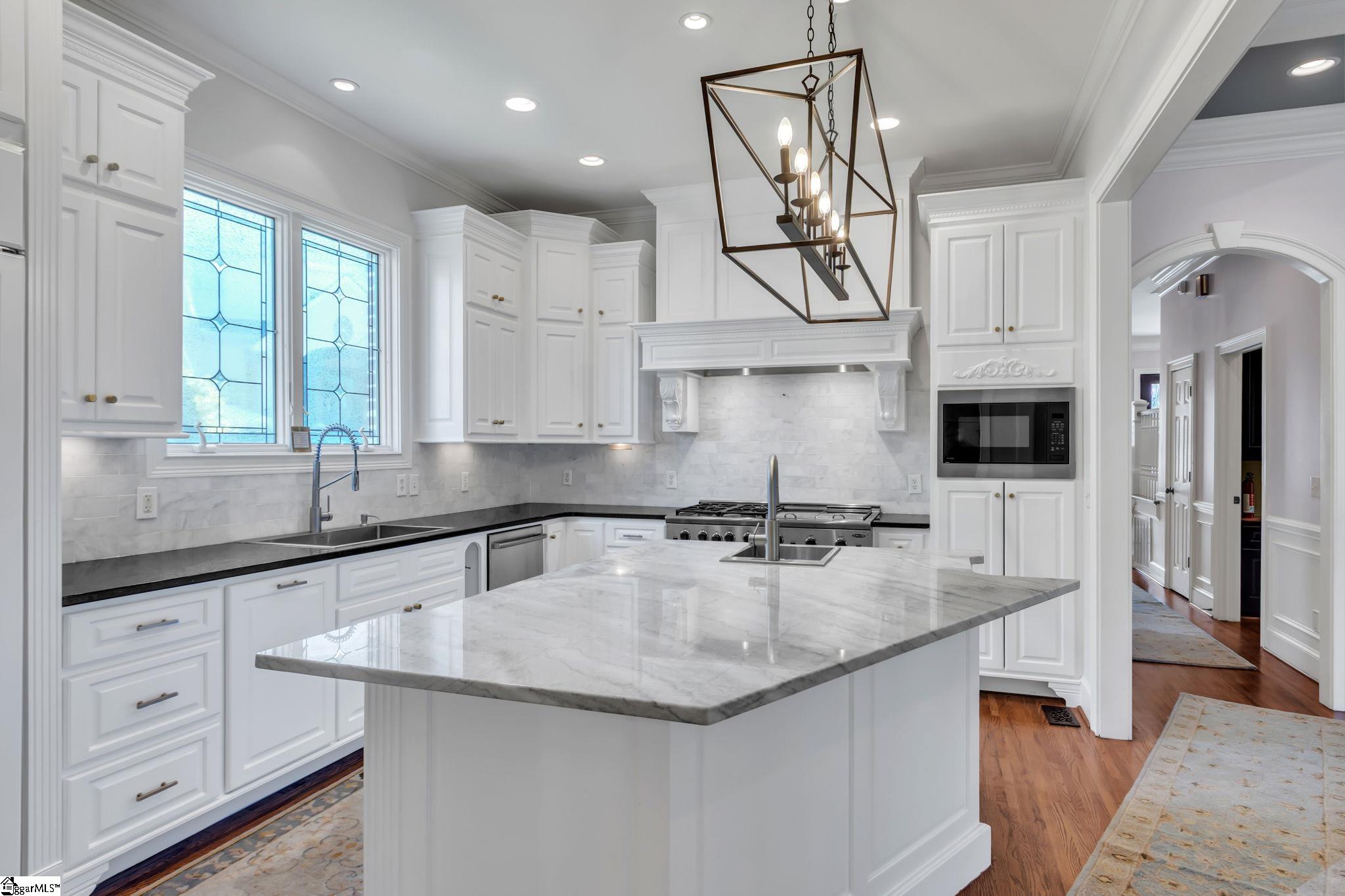 This is not your typical home—it’s a fully realized CHARLESTON-STYLE ESTATE where architectural detail and thoughtful design converge at every turn. From the moment you arrive, the ALL BRICK EXTERIOR, BRICK PAVER DRIVEWAY, and GATED ENTRY set a tone of timeless sophistication. A BEVELED GLASS FRONT DOOR welcomes you inside, where 12 FT CEILINGS, HARDWOOD FLOORS, PLANTATION SHUTTERS, and extensive CROWN MOLDING immediately establish the home’s refined character. ARCHED DOORWAYS and a striking CRYSTAL CHANDELIER elevate the main living spaces. The FRONT SITTING ROOM features a GAS FIREPLACE flanked by BUILT-IN BOOKSHELVES, while the formal DINING ROOM impresses with PILLARS and DECORATIVE CEILING MOLDING. Just beyond, a true BUTLER’S PANTRY serves as an entertainer’s dream—complete with WINE BAR, MINI FRIDGE, GRANITE COUNTERTOPS, TILED BACKSPLASH, and CUSTOM CABINETRY, including GLASS-FRONT ACCENTS. The KITCHEN is both functional and elegant, offering GRANITE COUNTERTOPS, a STAINLESS FARM SINK, an additional PREP SINK, WHITE CABINETRY with PULL-OUT SHELVING, and a GAS COOKTOP WITH GRIDDLE. A bright BREAKFAST ROOM and SEPARATE PANTRY/MUD ROOM WITH SINK add convenience. The kitchen opens seamlessly into the FAMILY ROOM, where a COFFERED CEILING, second GAS FIREPLACE, BUILT-INS, and abundant WINDOWS create a warm, inviting space. Also on the main level is a PRIVATE OFFICE, ideal for work or study. Upstairs, accessible via DUAL STAIRCASES, you’ll find a thoughtfully designed layout featuring FOUR BEDROOMS, including a JACK-AND-JILL BATH and an additional ENSUITE BEDROOM. The PRIMARY SUITE is a true retreat, showcasing a COFFERED CEILING, WALK-OUT TERRACE, and a SPA-LIKE BATH with OVERSIZED TILED SHOWER (DUAL SPRAYERS & SEATING), DUAL VANITIES, and HIS-AND-HERS CLOSETS. The upper level also includes a LARGE BONUS ROOM with a MINI BAR (SINK, MINI FRIDGE, MICROWAVE, and CABINETRY), A FLEX OFFICE NOOK, and a COZY READING NOOK OR DEN—perfect for a library or media space. Step outside to a PRIVATE BACKYARD OASIS featuring a WROUGHT IRON FENCE, ELECTRIC GATE, and BRICK PRIVACY WALL. Enjoy the COVERED PATIO WITH FANS just off the kitchen, a newly installed IN-GROUND POOL, and an OUTDOOR FIREPLACE ideal for grilling and entertaining. MATURE PALM TREES complete the resort-like setting. Additional highlights include a 3-CAR GARAGE, CENTRAL VACUUM SYSTEM, NEW CARPET, and numerous updates throughout. All of this is located in a PRIME EASTSIDE LOCATION with convenient access to DOWNTOWN GREEr and GREENVILLE, GSP AIRPORT, HOSPITALS, SHOPPING, DINING, and TOP-RATED SCHOOLS. A rare opportunity to own a home that blends CLASSIC CHARLESTON CHARM with MODERN LUXURY.