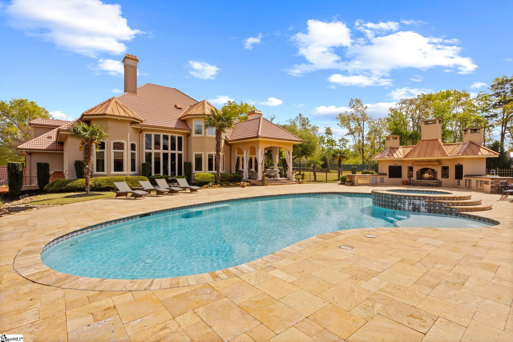 Relax on vacation every day at 716 Anderson Ridge Road. Incredible, meticulously maintained, gated 7.7 acre private enclave WITH SEPARATE LOG GUEST CABIN provides the best in multi-generational living & entertaining. GOT CARS? 9 attached garage spaces. LOVE WINE? Savor the Wine Cellar/Tasting Room. GOT KIDS? They’ll love the pool, spa, pool house, pizza kitchen, outdoor fireplace, and Man Cave. GOT DOGS? They’ll love the dog house w/HVAC! MOVIE BUFF? Relax in the Home Theater. GOT BIG FAMILY? Fill the 5 bedroom suites in main house, PLUS the 1900+ sft 3 bd/2ba guest cabin. WORK OUT MUCH? Enjoy your private Home Gym. WORK FROM HOME? Home office on main. TRAVEL OFTEN? 6 Miles to GSP. In the heart of Five Forks, this amazing retreat is just 12 miles to GVL’s magnetic Downtown. Showings ltd to serious, cash buyers, 48 hour notice, VOF required up front for appointment confirmation.